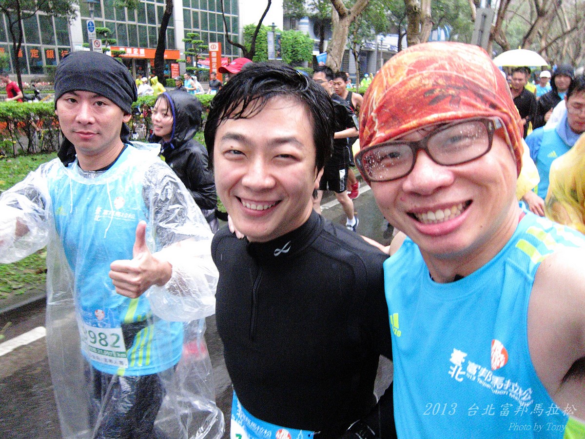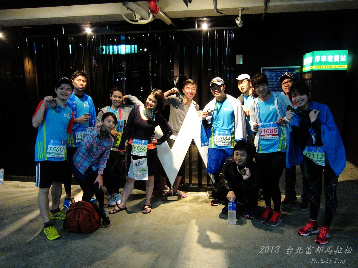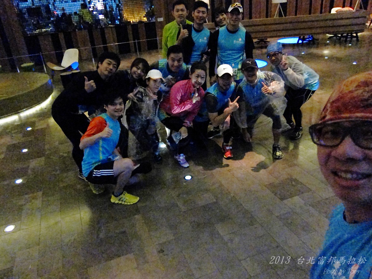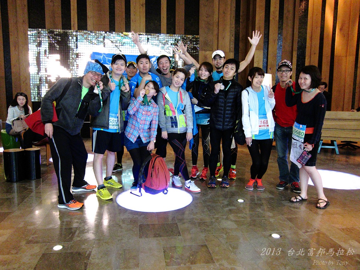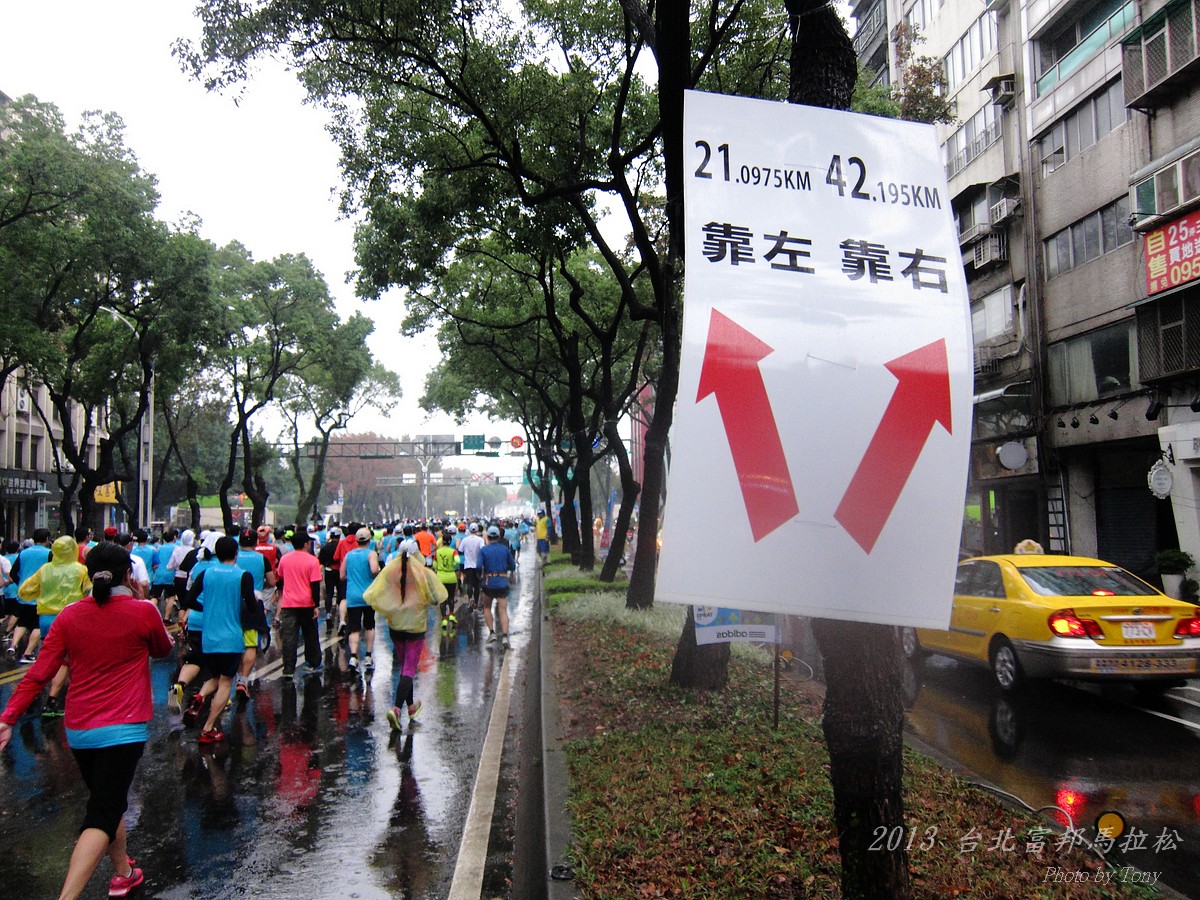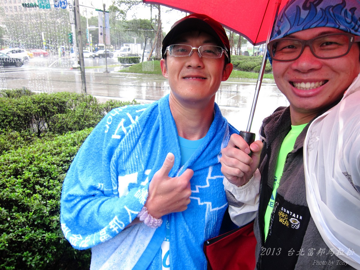 前一天看著天氣預報,心又涼了一截...降雨機率高達90%..Orz 上次太馬已淋了二個小時,我看這次又差不多了XDD 一早來到W和大家集合 因為起床太晚,只得匆匆吃了二個巧克力餅干就準備往市政府集合出發!! 又糊塗的忘了帶一包能量包,只好先和外星人小頡先借一包來放!! 雖然天空下著毛毛雨,但心情卻是熱的... 人也多到爆,擠了13分鐘才出計時拱門,一開始出發的選手都已跑到圓環去了~~XDD 且~~才出發就和大家擠散... 好吧~就慢慢跑吧~ 出發時二旁不乏加油的民眾,先來拍幾張~ 跑個1K~右邊出現了熟悉的聲音~(NATSUMI的笑聲~~) YA~~居然遇上NATSUMI了~ 趕緊過去和大家集合拍個照!! 然後路邊再拍個二張之後...大家又不見了XDD 好吧~遲早是要分開的,就按自己的節奏跑吧~ 不過要按自己的節奏也很難啦,路雖然大條,但人太多,尤其我幾乎又是最後出發的,6分速就得一路超車了XDD 且加油的民眾有時在左邊,有時在右邊,要切來切去有時還有點辛苦啊!! 像是中山北路幾位辣妹,我就是來不及切..跑過頭再繞回去拍的XD 反正....專心跑,和拍照跑,頂多也差個10分鐘而已,快個10分鐘,排名一樣很後面,慢個10分鐘卻多了這麼多可以回憶的照片,我想...這是值得的吧:P 就這樣...一邊跑一邊拍,在下新生高架橋時,居然也被國棟給追上了,看來最近二次每次二小時的LSD特訓真的有用,抽筋棟終於要一雪前恥了~ 跑到忠烈祠前大約11公里,在這的補給站把能量包給吃掉,再喝個半杯舒跑後,繼續向前挺進!! 不過~~就在自己身體覺得愈跑愈順時..,左小腿突然傳來一點點刺痛...Orz 按之前的經驗,我知道我的腓腸肌又出問題了~~ 上週自己用5分半的速度練跑近15k都沒事,怎麼這次在13-14k就出現問題?? 我想..可能是上週的疲勞還沒結束,週三練跑時,好像又稍微有拉到~ 雖然經過三天的休息已沒什麼感覺了,但終究在13-14k後就顯現出來了!! 我看似粗壯的蘿蔔怎麼會這麼弱啊XDDD 路程都已跑一半了,就繼續跑吧~ 降點速讓爆掉的時間延緩大爆發發作!! 就這樣撐到環快上面,雖然只剩2-3KM,但看見補給站還是去喝個水,喝個餅干和香蕉 再到護理站去噴個肌樂!! 沒多久就看到全馬的前導車從後方開過來了 哇塞,第一名回來了,肯亞的喬瑟法·傑可波(Josphat Kamzee Jepkopol)從我身邊飛快的跑過,超強的啦~~ 最後出了基隆路的地下道,只剩最後1KM,大家也都加速了起來,突然被一個小個頭女生刷卡而過,又激起我的鬥志,雖然蘿蔔痛,但還是要看一下刷我卡的是那位女生,努力的用5分速跟上去,只敢拍個背影,不好意思拍正面...XDD,最後200公尺,她再度加速...,我為了要拍照,只好目送她遠離XDD!! 這次成續2:09"15,比太馬退步了一點點~ 我想..照片拍的比較多一些,再加上蘿蔔痛是最大的主因~ 不過這成績我是覺得還可以了啦,蘿蔔痛才是我在意的~(經過一天的休息、冰敷、上小腿套再貼上撒隆適布後,情況已好轉很多~) 未來~我看~得多加強我的蘿蔔訓練才行!! 這次台北富邦,本想希望看能不能請老婆帶著兩隻小鬼來終點幫我加油~ 但這雨實在太大~~ 只好看看下次有沒有機會了!! ^__^ 距離: 22.22 公里 時間: 2:09:15 平均步速: 5:49 分鐘/公里 平均心率: 162 bpm Avg Run Cadence: 180 spm Avg Vertical Oscillation: 7.3 公分 Avg Ground Contact Time: 245 毫秒 Avg Stride Length: 0.95 公尺 衣保袋一個100元,很大,可以裝很多東西,不過不防水,這種天氣自己的乾衣服要用塑膠袋再包起來!! 為了富邦馬,第一次搭信義線捷運!! 捷運提早發車,許多人都搭捷運來市政府前集合!! Go Fun 準備集合出發了!! 原諒我的小相機在燈光不足下的效果實在....Orz GOGOGO~~(KT你終於出現在我的相機裡了!!) 我們還沒出發,前面的己經跑到仁愛路圓環了!! GO~出發!!(大家都不見了XD) 後面的無臉人是怎麼回事XDD YA~~撿回Go Fun隊員--林庭瑄 這次進步超多的果凍~ 撐到9K還是ITB的WES~XDD 賽完以為自己破PB的NATSUMI~:P 看到相機就瘋了的大家XDD 讚讚讚~~有觀眾加油真的跑起來比較有力!! (這裡才不到3K~當然很有力~:P) 也有視障者加入,毅力讓人佩服!! 加油~加油~ 加油~加油~ 斯巴達出現了~ 空姐出現了~~ 熱情的民眾~ 格格也在總統府圓環出現了~~:P 就是這幾位辣妹~讓我沒破PB的~ 阿姨加油~辛苦了!! (晴天的話很想多拍台北市風景,但下雨一片霧茫茫..只好多拍加油的民眾!!) 全馬半馬在這裡要分開了(分開後..人還是一樣多XDD) 雖然下雨,但還是滿滿的人潮!! 經過忠烈祠了!! 白蘭氏這幾位加油的美眉真可愛^O^ 這二位穿著白西裝和小禮服來跑步,好猛啊!! 要上快速道路了!! 折返點到了!!終點不遠了! 半馬靠內跑,因為...第一名要來了!! 第一名回來了,肯亞的喬瑟法·傑可波(Josphat Kamzee Jepkopol)從我身邊飛快跑過,超猛!!一下子就不見了~~ 大家幹嘛這麼HIGH~ 因為地下道上頭有攝影師啦!! 就是這位妹妹,最後1K把我刷卡了XDD 終點到了!!終點到了!! 2小時23分抵達!! 我的眼鏡起霧了!! (難怪一片霧茫茫 XDD) 排隊領毛巾和獎牌!! 跑的時侯不會冷,一停下來就覺得冷了! 大家紛紛把大毛巾給披上!! 我的晶片沒有去退還,就捐給罕見疾病基金會了!! 獎牌的質感還不錯~(但我拍的背面去了XD) 坐在角落竊笑的小花 恭喜林庭瑄完賽 Go Fun大集合~ 回家前撿到外星人小頡,以3:39完賽,真是太強大了!! -------------------------------------------