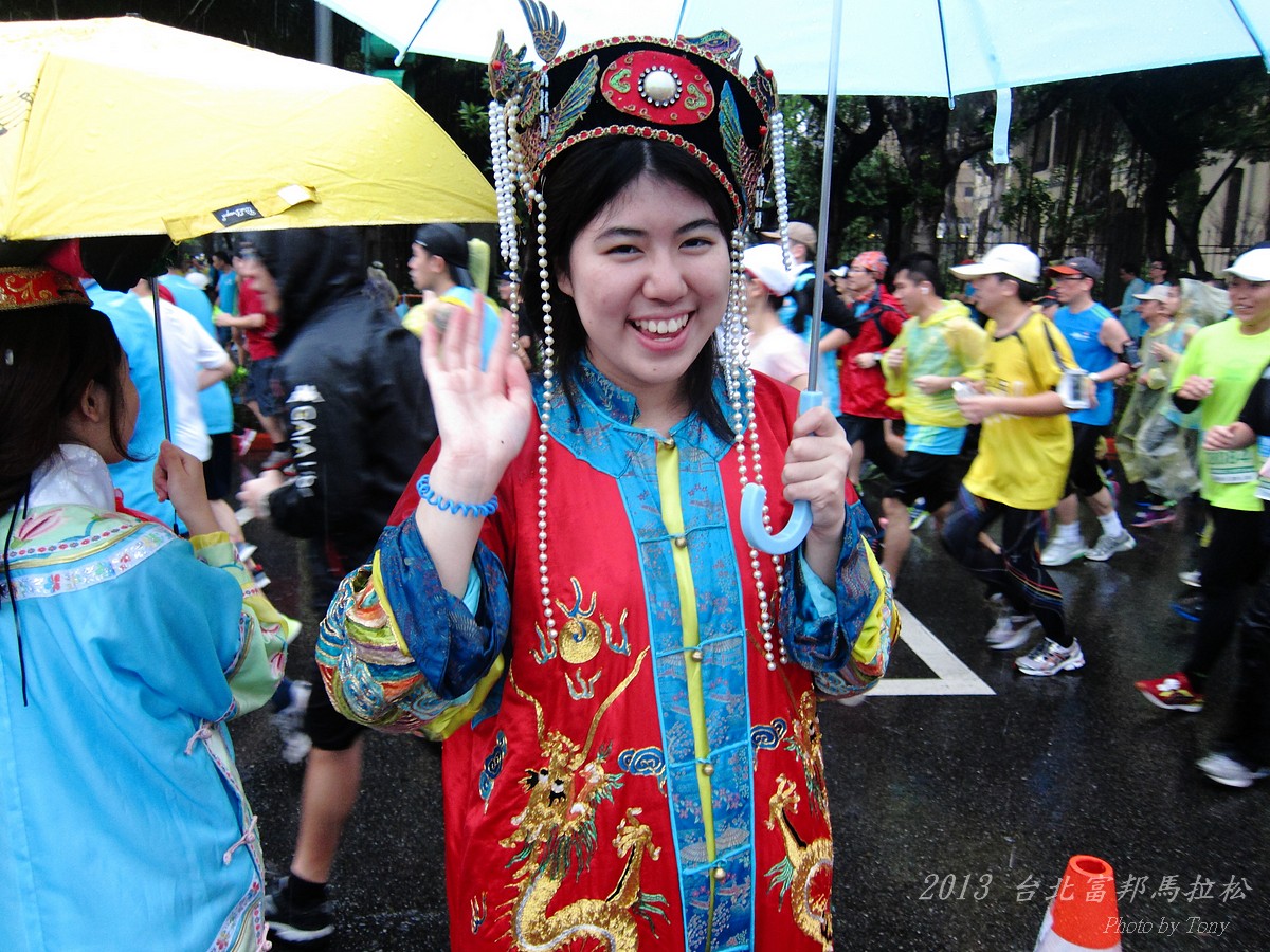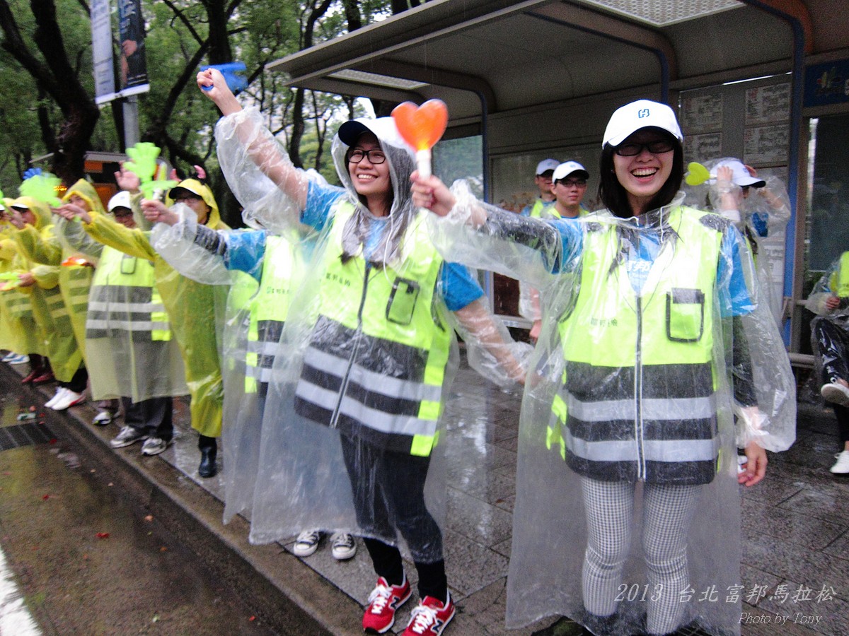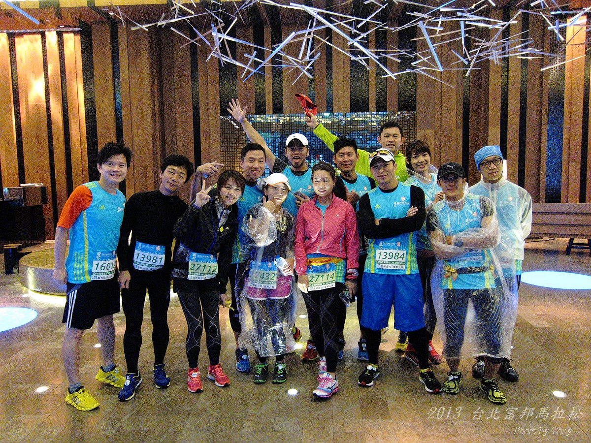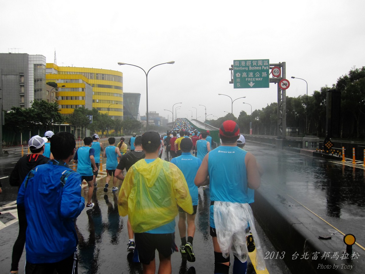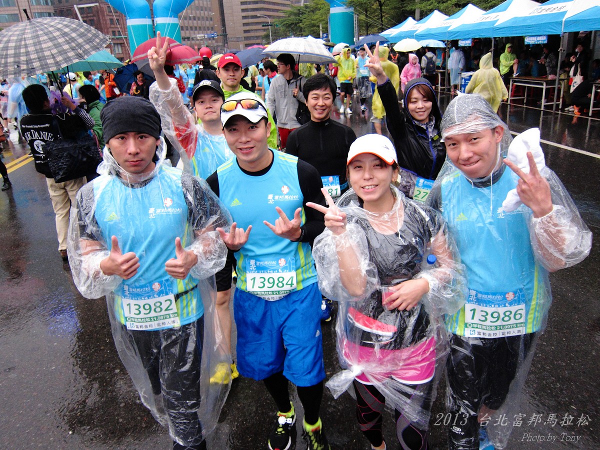 前一天看著天氣預報,心又涼了一截...降雨機率高達90%..Orz 上次太馬已淋了二個小時,我看這次又差不多了XDD 一早來到W和大家集合 因為起床太晚,只得匆匆吃了二個巧克力餅干就準備往市政府集合出發!! 又糊塗的忘了帶一包能量包,只好先和外星人小頡先借一包來放!! 雖然天空下著毛毛雨,但心情卻是熱的... 人也多到爆,擠了13分鐘才出計時拱門,一開始出發的選手都已跑到圓環去了~~XDD 且~~才出發就和大家擠散... 好吧~就慢慢跑吧~ 出發時二旁不乏加油的民眾,先來拍幾張~ 跑個1K~右邊出現了熟悉的聲音~(NATSUMI的笑聲~~) YA~~居然遇上NATSUMI了~ 趕緊過去和大家集合拍個照!! 然後路邊再拍個二張之後...大家又不見了XDD 好吧~遲早是要分開的,就按自己的節奏跑吧~ 不過要按自己的節奏也很難啦,路雖然大條,但人太多,尤其我幾乎又是最後出發的,6分速就得一路超車了XDD 且加油的民眾有時在左邊,有時在右邊,要切來切去有時還有點辛苦啊!! 像是中山北路幾位辣妹,我就是來不及切..跑過頭再繞回去拍的XD 反正....專心跑,和拍照跑,頂多也差個10分鐘而已,快個10分鐘,排名一樣很後面,慢個10分鐘卻多了這麼多可以回憶的照片,我想...這是值得的吧:P 就這樣...一邊跑一邊拍,在下新生高架橋時,居然也被國棟給追上了,看來最近二次每次二小時的LSD特訓真的有用,抽筋棟終於要一雪前恥了~ 跑到忠烈祠前大約11公里,在這的補給站把能量包給吃掉,再喝個半杯舒跑後,繼續向前挺進!! 不過~~就在自己身體覺得愈跑愈順時..,左小腿突然傳來一點點刺痛...Orz 按之前的經驗,我知道我的腓腸肌又出問題了~~ 上週自己用5分半的速度練跑近15k都沒事,怎麼這次在13-14k就出現問題?? 我想..可能是上週的疲勞還沒結束,週三練跑時,好像又稍微有拉到~ 雖然經過三天的休息已沒什麼感覺了,但終究在13-14k後就顯現出來了!! 我看似粗壯的蘿蔔怎麼會這麼弱啊XDDD 路程都已跑一半了,就繼續跑吧~ 降點速讓爆掉的時間延緩大爆發發作!! 就這樣撐到環快上面,雖然只剩2-3KM,但看見補給站還是去喝個水,喝個餅干和香蕉 再到護理站去噴個肌樂!! 沒多久就看到全馬的前導車從後方開過來了 哇塞,第一名回來了,肯亞的喬瑟法·傑可波(Josphat Kamzee Jepkopol)從我身邊飛快的跑過,超強的啦~~ 最後出了基隆路的地下道,只剩最後1KM,大家也都加速了起來,突然被一個小個頭女生刷卡而過,又激起我的鬥志,雖然蘿蔔痛,但還是要看一下刷我卡的是那位女生,努力的用5分速跟上去,只敢拍個背影,不好意思拍正面...XDD,最後200公尺,她再度加速...,我為了要拍照,只好目送她遠離XDD!! 這次成續2:09"15,比太馬退步了一點點~ 我想..照片拍的比較多一些,再加上蘿蔔痛是最大的主因~ 不過這成績我是覺得還可以了啦,蘿蔔痛才是我在意的~(經過一天的休息、冰敷、上小腿套再貼上撒隆適布後,情況已好轉很多~) 未來~我看~得多加強我的蘿蔔訓練才行!! 這次台北富邦,本想希望看能不能請老婆帶著兩隻小鬼來終點幫我加油~ 但這雨實在太大~~ 只好看看下次有沒有機會了!! ^__^ 距離: 22.22 公里 時間: 2:09:15 平均步速: 5:49 分鐘/公里 平均心率: 162 bpm Avg Run Cadence: 180 spm Avg Vertical Oscillation: 7.3 公分 Avg Ground Contact Time: 245 毫秒 Avg Stride Length: 0.95 公尺 衣保袋一個100元,很大,可以裝很多東西,不過不防水,這種天氣自己的乾衣服要用塑膠袋再包起來!! 為了富邦馬,第一次搭信義線捷運!! 捷運提早發車,許多人都搭捷運來市政府前集合!! Go Fun 準備集合出發了!! 原諒我的小相機在燈光不足下的效果實在....Orz GOGOGO~~(KT你終於出現在我的相機裡了!!) 我們還沒出發,前面的己經跑到仁愛路圓環了!! GO~出發!!(大家都不見了XD) 後面的無臉人是怎麼回事XDD YA~~撿回Go Fun隊員--林庭瑄 這次進步超多的果凍~ 撐到9K還是ITB的WES~XDD 賽完以為自己破PB的NATSUMI~:P 看到相機就瘋了的大家XDD 讚讚讚~~有觀眾加油真的跑起來比較有力!! (這裡才不到3K~當然很有力~:P) 也有視障者加入,毅力讓人佩服!! 加油~加油~ 加油~加油~ 斯巴達出現了~ 空姐出現了~~ 熱情的民眾~ 格格也在總統府圓環出現了~~:P 就是這幾位辣妹~讓我沒破PB的~ 阿姨加油~辛苦了!! (晴天的話很想多拍台北市風景,但下雨一片霧茫茫..只好多拍加油的民眾!!) 全馬半馬在這裡要分開了(分開後..人還是一樣多XDD) 雖然下雨,但還是滿滿的人潮!! 經過忠烈祠了!! 白蘭氏這幾位加油的美眉真可愛^O^ 這二位穿著白西裝和小禮服來跑步,好猛啊!! 要上快速道路了!! 折返點到了!!終點不遠了! 半馬靠內跑,因為...第一名要來了!! 第一名回來了,肯亞的喬瑟法·傑可波(Josphat Kamzee Jepkopol)從我身邊飛快跑過,超猛!!一下子就不見了~~ 大家幹嘛這麼HIGH~ 因為地下道上頭有攝影師啦!! 就是這位妹妹,最後1K把我刷卡了XDD 終點到了!!終點到了!! 2小時23分抵達!! 我的眼鏡起霧了!! (難怪一片霧茫茫 XDD) 排隊領毛巾和獎牌!! 跑的時侯不會冷,一停下來就覺得冷了! 大家紛紛把大毛巾給披上!! 我的晶片沒有去退還,就捐給罕見疾病基金會了!! 獎牌的質感還不錯~(但我拍的背面去了XD) 坐在角落竊笑的小花 恭喜林庭瑄完賽 Go Fun大集合~ 回家前撿到外星人小頡,以3:39完賽,真是太強大了!! -------------------------------------------
