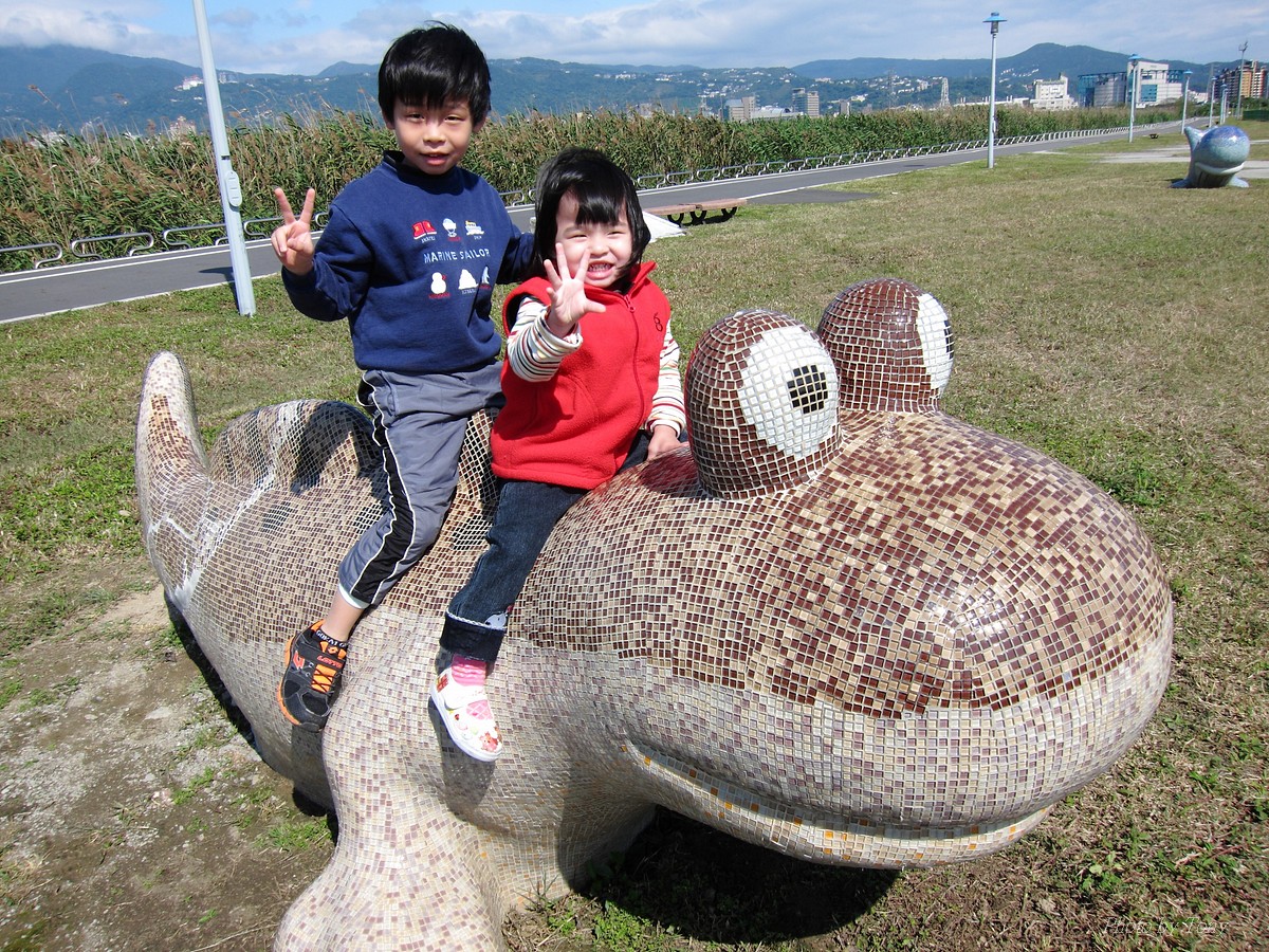 冷了二個星期,終於來個豔陽天~ 且真的是不冷的好天氣!! 努力把三台單車塞進後車廂 來去河濱騎單車去~ 本想騎到關渡去,不過這對於小羊和小羊妹實在太遠了點!! 不過騎到快到社子島..來回有12KM,對小羊來說也不錯了啦! 下次繼續加油!!