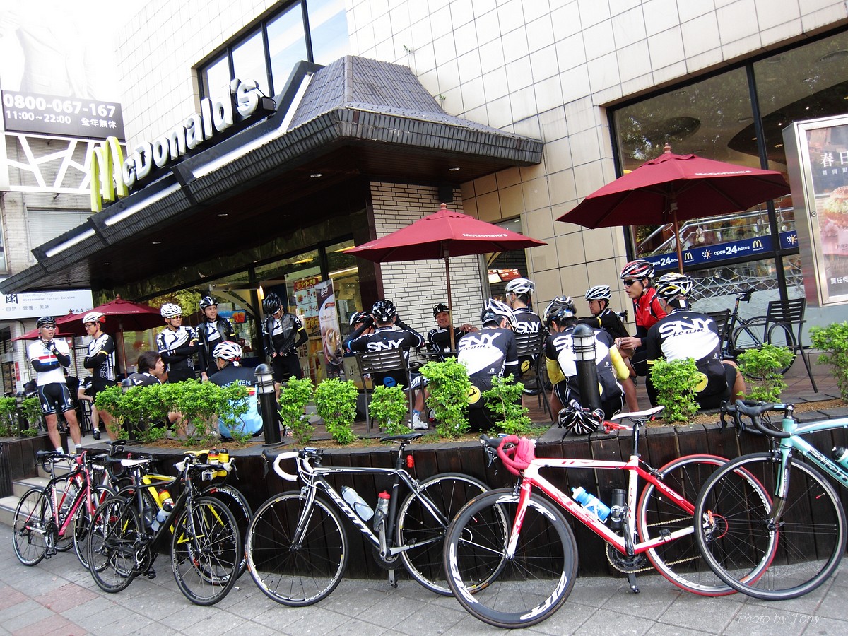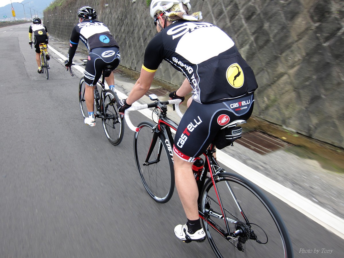 上週的平溪是累翻,這週的金山來回就是累爆了~ 怎麼爆??騎到兩隻大腿都幾乎抽筋還爆心跳..Orz 雖然和山羚羊(sny)主集團實力差距很大,但因為平路速度愈快時,前頭破風所需要花費的力氣就大很大,因此平路時,藉由躲風還可以勉強跟上主集團!! 不過往金山路上從登輝大道開始就算是起起伏伏的丘陵地型,雖然不是大陡坡,但一開始的2km緩坡,就讓我心跳直上185..還是跟不上主集團,要不是前面被紅燈擋住,我想..在那就被海放了!! 不過被海放也是遲早的事,受不了之後幾個緩坡的折磨,還不到三芝前就放棄了~ 還好艾大從後方把我撿起來,跟著他繼續往前進,之後在三芝集合落後的車友,集合成另一個落後集團輪流破風繼續往前,不過後半幾乎都是金TONY出來幫忙擋風,不得不說,平平叫TONY,實力還差真多XDD 原本到了金山是要翻陽金回家的,不過看著陽明山山頭被雲霧包著,加上腿力也不濟,和stone商量之下,還是騎原路回去,而艾大這次狀況不好,來的時侯在十八王公段就大腿抽筋,所以決定陪我們一起騎回去,順風加上平路,在來到石門前的平路都還騎的十分順暢,不過一開始進入丘陵地後,不爭氣的大腿就爆了...,只能龜速前進,最後拖到12點多才回到紅樹林站,回到家都一點了啊啊啊...Orz 2014-03-23 操爆了的金山來回軌跡