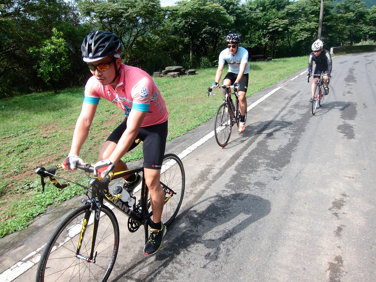 這天半夜下起大雨.. 原以為大家會停損 沒想到RYAN早上6點就從家裡出門 雖然地上有些溼溼的,但氣象預報是說天氣狀況會愈來愈好!! STONE隊長的車剛送大保養回來,不想搞的髒兮兮的,那就由我去和大家集合吧~~ 不過才出門就看到遠方升起的太陽,嗯~~天氣應該是不錯的啦。 今天不僅來了RYAN,還有MARCO也來了,最令人驚喜的是小豪出現了!! 出發到汐平路口前小豪都騎在最後,有時還會落後一小段,反而是RYAN在新台五線的緩坡都跟的緊緊的,讓我對RYAN的體力有些訝異,對於一陣子沒騎的小豪體力也有些懷疑,真的有退步這麼多嗎?? 而轉進汐平之後,沒多久小豪就衝到最前面了..,剛才果然是...在熱身啊,想當年小豪P字賽可是有4小時內的實力,就算一陣子沒動,實力還是相當堅強的,不過RYAN在連續上坡上就沒辦法再像剛跟的那麼緊了,畢竟車不是自己的,也沒那麼常騎,長時間的爬坡肌力是沒辦法一下子就有的~ 運動沒有天才,就是看有沒有足夠的練習量 當然,有足夠的練習量的,進步卻有限,這就要看看訓練的方法對不對了, 不過一週只有一次到二次的我,連量都沒有..,就不用什麼訓練菜單了XDD 下到平溪,按慣例是要帶大家去吃豆花和香腸的~ 因為今天只爬一個山頭,回程就再請小豪帶我們走深南路(南深路?反正就是南港直接通往深坑的路),深南路的頂點不高,但還是有約2.6km的坡要坡,所以也算是有小小爬到坡啦~ 最近得知大鳥哥也借了一台同事的公路車了~ 我想這個夏天應該會愈來愈熱鬧了!!:) 2014-04-27 汐平+深南路軌跡