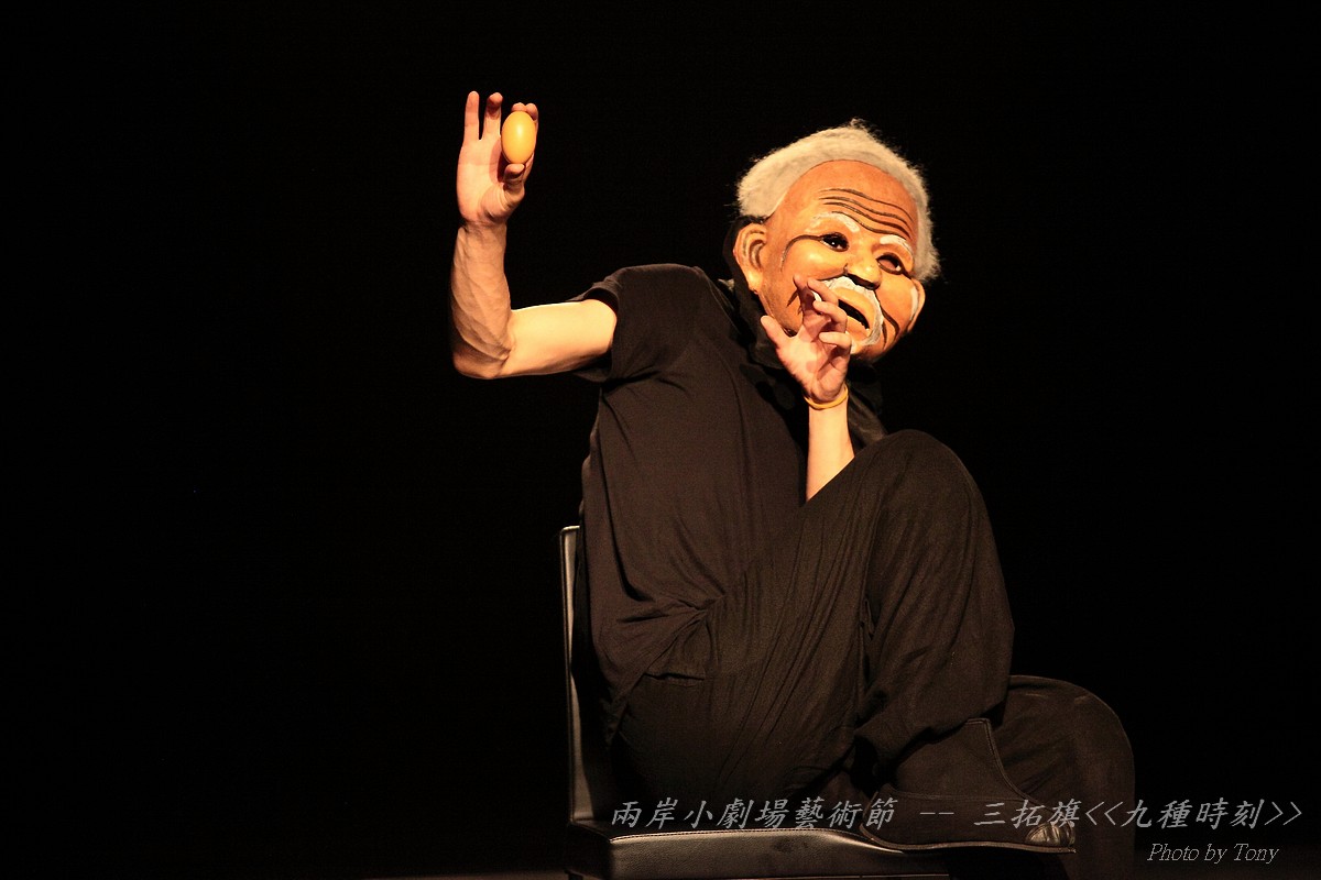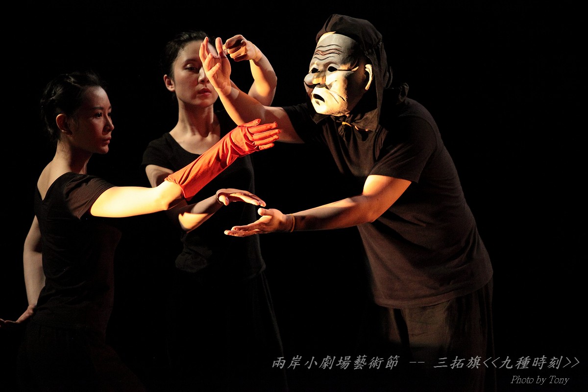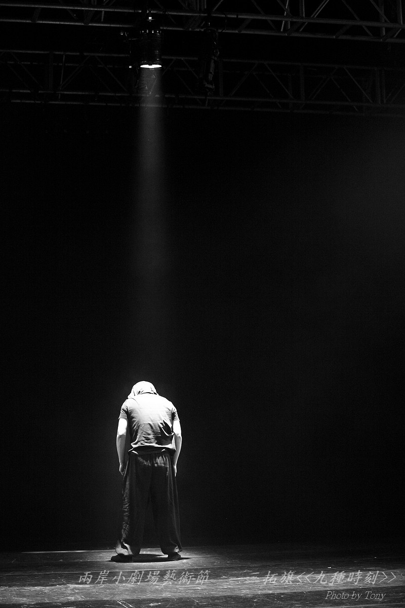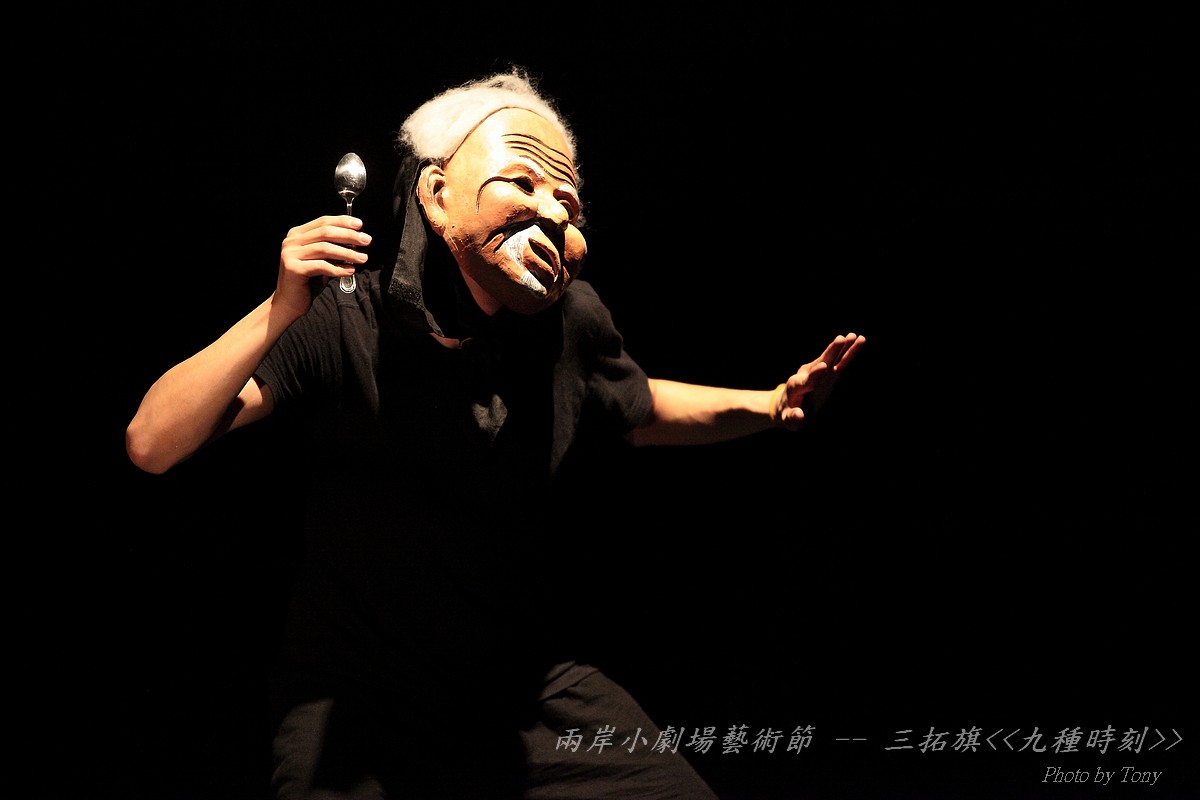 北京三拓旗在2013年來表演的「水生」令我印象十分深刻,所以今年再來台演出「九種時刻」時,就讓我十分期待~ 老實說拍攝這一場時,我...看不大懂,有點失落XDD 但對於幾幕影像和演員的肢體手法還是十分讚嘆! 隔天,我決定放下相機好好用心再看一次 而演出前透過PEGGY的介紹也和三拓旗的導演趙淼小聊了一下,他說這劇改編了很多次,以前較偏向「現代舞」的方式,而且以往演員們都沒有載面具,這次是第一次嚐試這樣的表演,每個故事的主角都戴上面具來詮釋。 「九種時刻」不像「水生」就是去描述一個完整的故事,他表達的是一種現象,所以我看到是什麼,就是什麼..,也不用特別去要了解或是懂得導演想要表達的意念,不拘泥一定看的多懂多了解後,吸收的反而更多!! 而戴上面具的主角和其它臉部表情生動的演員,呈現了強烈的對比,我覺得是一個很好的手法,也有很好的效果!! 劇後我問老婆說比較喜歡「水生」還是「九種時刻」,老婆說二齣戲很不一樣,很難比。 的確,很難比...,兩種類型不太一樣!! 但都好看!! PS:第一次心中有太多疑問,所以不少時間快門沒按下去,再看第二次時,覺得第一次拍的錯過不少畫面,採排想拍的好,事前還是得多了解過才能拍的比較好啊!! 裡面的演員中,我最喜歡史妍,肢體和臉部表情真的超棒,我想我現在是她的小粉絲了:P ------------------------------------------------------- 網路上搜尋到這篇心得我覺得說的很好,給大家參考看看!!(因為我很不會說心得XDD) 心得 三拓旗劇團《九種時刻》by Shinoro 節錄一小段 「「如果我們都正在逝去,如果這首詩就是我要失去的全部,我們豈不是都該感傷?」 戲結束後、和導演結束對話後,心底響起了鯨向海的這首詩句, 以「失去」為命題。 雖然我也得承認這齣劇我沒能百分百看懂。 直到整齣戲過了三分之一,我才找到對我而言最適合觀賞這齣劇的角度, 無須過於執著意義、無須過於勉強自己將所見的一切轉化為文字, 只要相信自己的直覺、相信自己想像與所接收到的,就夠了。 無須套用過去看戲的種種習慣, 因為這是完全不一樣的戲,跳脫語言的框架、融入有如現代舞般的意念,形體戲劇。」
