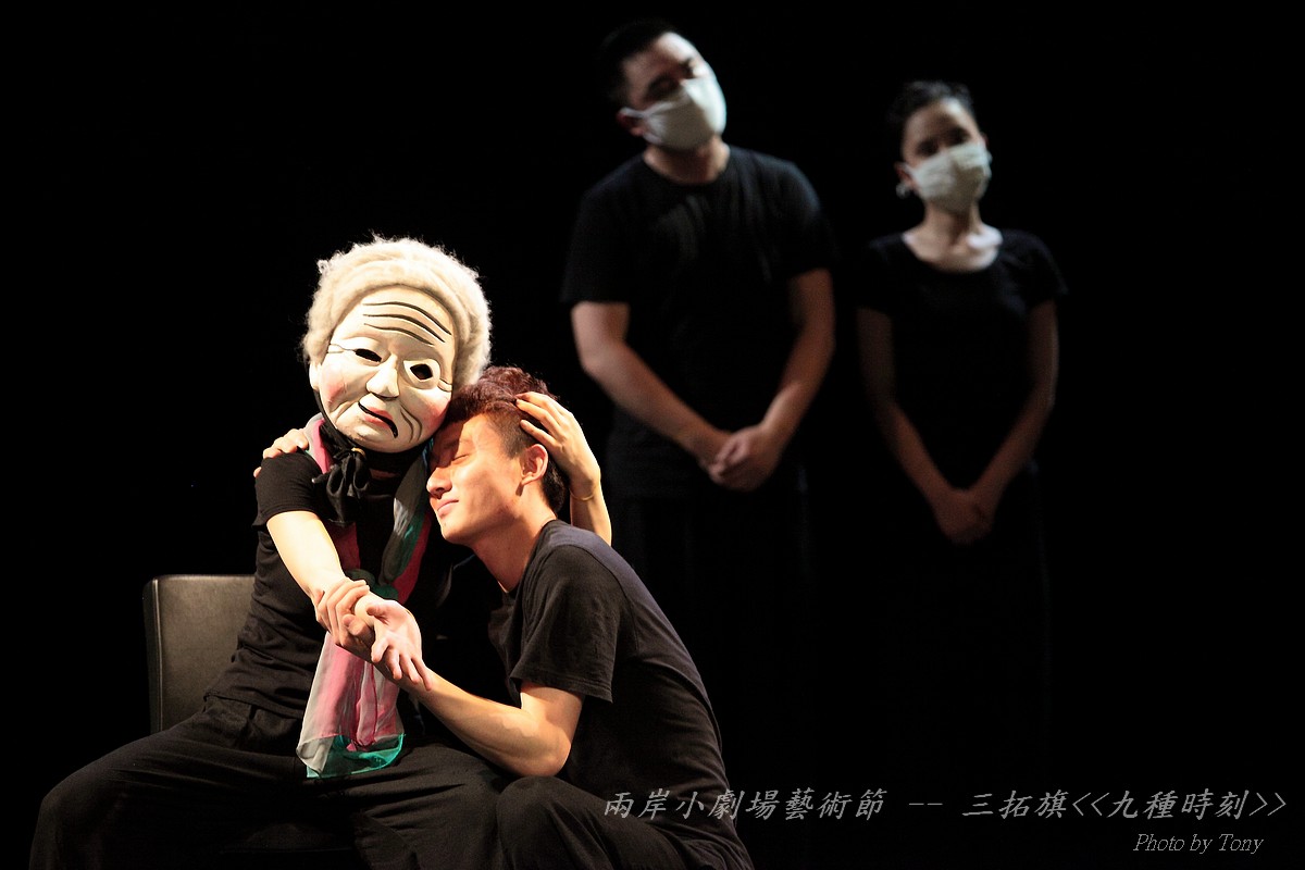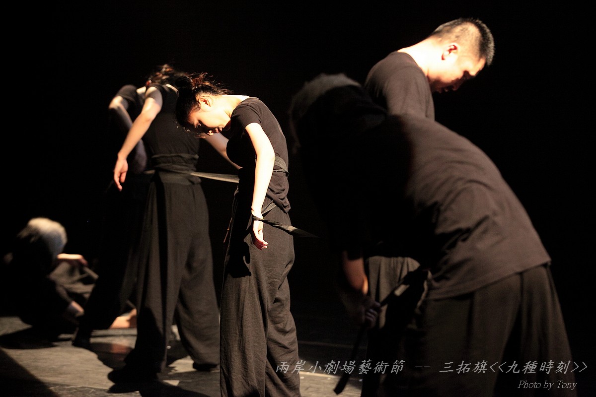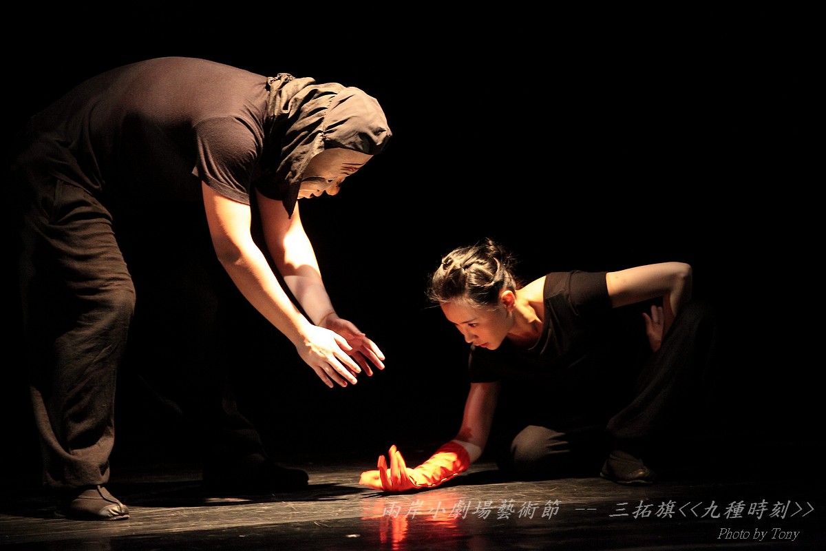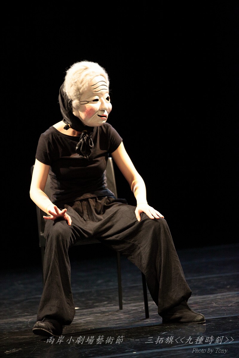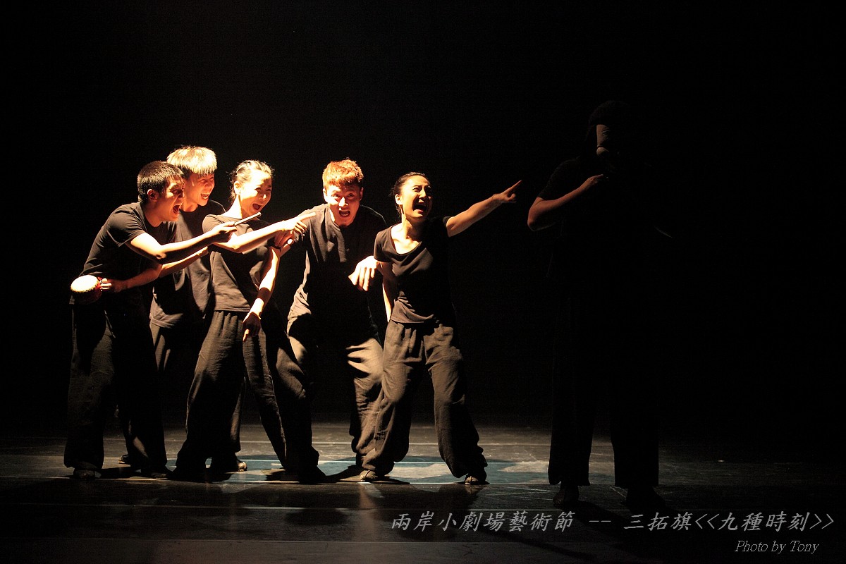 北京三拓旗在2013年來表演的「水生」令我印象十分深刻,所以今年再來台演出「九種時刻」時,就讓我十分期待~ 老實說拍攝這一場時,我...看不大懂,有點失落XDD 但對於幾幕影像和演員的肢體手法還是十分讚嘆! 隔天,我決定放下相機好好用心再看一次 而演出前透過PEGGY的介紹也和三拓旗的導演趙淼小聊了一下,他說這劇改編了很多次,以前較偏向「現代舞」的方式,而且以往演員們都沒有載面具,這次是第一次嚐試這樣的表演,每個故事的主角都戴上面具來詮釋。 「九種時刻」不像「水生」就是去描述一個完整的故事,他表達的是一種現象,所以我看到是什麼,就是什麼..,也不用特別去要了解或是懂得導演想要表達的意念,不拘泥一定看的多懂多了解後,吸收的反而更多!! 而戴上面具的主角和其它臉部表情生動的演員,呈現了強烈的對比,我覺得是一個很好的手法,也有很好的效果!! 劇後我問老婆說比較喜歡「水生」還是「九種時刻」,老婆說二齣戲很不一樣,很難比。 的確,很難比...,兩種類型不太一樣!! 但都好看!! PS:第一次心中有太多疑問,所以不少時間快門沒按下去,再看第二次時,覺得第一次拍的錯過不少畫面,採排想拍的好,事前還是得多了解過才能拍的比較好啊!! 裡面的演員中,我最喜歡史妍,肢體和臉部表情真的超棒,我想我現在是她的小粉絲了:P ------------------------------------------------------- 網路上搜尋到這篇心得我覺得說的很好,給大家參考看看!!(因為我很不會說心得XDD) 心得 三拓旗劇團《九種時刻》by Shinoro 節錄一小段 「「如果我們都正在逝去,如果這首詩就是我要失去的全部,我們豈不是都該感傷?」 戲結束後、和導演結束對話後,心底響起了鯨向海的這首詩句, 以「失去」為命題。 雖然我也得承認這齣劇我沒能百分百看懂。 直到整齣戲過了三分之一,我才找到對我而言最適合觀賞這齣劇的角度, 無須過於執著意義、無須過於勉強自己將所見的一切轉化為文字, 只要相信自己的直覺、相信自己想像與所接收到的,就夠了。 無須套用過去看戲的種種習慣, 因為這是完全不一樣的戲,跳脫語言的框架、融入有如現代舞般的意念,形體戲劇。」