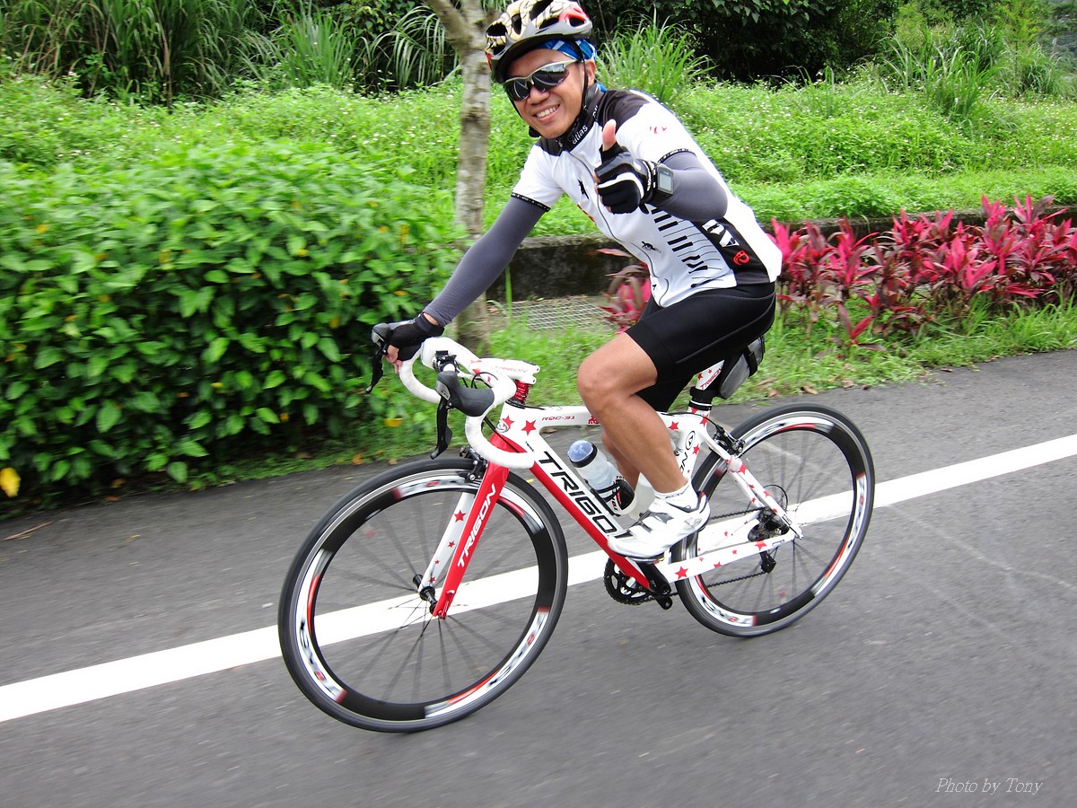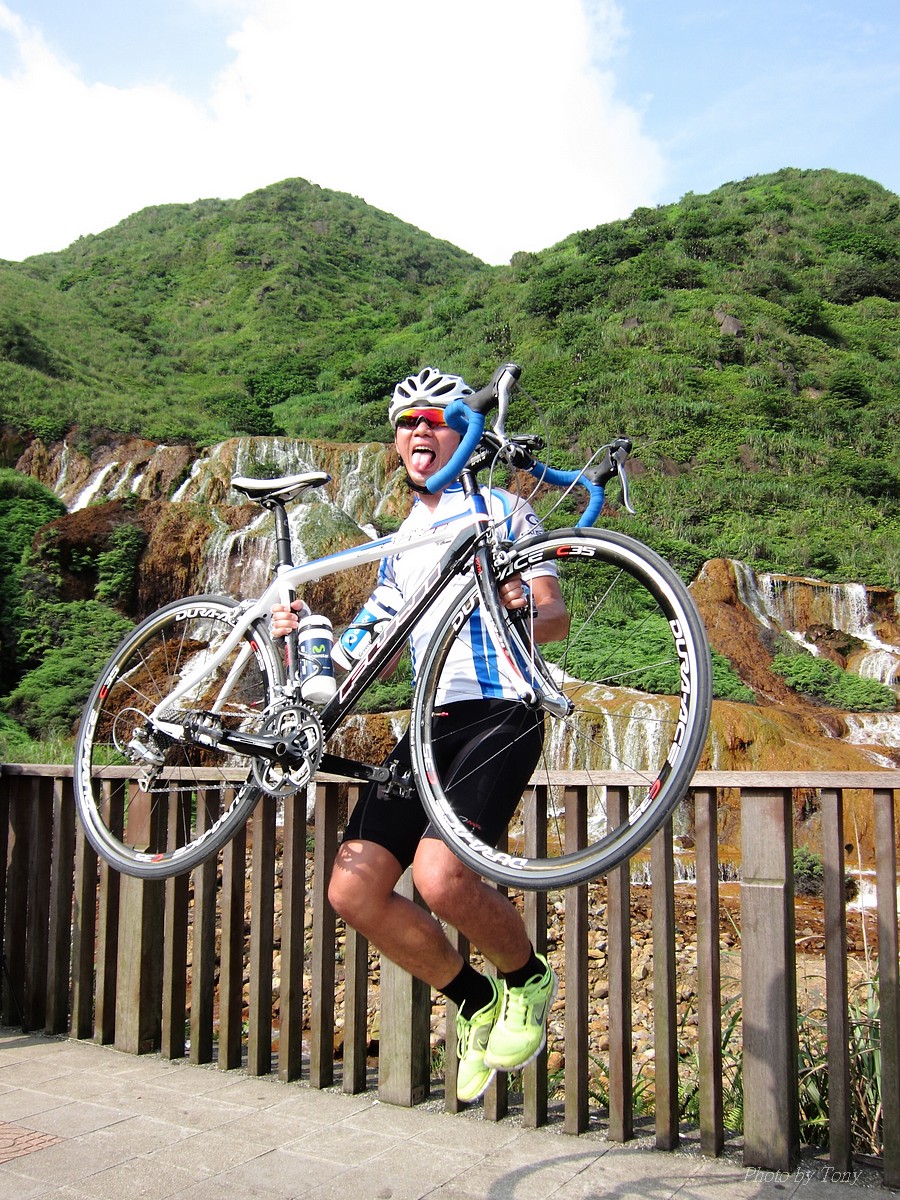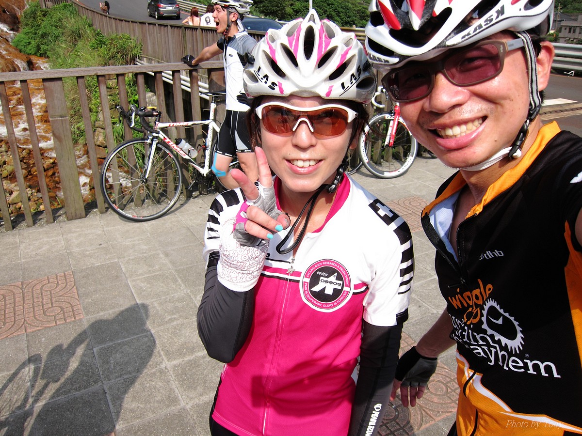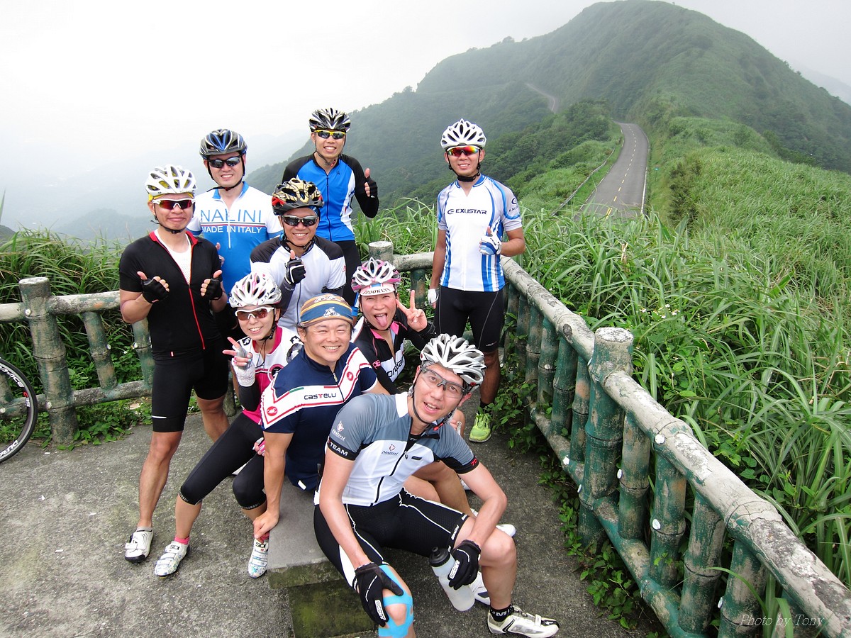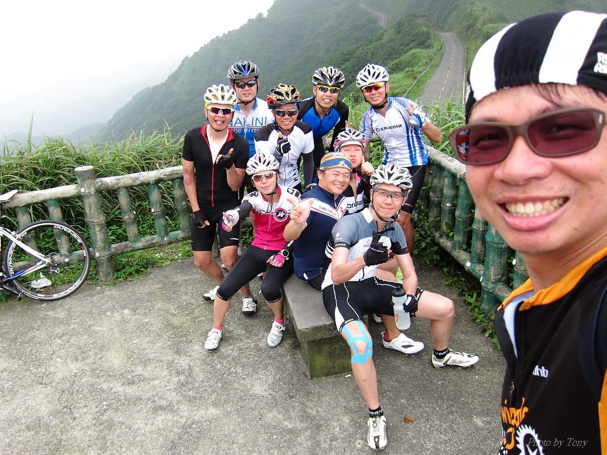 從那裡跌倒就從那裡爬起來~是我才和國棟說的話:P 二年前SNY發起來從水金九上不厭亭團騎.. 不知死活的我被STONE帶去~ 那是第一次和山羚羊團騎.. 還沒上黃金瀑布,我的腿就..抽筋了!!Orz 一個月後又被小猴海放.. 好吧~~真的不好好練一下不行了!! 那時我都說STONE隊長好強.. 隊長都說他很弱.. 我說你很弱..那我..?? 「超弱~~」 當隊長的都是不客氣的直來直往的~~ 努力了二個月,隊長說..有從1.0版升級到1.1版的感覺 從超弱變很弱~~ 10月再將老鋼管升級成SCOTT卡蹦車,實力從很弱晉升到「弱」,反正怎樣都逃離不了「弱」這個字,是說...平常若遇上久久騎一次的車友,石頭車隊的實力好像還不錯,但遇上SNY這種車隊,五分鐘後,就看不到主集團的車尾燈了!!>"< 以這條路線一直被隊長說成是我的雪恥路線~ 研究一下路線,一圈大概110KM,不厭亭標高約600公尺,嚴格說來並不難,就是距離遠了點而已!所以..若要中午就回家,得早早出門,所以遲遲開不了團= =" 這次由POKI先開口~~ NATSUMI也說有興趣 伯儒、PETER、LEO也紛紛表態說可以.. 那就開團吧!!GOGOGO~~ 結果~一早伯儒率先在內湖迷路,耽誤了20分鐘才出發~ 還好約的早,要再趕去106終點和POKI四人組(還有NATSUMI和家豪)會合還可以~ 不過到了暖暖因為我帶錯路~~再加上LEO的車用碼錶又表演跳車自殺,又耽誤了一小下,還好最後沒讓POKI幾人等太久~~ 大家集合好就先往黃金瀑布出發~ 從濱海上黃金瀑布的陡坡,算是一開始的震憾教育,不過就幾百公尺,撐一下就到了!!但大家看到黃金瀑布的美景也覺得值得了啦~~ 但從黃金瀑布到九份這段路,也都不緩...,加上太陽大,騎起來真的有點辛苦!! 而九份到不厭亭這一段就平緩許多~~ 本來心跳想壓在170以下順順騎就好..可惡的LEO就硬要上來挑釁一下,挑釁我就算了,在伯儒面前挑釁他就太傻了,一個轉彎後馬上加速,我的心跳就直上180才能跟住...真是太累了!!是說這次能跟的住伯儒的原因是...他前一天早上跑8K~然後晚上去游泳,今天本來是要來排乳酸的,沒想到被LEO給打亂~~ 還好這一段路不遠,還沒爆掉前就到了不厭亭~ 今天天氣好熱~但坐在不厭亭裡風好大好涼~~好舒服!!可惜天侯不好,能見度不佳...>"<... 等到POKI四人組上來後,來個大合組,我們就要先來趕路啦~ 這次不從九份下去回家,要下雙溪走十分平線回家~ 沒想到伯儒在下坡時輪胎鎖死打滑而破胎,還好人沒什麼事!!算是不幸中的大幸 >"< 從雙溪到十分還有一段緩上坡,LEO率先出來破風.. 嗯~~LEO今天都裝死,看來存了不少力氣,多讓他帶點好 所以他唉唉叫有沒有人出來輪車時,我頂多到前面拍個照又躲到後面去了:P 只是沒想到..伯儒就去幫他頂風了 雖然伯儒精神還處在驚嚇狀態,但體力還是很OK的~ 一路就很順的上了平雙隧道,追都追不到...>"< 騎了這麼一大圈,終於到了平溪 平時不用排隊的香腸,這次排了20分鐘才買到= =" 下次還是要早點到好!! 回程時,想說大家一起慢慢騎下坡就好~ 沒想到LEO和PETER二個還是按奈不住就衝出去了... 唉...二個體力怎麼會這麼好,是裝金頂電池嗎?XDDD 出發前我和大家說這次算郊遊、休閒行程.. 益成直說我終於了解所謂郊遊、休閒是怎麼一回事了~ 大家看看照片,有景點就停~也去了平溪吃美食 若是一般精實車隊那會這麼優哉... 所以我們這個稱為郊遊、休閒行程..,一點都不為過啦!! 只是難免有些兔子就愛衝~ 這就不是Tony能控制的啦!!:P 2014-06-01 不厭亭軌跡 這種長距離的行程,難得能有6個人出現~ PETER的新車衣真的看起來有瘦的FU~ 觀光客模式啟動 :P 這次伯儒是出來排乳酸的,所以還有機會拍到他:P LEO小鋼炮愈來愈強了.. 年輕人陳大鼓穿個慢跑鞋就來和大家尬了!! 好帥的碰~ 這次被操慘的益成,下次應該不敢二個月都沒練習了:P 大家都騎上來囉!! 美少女幹嘛扁嘴~~扁嘴還是騎上來了啊:P 不過不得不說從濱海轉上來這一小段真的有操~~ 大合照來了:P 這美麗的彎道,是很多風景攝影師會來取景的地方:) 霧茫茫的不厭亭T___T 不厭亭是遠不是難~沒騙大家吧!! 若從106接102上不厭亭,我覺得難度更低說~ 不過水金九那段路真的值得一騎!!很漂亮~~就...熱了點XDD 我為什麼有小猴上身的FU~XDD 今天最美味的大蒜香腸..好好吃啊!! 再配上冰豆花~~爽!!!!