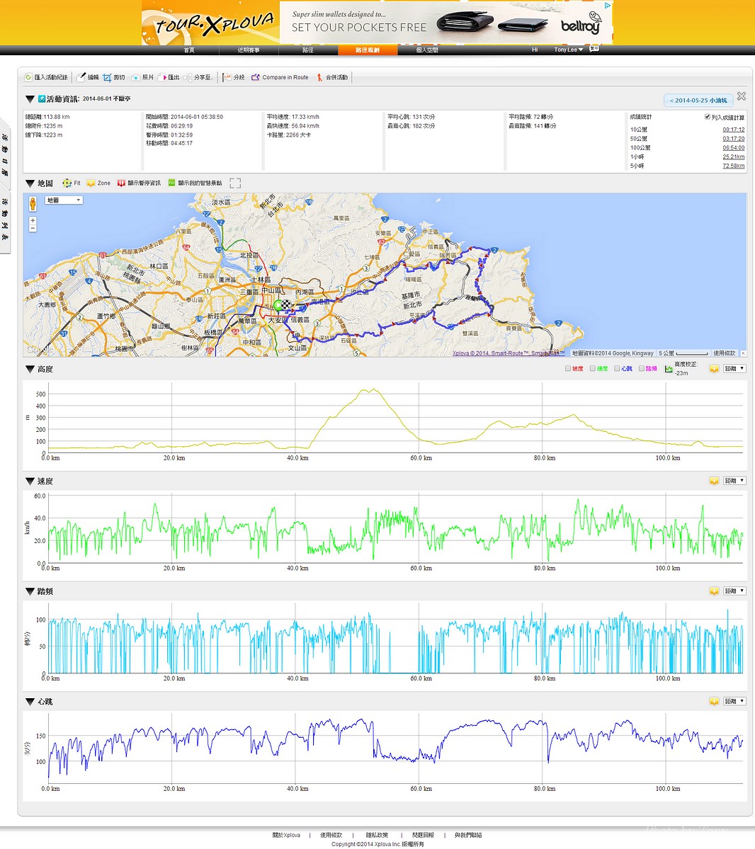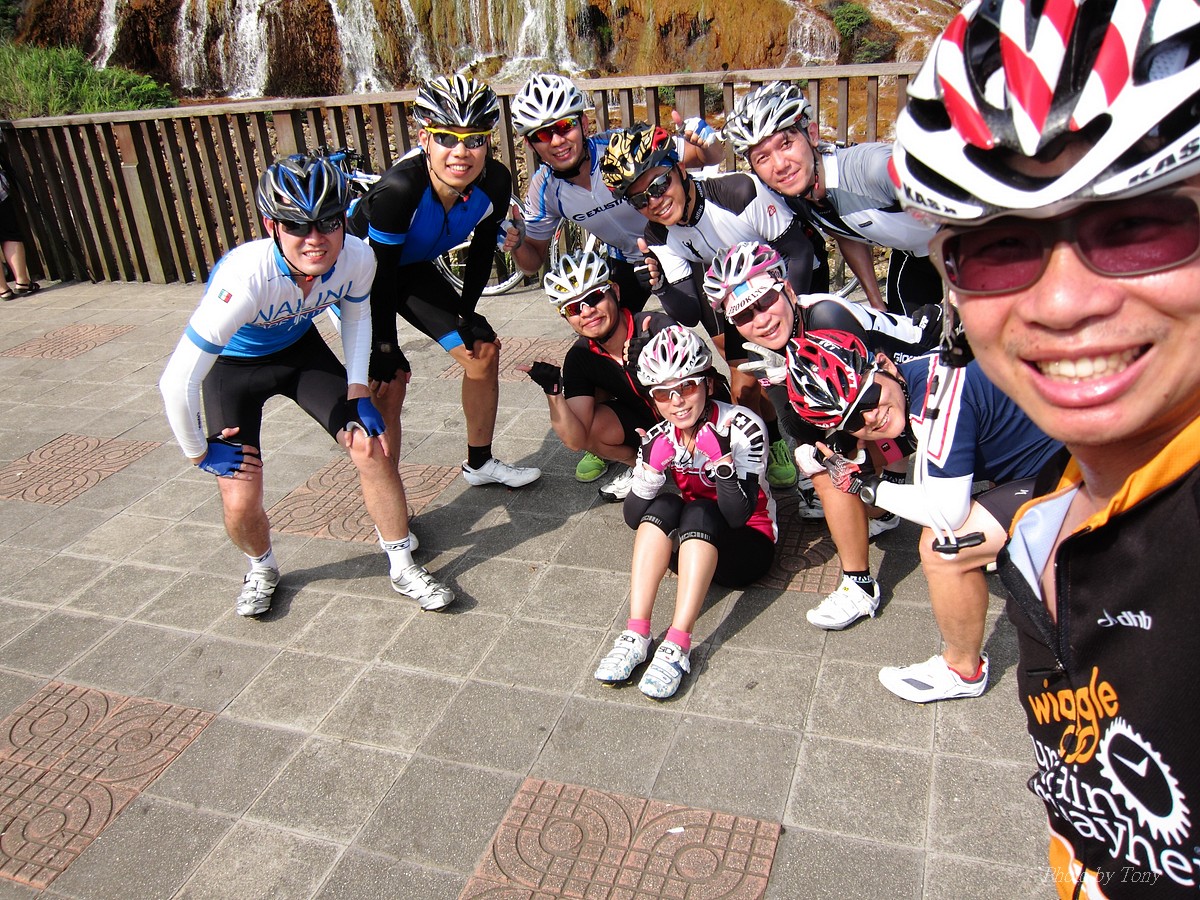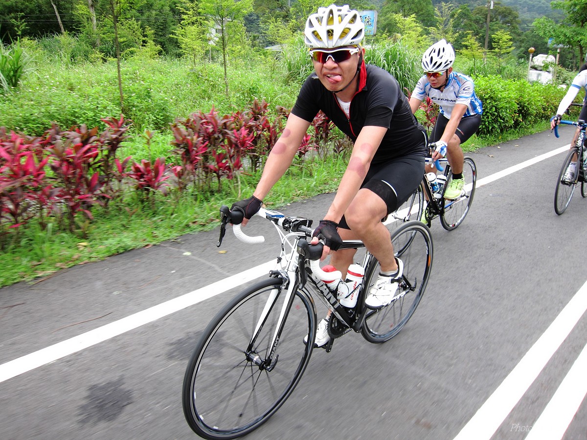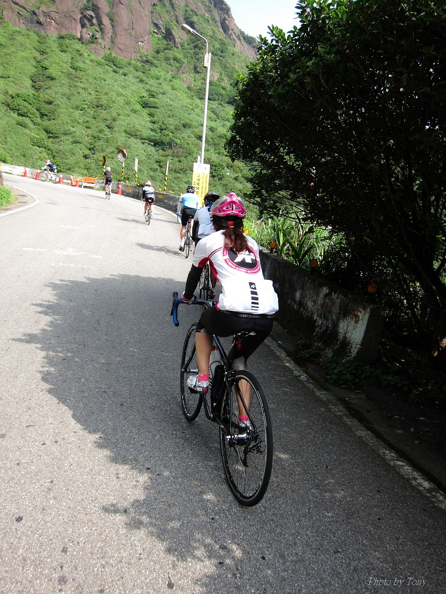 從那裡跌倒就從那裡爬起來~是我才和國棟說的話:P 二年前SNY發起來從水金九上不厭亭團騎.. 不知死活的我被STONE帶去~ 那是第一次和山羚羊團騎.. 還沒上黃金瀑布,我的腿就..抽筋了!!Orz 一個月後又被小猴海放.. 好吧~~真的不好好練一下不行了!! 那時我都說STONE隊長好強.. 隊長都說他很弱.. 我說你很弱..那我..?? 「超弱~~」 當隊長的都是不客氣的直來直往的~~ 努力了二個月,隊長說..有從1.0版升級到1.1版的感覺 從超弱變很弱~~ 10月再將老鋼管升級成SCOTT卡蹦車,實力從很弱晉升到「弱」,反正怎樣都逃離不了「弱」這個字,是說...平常若遇上久久騎一次的車友,石頭車隊的實力好像還不錯,但遇上SNY這種車隊,五分鐘後,就看不到主集團的車尾燈了!!>"< 以這條路線一直被隊長說成是我的雪恥路線~ 研究一下路線,一圈大概110KM,不厭亭標高約600公尺,嚴格說來並不難,就是距離遠了點而已!所以..若要中午就回家,得早早出門,所以遲遲開不了團= =" 這次由POKI先開口~~ NATSUMI也說有興趣 伯儒、PETER、LEO也紛紛表態說可以.. 那就開團吧!!GOGOGO~~ 結果~一早伯儒率先在內湖迷路,耽誤了20分鐘才出發~ 還好約的早,要再趕去106終點和POKI四人組(還有NATSUMI和家豪)會合還可以~ 不過到了暖暖因為我帶錯路~~再加上LEO的車用碼錶又表演跳車自殺,又耽誤了一小下,還好最後沒讓POKI幾人等太久~~ 大家集合好就先往黃金瀑布出發~ 從濱海上黃金瀑布的陡坡,算是一開始的震憾教育,不過就幾百公尺,撐一下就到了!!但大家看到黃金瀑布的美景也覺得值得了啦~~ 但從黃金瀑布到九份這段路,也都不緩...,加上太陽大,騎起來真的有點辛苦!! 而九份到不厭亭這一段就平緩許多~~ 本來心跳想壓在170以下順順騎就好..可惡的LEO就硬要上來挑釁一下,挑釁我就算了,在伯儒面前挑釁他就太傻了,一個轉彎後馬上加速,我的心跳就直上180才能跟住...真是太累了!!是說這次能跟的住伯儒的原因是...他前一天早上跑8K~然後晚上去游泳,今天本來是要來排乳酸的,沒想到被LEO給打亂~~ 還好這一段路不遠,還沒爆掉前就到了不厭亭~ 今天天氣好熱~但坐在不厭亭裡風好大好涼~~好舒服!!可惜天侯不好,能見度不佳...>"<... 等到POKI四人組上來後,來個大合組,我們就要先來趕路啦~ 這次不從九份下去回家,要下雙溪走十分平線回家~ 沒想到伯儒在下坡時輪胎鎖死打滑而破胎,還好人沒什麼事!!算是不幸中的大幸 >"< 從雙溪到十分還有一段緩上坡,LEO率先出來破風.. 嗯~~LEO今天都裝死,看來存了不少力氣,多讓他帶點好 所以他唉唉叫有沒有人出來輪車時,我頂多到前面拍個照又躲到後面去了:P 只是沒想到..伯儒就去幫他頂風了 雖然伯儒精神還處在驚嚇狀態,但體力還是很OK的~ 一路就很順的上了平雙隧道,追都追不到...>"< 騎了這麼一大圈,終於到了平溪 平時不用排隊的香腸,這次排了20分鐘才買到= =" 下次還是要早點到好!! 回程時,想說大家一起慢慢騎下坡就好~ 沒想到LEO和PETER二個還是按奈不住就衝出去了... 唉...二個體力怎麼會這麼好,是裝金頂電池嗎?XDDD 出發前我和大家說這次算郊遊、休閒行程.. 益成直說我終於了解所謂郊遊、休閒是怎麼一回事了~ 大家看看照片,有景點就停~也去了平溪吃美食 若是一般精實車隊那會這麼優哉... 所以我們這個稱為郊遊、休閒行程..,一點都不為過啦!! 只是難免有些兔子就愛衝~ 這就不是Tony能控制的啦!!:P 2014-06-01 不厭亭軌跡 這種長距離的行程,難得能有6個人出現~ PETER的新車衣真的看起來有瘦的FU~ 觀光客模式啟動 :P 這次伯儒是出來排乳酸的,所以還有機會拍到他:P LEO小鋼炮愈來愈強了.. 年輕人陳大鼓穿個慢跑鞋就來和大家尬了!! 好帥的碰~ 這次被操慘的益成,下次應該不敢二個月都沒練習了:P 大家都騎上來囉!! 美少女幹嘛扁嘴~~扁嘴還是騎上來了啊:P 不過不得不說從濱海轉上來這一小段真的有操~~ 大合照來了:P 這美麗的彎道,是很多風景攝影師會來取景的地方:) 霧茫茫的不厭亭T___T 不厭亭是遠不是難~沒騙大家吧!! 若從106接102上不厭亭,我覺得難度更低說~ 不過水金九那段路真的值得一騎!!很漂亮~~就...熱了點XDD 我為什麼有小猴上身的FU~XDD 今天最美味的大蒜香腸..好好吃啊!! 再配上冰豆花~~爽!!!!