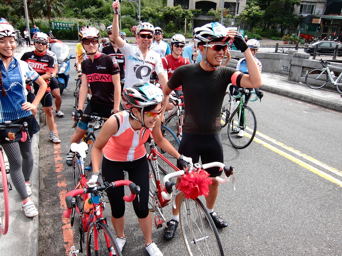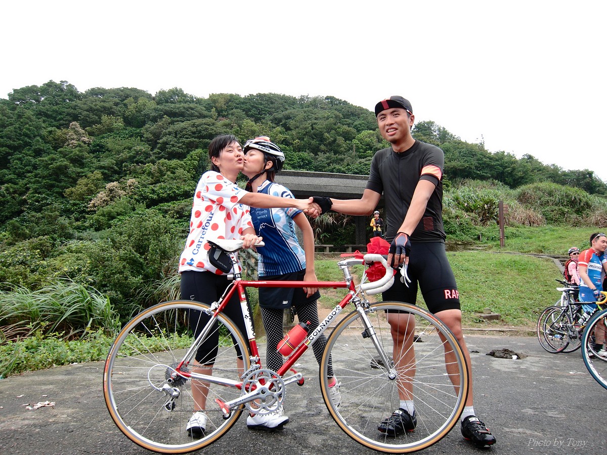 「決戰風櫃嘴」?? 和誰決戰?? 當然不是我啦~ 是花東賽認識的雄師女車友維屏和她同事啦~ 聽說故事是這樣的,維屏看上了同事「該邊」的經典可樂果..為了想佔為己有.. 就嗆聲要決戰風櫃嘴,輸的就要讓出可樂果~ 這個賭注對於男生可說是一點好處也沒有,但為了賭一口氣,這個賭注就約定下來了!! 之後就常看到維屏很積極的練車.. 看到她po中社的成績,真是嚇我一跳...16分,算是和我一樣了!! 這個速度對男生來說不算什麼~~(takuma桑騎ubike也可以騎16分..) 但對女生來說,16分算是相當快的時間了!! 不得不佩服這小女生的戰鬥力!! 不過決戰地點是風櫃並非中社,我也將之前騎風櫃的經驗和她討論!! 6km不長但也不短,依中社的成績來說,風櫃嘴會落在30分上下.. 風櫃嘴最陡的地方是在中間2.5-3.5k處.. 若前面2.5k衝太快,後面爆掉的機率就很大!!(過來人的經驗XDD) 決戰這天,雖然是私人PK,但因二位認識的車友眾多,現場也來了幾十位車友一同共襄盛舉,這天本想陪著他們一起騎.. 但因提早到了故宮,看到TAKUMA桑剛好要往風櫃嘴騎,心想有個伴一起上山也好,沒想到他們先到中社去「熱身」,這一熱還真是不慢...直接就破了我中社最快記錄Orz 光騎這段就快累死我了,再加上前一晚又踩了半小時的飛輪,這時真是一整個沒力了.. 風櫃這段就打算慢慢摸上去就好:P 沒想到一半路程時,遇到坐在一旁一臉痛苦的小D.. 本想說人家又不認識我,就這麼去幫忙好像怪怪的!! 但一轉念,還是回頭去看看怎麼回事.. 一問之下原來是..沒吃早餐!!胃抽筋了XDDD 嗯~不是摔車就好~ 休息一下,小D忍著胃痛,繼續往上騎...真是位勇敢的女孩!! 而維屏也以29分初的成績擊敗對手.. 不得不說真是太厲害了!! 有機會要糾來和石頭車隊約騎 大家皮繃緊一點吧:P --------------------------------------
