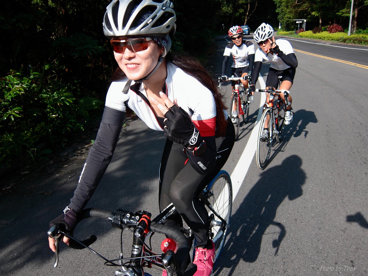 怎麼有這麼騎怪的路線.. 還不是隊長要陪三個孩子的媽--艾雪騎車才會生出這種路線~ 這天「正咩陪你吃早餐」的路線是劍中劍...真的是很無聊的路線..Orz 我開了三個精實團路線,沒人肯理我>"< 只好~~也乖乖來這報到!! 怕騎完中社已太熱,所以先一大早起來先去踩一下蛇皮哥的後院--碧山巖 上碧山巖一般有兩條路.. 一是從金龍路騎到底接內湖路再接金龍產業道路 另一條是從碧山路直上~ 聽說兩條都很陡.. 這次先挑金龍產業道路挑戰一下 果然...真的很陡,前3k~~很多10%以上的坡,動不動還來個15%~~ 實在是有累有喘~~ 好險事前有做功課,知道雖然距離短,但不能亂衝.. 所以一開始就用34/28T上山,雖然累,但還不至於會定竿!! 不過本來打算下碧溪產業道路下去至善路和大家集合~ 看看時間尚早,就從碧山路下到內湖去劍南捷運站和大家會合!! 話說艾雪運氣真的不錯,小小騎個劍中劍,石頭車隊來了4個人來陪騎!! 面子真是有夠大的~~ 不過騎完劍南路後,也不知那生出來的憨膽,居然想要不落地挑戰風櫃嘴,並且還要我們騎UBKIE和她比輸贏.. 我說艾雪啊..石頭車隊是不強,但也比一個牽車牽整路的阿斗強啊!!= =" 在中社和小頡、ARIEL會合後,大家一起上中社~ ARIEL真的看不出來是第一次騎公路車.. 輕輕鬆鬆就騎上中社,果然是全馬選手~入門很快!! 結束了中社,要加碼平等里.. 一臉錯愕的陳大鼓說..不是要吃早餐嗎? 咳~~你遇上詐騙集團的隊長了~ 他是說騎車騎到飽,從來沒有說要陪你吃早餐XDD 所以上平等這一路讓他騎的很痛苦:P 最後在平等里遇上追兵MARCO..加上LEO三人最後再爬個小坡,打算從仰德下山.. 最後一段真是被LEO小鋼炮給操死了 心跳拉到180多才勉強著上.. 這次LEO還是騎著板輪上山 下週新車到再加上爬山利器C24.. 我想...要等著被海放了>"< 2014-07-19 碧山巖+劍南+中社+平等里軌跡
