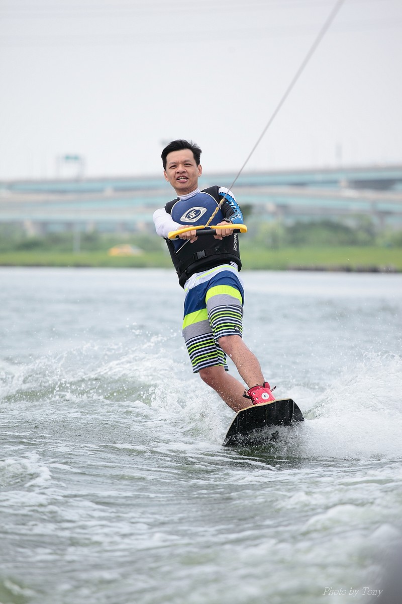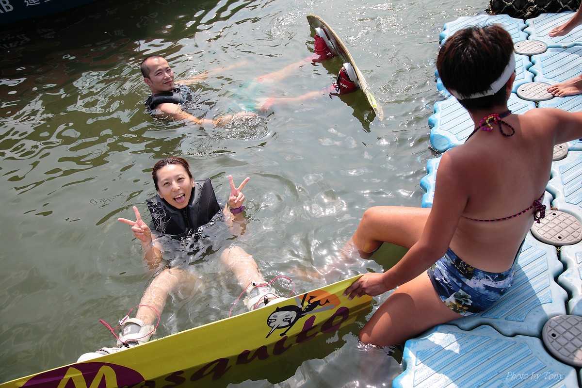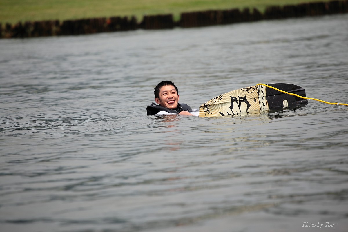 活動隊長PETER這次又糾團去滑水 老婆不想(敢)去..但還是淮我去體驗看看!! 去之前就看PETER之前形容的,初學者能站起來就不錯了~ 一次也只有短短的15-20分鐘,時間不長,要這麼快就抓到訣翹好像也不容易 一開始先在草地上練習要站起來的預備動作.. 重點是不要用力去抵抗拉力然後腰要打直.. 再來穿了救生衣和滑水板後就先下水練習翻身 因為一定會撲水或隨便亂摔~ 所以要練習從趴著轉回仰著~~(因為是從仰著的姿勢開始站起來的!!) 本來說小頡要當第一個,但不知怎樣~NATSUMI就當了先鋒 而我是第二個,就先在岸邊等~ 遠遠的看著NATSUMI只能蹲一下,到後來可以站起來(雖然站不久~) 但也是成功了!! 呼~~開始有點緊張了~~ 等會下水會是怎樣呢?? 果然前二次,沒多久就往後摔了!! 教練說~不是要往後躺,腰桿要打直,站在滑水板上就好了~ 嗯~~試了第三第四次...YA~~我可以站起來了耶!! 滑在水上的感覺還真不錯啊!!哈哈~~ 不過教練一個轉彎,我又撲水了!! 回來看看PETER幫大家錄的影像 還真是拙~~哈哈 二隻腿很緊張!!~~ 滑完水,沒想像中手痠腰痠大腿痠 PETER說..晚上OR明天就知道了!! 果然~~晚餐之後,二手就有點無力,但還不像之前玩攀岩那樣嚴重 而背後雙肩也開始痠痛,但大腿倒是沒什麼事,應該是因為有跑步有騎車的關係吧!! 沒用的NATSUMI隔天則說全身像被卡車撞到..哈哈哈,真是笑死大家了!!:D 下次開團,再問問老婆要不要一起去體驗看看:D
