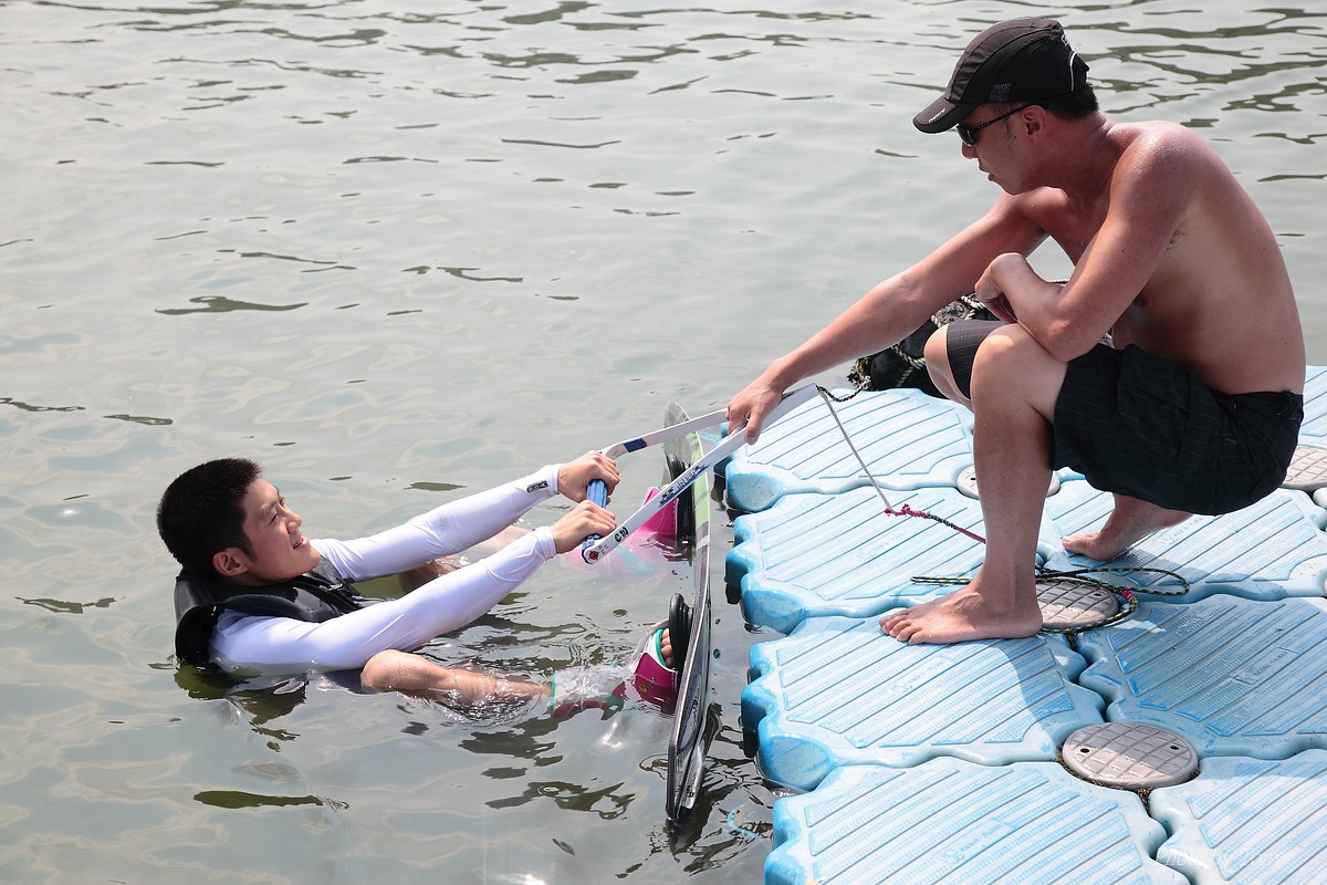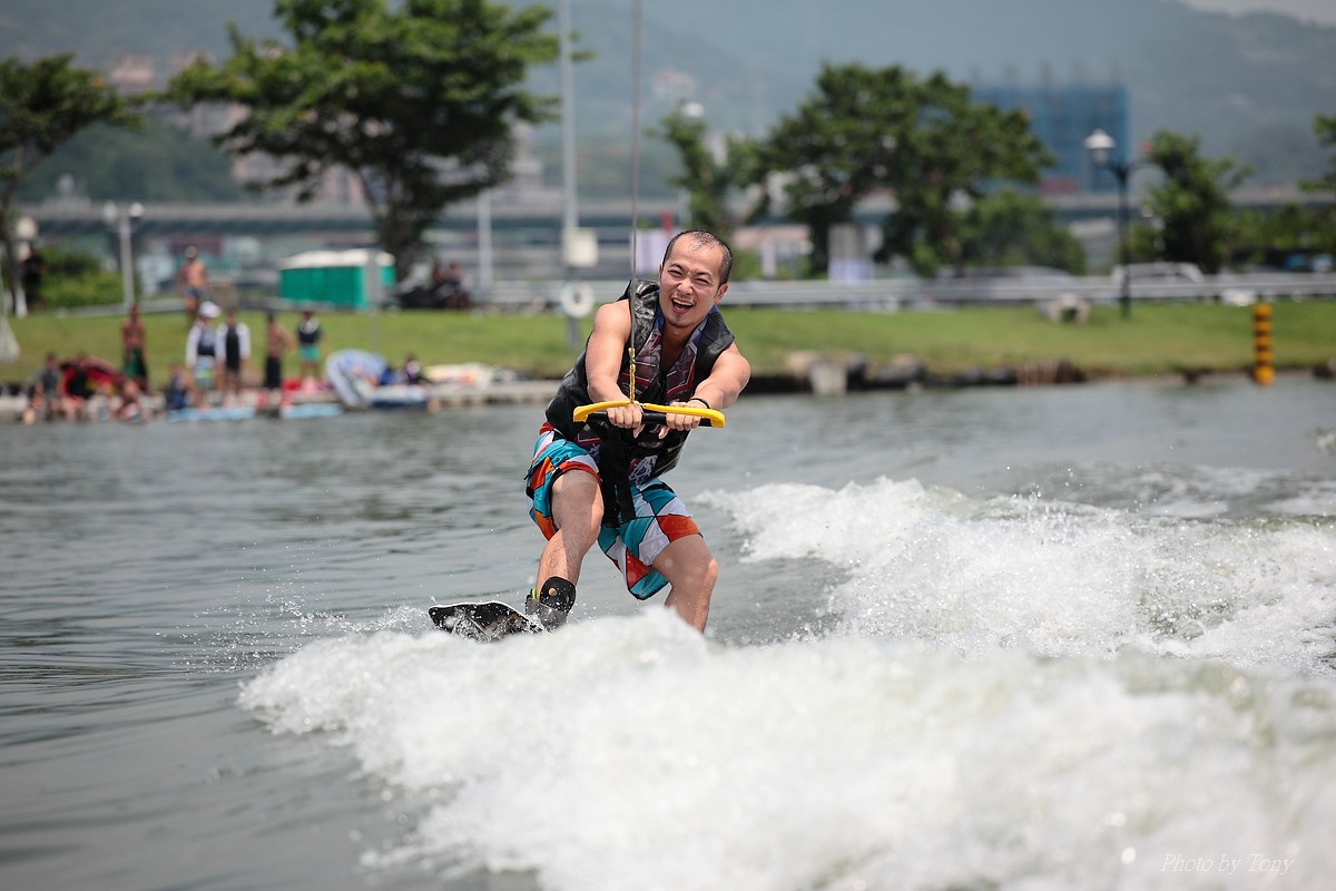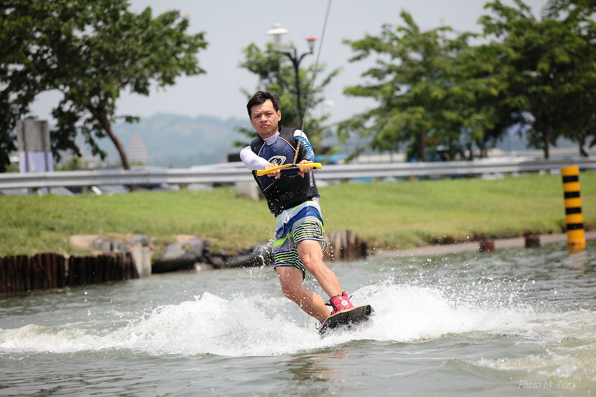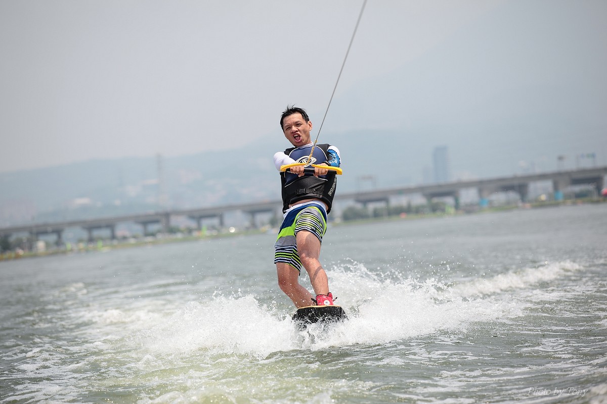 活動隊長PETER這次又糾團去滑水 老婆不想(敢)去..但還是淮我去體驗看看!! 去之前就看PETER之前形容的,初學者能站起來就不錯了~ 一次也只有短短的15-20分鐘,時間不長,要這麼快就抓到訣翹好像也不容易 一開始先在草地上練習要站起來的預備動作.. 重點是不要用力去抵抗拉力然後腰要打直.. 再來穿了救生衣和滑水板後就先下水練習翻身 因為一定會撲水或隨便亂摔~ 所以要練習從趴著轉回仰著~~(因為是從仰著的姿勢開始站起來的!!) 本來說小頡要當第一個,但不知怎樣~NATSUMI就當了先鋒 而我是第二個,就先在岸邊等~ 遠遠的看著NATSUMI只能蹲一下,到後來可以站起來(雖然站不久~) 但也是成功了!! 呼~~開始有點緊張了~~ 等會下水會是怎樣呢?? 果然前二次,沒多久就往後摔了!! 教練說~不是要往後躺,腰桿要打直,站在滑水板上就好了~ 嗯~~試了第三第四次...YA~~我可以站起來了耶!! 滑在水上的感覺還真不錯啊!!哈哈~~ 不過教練一個轉彎,我又撲水了!! 回來看看PETER幫大家錄的影像 還真是拙~~哈哈 二隻腿很緊張!!~~ 滑完水,沒想像中手痠腰痠大腿痠 PETER說..晚上OR明天就知道了!! 果然~~晚餐之後,二手就有點無力,但還不像之前玩攀岩那樣嚴重 而背後雙肩也開始痠痛,但大腿倒是沒什麼事,應該是因為有跑步有騎車的關係吧!! 沒用的NATSUMI隔天則說全身像被卡車撞到..哈哈哈,真是笑死大家了!!:D 下次開團,再問問老婆要不要一起去體驗看看:D