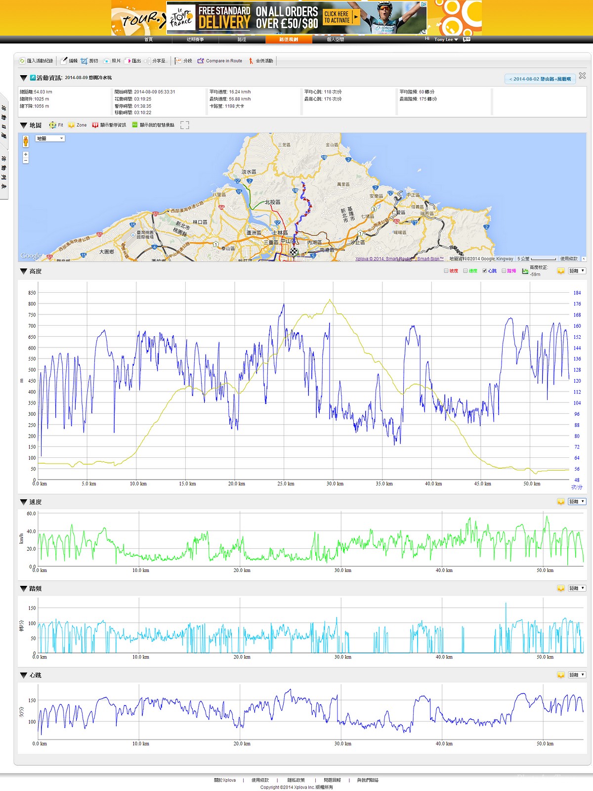 上週成功挑戰風櫃嘴不落地的艾雪,聽到大家已經不想騎風櫃嘴了 馬上要進階挑戰冷水坑.. 其實說冷水坑難,也就是難在菁山小鎮到菁山自然中心那幾百公尺的陡坡.. 新手很難不中箭落馬~ 記得兩年前第一次帶小鋼炮來騎,也是在菁山自然中心那裡牽車 P字賽時,這一段幾乎是一路牽XDD 所以在這裡牽車真的是不可恥的事..尤只是在P字賽時!! 這次除了原班底NATSUMI和艾雪之外 RYAN和鐵蛋也來了~~ 不要看RYAN有上健身房,上半身肌肉似乎很強壯.. 這次可是騎的慘慘慘,連艾雪都騎贏他了!!哈哈~~ 運動就是這麼一回事,有練就有差,沒練..就等著被海放吧!! 而鐵蛋的表現真的很優秀~ 除了平等里和大家一起小休之外,其餘都沒有落地,菁山小鎮那裡也沒有~ 且一路還可以和我聊天.. 只是會問我說..為什麼我騎車都不會喘...(哈哈~叔叔和你騎就會喘的話,那我平時真的白練了:D) 石頭車隊內的艾雪和鐵蛋都成功挑戰冷水坑了,再來可以安排更遠爬升更多的行程了,加油~~ ps1:kevin你什麼時侯偷偷混進來的,我真的沒發現XDD PS2:冷水坑後,ISO不小心撥到2500...畫質一整個超級慘啊T___T 2014-08-09 悠閒冷水坑軌跡