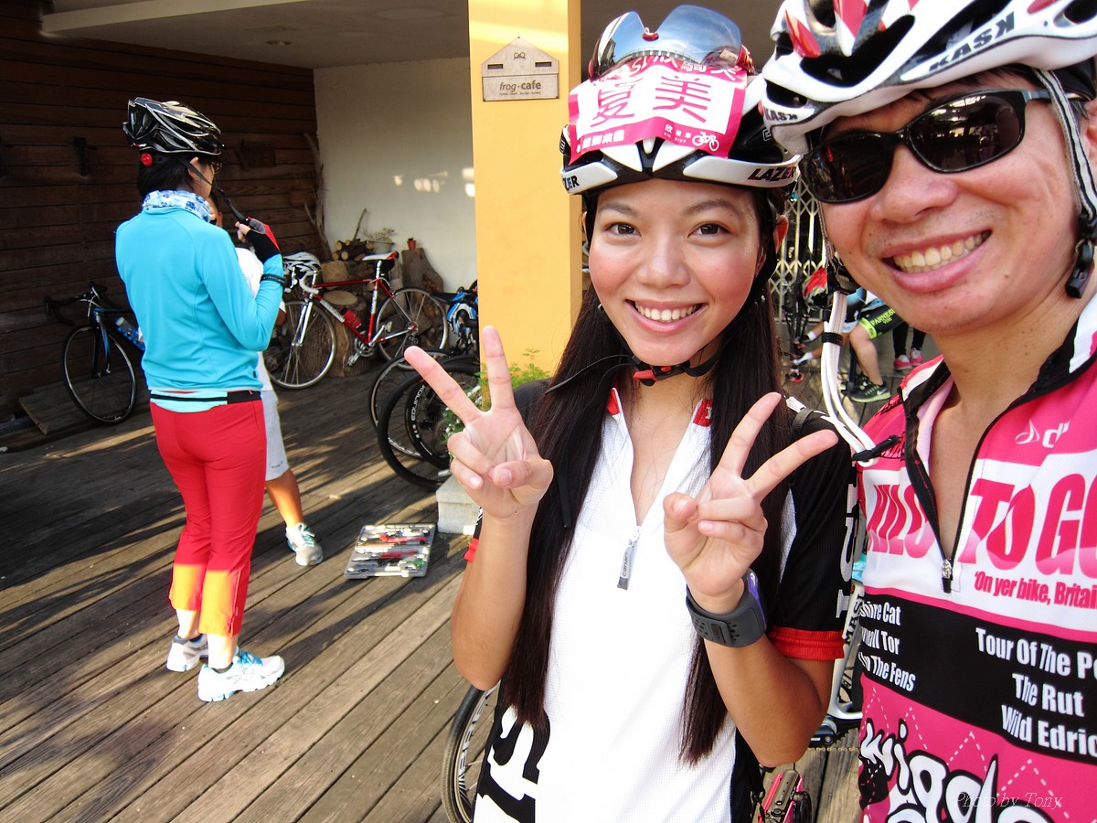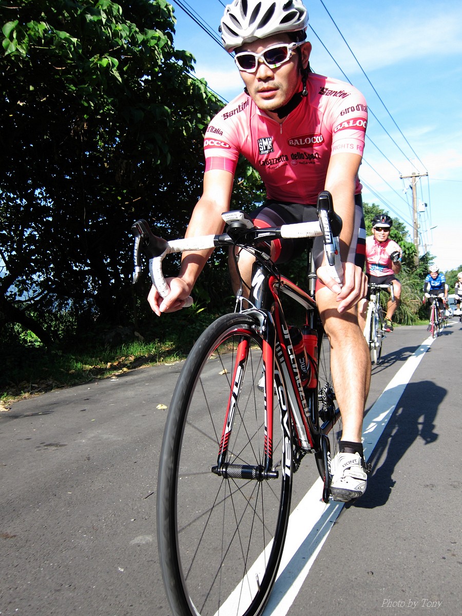 這天本來要去支援欣單車的觀音山活動.. 不過碰叔叔說工作人員很多,不去也可以~ 所以~我早起去沾一下醬油,就回歸石頭車隊啦!! 今天的路線是巴拉卡~ 應該是輕鬆涼快的路線 考量天氣大好..決定和柏儒、陳大鼓騎快點 先上到二子坪,再上攻助航站!! 原本設定讓心跳不超過170.. 但過了5k之後,心跳還是緩慢的上升到了170.. 而陳大鼓也在6-7k之後慢慢跟不上.. 原本想說就這樣順順騎到二子坪就好 沒想到倒數2-3k時,柏儒和小鋼炮LEO偷偷從後面跟了上來!! 只好繼續用點力繼續往前騎~ 等到最後200公尺就只能眼睜睜的看著二個「攻擊」上去.. 不得不說小鋼炮最後的加速真的很快,把柏儒都幹嘛了,最近真的又是突飛猛進啊!! 上到二子坪小喘一下,準備上攻助航站!! 雖然只有短短的2.3K~但上升高度200多公尺 平均坡度幾乎是10%~~ 真的是累死人了XDD 愈踩愈沒力XDD 還好在要抽筋前抵達了!! 等到陳大鼓上來..,拍個舉車照 就趕緊下坡到二子坪和大家會合!! 沒想到黃艾雪居然已經吃完二個肉粽和一瓶飲料了!! 速度愈來愈快了啊~ 真是值得鼓勵鼓勵~ 不過她居然說巴拉卡比五指山容易.. 唉..真的有無知XDDD 好了~石頭車隊愈來愈多人了!! STONE隊長趕快研發隊衣吧:D