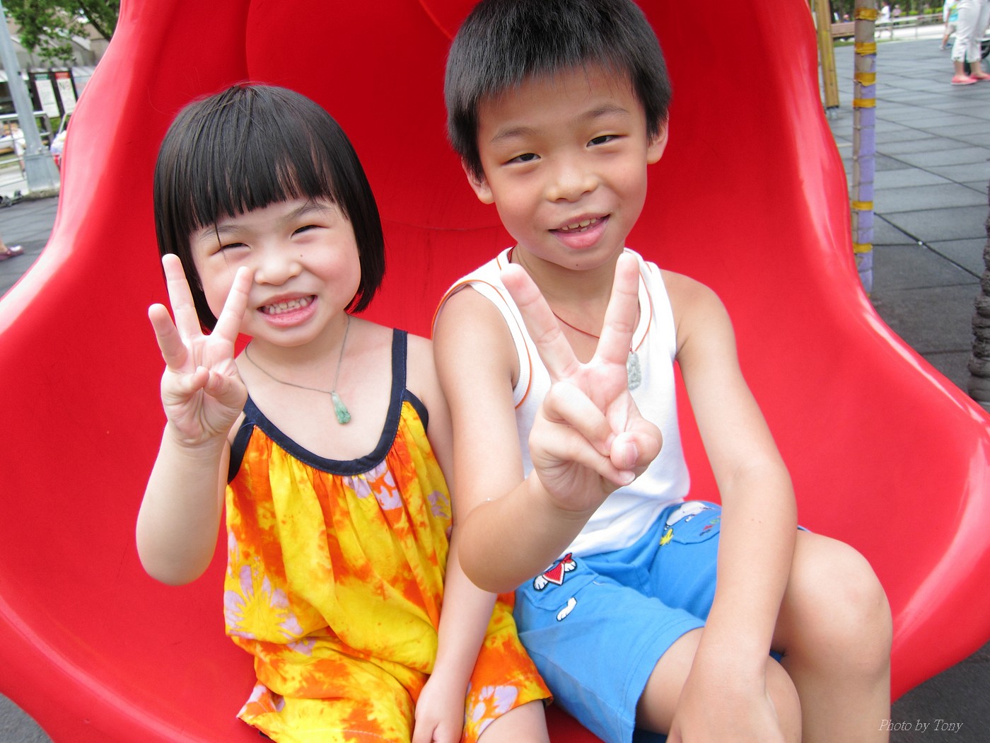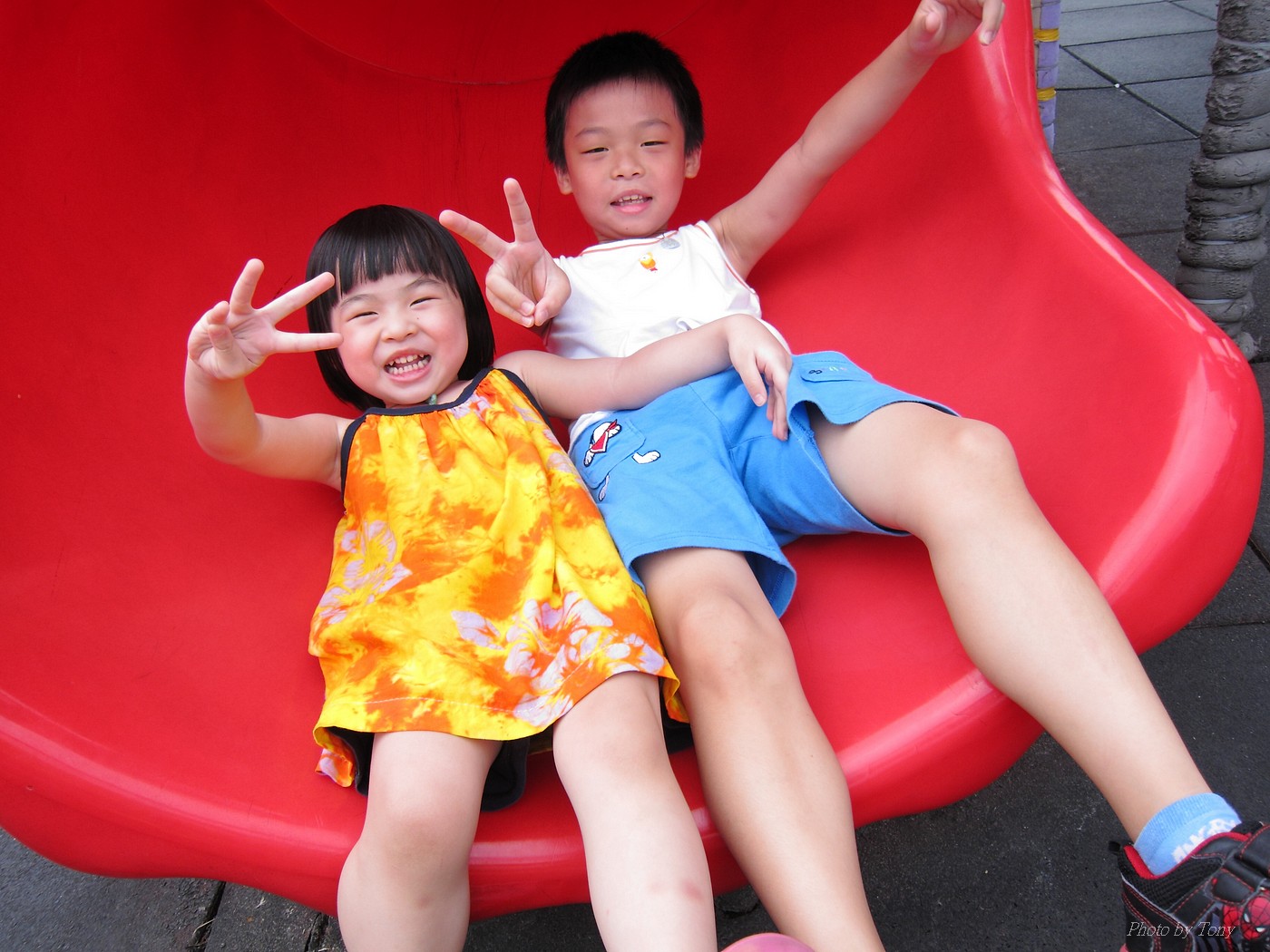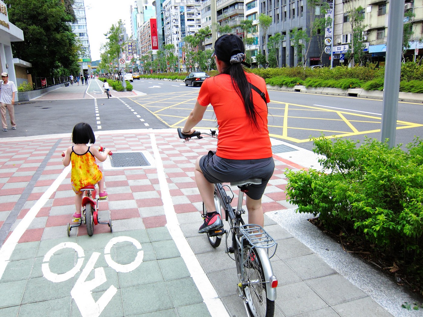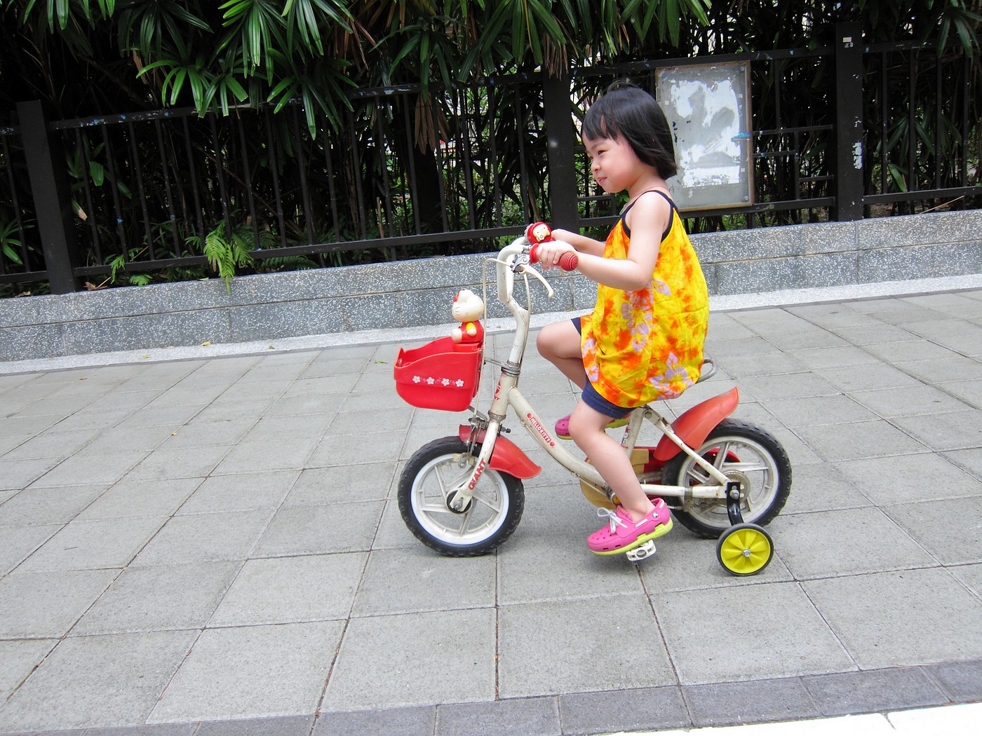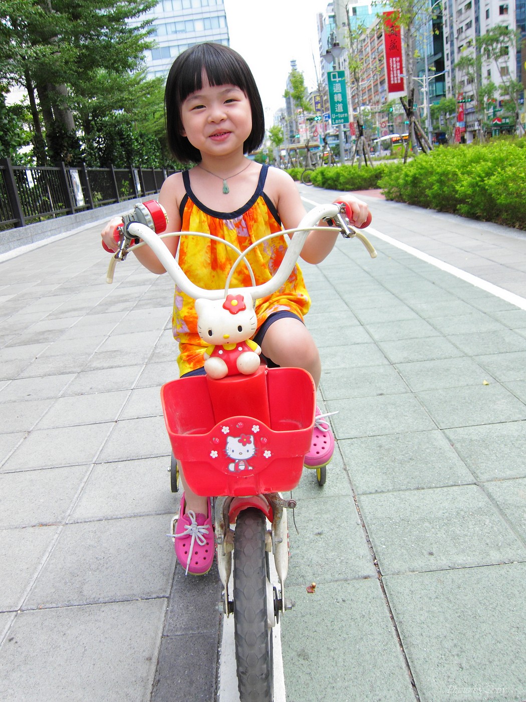 小丸子騎車我跑步~ 而老婆則騎車陪兒子~ 看著小丸子騎著HELLO KITTY的小童車~ 真是可愛極了:D 騎完一圈大安森林公園,再去兒童遊樂區玩!! 一整個大開心啊!!^O^