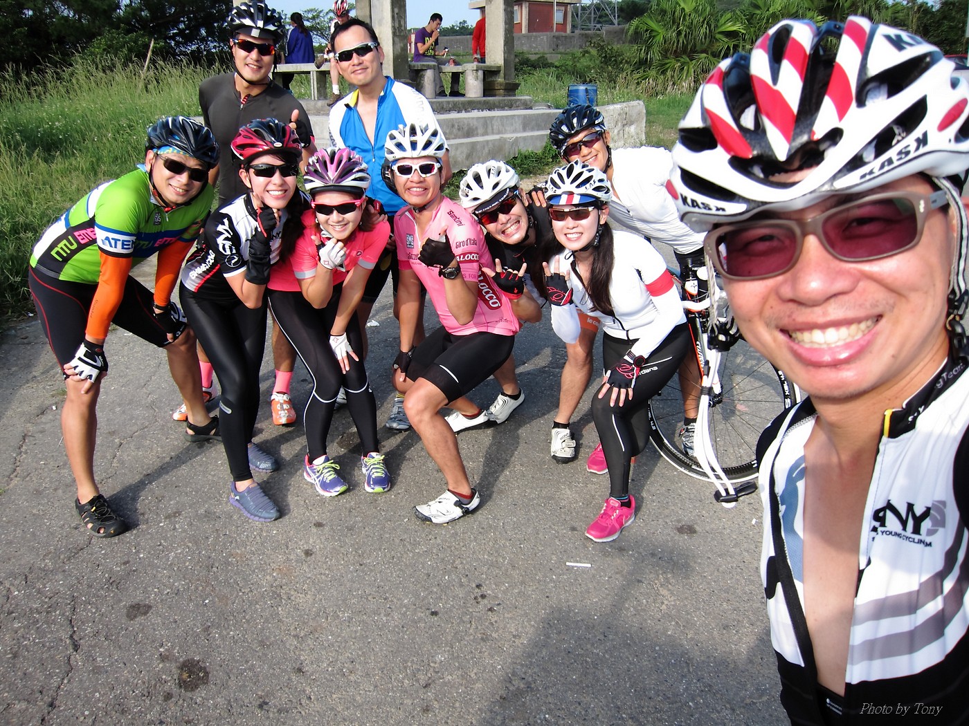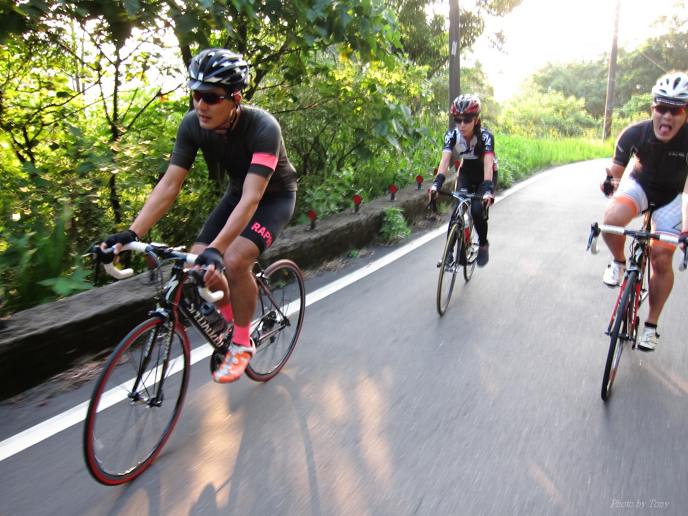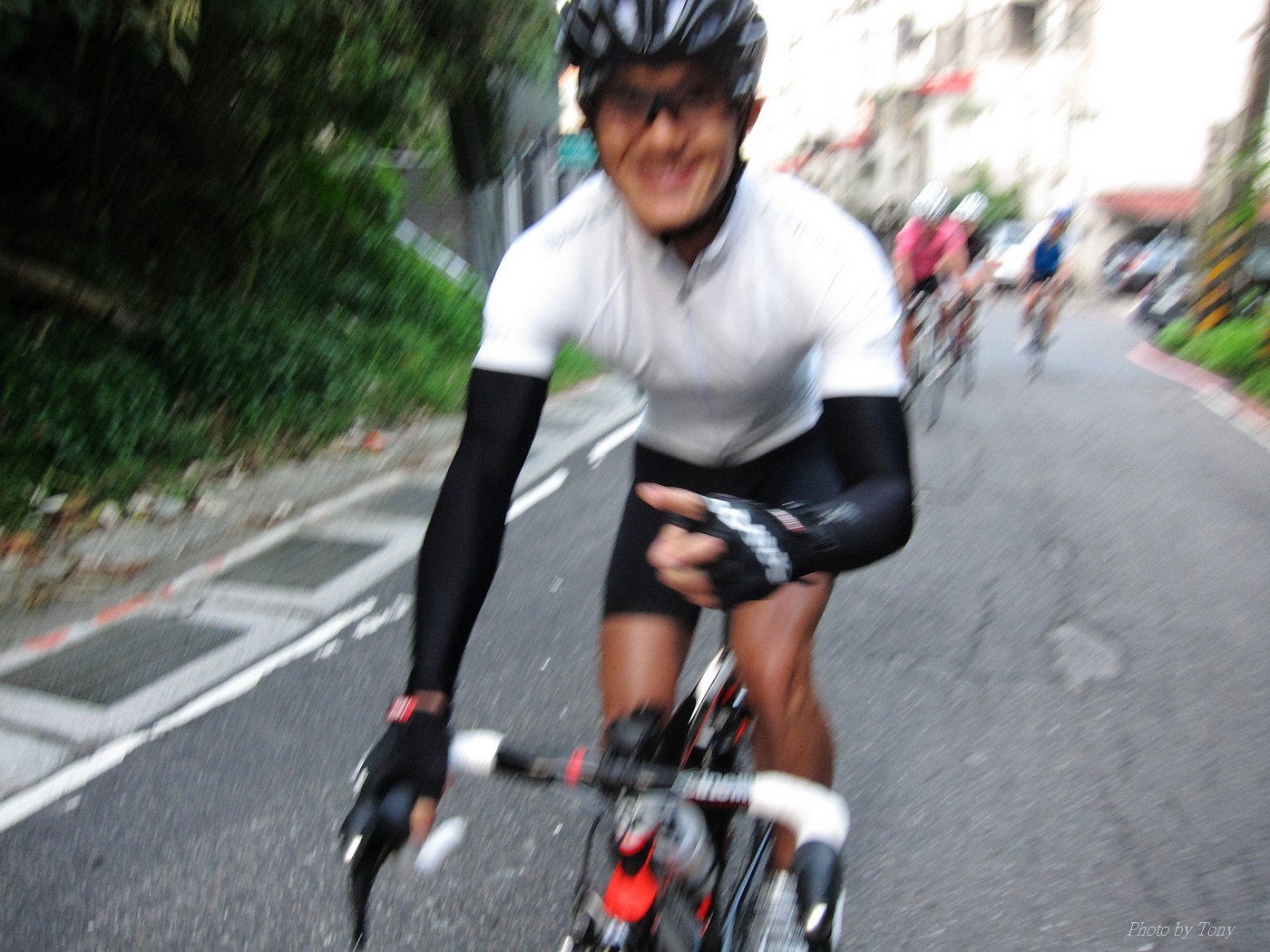 以前石頭車隊約騎,大概都會拖到星期四,甚至星期五晚上才決定 有了新進認真隊員 -- 林庭瑄加入後 現在隊長大概週一週二就會公佈約騎地點和時間 真是不能小看林庭瑄的影響力啊!! 這次行程一出來,真是差點跌破我眼鏡.. 6:00 大湖捷運站集合,預計騎內湖五指山和冷水坑這兩P~ 隊長家離內湖很遠..所以從內湖上五指山這路線,他從來沒騎過!! 居然還約個6點,我想他應該5點就要出門了!! 再來五指山和冷水坑這2p都不算輕鬆,林庭瑄想一次ko~真的是不容易!! 只能覺得..以前的我們怎麼那麼沒勇氣一次挑戰2P的路線..唉!!XDD 聊著聊著也就把SNY的安妮媽一起找來 在謝大哥和昌總的鞭策下,安妮媽目前從山底小七騎到山頂約45分左右!! 45分快不快?? 嗯~~N年前和山豬第一次騎...騎到臉色發白,最後是一小時出頭才抵達!!XDD 2年前在換SCOTT之前,和PETER順順騎了一次..51分登頂 今年7月,小猴約騎風櫃嘴,和LEO二人以心跳不超過170來騎一趟,43分多完成!! 所以面對安妮媽來襲,我心裡算是有底的!!不過..可惡的阿帆,居然在前一天幫安妮換上跑零!!! 這天一開始先由MARCO開始領騎 石頭車隊中蛋蛋有PETER看著,ARIEL有叫念保護 所以我和STONE也都跟著上去.. 前半段我心跳大概都落在160-170間 有一段,STONE轉頭問安妮說:「這是你平常練習的速度嗎??」 安妮媽回說:「是啊~~」 換我和安妮媽說:「你最快騎45分耶~~」 安妮媽回說:「那是被謝大哥逼的~~,沒有每次都那種速度啦!!」 可是..我發現雖然一用力可以小拉開安妮媽,但只要緩和一點,馬上就有魔音穿腦.. 什麼魔音??安妮媽車上還裝一個大喇叭啦,人沒到聲先到,好恐怖XDD 就這麼和安妮媽糾缠了6公里多~ 最後2公里多,看看好像有機會破一下上次的記錄,就用力騎騎看,心跳最高拉到181.. 最後以42分多達陣..小小進步40秒XDD 而安妮媽和STONE也在1分鐘後抵達!! 以43分多的成績完成!! 還好這一年有持續練習,不然就要被安妮媽這個新手給KO了XDD (安妮媽買公路車大概不到1年的時間~~) 在山頂上繞了幾圈後再下山去撿人... 下滑了2k撿到peter和蛋蛋~~ 再和他們一起慢慢騎上去 沒想到林庭瑄沒來,大家就想就地解散,真是太惰落了~XDD 不過~~騎上五指山也運動到了,大家開心就好!!:P 期待下次繼續LDS團騎~~^^