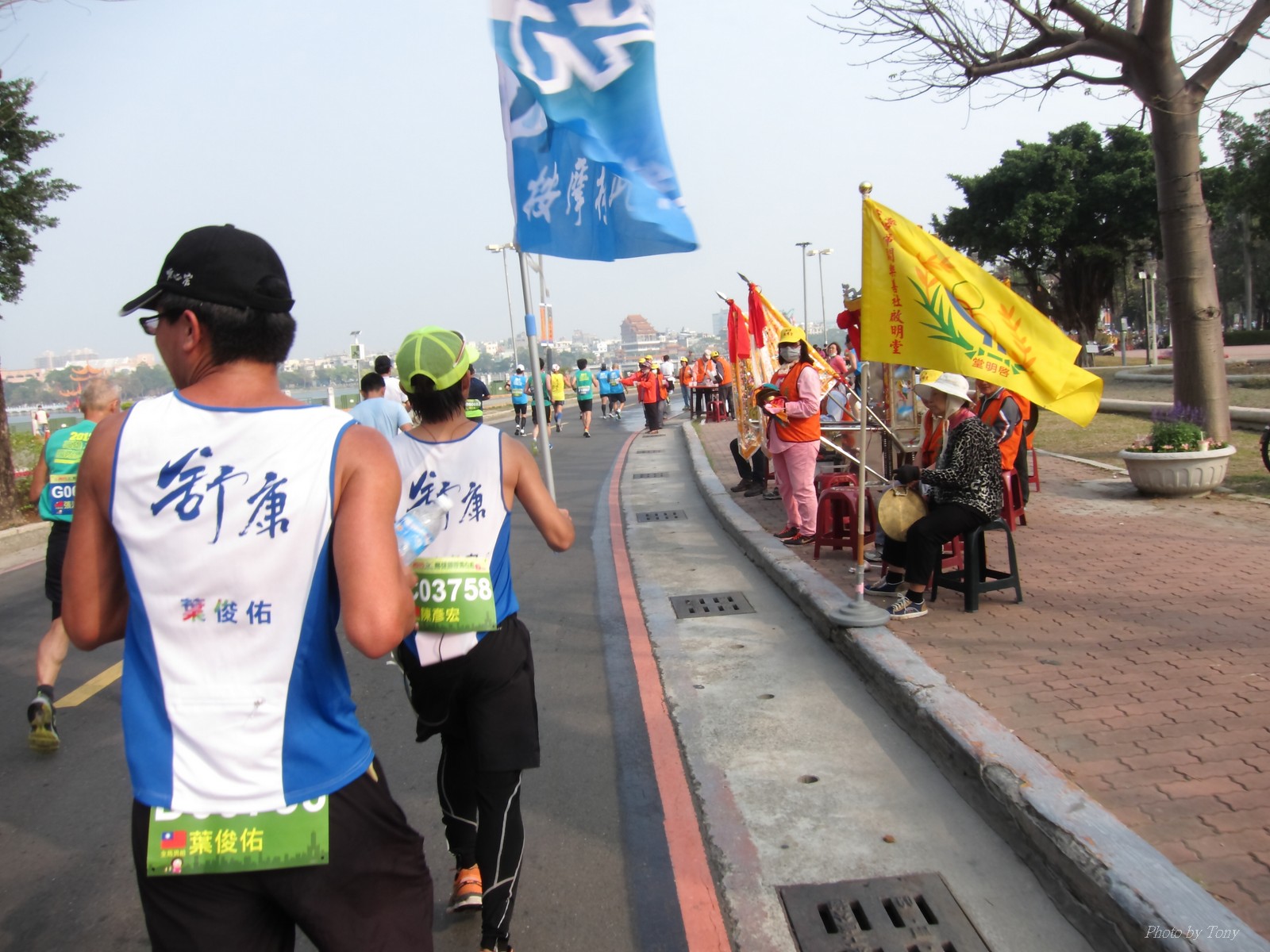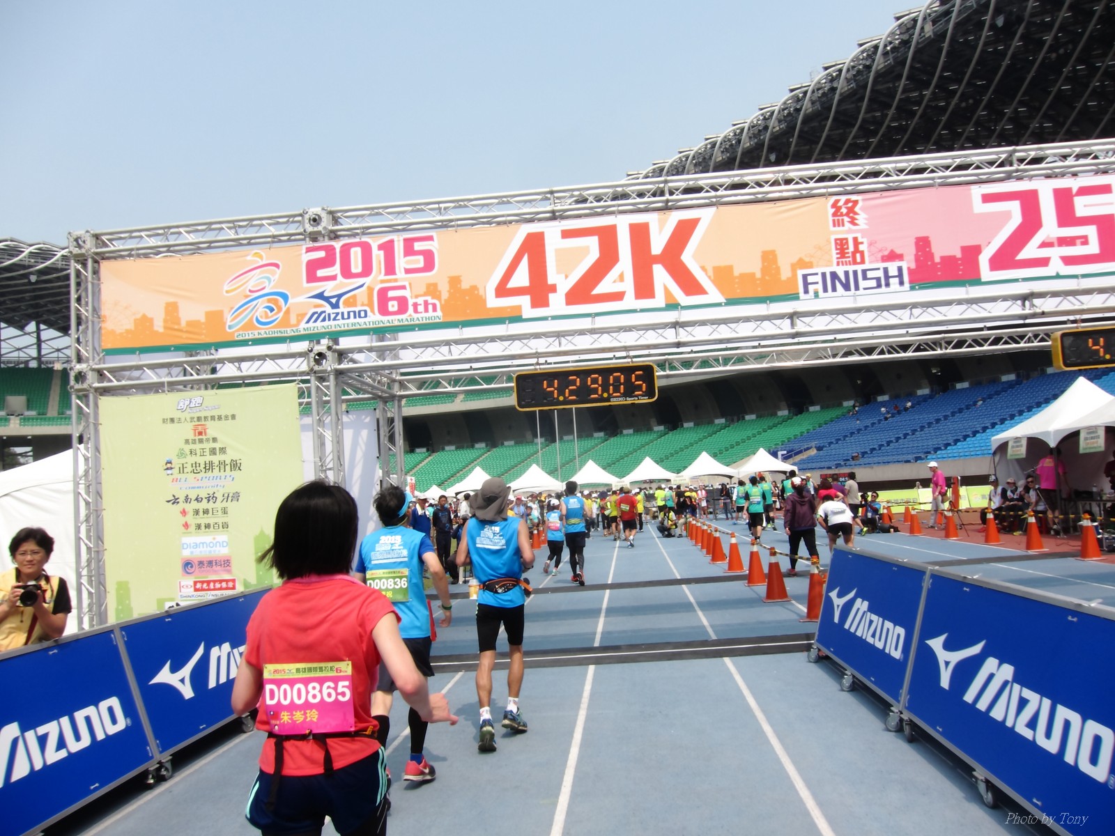 第一場全馬假會選山路馬,跑的很壯烈XDD 第二場當然就要選擇平路馬啦.. 只是...為什麼最後5K我還跑的很想死XDD 沒有想罵人..因為最後連罵人的力氣都沒有了>"< 跑完PO了一張獎牌+成績的照片在FB上 有些朋友覺得我沒什麼練,為什麼可以跑430? 大人冤枉啊~~ 「跑步只有累積,沒有奇蹟!!」 這句話是真的.. 我不是沒有練,只是沒有練很大,沒有把每次跑步練習PO上FB而已啦:P 1月份的月跑量也有100K~ 2月份跑了一趟25K的LSD後,因為不小心遇上腸胃炎(還是諾羅病毒),所以練習量僅剩60多K~,但還是有練習,且不止跑步,我還有騎單車!! 雖然練習量不多,成績不會太好,但我對於SUB 5還是有信心的!!! 因為去年底富邦半馬跑出SUB2,壞叔叔LEO一直叫我衝SUB4 但我自己知道那是不可能的..,哼..別以為我沒有跑過全馬!!因為全馬不是兩個半馬...,後半馬體力的下降是很可怕的.. 目標先穩穩的sub5就好,體力充沛的話,半馬之後 OR 30k之後再來加速??,有體力SUB430也許是有機會的!!! 半馬後加速??30k後加速?? 真是想太多了,過了30k之後真的是痛苦的開始,沒力、腳痛、抽筋,意志力薄弱..什麼症頭都開始上身..Orz 高雄馬的前2K人多路小..,只能7分速順順跟著人群慢慢跑 但是2KM多我居然不小心踩到一個石頭而拐到腳..= =" 拐到之後是還可以跑,但用力點腳裸就會痛..,只能6分半速慢慢跑...T___T 辛苦跑這麼遠來,不會就這樣棄賽吧!!XDDD 看來這次的高雄馬能穩穩跑完就好!! 陳大鼓和我一起出發一起跑,因為他練習量更少,所以我想這個速度對他來說應該是差不多的...,而PETER因為出發前去排廁所,而起跑時間又很緊迫,就直接放鳥了XDD 他說今天的目標是SUB5..,那就一起慢慢跑吧!!6分半速跑完一定可以SUB5的~ 而腳痛的感覺似乎在慢慢跑幾K後有些好轉..,我就將速度漸漸拉到6分初頭!! 第一個10K以01:04:28完成!!(和心理的預期差不多~~) 既然腳沒有那麼痛,那再來就繼續以6分速前進就好,目標馬上改至SUB430..哈) 沒想到跑到12K,旁邊就聽到陳大鼓稍微喘的聲音 我回頭問他說還好嗎? 他回我說...還OK!! 那就繼續維持這速度吧~ 沒想到再2K~,回頭就看不到陳大鼓了XDD 只好一個人默默前進..(回來才看到12k時,他的心跳已升至17x...真的是得降速跑了!!) 第二個10K~按6分速計畫 01:00:27完成 這次高雄馬住在蓮潭會館,約在21KM位置附近 飯店離馬拉松路線約只有300公尺遠.. 所以到15KM進補給站喝水時也順便打電話通知老婆,預計35-40分鐘後會抵達路口 這次大姐、二姐、二姐夫、睿睿還有淑惠、小羊、妹妹都來路旁幫我加油!! 看到家人在一旁加油..真的很感動啊!!T_______T 超開心的~~\^O^/(轉圈~~灑花) 後半馬開始...接下來就是要靠自己了~(一直都是靠自己啊XDD) 跑著跑著,突然發現怎麼半馬和全馬要分流了.. 什麼~~不知不覺25k的半馬到了,要轉進世運場了 而我還有17KM要跑~~,不得不說半馬跑完是有點累又不會太累,還期待能再多跑一些~但全馬....就不是了XDD 一直想著小V寫的... 她跑全馬是很享受的,最後還捨不得跑完 我我我..前半馬是很享受啦~ 但後半馬,真的享受不起來XDD 第三個10K,很努力把速度維持在01:00:50 但30K過後,體力開始直直落.. 得不停的停下來補給喝水吃鹽錠.. 這時平均速度直落到6分半~ 愈接近中午,天氣也愈來愈熱,路上當步兵的也愈來愈多~~自己告訴自己要撐下去,儘量不要當步兵!! 撐到32KM~,告訴自己剩最後10K了, 撐到35KM時,想到丹大初馬時,35K時老婆剛好打電話來,那時真的超累,今天的狀況有好一些,但也好不到那去~ 看著4個半小時的時間慢慢逼近,真不知自己在堅持什麼?? 若不是想要SUB430,我想我一定會當步兵來擺爛~XDD(是說SUB 430還是很弱啊~) 37K到了~~剩最後5K多~~小腿開始有抽筋的感覺,且愈跑愈頻繁,一定要撐住啊!! 最後3K已經跑到有些無力+晃神,但還是得努力回應熱情的加油民眾,謝謝他們辛苦的加油 當啦啦隊也是相當辛苦的!! 最後2K~突然眼前有個穿SNY車衣的跑友 一上前才發現是壞叔叔LEO耶...我居然追上壞叔叔了(大驚~~) 原來...他前半馬衝太快,後半馬太陽出來後,體力急速下降,兩腿大抽筋,只能7-8分速跑走...,所以才會被我追上 不然他目前是準SUB4選手~我還在想..他應該早就坐在世運場裡納涼了 一起跑了500公尺, 壞叔叔說6分半的速度他無法撐下去.. 而我為了要SUB430就先努力往前跑去 沒想到沒100公尺,壞叔叔LEO最後大爆發,用著二隻抽筋的大腿,以5分速從我身旁超過!! 我瀕臨極限的雙腿,只能看著壞叔叔的背影遠去~ 最後世運大道這1K感覺真是跑的有夠久的~怎麼這麼遠啊~ 終於跑到底轉個彎通過隧道就進入世運場裡 真大真豪華~好有大明星的FU~哈哈哈 享受最後的200公尺~ 趕在大會時間4:30:00進入終點!! 謝謝大家~~叔叔達到自己的目標了~(泣) 雖然成績沒有多漂亮 不過稍微掰咖的情況下還可以在預期內跑完,算是很欣慰了!! 高雄馬辦的如何呢?? 不得不說南部加油的學生..真的很熱情(不知他們是不是被動員來的??) 真的很HIGH~ 當我拿出相機,還會爭相說拍我拍我~~哈哈!! 真的很可愛~ 陳大鼓說...若一路都是這種的,他一定可以達成SUB5.. 另外~最後跑進世運主場館,也很有FU~ 這點也很棒 而其它路線部份..老實說就覺得還好XDD 沒有太多著名的地標~(還是我沒注意??) 而交管方面,我知道這沒全程交管,但看到半馬總幾的被紅綠燈擋下來,就覺得很訝異,好歹讓這些追求成績的選手能好好跑吧..,至於我們這種慢的,雖然節奏有點亂掉,