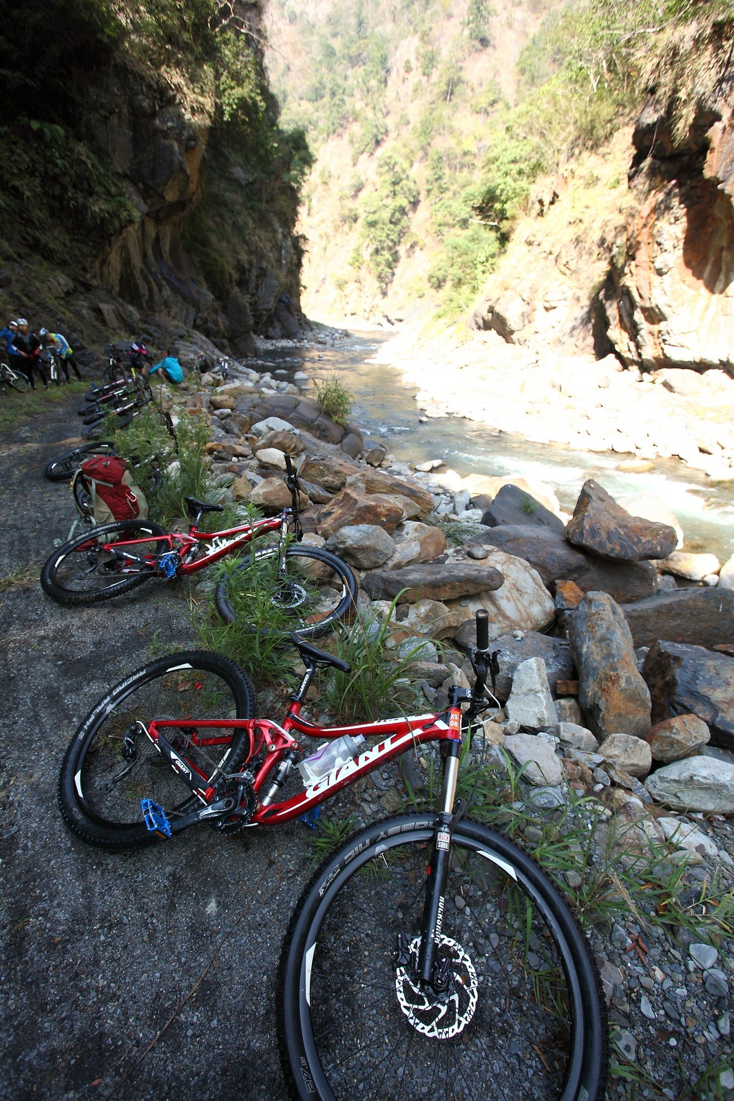 什麼??SNY要辦一個登山車的活動?? 北港溪??在那阿?? 記得有看過碰大叔貼過..,好像是很不錯的路線~ 晚上趕緊和老婆報備請假就來報名去,順便揪了STONE、PETER和NATSUMI一起去!! 一早在惠蓀林場集合 GIANT的技師迅速的把車組合,大家各挑一台車就出發啦~ 一開始先騎個幾公里的柏油路,平時公路車騎慣了,第一次騎登山車在馬路上還真覺得有夠吃力的XDD 不過再來就正式進入林道,雙避震車騎起來的感覺還真是奇妙 明明就是砂石滿起,用登山車騎起來卻是如履平地 好穩啊!! 下到溪邊後...就開始一連串的扛車過溪..扛車過溪..扛車過溪..Orz 因為今年沒有修築便道,所以之前的路斷的亂七八糟 牽不到一半的路..也牽到無路可牽 大家放下揹包各自準備午餐啦~~ 飽足一頓之後就再繼續扛車過溪..扛車過溪..扛車過溪..,不過有早上的經驗,下午快多了:p 回到惠蓀林場,日盛大哥再糾大家去下一段樓梯,大家下的有驚無險.. 雖然這次牽車的成份居多,但也體驗到騎登山車的樂趣!! 有機會一定要再跟的啦!!!^+++++++^ ps:這次不求快,所以揹了5D2上陣,畫質還真不是小DC能比的:P