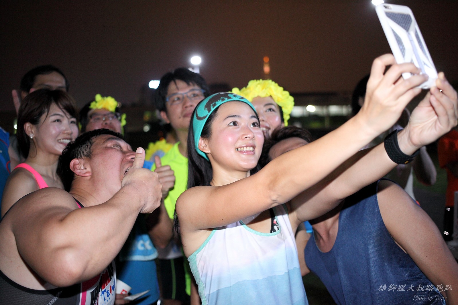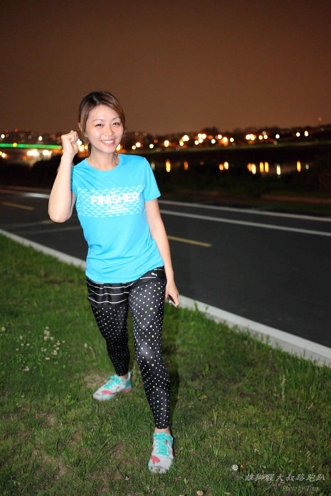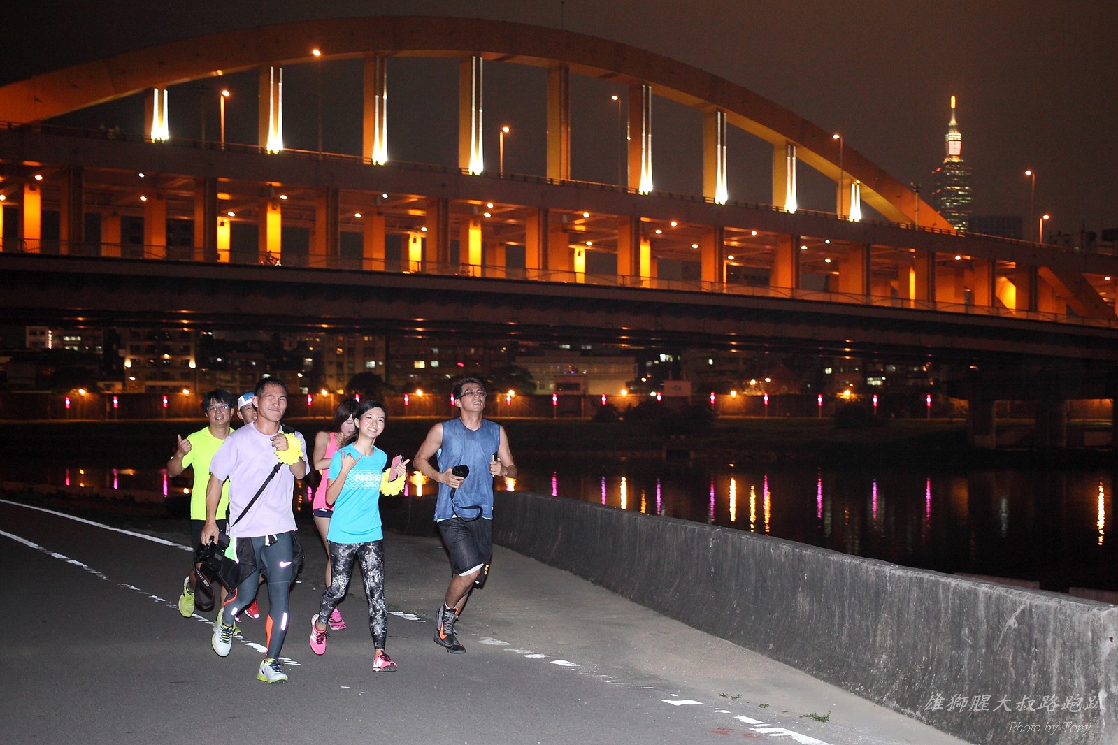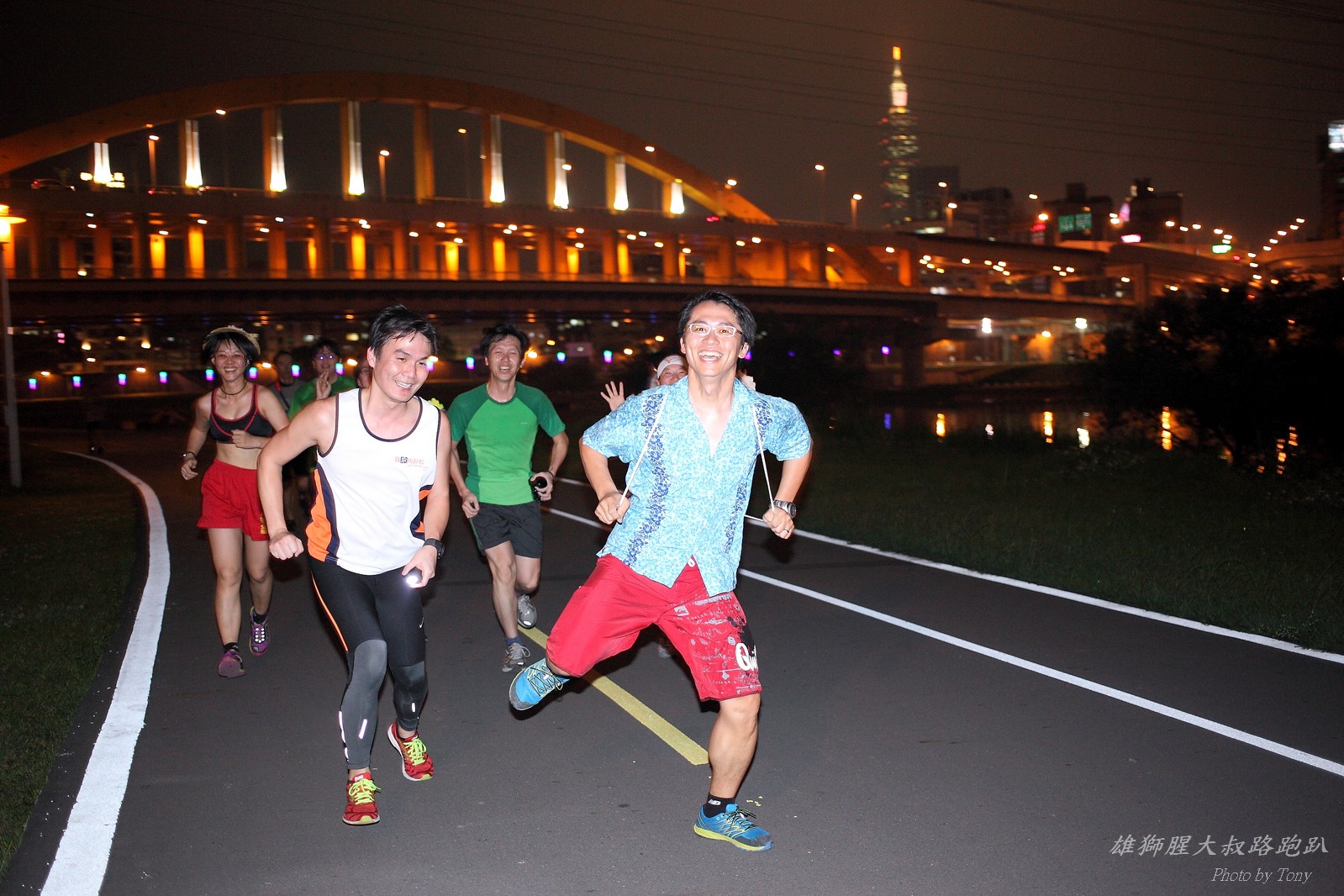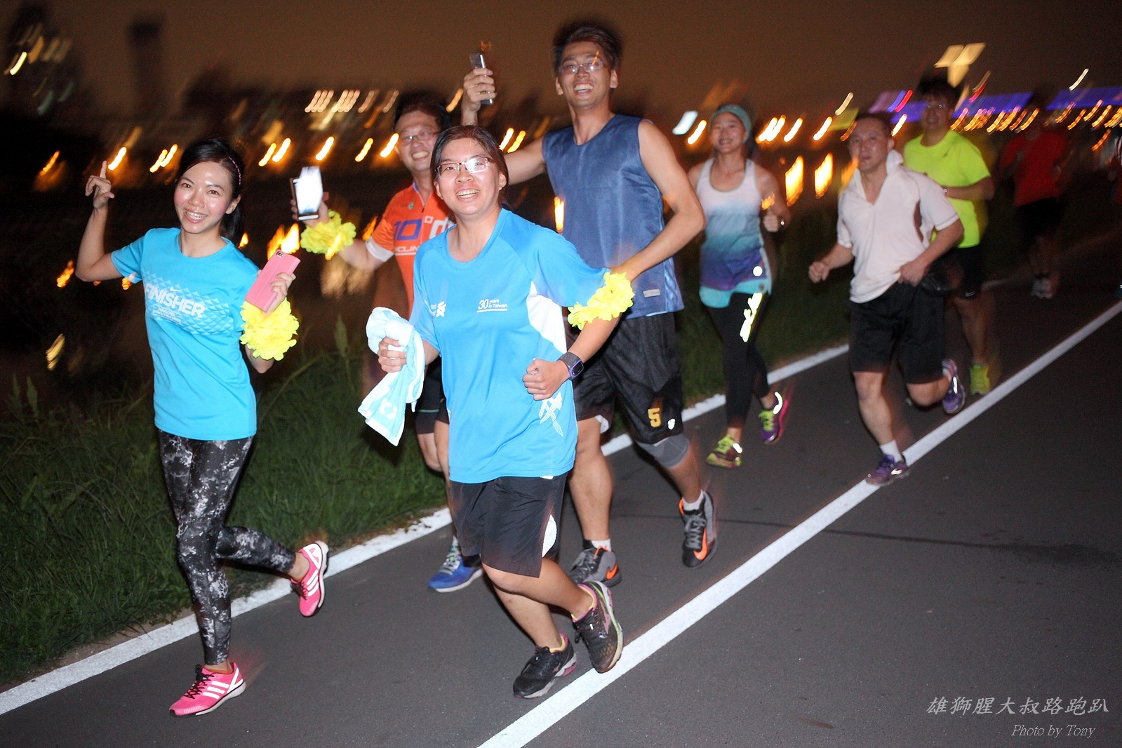 碰村長近來接管欣女孩而晉升為腥大叔(因為一直在欣女孩更衣室出沒~~) 最近分享一個好康的路跑趴活動...(其實是希望糾到300人來參加活動!!) 身為腥大叔的好朋友,一定要來贊助一下的!! 後來沒想到松哥和小猴也都要來參加!! 這活動只跑8k~應該會7-8分速慢慢跑吧~(我天真的這麼想~) 所以就帶著單眼出門 順便也體驗一下若明年抽到東京馬,要不要帶單眼跑全馬... 沒想到領跑的夏美前3.5k都可以跑在6分速內... 還好叔叔有練過,還可以跟的上.. 只是帶著跑3.5k,手就痠了,若要跑全馬,手應該會斷掉吧XDD (中間欣男孩屏哥還從後方殺出來,我卯起來用5分整的速度才追上...Orz) 中間休息點備有香蕉、紅茶和開水.. 沒有吃晚餐就來跑有點肚子餓,加上大會說沒有吃完不要跑回去...就一直吃一直吃,吃了2-3根吧!!哈哈哈~ 感謝腥大叔介紹這個有吃有的玩的活動!! 下次期待你再辦ponki盃喔!!^+++++++^ PS:本次照片用Canon 5D2+ 40MM F2.8 餅干鏡 + 270EX2小閃燈拍攝,270EX小閃燈的效果,比想像中好耶..(照片都是閃燈直打) 艾雪說...她要一張和natsumi一樣假掰的照片.. 恭喜你..今天你假掰第一名:D 這是一個膝蓋痛的概念?? 人太多...鏡頭不夠廣,塞不下XDD 邊跑邊拍的失敗率真的很高,因為常常對不到焦,快門根本按不下去..XD 屏哥的殺氣好重~ STONE看到小猴要來也就馬上手痛不打羽球改跑步了~~(指) 二位真的好恩愛啊!!! 可愛又有活力的小猴!! 黃艾雪一直被這位攝影師要求拍照啊啊啊啊啊~~~ YA~~和美灑的松哥合照了:D