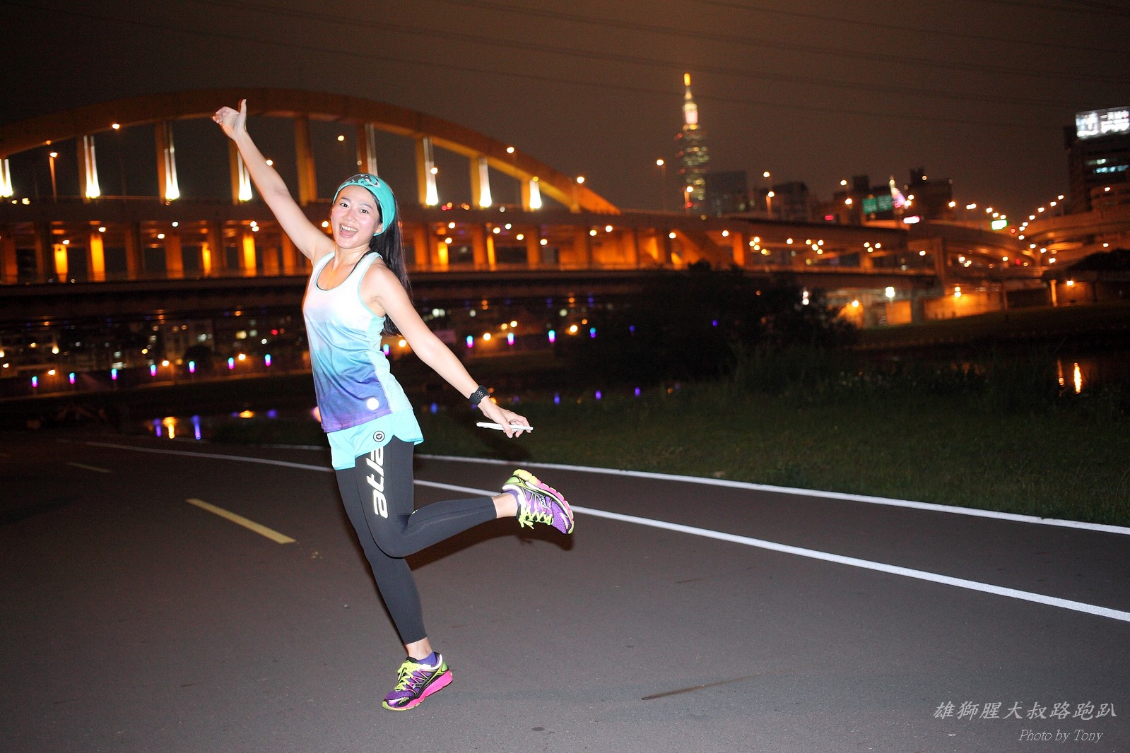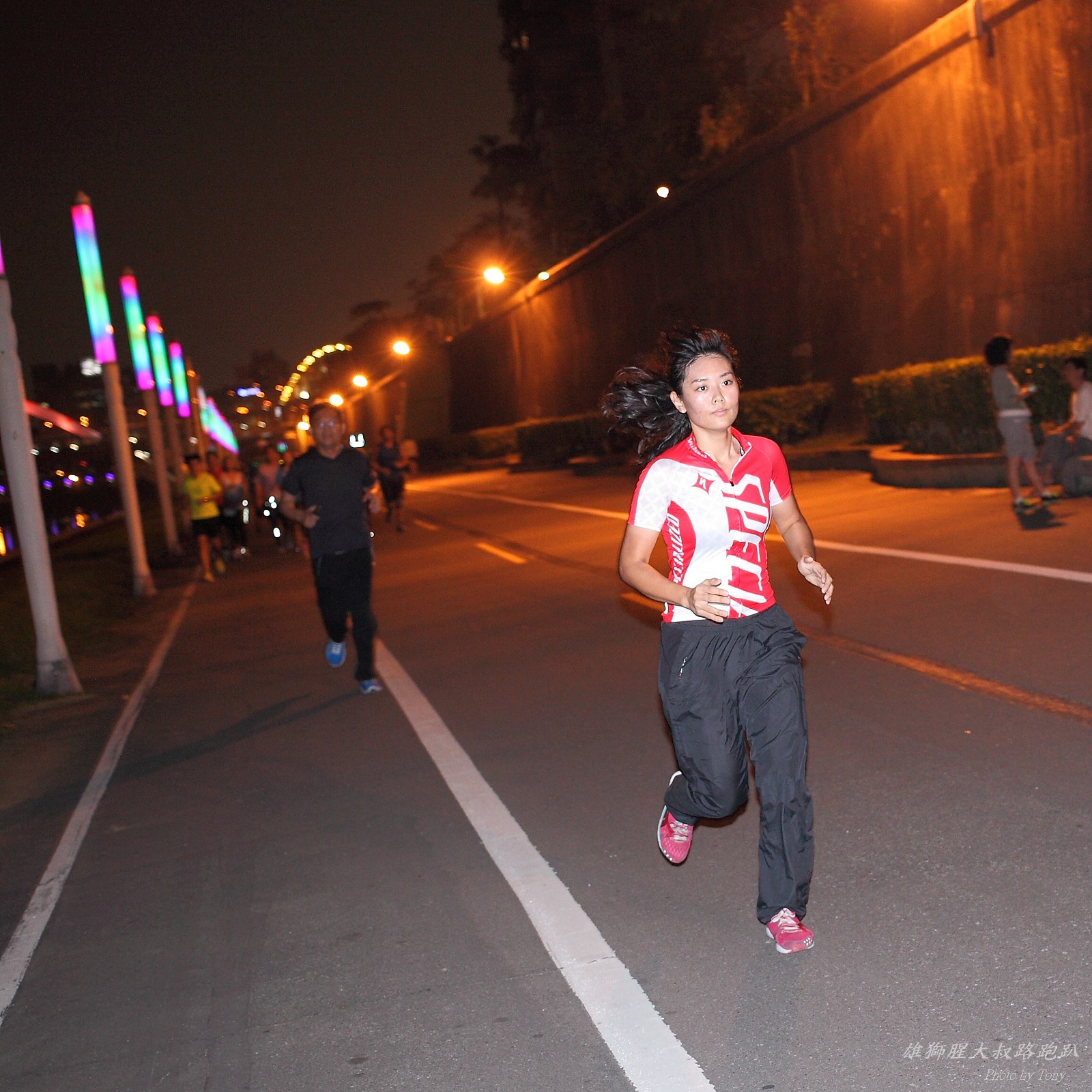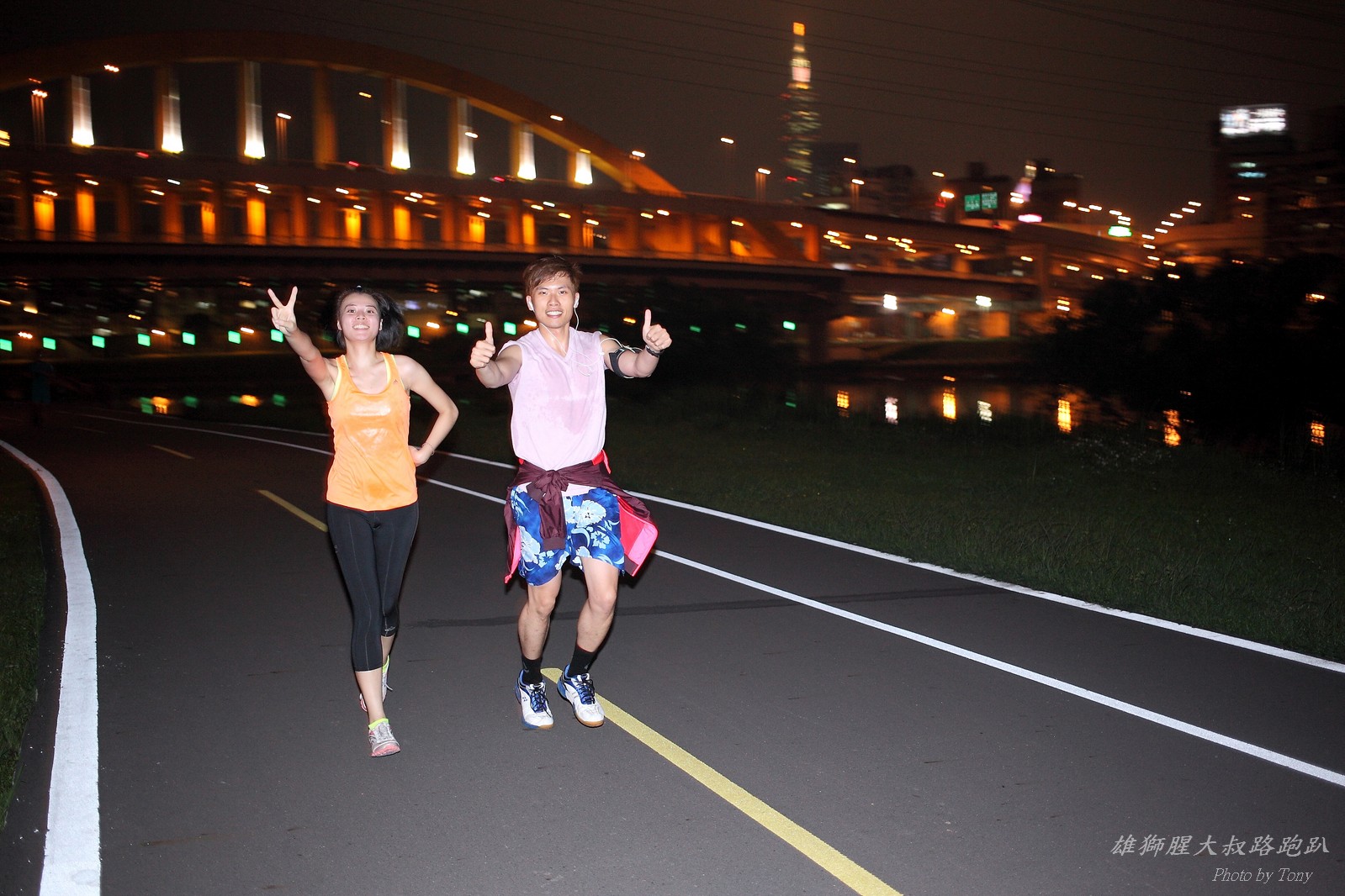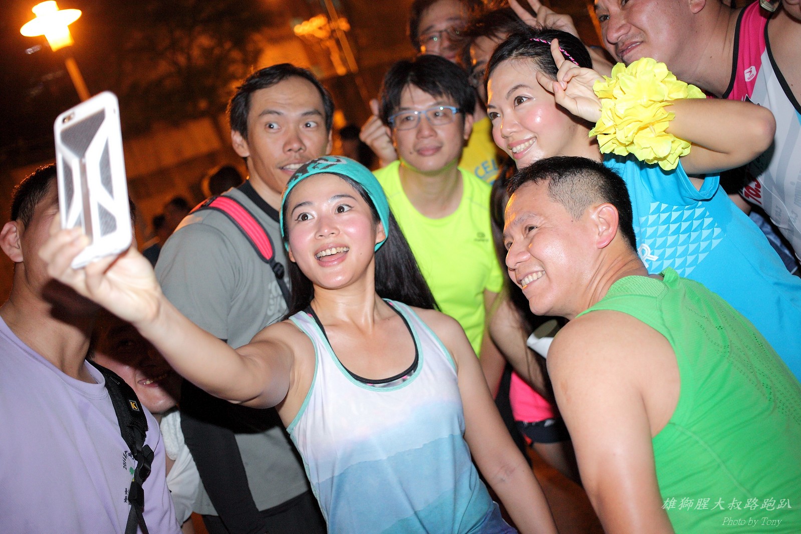 碰村長近來接管欣女孩而晉升為腥大叔(因為一直在欣女孩更衣室出沒~~) 最近分享一個好康的路跑趴活動...(其實是希望糾到300人來參加活動!!) 身為腥大叔的好朋友,一定要來贊助一下的!! 後來沒想到松哥和小猴也都要來參加!! 這活動只跑8k~應該會7-8分速慢慢跑吧~(我天真的這麼想~) 所以就帶著單眼出門 順便也體驗一下若明年抽到東京馬,要不要帶單眼跑全馬... 沒想到領跑的夏美前3.5k都可以跑在6分速內... 還好叔叔有練過,還可以跟的上.. 只是帶著跑3.5k,手就痠了,若要跑全馬,手應該會斷掉吧XDD (中間欣男孩屏哥還從後方殺出來,我卯起來用5分整的速度才追上...Orz) 中間休息點備有香蕉、紅茶和開水.. 沒有吃晚餐就來跑有點肚子餓,加上大會說沒有吃完不要跑回去...就一直吃一直吃,吃了2-3根吧!!哈哈哈~ 感謝腥大叔介紹這個有吃有的玩的活動!! 下次期待你再辦ponki盃喔!!^+++++++^ PS:本次照片用Canon 5D2+ 40MM F2.8 餅干鏡 + 270EX2小閃燈拍攝,270EX小閃燈的效果,比想像中好耶..(照片都是閃燈直打) 艾雪說...她要一張和natsumi一樣假掰的照片.. 恭喜你..今天你假掰第一名:D 這是一個膝蓋痛的概念?? 人太多...鏡頭不夠廣,塞不下XDD 邊跑邊拍的失敗率真的很高,因為常常對不到焦,快門根本按不下去..XD 屏哥的殺氣好重~ STONE看到小猴要來也就馬上手痛不打羽球改跑步了~~(指) 二位真的好恩愛啊!!! 可愛又有活力的小猴!! 黃艾雪一直被這位攝影師要求拍照啊啊啊啊啊~~~ YA~~和美灑的松哥合照了:D