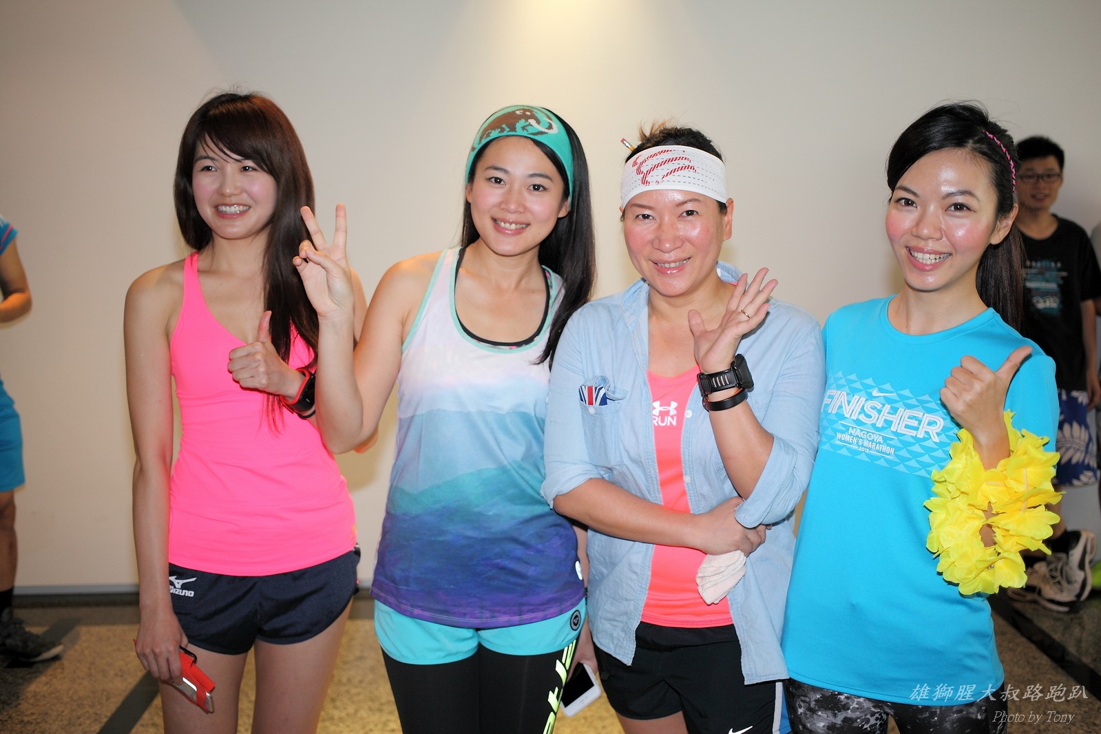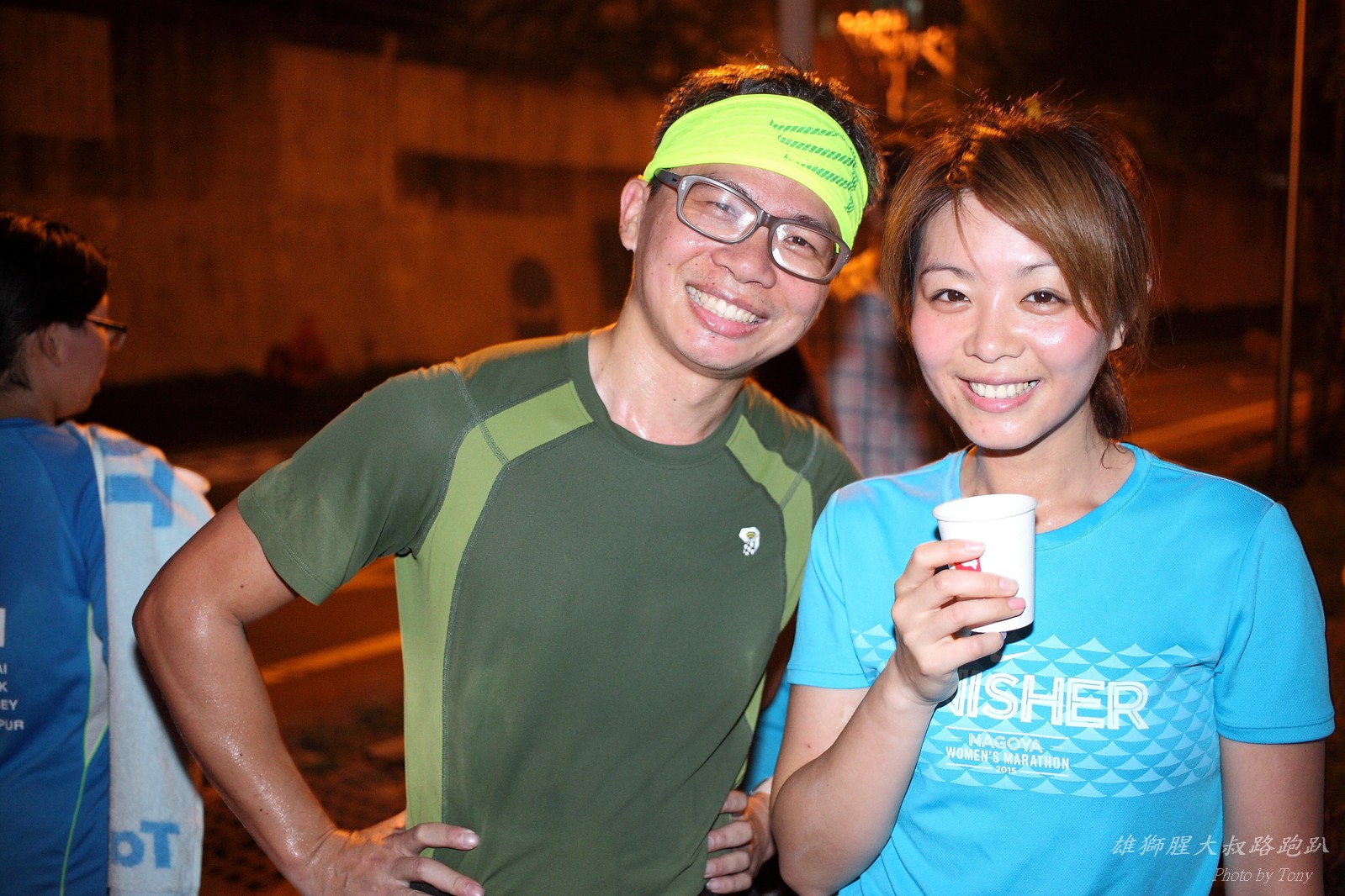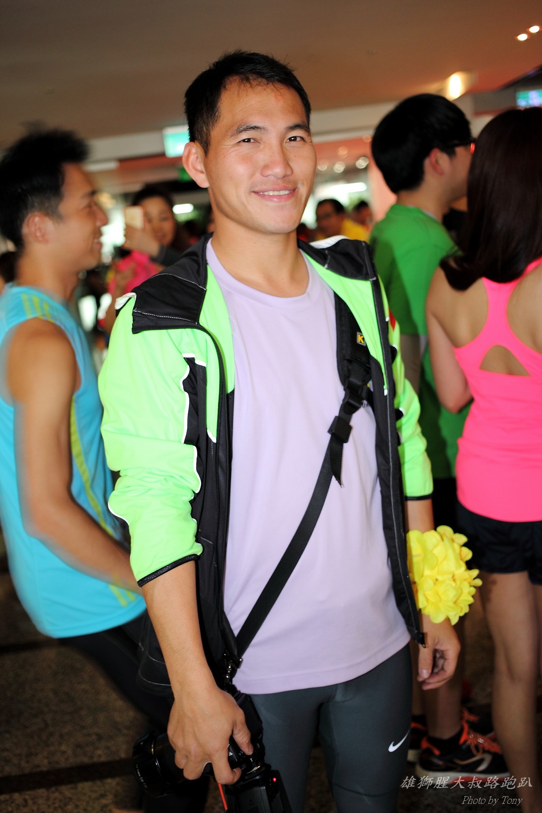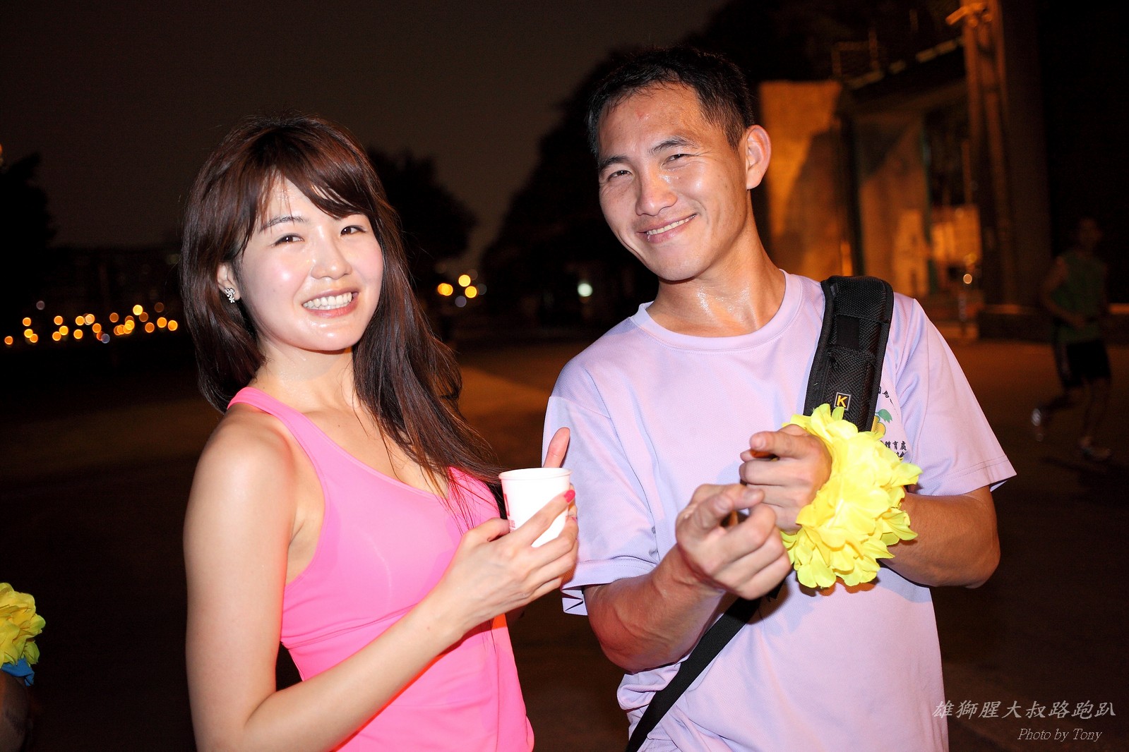 碰村長近來接管欣女孩而晉升為腥大叔(因為一直在欣女孩更衣室出沒~~) 最近分享一個好康的路跑趴活動...(其實是希望糾到300人來參加活動!!) 身為腥大叔的好朋友,一定要來贊助一下的!! 後來沒想到松哥和小猴也都要來參加!! 這活動只跑8k~應該會7-8分速慢慢跑吧~(我天真的這麼想~) 所以就帶著單眼出門 順便也體驗一下若明年抽到東京馬,要不要帶單眼跑全馬... 沒想到領跑的夏美前3.5k都可以跑在6分速內... 還好叔叔有練過,還可以跟的上.. 只是帶著跑3.5k,手就痠了,若要跑全馬,手應該會斷掉吧XDD (中間欣男孩屏哥還從後方殺出來,我卯起來用5分整的速度才追上...Orz) 中間休息點備有香蕉、紅茶和開水.. 沒有吃晚餐就來跑有點肚子餓,加上大會說沒有吃完不要跑回去...就一直吃一直吃,吃了2-3根吧!!哈哈哈~ 感謝腥大叔介紹這個有吃有的玩的活動!! 下次期待你再辦ponki盃喔!!^+++++++^ PS:本次照片用Canon 5D2+ 40MM F2.8 餅干鏡 + 270EX2小閃燈拍攝,270EX小閃燈的效果,比想像中好耶..(照片都是閃燈直打) 艾雪說...她要一張和natsumi一樣假掰的照片.. 恭喜你..今天你假掰第一名:D 這是一個膝蓋痛的概念?? 人太多...鏡頭不夠廣,塞不下XDD 邊跑邊拍的失敗率真的很高,因為常常對不到焦,快門根本按不下去..XD 屏哥的殺氣好重~ STONE看到小猴要來也就馬上手痛不打羽球改跑步了~~(指) 二位真的好恩愛啊!!! 可愛又有活力的小猴!! 黃艾雪一直被這位攝影師要求拍照啊啊啊啊啊~~~ YA~~和美灑的松哥合照了:D