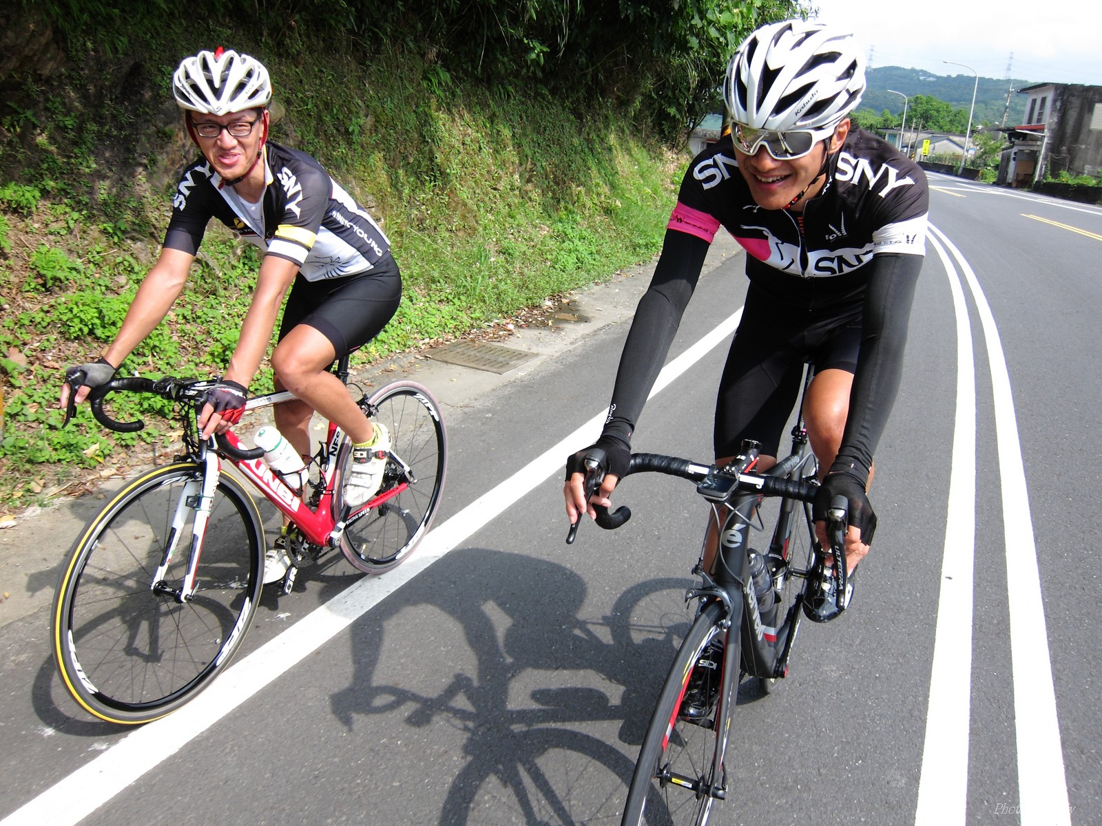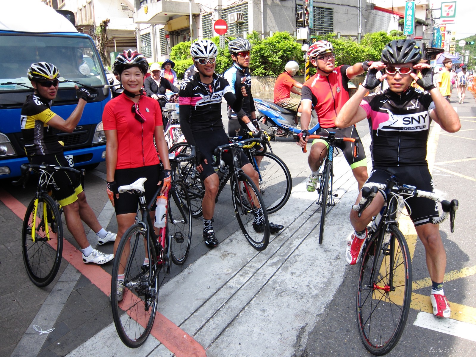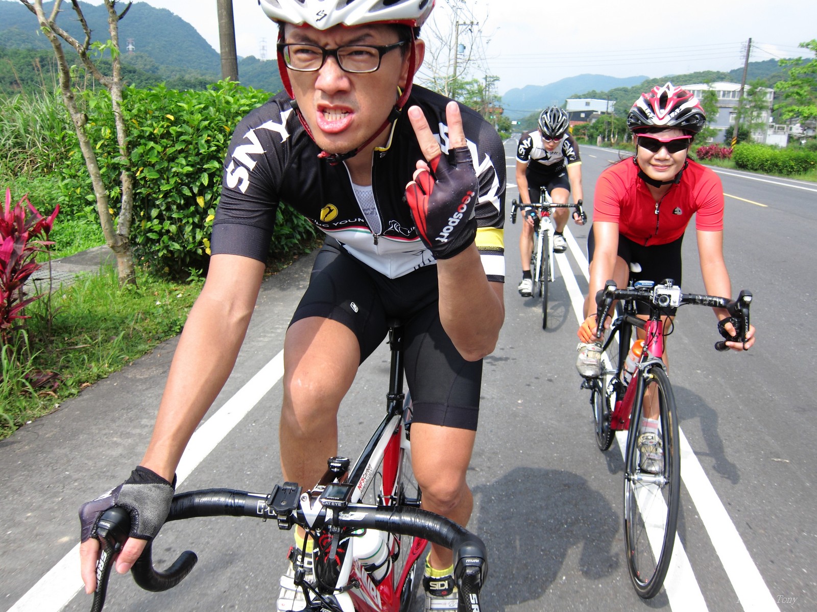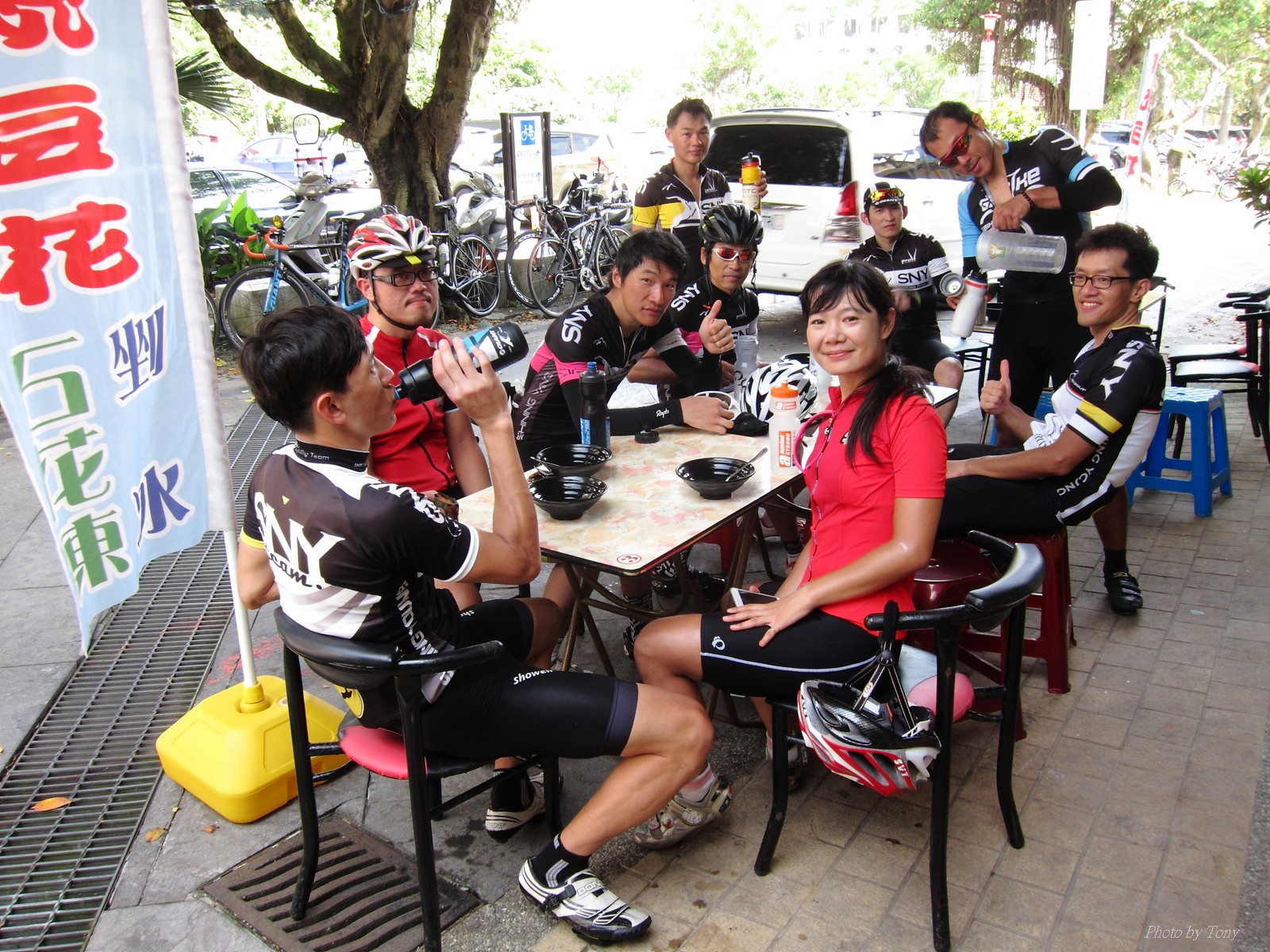SNY的東進團報名繳費了 再來就是要努力練習不要被關門了 SNY MOMO開了個106-福隆--頭城--北宜回的路線!! 考慮太遠,本來不想跟了 沒想到沒勁小隊隊長 -- 美靜傳訊息問我要不要一起去? 因光叔說到福隆就折返~,還見者有份吃冰吃豆花!! 雖然約7:30石碇集合,但搭著SNY特快車應該有機會可以中午回到家的!! 且有小隊長罩著..,我若被放生還會有人照顧:P 可能是因為前一天比賽的關係,這天約只有10人一起出發 106前半段都還是跟的住,但每到姑娘廟前的大轉彎處.. 就準備被放生了XDD 下坡和美靜集結後一起往前追... 還好卡大師、MOMO和昌哥有在十分等大家!! 待所有人到齊後,馬上再直奔福隆 雙溪隧道前是緩坡,努力跟上卡師火車頭,但快到隧道口前.. 美靜突然讓出位置要我往前補.. 我和她搖頭說...我也沒力了XDD 還好進了平雙隧道就是下坡 前面火車頭再放慢一點後,就可以努力跟回集團 到了雙溪前,MOMO 、TONY HUANG 都輪流開火.. 我是俗辣,跟著都有吃力了,那能開火或出去擋風 可是小隊長美靜最後還可以去搶衝刺點,真的就太強了XDDD 之後就輪到光叔火車頭上場.. 媽呀..這是昨天有比賽的人嗎?? 怎麼這麼有力... 死跟活跟還是在最後要接到濱海時前的小上坡給拉開了 還好越過小上坡後就是濱海公路,也離福隆僅剩1公里而已!! 這福隆的石花凍還真不是輕易就可以吃到的!!! 回程可以不要再用逼死人的速度嗎?? 嗯~~一開始果然很有人性,大家都可以跟在一起 但到了雙溪附近,MOMO又按奈不住衝出去了~ 不要理他,不要理他~~火車頭千萬不要理他!! 還好卡師說..到上坡再追就好!! 嗯~~我也只能跟到平雙隧道前2K處,這2K平均坡度5%~ 但火車頭的擋風效應已不抵擋不了爬坡的重力了 只好看著火車頭遠去 還好美靜沒離太遠,進了平雙隧道後,加把勁跟上... 出了隧道,光叔看到美靜到了,也就出發,幾乎沒有喘息的機會,後面的FRANK和LEO也來不及跟上來就被放生了~ 不過往平溪的路上還有不少緩坡,光叔再拉幾個間歇後,我的大腿終於發出要抽筋的哀豪警訊,才熊熊想起剛在福隆忘了吃個鹽錠補充鹽份了~ 所以幾乎是馬上失速了,沒1分鐘,主集團就消失在我在視線裡>"< 一個人慢慢凸到平溪,打算到那補水吃鹽錠,沒想到主集團居然在那等大家,說要去平溪吃豆花... SNY好像沒有停留二次補給的,這次真是太另人感動了 且福隆光叔請吃石花凍,昌哥在這請大家吃豆花...... 吃了飽飽後..再來是一點上坡就要下坡了,要回家了,是要放鬆點了吧!! 這一段算是相當平和的到了頂點 只是頂點前,美靜居然再提議要搶衝刺點..><.. 好險~光叔和卡師不為所動.. 總算撐到緩下坡了..(整體是下坡,但夾雜了一些平路和小上坡,不用力踩還是不會動的!!) 但這段還是不給活啊~ 9.6km,平均心跳169,最大心跳180.. 平均速度 43.9 下坡也是騎到累噓噓 石碇到動物園段,我決定不再死命跟著光叔了(腿又快抽筋了,所以也跟不上了!!) 因為美靜回家路線和我一樣,所以就陪我慢慢騎回去.. 操了這半天,腿痠了2天還沒完全恢復.. 硬歸硬,這次還好洛克、E神、獅王、志平、和大水管清志哥....等眾高手都沒來 不然我想強度會再拉高個10-20%,一上路..直接就放生XDDDD