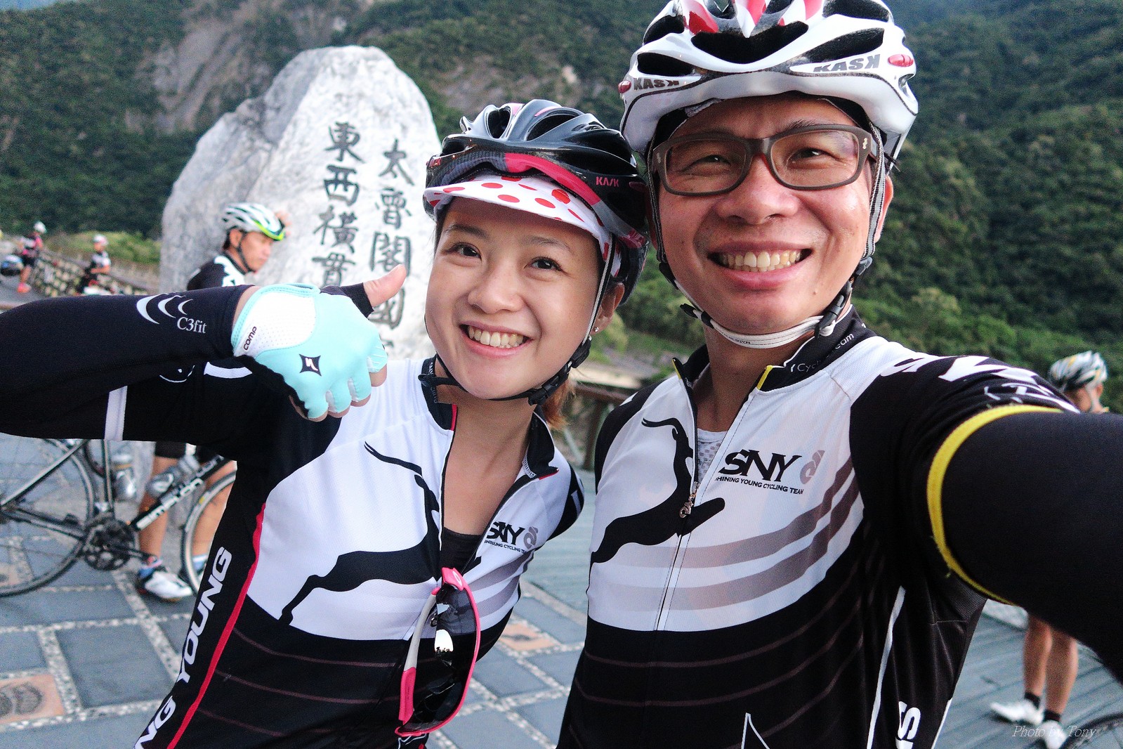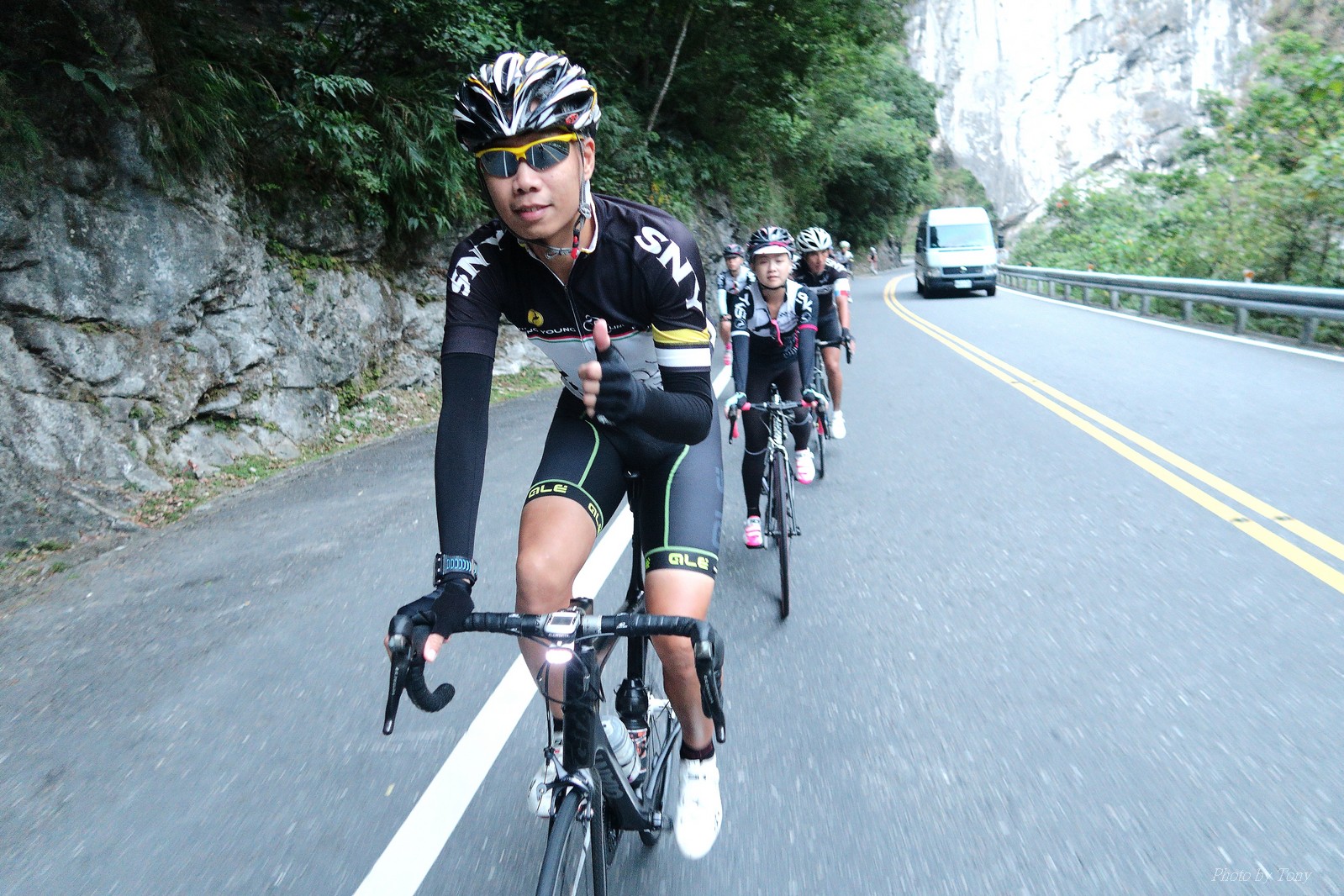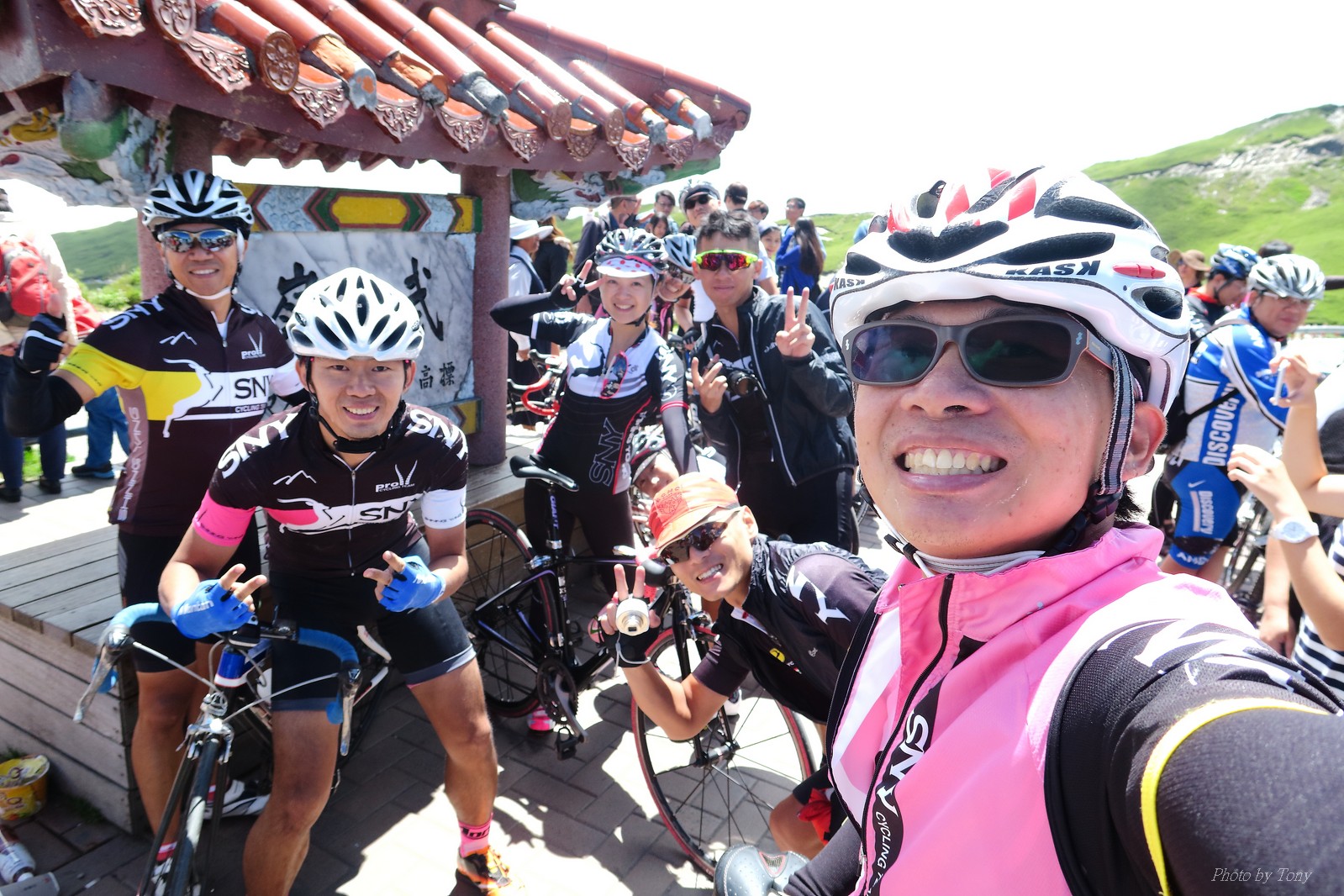 西進武嶺後,東進武嶺便一直是我另外一個目標.. 出發前把路線和坡度,研究了好幾次~ 也試著騎3P訓練自己,我想..我應該可以完成的吧!!! 沒想到~~沒想到....我在新白楊就GG上車了Orz 說沒有遺憾,沒有懊悔是騙人的 但跟著一群車友,大家嘻嘻哈哈,玩樂打屁拍照 一起享受山上的涼風 就不再拘泥是不是騎完全程了!! 若一直死腦筋打結打在這,面對火哥強大的鏡頭都笑不出來 我想..那才會是這趟旅程最大的懊悔吧!!^++++++^ 感謝SNY舉辦這個活動,還有謝謝三位司機大哥的強力支援,更要感謝火哥的超強火力支援,看到沿途的美照...真的沒騎完都沒關係,沒拍到才會槌心肝啊!!哈哈哈~~ -------------------------------------------------------(以下為流水帳文) 原定7/11的SNY的東進武嶺,因颱風來攪局打亂延期 終於在8/1順利啟程 從原本40多人的超大團,瘦身成28人的中型團 也因為取消的大多都是英菁組的成員,所以此團瞬間成為休閒歡樂團 愛大說7個半小時關門,我也按時間規劃了一個行程表 原以為應該可以順利的完成 沒想到..沒想到...才騎不到5K後輪就破風.. 經過10分鐘的緊強搶修後,雖然知道不要硬追,還是多用了些力..(此時碼錶又來亂,心跳、迴轉速常常測不到,坡度計亂跳XDDD) 幸好有情有義的LEO叔叔留下來陪我,但前一晚幾乎沒什麼睡的我.. LEO叔叔才用心跳150在騎,我的心跳就將近170..,不得不說今天的狀況不太妙 而到了西寶之後,神許說要來和我慢慢騎 西寶到洛韶的坡度真的不大,緩緩的很好騎 車少,氣溫很涼爽..聽著神許帶來的動漫歌曲,騎起來真的是輕鬆又舒服 但新白楊前2-3K坡度稍微大了點,神許再稍微加了點力...我就跟不上了 慘的是..到新白楊一下卡,我就發現我二隻大腿嚴重抽筋..Orz 我在那站了一分鐘都不能動..超慘XDDD 稍微休息一下後,本來想繼續騎騎看,沒想到才往上騎100公尺,我就發現..又抽 筋了XDDD 決定回頭上車..(現在想想真是正確的決定,因為才有關原精采的照片XDD) 這一坐就一路坐到關原加油站.. 其實那時心中有些沮喪的,今天的自己怎麼會這麼弱..,才到新白楊就GG 既然沒完成,那再來有沒有騎也沒差太多吧~ 但大家都說要下車開始騎了,我也不好意思再待在車上(車上還有NATSUMI、盛哥、文彥..) 試騎了一下,大腿的狀況好像有好一些,從這到大禹嶺只有4公里多,坡度也不陡.. 那就騎騎看,反正不行再上車就好~ 要走之前,剛好火哥也到了,準備在這幫大家拍照.. 我們這幾個坐任意門的,反而先享受火哥和楊大哥的火力支援 就在那來來回回的騎了3趟騙照片.. 其它一路攻頂的SNY車友到了之後,也都叫他們回頭去多繞二次~~ 最後所有先到達的人還排成一大排,手搭肩,拍大合照,真的是超歡樂的!!之前心 中的沮喪也一掃而空,沒完成,自己能力不足,準備不夠,下次再來挑戰就好,但這次該玩該拍的還是要好好玩!!!! 從關原到大禹嶺的這4K,柏儒陪著我慢慢騎,他說..他想到最後的9K就頭皮發麻 這邊他完全不想用力騎..他要好好準備體力面對最後的9K~~ 而之前大抽筋的我上的了最後9K的天堂路嗎?? 只要想辦法不抽筋就好..即使再怎麼慢,也不用力騎.. 9K的天堂路可以分為二階段,以小風口遊客中心為5K中間點.. 從大禹嶺出發的前3K可以算是最硬的,陡坡連發不斷,陡坡時我時速降到只有5-6K~,但到可以喘息的平路時,我一樣只有時速5-6K,因為下個陡坡又在前面,不儲存體力,我一定會抽筋..XDD 其中一個大陡坡,還看到神許蹲在路邊拍照,一直大喊:Tony不要扭了,快抽車上... 神啊,恁背要是抽車,一定連帶抽筋定竿加摔車給你看啊XDDD 到了合歡北峰登山口,這個點VIEW很讚,不停下來拍照對不起自己~~ 龜啊龜的~總算龜到小風口遊客中心,還有4.5K~大腿已在抽筋邊緣,我到底能不能騎完?? 我不是已經殘念了??為什麼還騎的那麼認真啊??XDDD(心中雖然這麼想,還是繼續騎~~) 從小風口再陡上2K後就下滑1K,最後就是平均坡度11%的最後700M~ 一開始的1K又是TMD的陡..陡到真的想罵人...Orz 好不容易爬到快3200m,又要下滑1km,再重新爬一次... 不過也剩最後700多公尺,不休息直接拼了.. 無力騎快,只能慢慢騎,也慢慢享受最後的這一段路,攻頂後就解脫也就休息了!! 騎到一半,怎麼塞車了.. 在這下車肯定就要牽車了,左扭右扭,騎路右邊,騎路中間..,兩邊輪流鑽來鑽去...,想辦法不要下卡落地 總算也讓我騎上來了!!! YA~~最後這9K天堂路我挺過來了... 雖然沒有全程完成,但我心口還是有些感動的!! 沒關係,這次準備的不夠充足,有機會下次繼續加油!!!繼續HAPPY~~ 到集合點才吃中飯的小鴻哥!! 最近實力大躍升的壞叔叔LEO HSU 喵王 LEO WU 這次石頭二朵花也都出席了這場活動,讓陽剛味很重的SNY多了一點溫柔的氣息!! 超級攝手,火哥!! 單車美少女外拍..重現江湖XDDD 感謝文彥準備了豐富的補給!! 歐喔~~花生什麼事?? 這車隊怎麼有點亂??XDDD ---------------------------------------------- 凌晨4:30,吃早餐了!! 從天黑拍到天亮~~大家很對太魯閣牌樓相當的依依不捨!! 出發了~出發了~ 峽谷美景加上SNY大隊~~很讚!! 沒想到騎不到5K就爆胎了XDD 感謝有情有義的LEO叔叔留下來陪我!! 燕子口附近要慢慢騎來拍照!! 沒想到在天祥前居然追到了NATSUMI和蛋蛋~~ 此團實力最堅強的四位--EASON、神許、小謝哥和光叔都留下來陪石頭二朵花,真是太感動了!! 陳寶寶真的很棒,速度雖沒有多快,但就很穩定的一路騎上大禹嶺.. 不像我..新白楊就GG了XDD 新白楊後,神許說要來和我一起