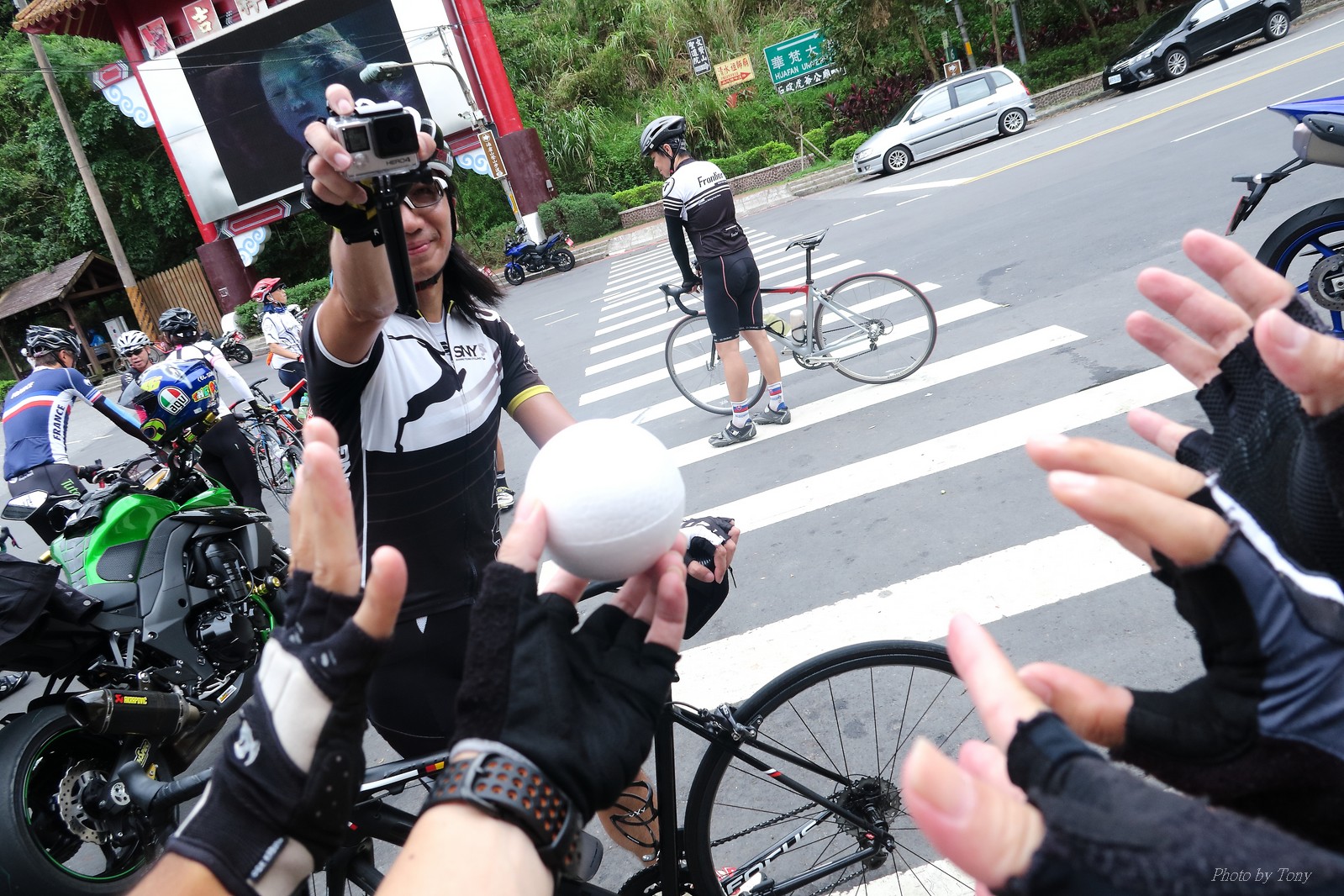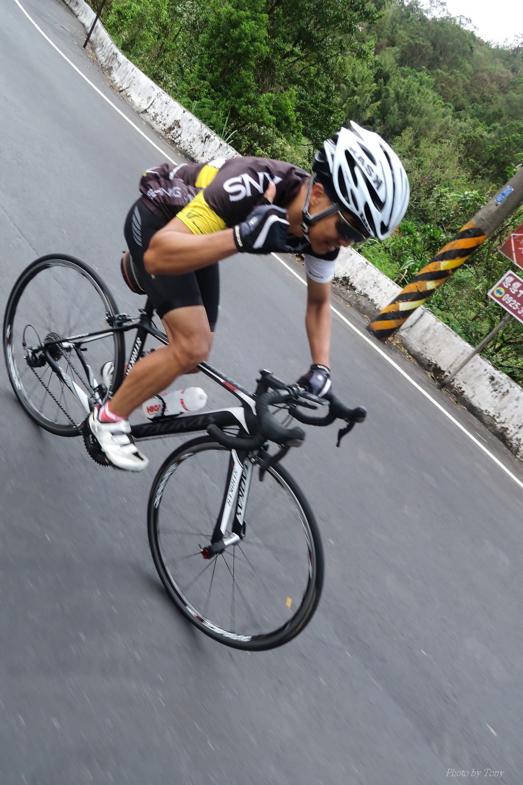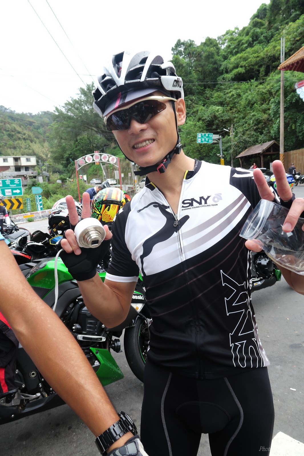 前一週颱風打落了五分山氣象站雷達的外殻(像球一樣的殻) 所以艾大發起了一起去找球的活動.. 還自備了一顆保麗龍球要上去拍照(真的超有梗的~) 一早來到石碇的便利商店集合,沒想到遇到了小頡叫念、浮爺、魚罐頭...等人 說叫念都偷偷騎,沒約我們...想想,因為大部份的人都參加了SNY,所以就沒特別把訊息再PO到石頭車隊中,所以叫念當然就不知道XDD 這天的SNY團騎人數比想像中少,應該是前天武嶺盃騎的太慘烈了,不過特別的是神許和蛇皮哥都有來..,原以為今天會騎的很平和... 沒想到一開始蛇皮哥就把強度拉高..拉到連艾大都受不了... 因為按那強度,應該到姑娘廟就GG了,不用再爬五分山了XDDD(這強度..NATSUMI很早就被拉開了XDD) 蛇皮哥也如大家所願把強度降低,讓大家順利過了放生彎.. 沒想到放生彎之後..壞叔叔LEO居然從後面上來,一邊嘴巴說好累,一邊就把強度拉上去...我心裡OS:這壞叔叔是東進後脫胎換骨了嗎?? 這姑娘廟後爬坡才開始啊~~~~ 然後一轉彎看到個大長坡,壞叔叔LEO居然就讓到一邊去.. 喵的,是來亂的喔~~ 這時蛇皮哥、神許和昌哥強度也拉出來了,就只能看著他們的背影離開.. 和艾大二人一前一後來到菁桐高點,看一下碼錶,又破PB了... 下坡後連忙加速跟上前面三人集團,總算在菁桐前接上.. 沒想到平溪後換艾大發動攻擊...媽呀,好累.. 看著前面的神許還老神在在的慢慢加速騎,那我跟著神騎總沒錯的!!哇哈哈~~ 看看時間,中午要家庭聚餐,若上了五分山,我回家後可能會被打斷狗腿 所以只能騎到十分就折返,回程看看時間還充裕 就爬個汐平再回家.. 沒想到回程的新台五線風好大..一個人推真辛苦 好險也在10:30前回到家,沒淋到雨,算是幸運啊:P