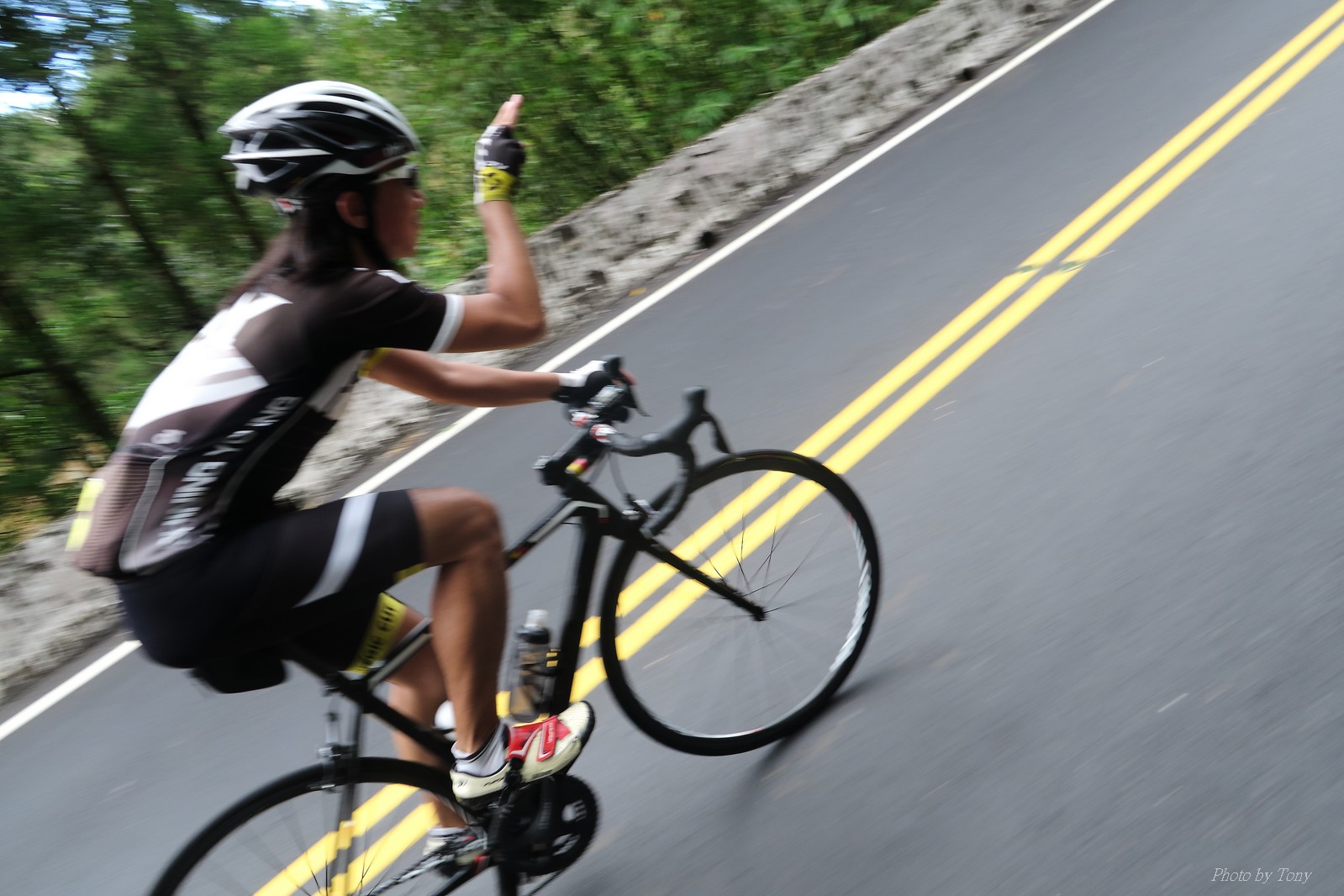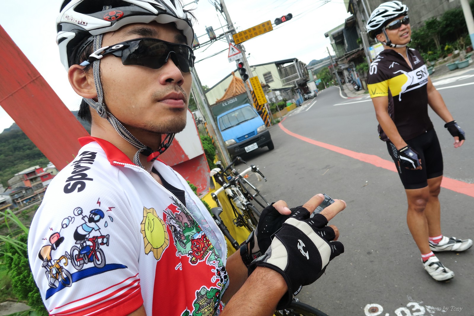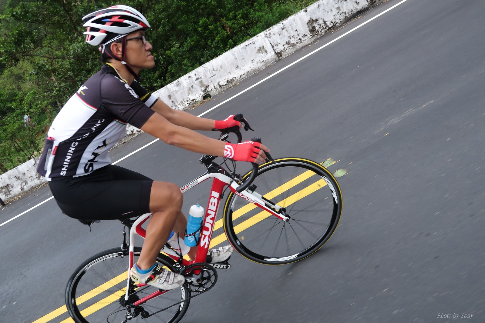 前一週颱風打落了五分山氣象站雷達的外殻(像球一樣的殻) 所以艾大發起了一起去找球的活動.. 還自備了一顆保麗龍球要上去拍照(真的超有梗的~) 一早來到石碇的便利商店集合,沒想到遇到了小頡叫念、浮爺、魚罐頭...等人 說叫念都偷偷騎,沒約我們...想想,因為大部份的人都參加了SNY,所以就沒特別把訊息再PO到石頭車隊中,所以叫念當然就不知道XDD 這天的SNY團騎人數比想像中少,應該是前天武嶺盃騎的太慘烈了,不過特別的是神許和蛇皮哥都有來..,原以為今天會騎的很平和... 沒想到一開始蛇皮哥就把強度拉高..拉到連艾大都受不了... 因為按那強度,應該到姑娘廟就GG了,不用再爬五分山了XDDD(這強度..NATSUMI很早就被拉開了XDD) 蛇皮哥也如大家所願把強度降低,讓大家順利過了放生彎.. 沒想到放生彎之後..壞叔叔LEO居然從後面上來,一邊嘴巴說好累,一邊就把強度拉上去...我心裡OS:這壞叔叔是東進後脫胎換骨了嗎?? 這姑娘廟後爬坡才開始啊~~~~ 然後一轉彎看到個大長坡,壞叔叔LEO居然就讓到一邊去.. 喵的,是來亂的喔~~ 這時蛇皮哥、神許和昌哥強度也拉出來了,就只能看著他們的背影離開.. 和艾大二人一前一後來到菁桐高點,看一下碼錶,又破PB了... 下坡後連忙加速跟上前面三人集團,總算在菁桐前接上.. 沒想到平溪後換艾大發動攻擊...媽呀,好累.. 看著前面的神許還老神在在的慢慢加速騎,那我跟著神騎總沒錯的!!哇哈哈~~ 看看時間,中午要家庭聚餐,若上了五分山,我回家後可能會被打斷狗腿 所以只能騎到十分就折返,回程看看時間還充裕 就爬個汐平再回家.. 沒想到回程的新台五線風好大..一個人推真辛苦 好險也在10:30前回到家,沒淋到雨,算是幸運啊:P