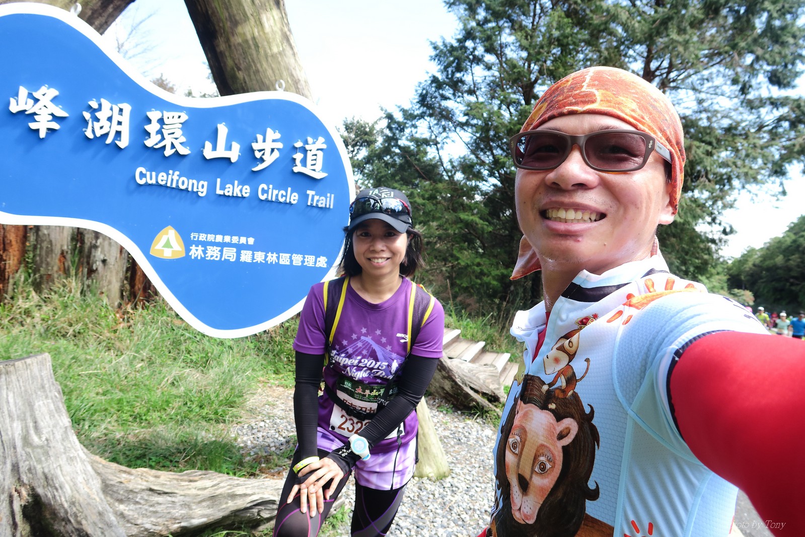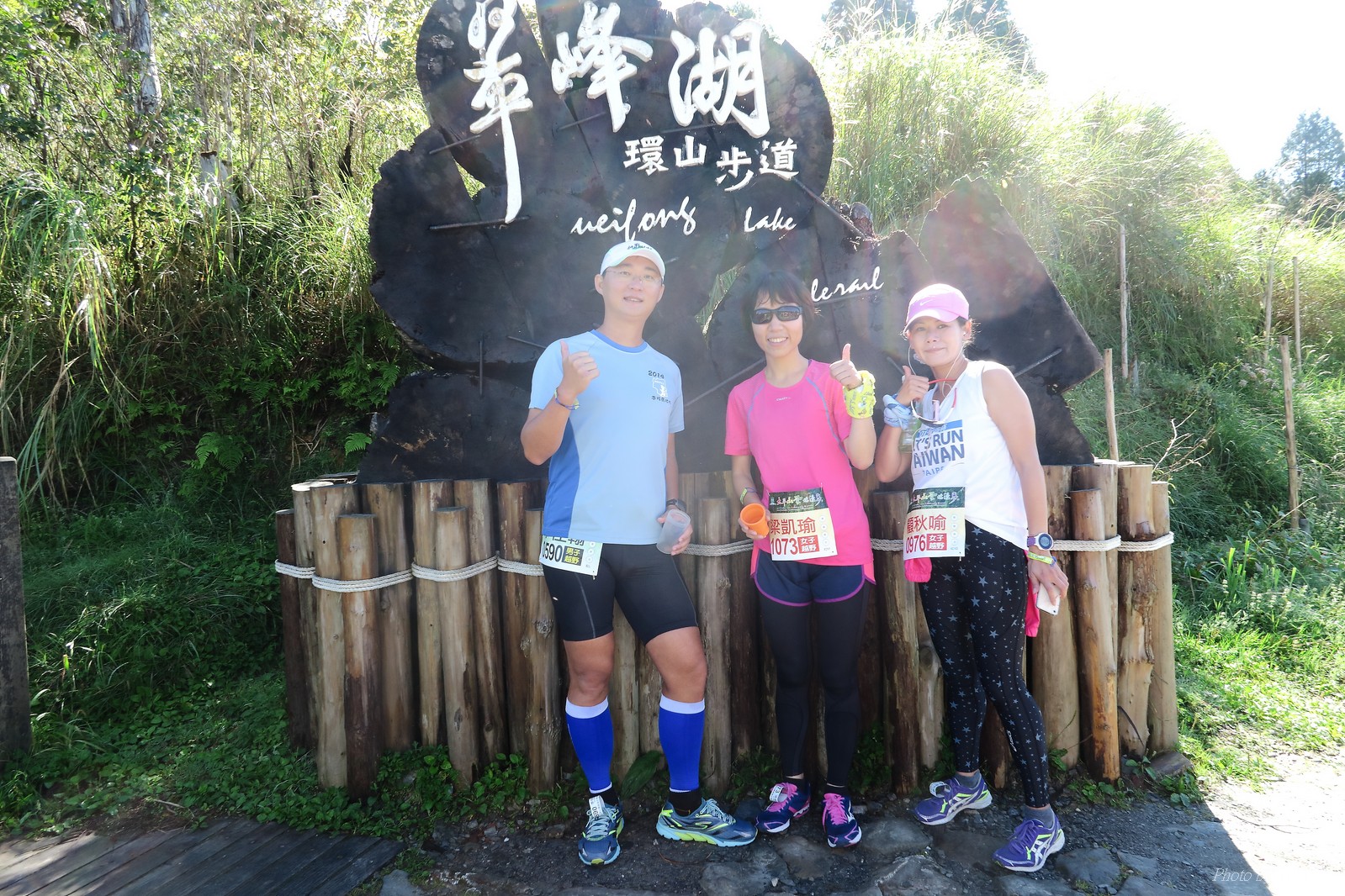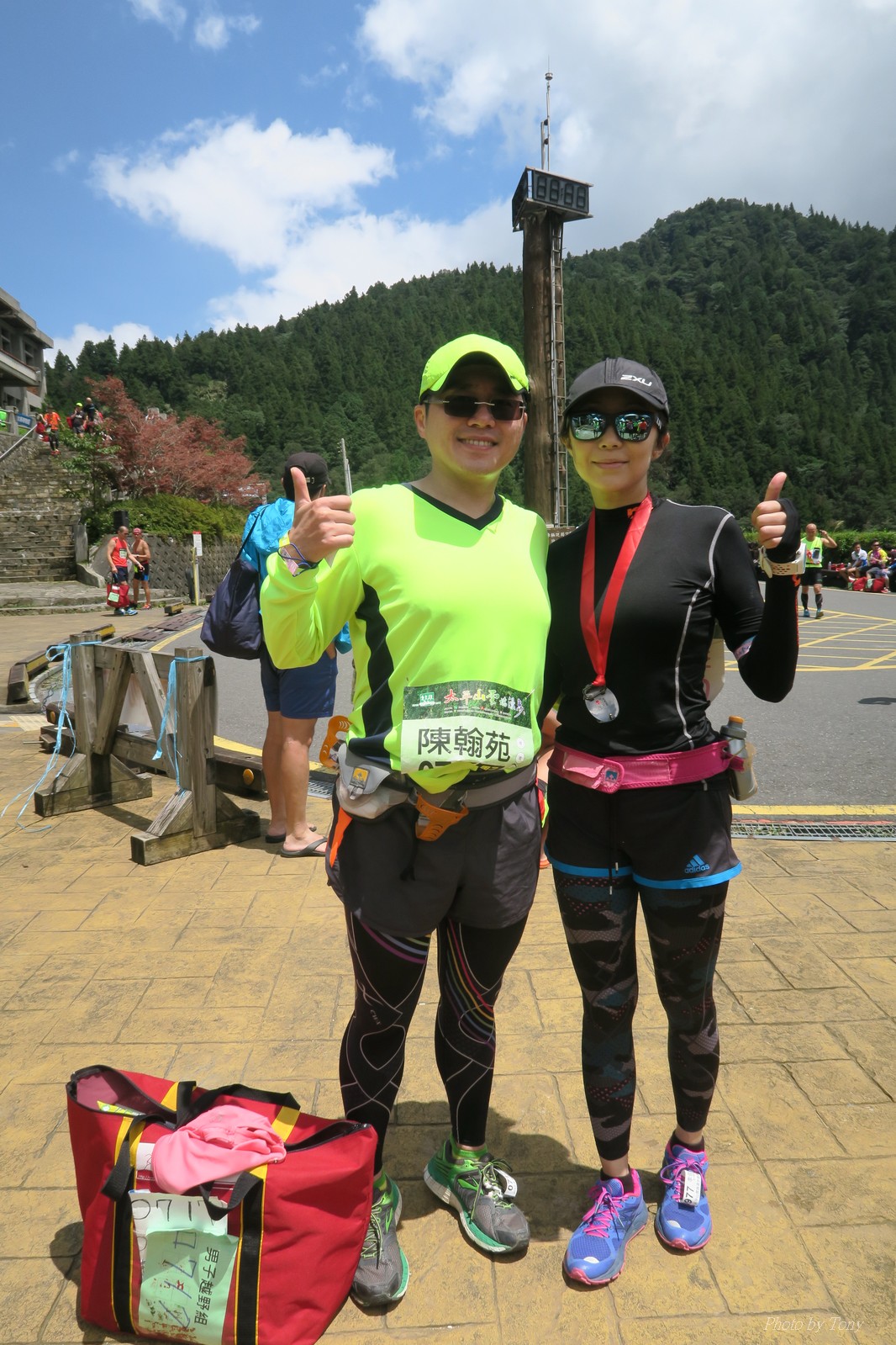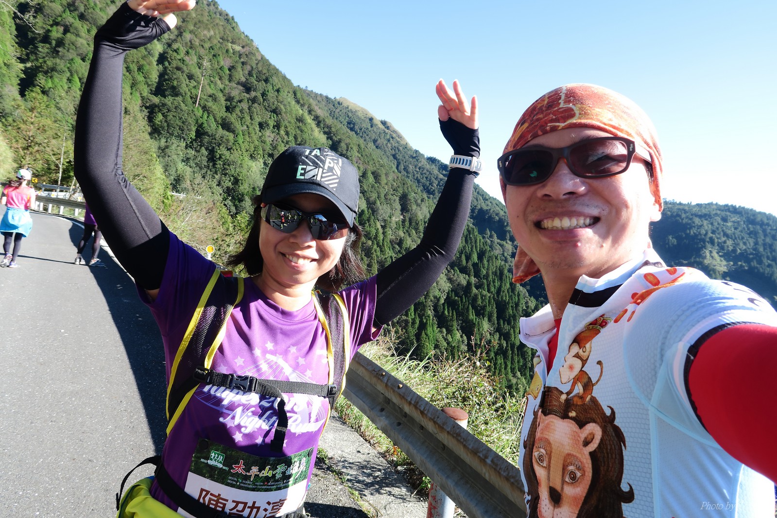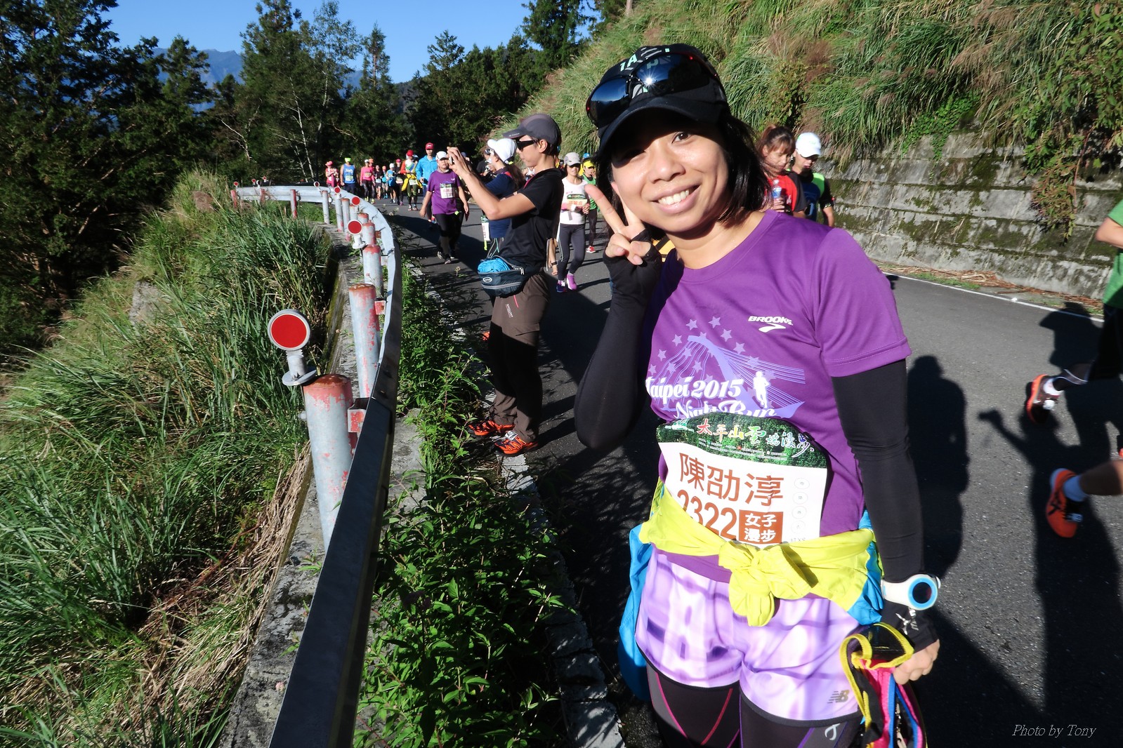 話說會想參加太平山馬都是因為....看到小V穿的螢光黃風衣外套 還真是又亮又好看~ 衝著好看的風衣和許久未去的翠峰湖,我就報名了!! 報名了34K超半馬組!! 報了34K為什麼不報全馬??只差8km耶~~ 因為9月初比賽,7月和8月正熱,不太可能太常練跑 雖然只有多8K,但那8K是全馬最痛苦的8K~ 想想我還是跑太平山到翠峰湖來回就好,不用假會為了多一個全馬,而報42K~(事後証明我的決定是對的!!哈哈~) 原本還想要帶全家一起去加油 沒想到...太平山上的住宿就算是不便宜,但想訂還訂不到咧..Orz 只好含淚一個人開車去 晚上10:30抵達收費站 同事ALEX和她老婆正坐在路邊喝美酒,賞星星 真是很愜意 我也小酌一杯紅酒,讓自己好睡覺!! 隔天一早4:30起床,5點和ALEX夫婦共乘一台車出發往太平山莊出發 到了停車場先和阿貝集合,雖然只剩下10分鐘,但我還是在那邊慢吞吞的整理 還一度想大號,不過人實太多..不得不放棄XDD 今天的天氣非常的好.. 而且整個賽道管制,路上只有跑者,和零星幾輛大會的工作車 跑在海拔1800-2100的林道上實在十分舒服.. 因為前幾個月的跑量實在不多.. 所以這天的策略就是採取郊遊模式!!!! 前10K花了快1個半小時..算是破了最慢記錄吧XDD 10K之後就是較陡的2K..這邊就先離開阿貝,一個人先往翠峰湖折返點跑去.. 下坡時先遇到這次得到總8的小賴大哥 下到翠峰湖再遇到ALEX夫婦,那時二個已逛完翠峰湖準備往回跑了,二位真是實力堅強啊~ 沒一分鐘再遇到NEO老書..,請他先到翠峰湖觀景台等我,我先去折返點拿信物 匆匆在折返點吃點補給後,趕緊來去找NEO老書 讓NEO老書等了10分鐘還真是不好意思啊~ 因為他要多跑我8K,所以請他先跑:P 我在翠峰湖旁繼續閒晃等阿貝 沒幾分鐘後,阿貝也出現了.. 二個人拍了好幾張照之後才離開翠峰湖旁 從翠峰湖上到制高點約為5KM..幾乎都是較陡的坡 為了好好儲存後面11公里的緩下坡,這裡就採取快走模式..哈哈 反正不要讓ALEX夫婦等我太久就好~ 後來快到坡頂前,看看時間好像會拖太久,就開始加速往太平山莊跑去.. 說是加速..只實也沒多快..只有6分多速,最後幾K甚至只有6分半了 這時不得不說每3.5KM就有個補給站實在太貼心了,跑到快累死時,剛好就可以小休一下:P 在倒數第二個補幾站時遇到ALEX老婆--李醫師正準備要折返(那時表示她領先了我快8KM了~~) 瞬間讓我放心了一些,跑的比別人少8KM,還讓人家等太久就真的很不好意思...XDD 不過沒多久,就突然被李醫師大叫我名字,害我差點軟腳,怎麼這麼快就追上我了.. 原本還想試著跟跟看,不過跟了500公尺後,我還是決定放棄XDD 慢慢的不要抽筋的跑進終點比較實在!!! 最後以5小時05分完成34K~ 想當初初馬丹大林道43K,也是5小時初頭,這次才跑34K也是5小時初.. 真是有夠鬼混的..(其實實力大退~~,沒練就沒耐力,很現實的) 不過練不夠就是這樣啦,不用太在意成績 有玩到~有拍到~有開心就好!!!(回程塞國道五就不開心了,累死人了啊XDDD) 下次還想參加嗎?? 若撇開交通和住宿的問題,這真的是一場非常優質的比賽:D 一到太平山就遇到這次總8的賴大哥 這次陪我鬼混的阿貝,話說..阿貝可是參加過鎮西堡和北大12小時賽的高手呢!! 今天的天氣真的很棒,在海拔1800-2100的山上,這種大太陽剛好溫溫的,不會熱!! 實力堅強的ALEX夫婦 出發囉~ 觀光客模式~~ 看到美景,大家都停下來拍照!! 這個豆干好好吃...我吃了5-6個才離開!!哇哈哈~~ 本次總8的賴大哥,很快的就折返了!! 這次不僅有水,運動飲料,還有可樂!! 遇到NEO老書了:D 好久沒來翠峰湖了... 放閃小情侶 累了..XDD 這是我第一次喝雞精.... 有正妹耶~快加速前進XDD 有海尼根耶~不過我酒量太差,拍拍照紀念一下就好:P 被李醫師刷卡了XDD