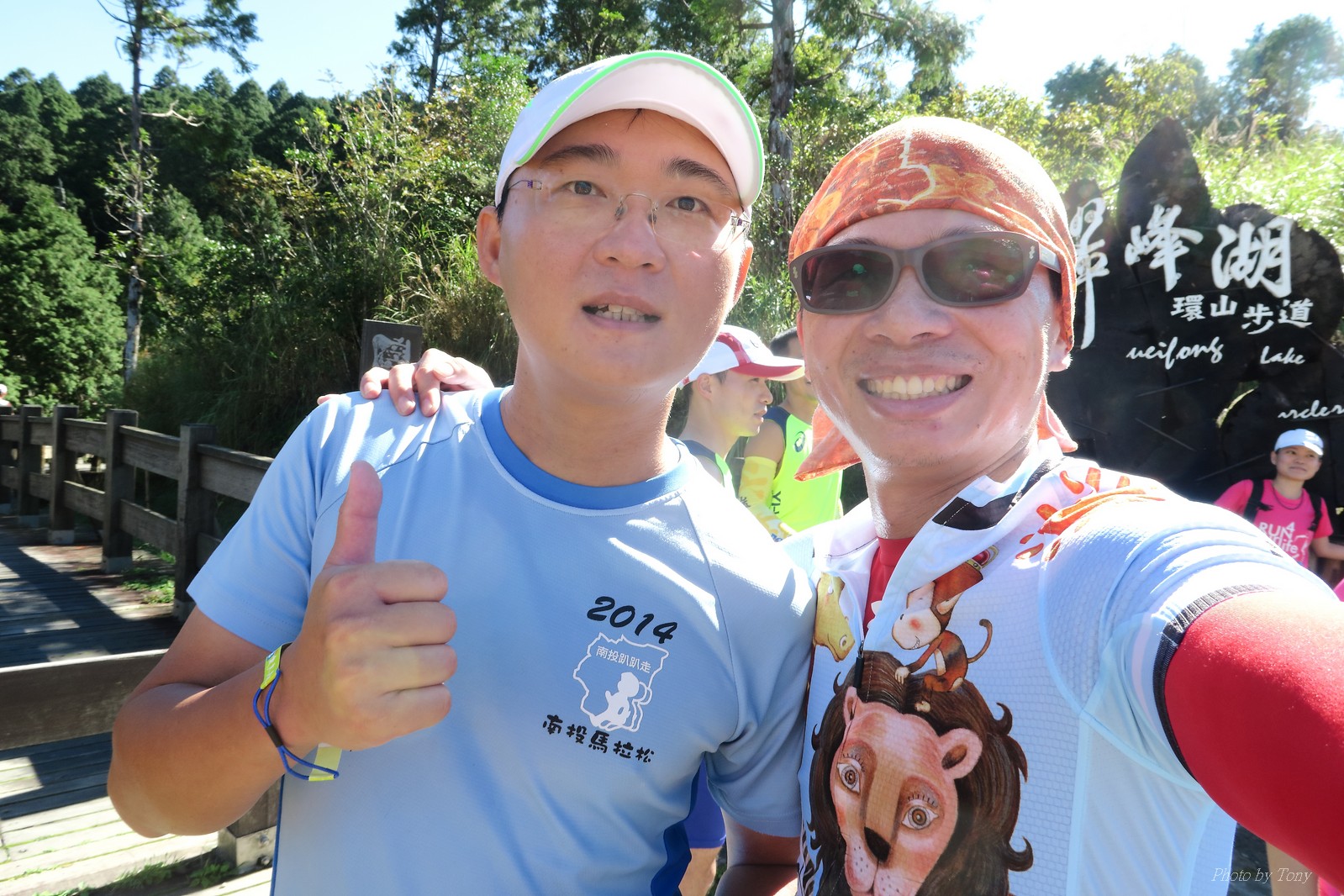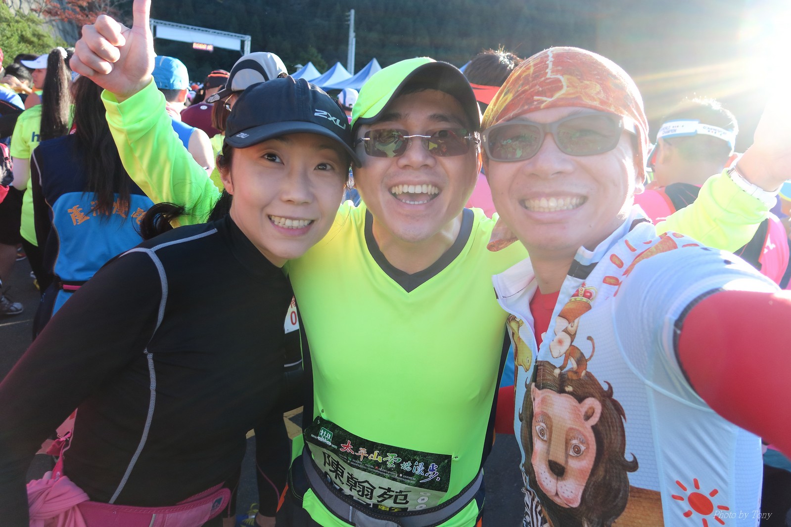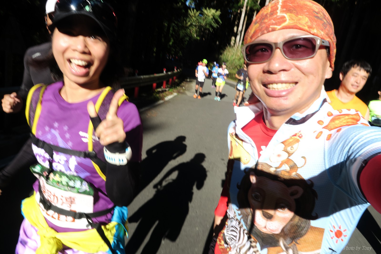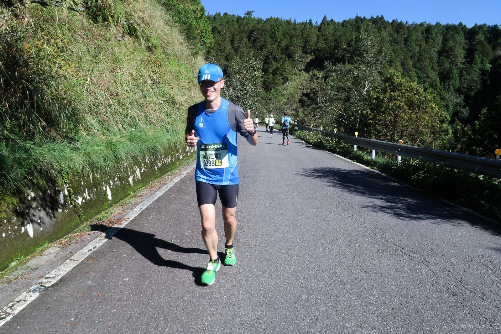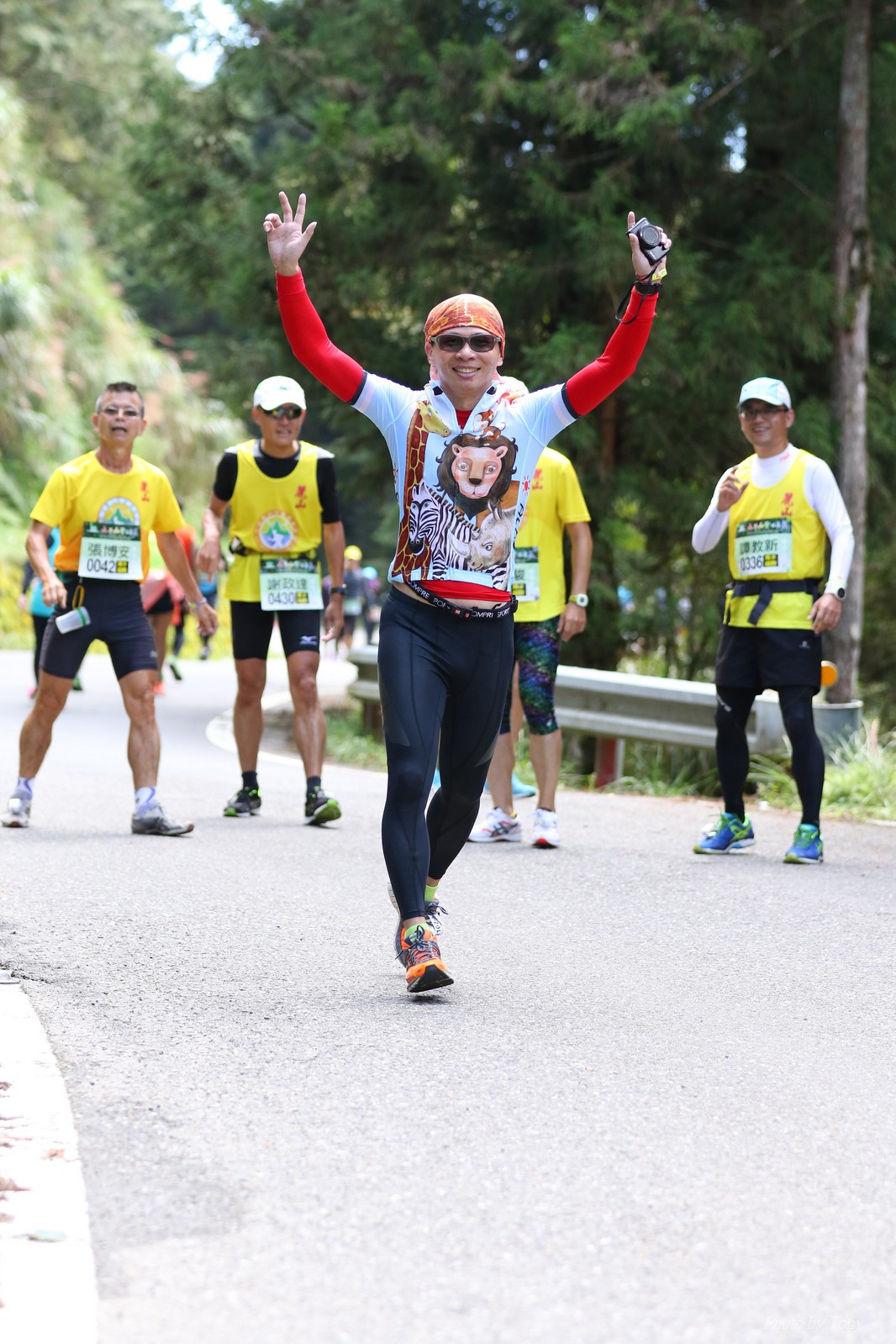 話說會想參加太平山馬都是因為....看到小V穿的螢光黃風衣外套 還真是又亮又好看~ 衝著好看的風衣和許久未去的翠峰湖,我就報名了!! 報名了34K超半馬組!! 報了34K為什麼不報全馬??只差8km耶~~ 因為9月初比賽,7月和8月正熱,不太可能太常練跑 雖然只有多8K,但那8K是全馬最痛苦的8K~ 想想我還是跑太平山到翠峰湖來回就好,不用假會為了多一個全馬,而報42K~(事後証明我的決定是對的!!哈哈~) 原本還想要帶全家一起去加油 沒想到...太平山上的住宿就算是不便宜,但想訂還訂不到咧..Orz 只好含淚一個人開車去 晚上10:30抵達收費站 同事ALEX和她老婆正坐在路邊喝美酒,賞星星 真是很愜意 我也小酌一杯紅酒,讓自己好睡覺!! 隔天一早4:30起床,5點和ALEX夫婦共乘一台車出發往太平山莊出發 到了停車場先和阿貝集合,雖然只剩下10分鐘,但我還是在那邊慢吞吞的整理 還一度想大號,不過人實太多..不得不放棄XDD 今天的天氣非常的好.. 而且整個賽道管制,路上只有跑者,和零星幾輛大會的工作車 跑在海拔1800-2100的林道上實在十分舒服.. 因為前幾個月的跑量實在不多.. 所以這天的策略就是採取郊遊模式!!!! 前10K花了快1個半小時..算是破了最慢記錄吧XDD 10K之後就是較陡的2K..這邊就先離開阿貝,一個人先往翠峰湖折返點跑去.. 下坡時先遇到這次得到總8的小賴大哥 下到翠峰湖再遇到ALEX夫婦,那時二個已逛完翠峰湖準備往回跑了,二位真是實力堅強啊~ 沒一分鐘再遇到NEO老書..,請他先到翠峰湖觀景台等我,我先去折返點拿信物 匆匆在折返點吃點補給後,趕緊來去找NEO老書 讓NEO老書等了10分鐘還真是不好意思啊~ 因為他要多跑我8K,所以請他先跑:P 我在翠峰湖旁繼續閒晃等阿貝 沒幾分鐘後,阿貝也出現了.. 二個人拍了好幾張照之後才離開翠峰湖旁 從翠峰湖上到制高點約為5KM..幾乎都是較陡的坡 為了好好儲存後面11公里的緩下坡,這裡就採取快走模式..哈哈 反正不要讓ALEX夫婦等我太久就好~ 後來快到坡頂前,看看時間好像會拖太久,就開始加速往太平山莊跑去.. 說是加速..只實也沒多快..只有6分多速,最後幾K甚至只有6分半了 這時不得不說每3.5KM就有個補給站實在太貼心了,跑到快累死時,剛好就可以小休一下:P 在倒數第二個補幾站時遇到ALEX老婆--李醫師正準備要折返(那時表示她領先了我快8KM了~~) 瞬間讓我放心了一些,跑的比別人少8KM,還讓人家等太久就真的很不好意思...XDD 不過沒多久,就突然被李醫師大叫我名字,害我差點軟腳,怎麼這麼快就追上我了.. 原本還想試著跟跟看,不過跟了500公尺後,我還是決定放棄XDD 慢慢的不要抽筋的跑進終點比較實在!!! 最後以5小時05分完成34K~ 想當初初馬丹大林道43K,也是5小時初頭,這次才跑34K也是5小時初.. 真是有夠鬼混的..(其實實力大退~~,沒練就沒耐力,很現實的) 不過練不夠就是這樣啦,不用太在意成績 有玩到~有拍到~有開心就好!!!(回程塞國道五就不開心了,累死人了啊XDDD) 下次還想參加嗎?? 若撇開交通和住宿的問題,這真的是一場非常優質的比賽:D 一到太平山就遇到這次總8的賴大哥 這次陪我鬼混的阿貝,話說..阿貝可是參加過鎮西堡和北大12小時賽的高手呢!! 今天的天氣真的很棒,在海拔1800-2100的山上,這種大太陽剛好溫溫的,不會熱!! 實力堅強的ALEX夫婦 出發囉~ 觀光客模式~~ 看到美景,大家都停下來拍照!! 這個豆干好好吃...我吃了5-6個才離開!!哇哈哈~~ 本次總8的賴大哥,很快的就折返了!! 這次不僅有水,運動飲料,還有可樂!! 遇到NEO老書了:D 好久沒來翠峰湖了... 放閃小情侶 累了..XDD 這是我第一次喝雞精.... 有正妹耶~快加速前進XDD 有海尼根耶~不過我酒量太差,拍拍照紀念一下就好:P 被李醫師刷卡了XDD