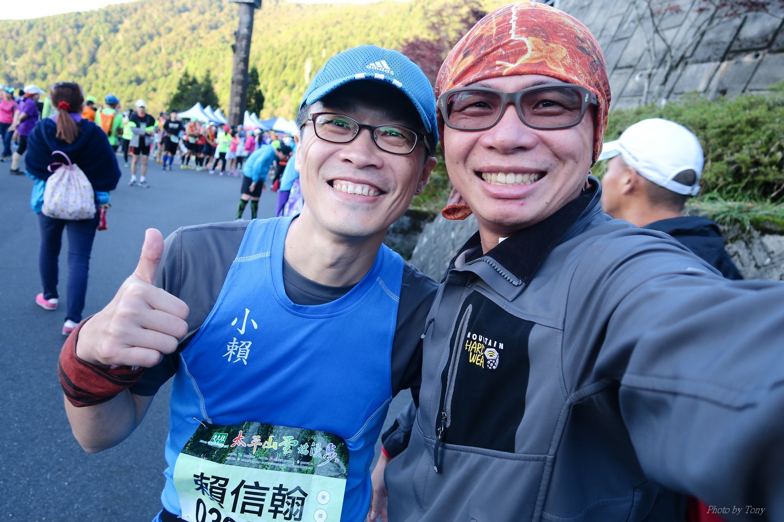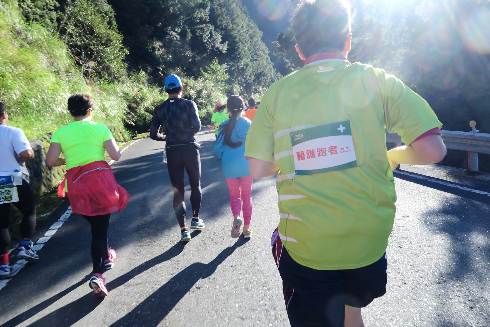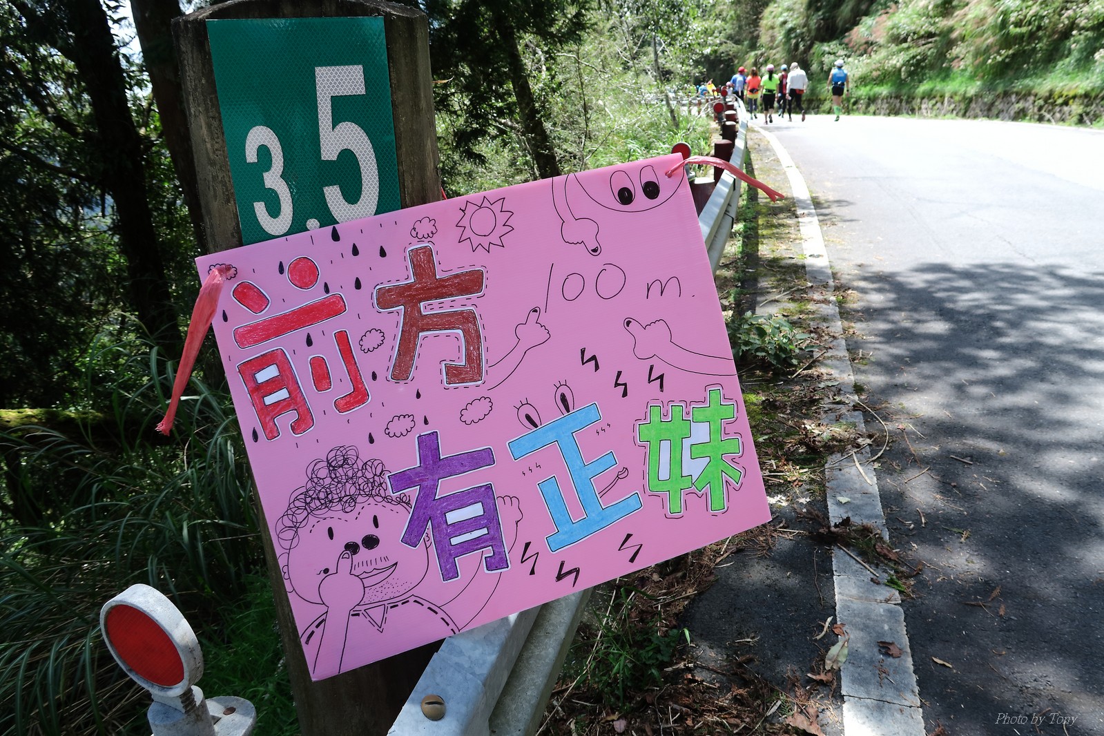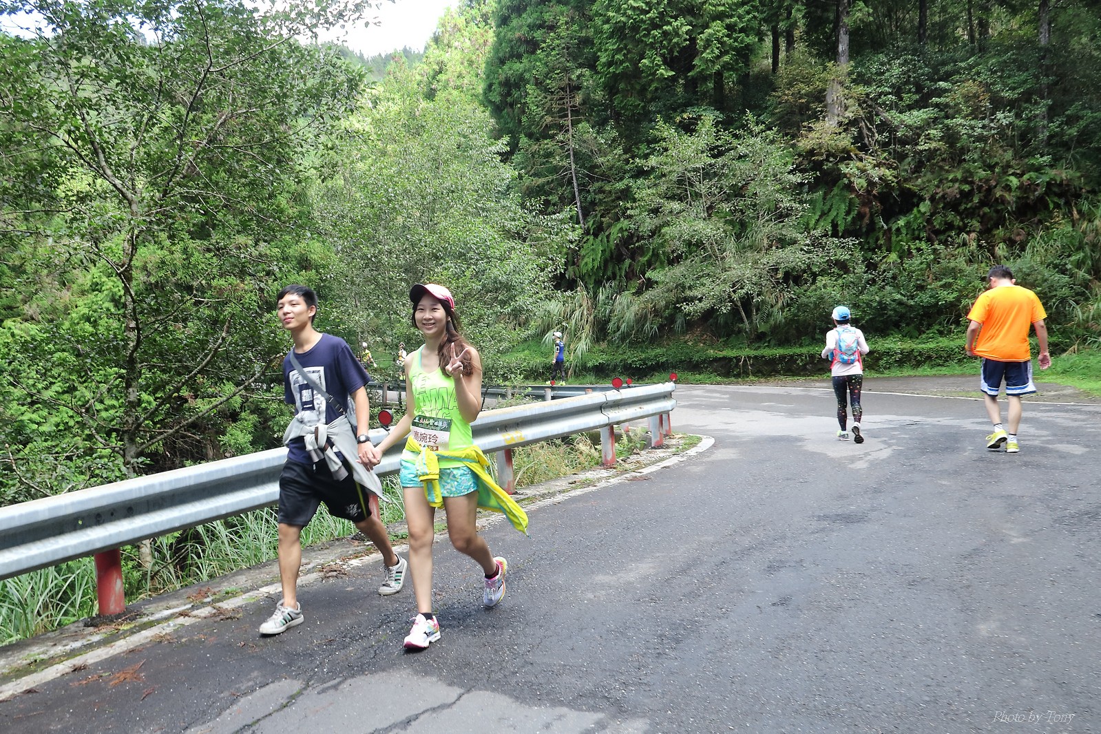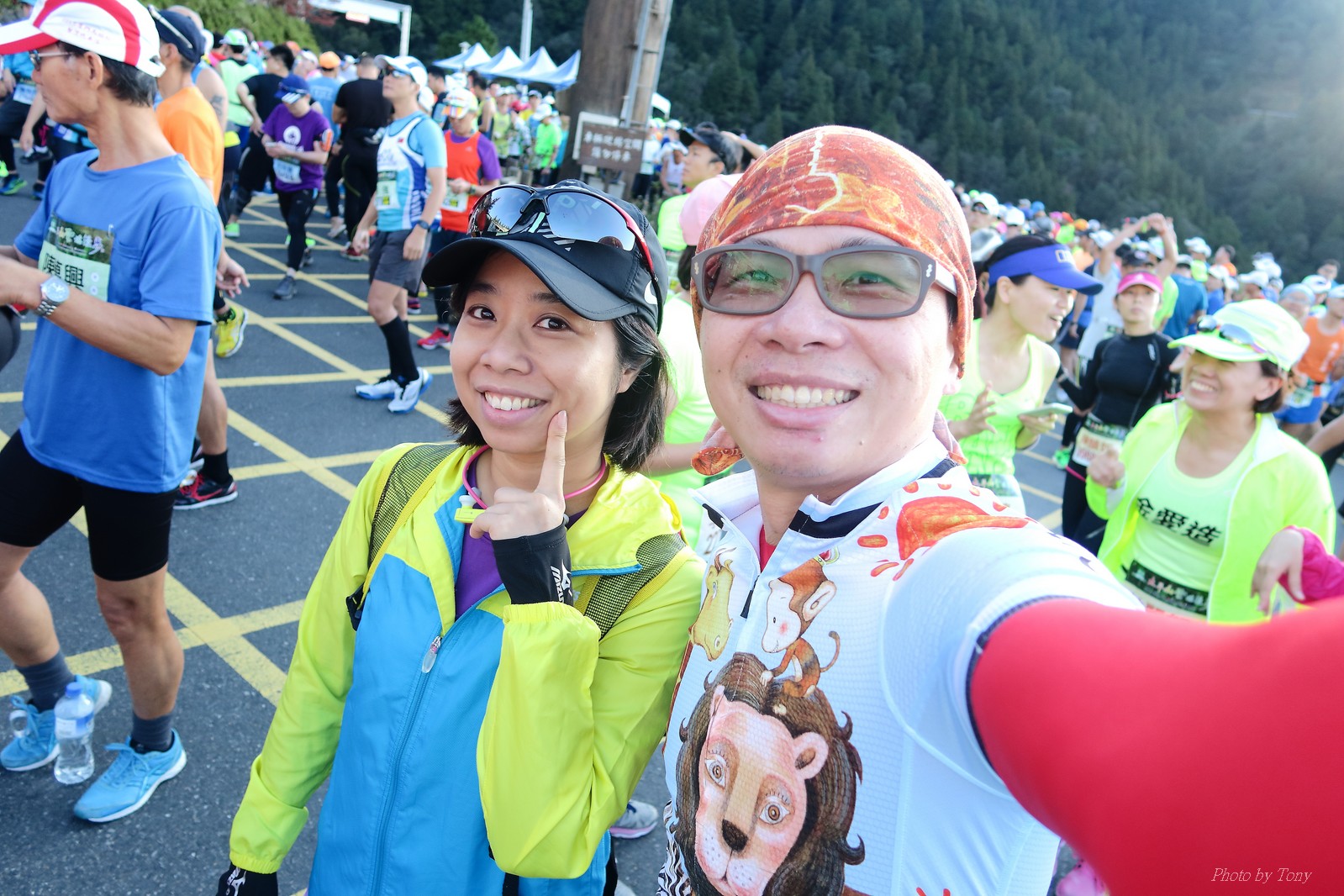 話說會想參加太平山馬都是因為....看到小V穿的螢光黃風衣外套 還真是又亮又好看~ 衝著好看的風衣和許久未去的翠峰湖,我就報名了!! 報名了34K超半馬組!! 報了34K為什麼不報全馬??只差8km耶~~ 因為9月初比賽,7月和8月正熱,不太可能太常練跑 雖然只有多8K,但那8K是全馬最痛苦的8K~ 想想我還是跑太平山到翠峰湖來回就好,不用假會為了多一個全馬,而報42K~(事後証明我的決定是對的!!哈哈~) 原本還想要帶全家一起去加油 沒想到...太平山上的住宿就算是不便宜,但想訂還訂不到咧..Orz 只好含淚一個人開車去 晚上10:30抵達收費站 同事ALEX和她老婆正坐在路邊喝美酒,賞星星 真是很愜意 我也小酌一杯紅酒,讓自己好睡覺!! 隔天一早4:30起床,5點和ALEX夫婦共乘一台車出發往太平山莊出發 到了停車場先和阿貝集合,雖然只剩下10分鐘,但我還是在那邊慢吞吞的整理 還一度想大號,不過人實太多..不得不放棄XDD 今天的天氣非常的好.. 而且整個賽道管制,路上只有跑者,和零星幾輛大會的工作車 跑在海拔1800-2100的林道上實在十分舒服.. 因為前幾個月的跑量實在不多.. 所以這天的策略就是採取郊遊模式!!!! 前10K花了快1個半小時..算是破了最慢記錄吧XDD 10K之後就是較陡的2K..這邊就先離開阿貝,一個人先往翠峰湖折返點跑去.. 下坡時先遇到這次得到總8的小賴大哥 下到翠峰湖再遇到ALEX夫婦,那時二個已逛完翠峰湖準備往回跑了,二位真是實力堅強啊~ 沒一分鐘再遇到NEO老書..,請他先到翠峰湖觀景台等我,我先去折返點拿信物 匆匆在折返點吃點補給後,趕緊來去找NEO老書 讓NEO老書等了10分鐘還真是不好意思啊~ 因為他要多跑我8K,所以請他先跑:P 我在翠峰湖旁繼續閒晃等阿貝 沒幾分鐘後,阿貝也出現了.. 二個人拍了好幾張照之後才離開翠峰湖旁 從翠峰湖上到制高點約為5KM..幾乎都是較陡的坡 為了好好儲存後面11公里的緩下坡,這裡就採取快走模式..哈哈 反正不要讓ALEX夫婦等我太久就好~ 後來快到坡頂前,看看時間好像會拖太久,就開始加速往太平山莊跑去.. 說是加速..只實也沒多快..只有6分多速,最後幾K甚至只有6分半了 這時不得不說每3.5KM就有個補給站實在太貼心了,跑到快累死時,剛好就可以小休一下:P 在倒數第二個補幾站時遇到ALEX老婆--李醫師正準備要折返(那時表示她領先了我快8KM了~~) 瞬間讓我放心了一些,跑的比別人少8KM,還讓人家等太久就真的很不好意思...XDD 不過沒多久,就突然被李醫師大叫我名字,害我差點軟腳,怎麼這麼快就追上我了.. 原本還想試著跟跟看,不過跟了500公尺後,我還是決定放棄XDD 慢慢的不要抽筋的跑進終點比較實在!!! 最後以5小時05分完成34K~ 想當初初馬丹大林道43K,也是5小時初頭,這次才跑34K也是5小時初.. 真是有夠鬼混的..(其實實力大退~~,沒練就沒耐力,很現實的) 不過練不夠就是這樣啦,不用太在意成績 有玩到~有拍到~有開心就好!!!(回程塞國道五就不開心了,累死人了啊XDDD) 下次還想參加嗎?? 若撇開交通和住宿的問題,這真的是一場非常優質的比賽:D 一到太平山就遇到這次總8的賴大哥 這次陪我鬼混的阿貝,話說..阿貝可是參加過鎮西堡和北大12小時賽的高手呢!! 今天的天氣真的很棒,在海拔1800-2100的山上,這種大太陽剛好溫溫的,不會熱!! 實力堅強的ALEX夫婦 出發囉~ 觀光客模式~~ 看到美景,大家都停下來拍照!! 這個豆干好好吃...我吃了5-6個才離開!!哇哈哈~~ 本次總8的賴大哥,很快的就折返了!! 這次不僅有水,運動飲料,還有可樂!! 遇到NEO老書了:D 好久沒來翠峰湖了... 放閃小情侶 累了..XDD 這是我第一次喝雞精.... 有正妹耶~快加速前進XDD 有海尼根耶~不過我酒量太差,拍拍照紀念一下就好:P 被李醫師刷卡了XDD
