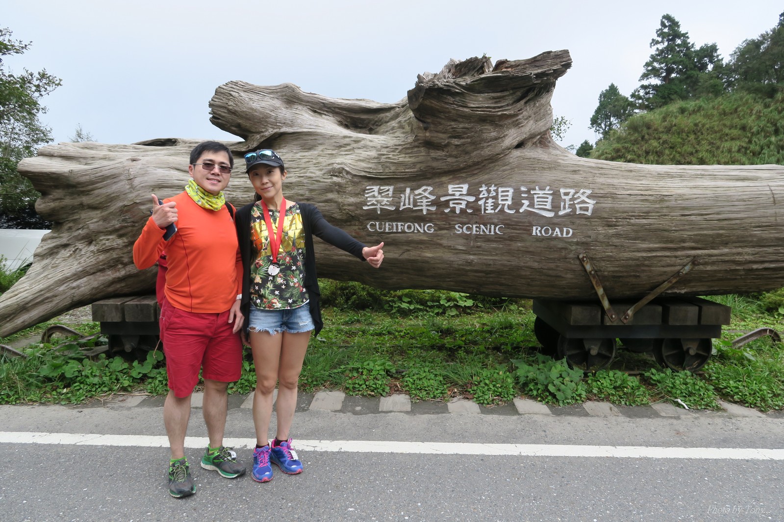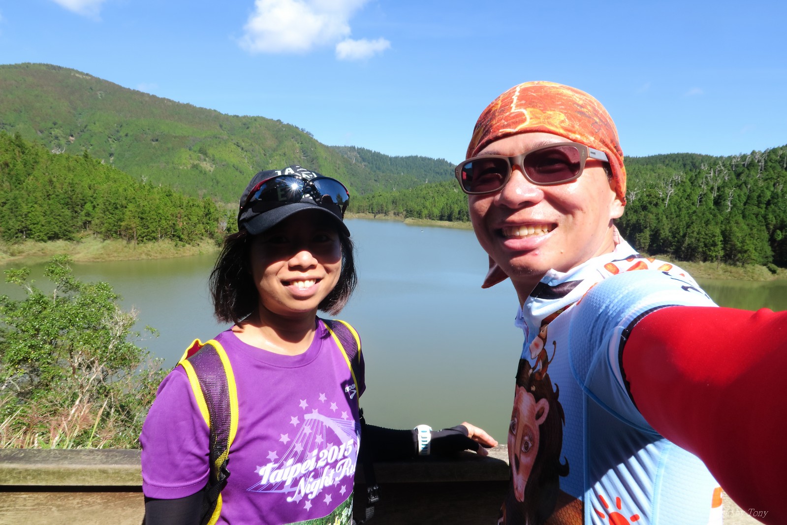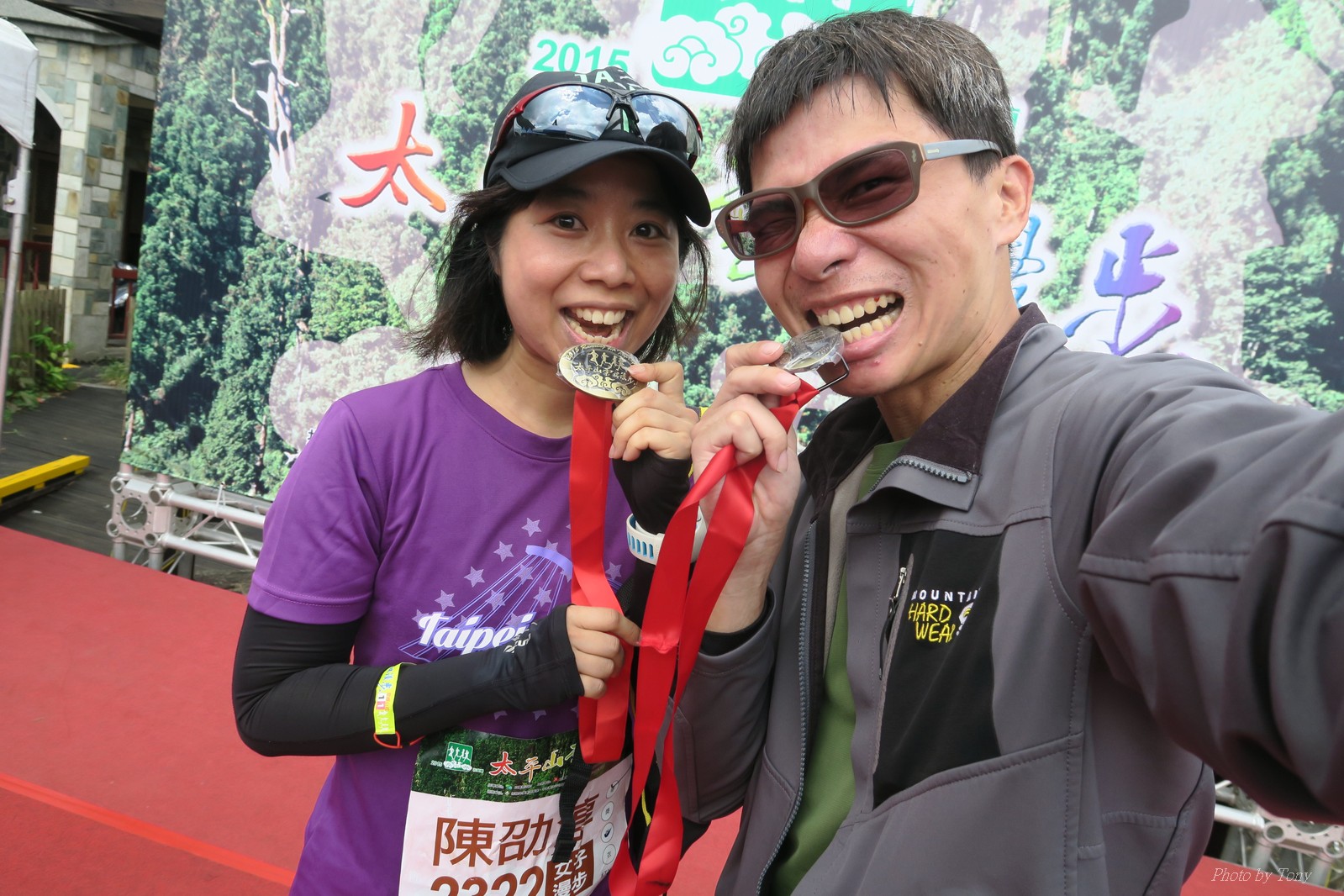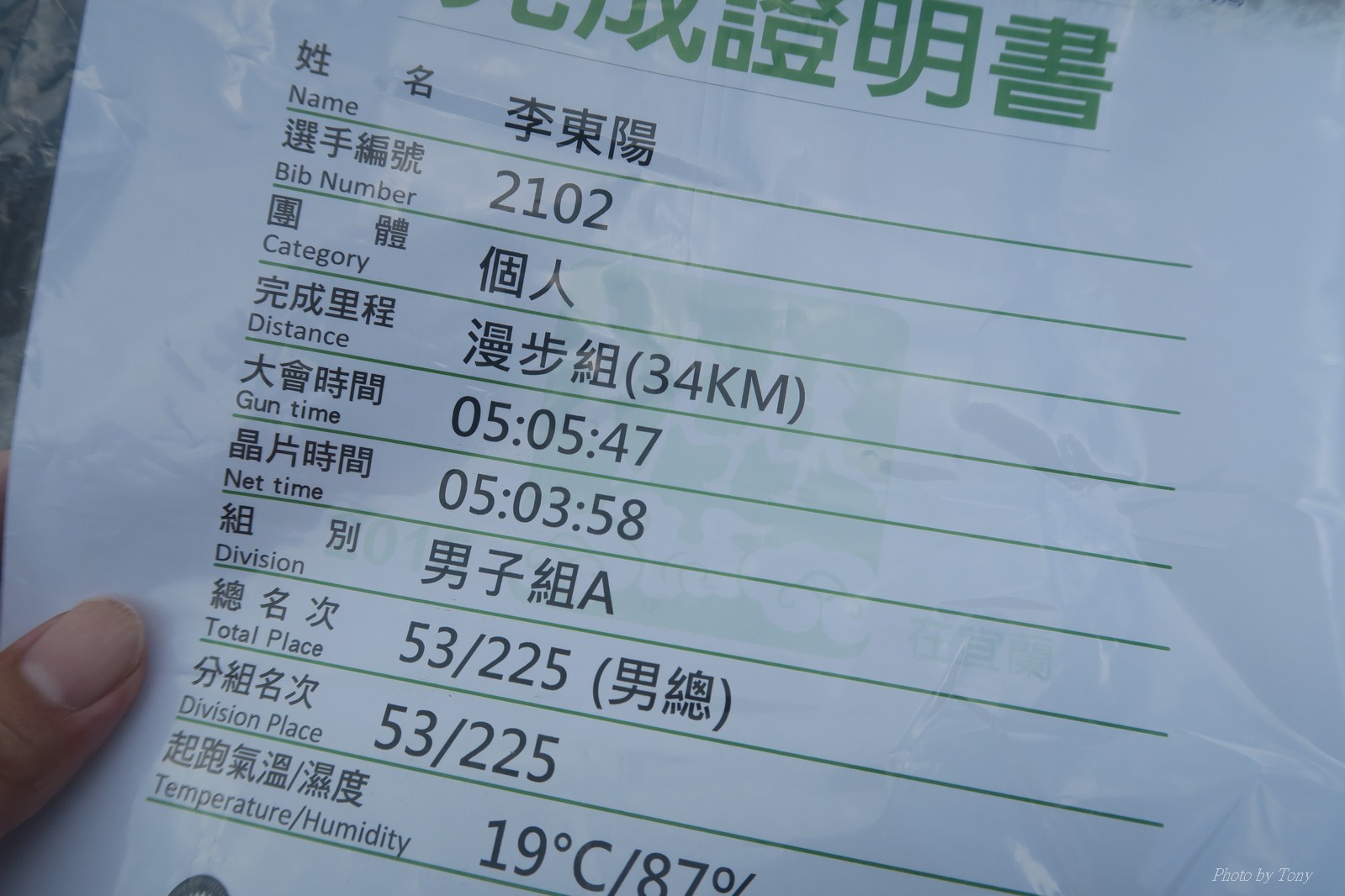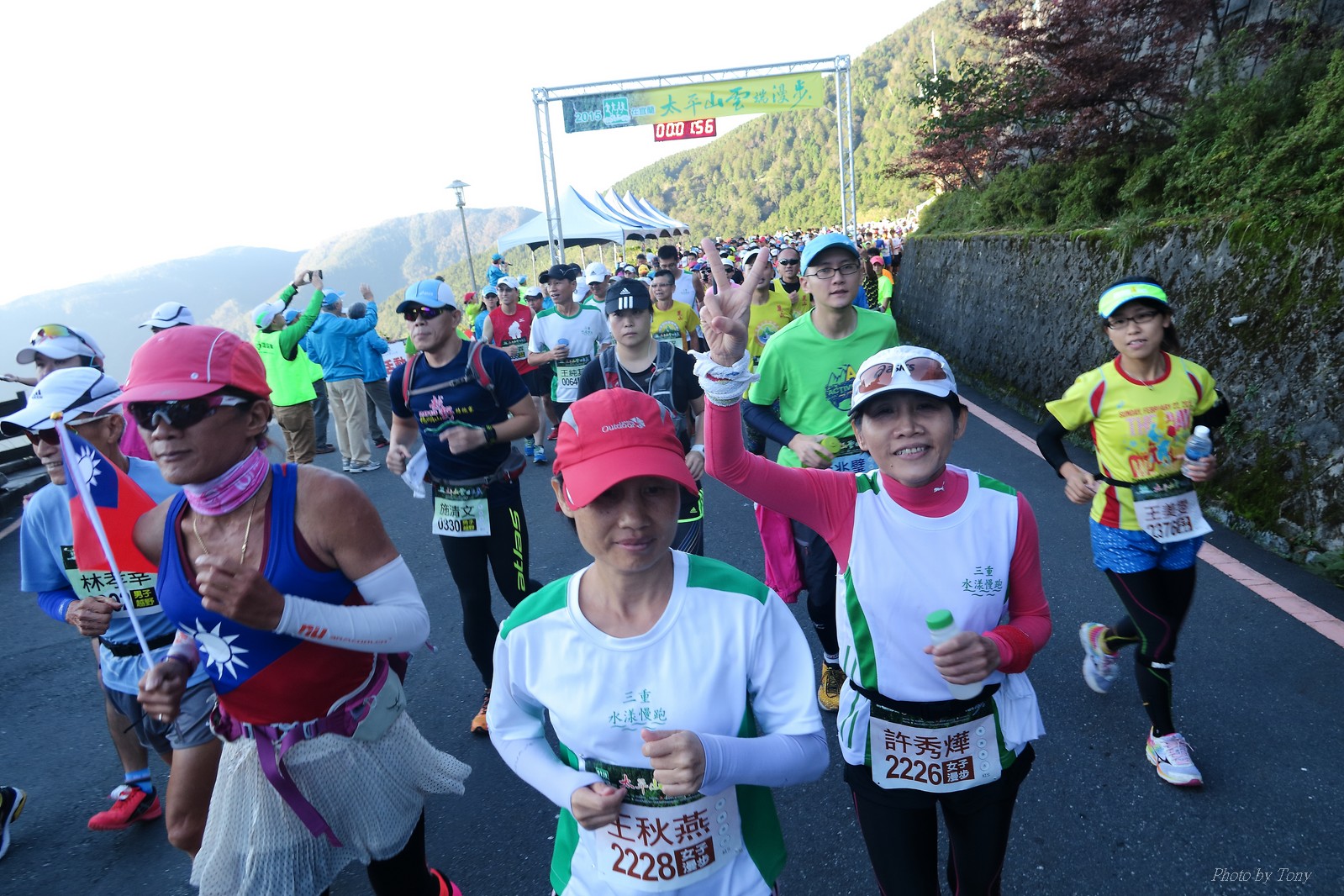 話說會想參加太平山馬都是因為....看到小V穿的螢光黃風衣外套 還真是又亮又好看~ 衝著好看的風衣和許久未去的翠峰湖,我就報名了!! 報名了34K超半馬組!! 報了34K為什麼不報全馬??只差8km耶~~ 因為9月初比賽,7月和8月正熱,不太可能太常練跑 雖然只有多8K,但那8K是全馬最痛苦的8K~ 想想我還是跑太平山到翠峰湖來回就好,不用假會為了多一個全馬,而報42K~(事後証明我的決定是對的!!哈哈~) 原本還想要帶全家一起去加油 沒想到...太平山上的住宿就算是不便宜,但想訂還訂不到咧..Orz 只好含淚一個人開車去 晚上10:30抵達收費站 同事ALEX和她老婆正坐在路邊喝美酒,賞星星 真是很愜意 我也小酌一杯紅酒,讓自己好睡覺!! 隔天一早4:30起床,5點和ALEX夫婦共乘一台車出發往太平山莊出發 到了停車場先和阿貝集合,雖然只剩下10分鐘,但我還是在那邊慢吞吞的整理 還一度想大號,不過人實太多..不得不放棄XDD 今天的天氣非常的好.. 而且整個賽道管制,路上只有跑者,和零星幾輛大會的工作車 跑在海拔1800-2100的林道上實在十分舒服.. 因為前幾個月的跑量實在不多.. 所以這天的策略就是採取郊遊模式!!!! 前10K花了快1個半小時..算是破了最慢記錄吧XDD 10K之後就是較陡的2K..這邊就先離開阿貝,一個人先往翠峰湖折返點跑去.. 下坡時先遇到這次得到總8的小賴大哥 下到翠峰湖再遇到ALEX夫婦,那時二個已逛完翠峰湖準備往回跑了,二位真是實力堅強啊~ 沒一分鐘再遇到NEO老書..,請他先到翠峰湖觀景台等我,我先去折返點拿信物 匆匆在折返點吃點補給後,趕緊來去找NEO老書 讓NEO老書等了10分鐘還真是不好意思啊~ 因為他要多跑我8K,所以請他先跑:P 我在翠峰湖旁繼續閒晃等阿貝 沒幾分鐘後,阿貝也出現了.. 二個人拍了好幾張照之後才離開翠峰湖旁 從翠峰湖上到制高點約為5KM..幾乎都是較陡的坡 為了好好儲存後面11公里的緩下坡,這裡就採取快走模式..哈哈 反正不要讓ALEX夫婦等我太久就好~ 後來快到坡頂前,看看時間好像會拖太久,就開始加速往太平山莊跑去.. 說是加速..只實也沒多快..只有6分多速,最後幾K甚至只有6分半了 這時不得不說每3.5KM就有個補給站實在太貼心了,跑到快累死時,剛好就可以小休一下:P 在倒數第二個補幾站時遇到ALEX老婆--李醫師正準備要折返(那時表示她領先了我快8KM了~~) 瞬間讓我放心了一些,跑的比別人少8KM,還讓人家等太久就真的很不好意思...XDD 不過沒多久,就突然被李醫師大叫我名字,害我差點軟腳,怎麼這麼快就追上我了.. 原本還想試著跟跟看,不過跟了500公尺後,我還是決定放棄XDD 慢慢的不要抽筋的跑進終點比較實在!!! 最後以5小時05分完成34K~ 想當初初馬丹大林道43K,也是5小時初頭,這次才跑34K也是5小時初.. 真是有夠鬼混的..(其實實力大退~~,沒練就沒耐力,很現實的) 不過練不夠就是這樣啦,不用太在意成績 有玩到~有拍到~有開心就好!!!(回程塞國道五就不開心了,累死人了啊XDDD) 下次還想參加嗎?? 若撇開交通和住宿的問題,這真的是一場非常優質的比賽:D 一到太平山就遇到這次總8的賴大哥 這次陪我鬼混的阿貝,話說..阿貝可是參加過鎮西堡和北大12小時賽的高手呢!! 今天的天氣真的很棒,在海拔1800-2100的山上,這種大太陽剛好溫溫的,不會熱!! 實力堅強的ALEX夫婦 出發囉~ 觀光客模式~~ 看到美景,大家都停下來拍照!! 這個豆干好好吃...我吃了5-6個才離開!!哇哈哈~~ 本次總8的賴大哥,很快的就折返了!! 這次不僅有水,運動飲料,還有可樂!! 遇到NEO老書了:D 好久沒來翠峰湖了... 放閃小情侶 累了..XDD 這是我第一次喝雞精.... 有正妹耶~快加速前進XDD 有海尼根耶~不過我酒量太差,拍拍照紀念一下就好:P 被李醫師刷卡了XDD