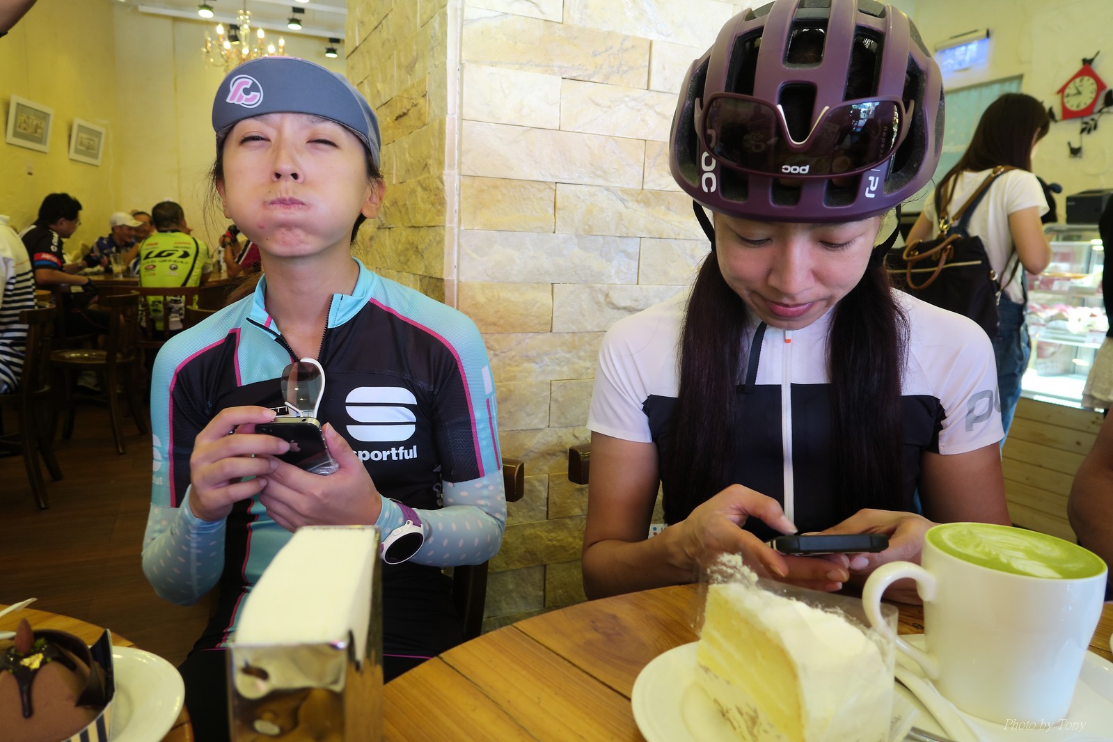 這週末參加塔公發騎的團騎.. 號稱風櫃40分輕鬆團,還要下萬里去吃亞尼克.. 因為週日還要參加SNY揹米活動,所以想說騎到風櫃就先折返.. 很久沒上風櫃,今天也沒特別想要測速.. 裝了功率腿之後外騎沒幾次,大多都是在家當倉鼠XDD 今天就來試著按功率騎騎看.. 一趟下來就發現..陡坡隨便一用力踩就破300W.. 所以除非很短的坡,不然300W~撐不到1分鐘就爆了.. 以前都會努力讓自己在陡坡時速度還維持在10KM以上.. 這次發現,用260W騎陡坡,時速也不過8而已XDD 難怪,以前一騎完陡坡就沒力... 這次的騎法反而就是陡坡稍微不要那麼用力,而平路再多加點POWER... 就這樣騎到剩最後一個髮夾灣.. 耶~看看時間,好像有機會破PB耶..那就撐一下吧..!! 喔耶~自己碼錶顯示27:57..(STRAVA顯示28:10) 總算破了28分這一關!!YAYAYA~~ 以前都用心跳配速,用了功率腿之後.. 才發現心跳和功率之間還有一段差距 難怪很多選手騎車都會裝上功率計,這真的不是沒有原因的!! 破了PB也累壞了,我想可以回家了.. 不過塔公和喵老師都說...今天要去的萬里野馬飛行傘場很漂亮,且路不是很好找... 聽到這樣,我又心動了,考慮了一下~~衝吧!!!!XDD 這野馬飛行傘場要一路下到萬里,再往上騎個2KM多... 坡有點陡..但還好不會太遠!! 今天很幸運,天氣好,展望好,風景好啊!! 下山後本想直接回程,但..再不補給應該會掛在半路 就和大家去亞尼克坐坐..(低消80元,硬是點了二個蛋糕來吃XDD) 吃完就要面對現實...逆爬風櫃回去... 靈泉寺前有一段坡很陡,不然大部份是緩坡.. 靈泉寺大家要補水一下,我趕著回家就直上了.. 雖然知道只剩3K..,但這3K是很漫長的.. 繼續低頭看功率騎車..以200W來騎就好!! 慢慢龜總是會到的~~ 總算在1點前進了家門~~ 感謝塔公開團,今天又多知道一個新景點 來回爬升也有1500.. 以後再糾團來騎!!:D