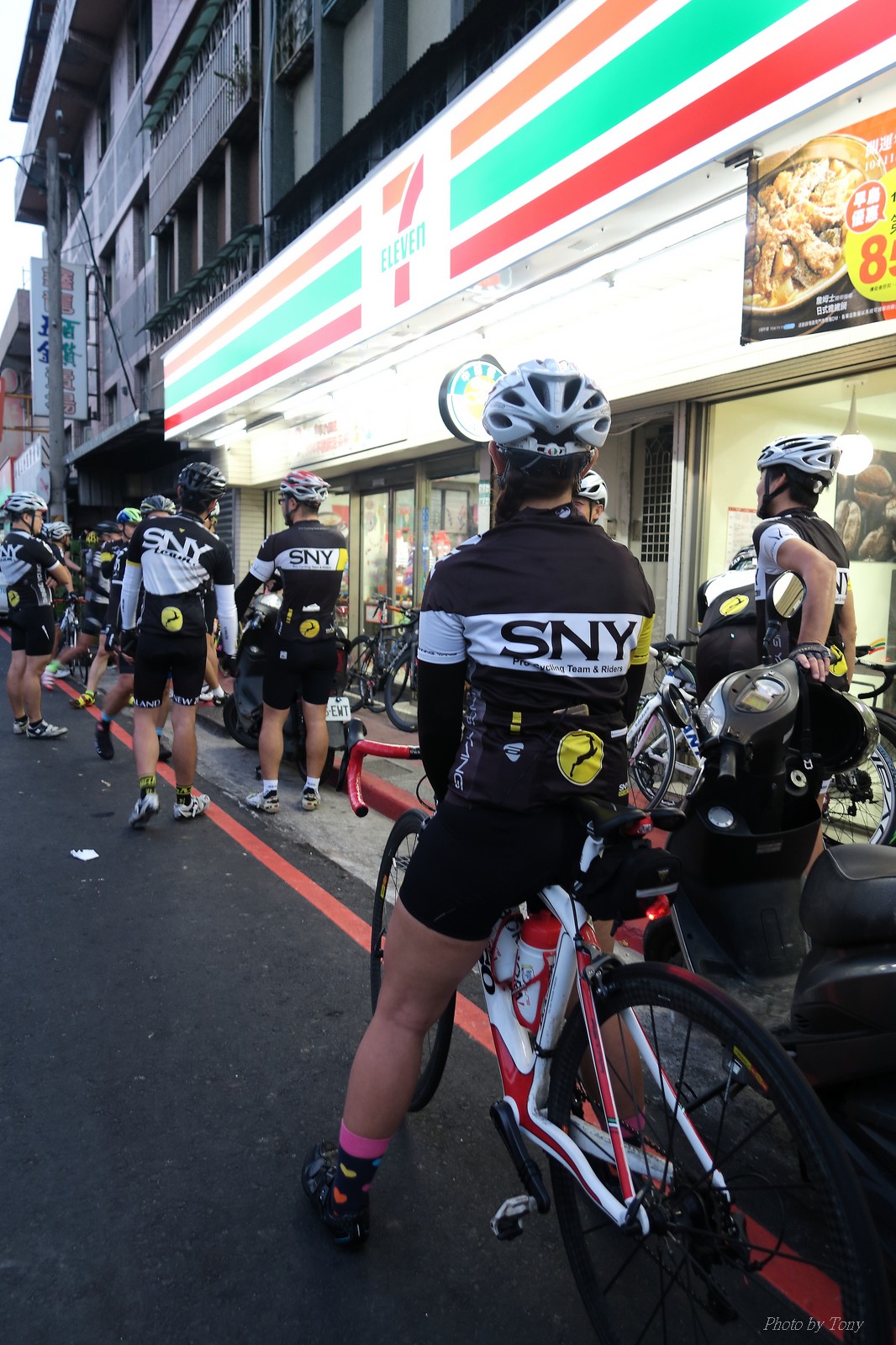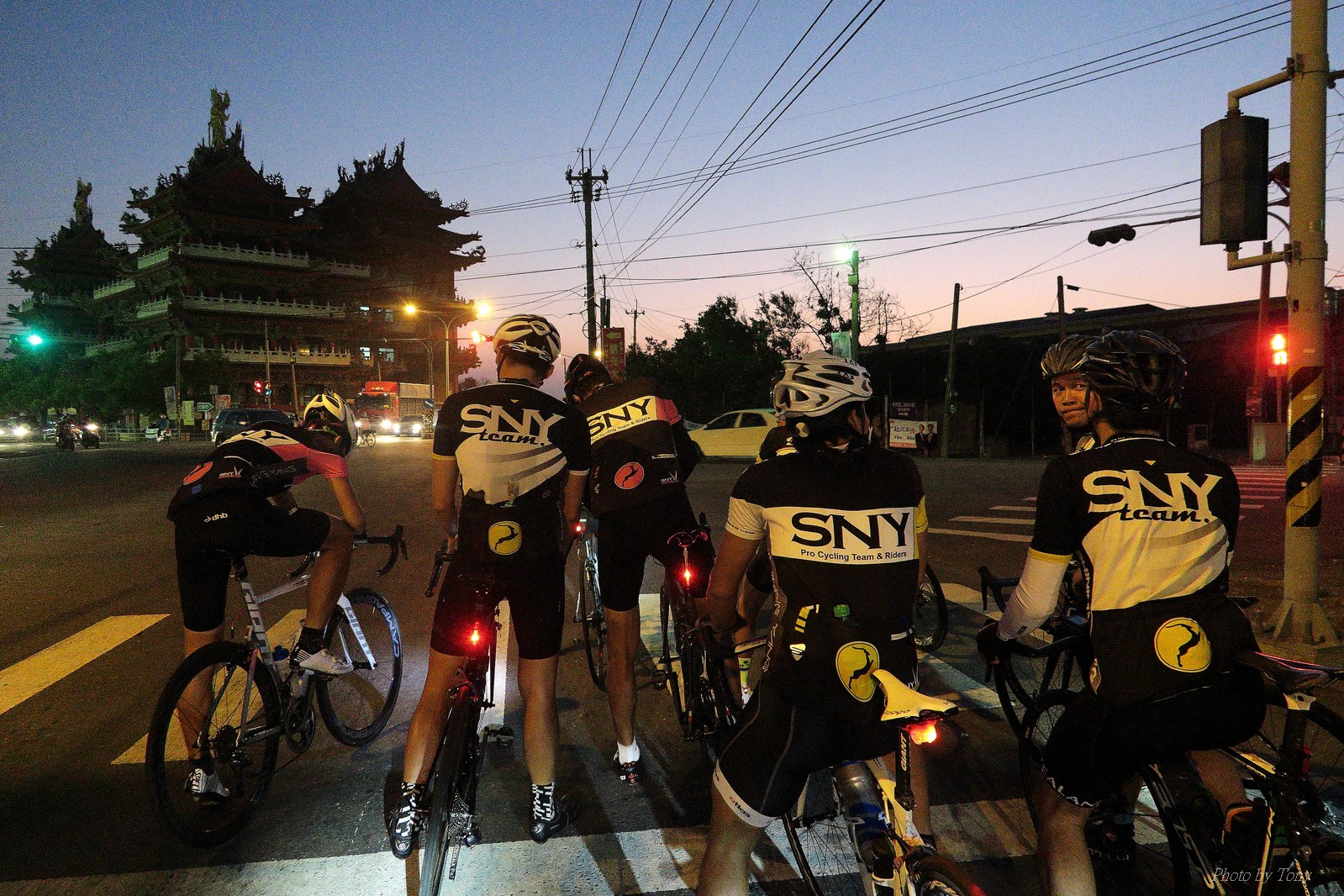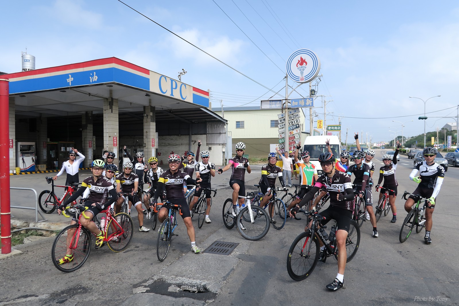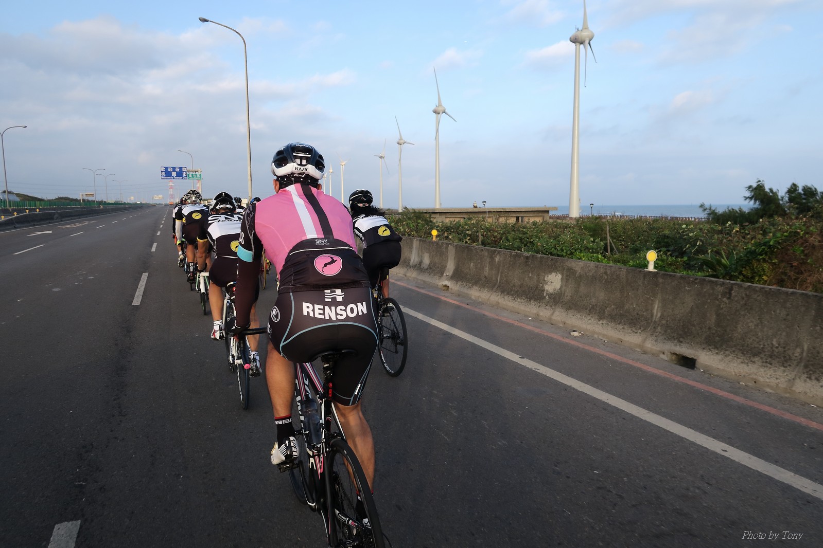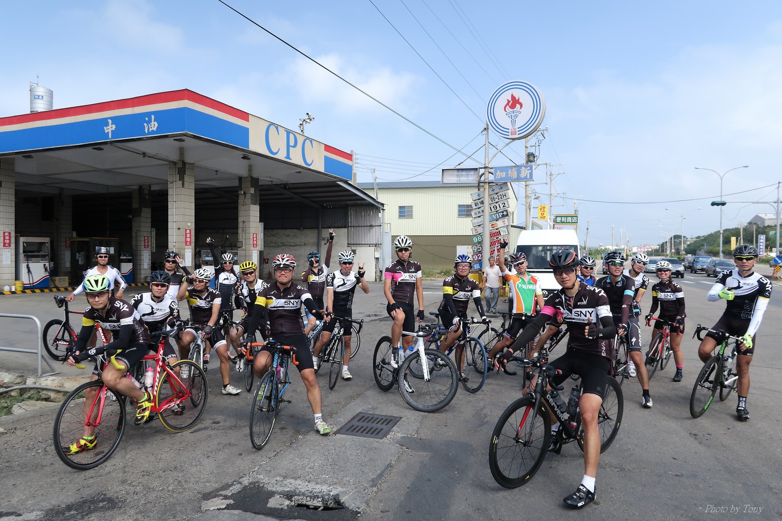 SNY 騎福之旅列車在11/19啟動 一連四天要誠心拜訪台灣9間廟宇 帶著大家的祝福紙條,誠心祈求上天保佑這群熱血的車友 因為體力弱加上上星期也已請過假,這次就報名參加第一天台北到台南的旅程就好 雖然第一天騎西濱再接省道,但人氣也最旺,應該很好玩吧!! 星期四一早不到4點就起床..整裝好出門買個飯糰後趕緊往行天宮集合 好幾位今天沒能一起騎到台南的車友也一起來集合,感覺好溫暖!! 今天的目的地是到台南南鯤鯓,總共300多公里,所以要早早出發(所以我沒和爸媽說要去那騎車,說要去騎去台南,應該會被唸到翻吧XDD) 大夥在黎明天亮前出發... 慢慢騎到八里和另外一團集合 若說去年的北高SNY團是一群精力充沛的高中生,那這次的騎福團真的像是小學生一樣 一進入西濱,二路縱隊馬上乖乖排好..(只有獅王偶有耐不住性子出去奔跑一下:P) 也可能因為是E神和500光在前頭領騎,大家都很乖吧~哈哈!! 今天的風沒有很大..但領頭羊輕輕踩,時速也就30多了 有別於去年sny北高團 今年EASON、光叔、雷射槍清志哥還有麻美都有安裝功率計.. 不用體感,不用心跳也不用時速來控速..,這次都用瓦數來控制強度(用體感,心跳和實際瓦數真的有一段落差!!) 大概就是180-200W來破風領騎 後面只要躲的好,大概只需150W就可以穩穩跟上.. 所以一路跟到新竹算是輕鬆愉快啊~(但是半路到永安就肚子餓了XDD,我明明吃了一個大飯糰啊,趕緊在進新竹前又吃了一大個飯糰!!) 從西濱轉進新竹市,雖路程不遠,但紅綠燈擋個幾次就耗上不少時間 大家在城隍廟拜拜之後,就趕緊上車趕路 所以出了新竹之後,領頭羊將瓦數提高了一些..(雖然我只有騎一天,但實力太弱,只能躲好再躲好XDD) 在進入苗栗好望角前,EASON頻頻回頭問有沒有人知道如何切西瓜避開好望角的上坡,不過沒人回應...知道路的好像都已被放生了XDDD 主團就由500光領軍一路上攻好望角,看著功率計的數值一路往300W衝上去..,媽呀,要這麼殺嗎?? 降降降,降到250W就好,還是逐漸被麻美拉開..,後來看到EASON慢慢退下來,叫大家慢慢騎就好,路還很長,不要在這太衝動..,我再將瓦數降到230W左右.. 一回頭,一群人全擠在我後方..,呃...壓力有點大!! 離頂點最後300公尺,大家按奈不住,紛紛從我身旁噴出去.. 嗯..我要繼續忍住,不差這一點點距離... 待上到頂點再抽車加速衝下坡來追... 這次騎福之旅沒有安排白沙屯媽祖廟,所以整團就直接沒休息繼續往前行 不過後來發現後方幾位車友被放生的有點遠,大家還是決定先暫停休息 等到全員到齊再出發,我叫寶寶趕快往前擠,不然領頭羊紅燈一起步加速,愈後面離愈遠,都要抽車才能追上,會很累.. 不過她說在前面壓力好大..且跟一跟就又慢慢掉隊了!! 老實說寶寶的實力耐力真的不錯,不過要在一群男生裡騎車,還真是辛苦了些!!(蛋蛋怎麼沒有來一起陪一下!!) 且這一段瓦數有時拉的比較高,所以這一段又有幾個人被放生..快到大甲鎮瀾宮前我也快撐不住了..>"<.. 還好就到叉路口了,呼,在崩潰前逃過掉隊的一刧!!(其實瓦數還是沒有拉很高,但就是跟的有點累,最近這一個月都沒有外騎長距離..耐力肌力明顯不足吧!!) 在大甲鎮瀾宮祈福加吃飽喝足後..不知不覺已經休息一個半小時.. 得要加緊趕路了.. 但台一省道上不斷的紅綠燈,騎到讓人快崩潰XDD(一公里可以停個2-3次紅綠燈~) 過了台中之後因為時間比預計慢了2小時,決定不要再騎台一線,要從台19切往西濱去,騎啊騎,不一心又錯過了日盛大哥要和我們會合的追分車站XDD) 後來愈往南部感覺愈來愈順,就決定一路騎台19就好 天色也在進入雲林之後明顯暗了下來.. 大家備好頭燈尾燈,繼續加班往嘉義挺進... 而為了安全起見,雖有體力,但跟不上主團的寶寶還有身體不適的狐狸都被勸上車 進入夜晚,騎起來是很涼很舒服,但因視線不佳的關係,讓我不得不全神貫注的跟車.. 騎起來有心驚驚的感覺XDD 不得不說麻美好有力,一路時速35上下,從彰化把大家帶領到北港,都不會累的,真的好勇猛!!在家插香練功有成!! 晚上7點多,終於抵達北港,離最後一站台南南鯤鯓代天府只剩30公里左右了 呼..快成功了!! 不過...聽說今天住的地方離南鯤鯓還有將近50公里...Orz 媽呀,算算時間,今天至少要加班到10點半以後>"< 再搭朱大哥的車回去..那不就半夜2點了.. 而本來要搭朱大哥回台北的車友有8位 2位沒來..,2位已先行搭高鐵回程!! 連我剩下四位..我提議我們四個先搭高鐵回去 感謝獅王、小游和發哥同意我的任性,都要一起陪我上高鐵..(這樣朱大哥的車也不用再來回跑!!) 離開北港前,自己還特地先繞到朝天宮天拜拜,祈求保佑家人朋友健康平安!! 再和主團說byebye~ 然後最後11km獅王就火力大開,整天下來心跳唯一突破170的就是這了 一整個回家前要把膏用完的概念XDDD 8:36上高鐵,10:00就到台北,一整個飛快!! 且前後輪用大垃圾袋包一包就上車,前後輪都不用拆,真是太方便了!!高鐵真是比台鐵友善太多了,是遠程單車族的好朋友!! 今天感謝SNY大家一路的照顧,雖不圓滿,但大夥平安成功!!:D