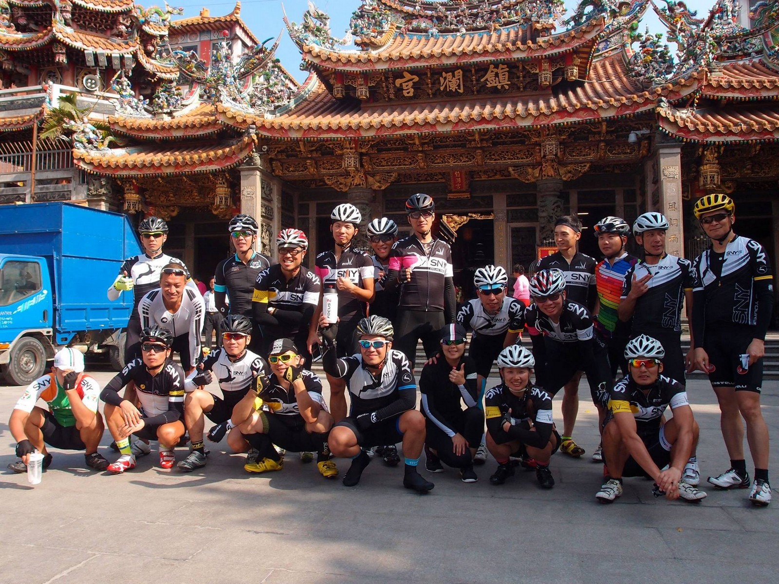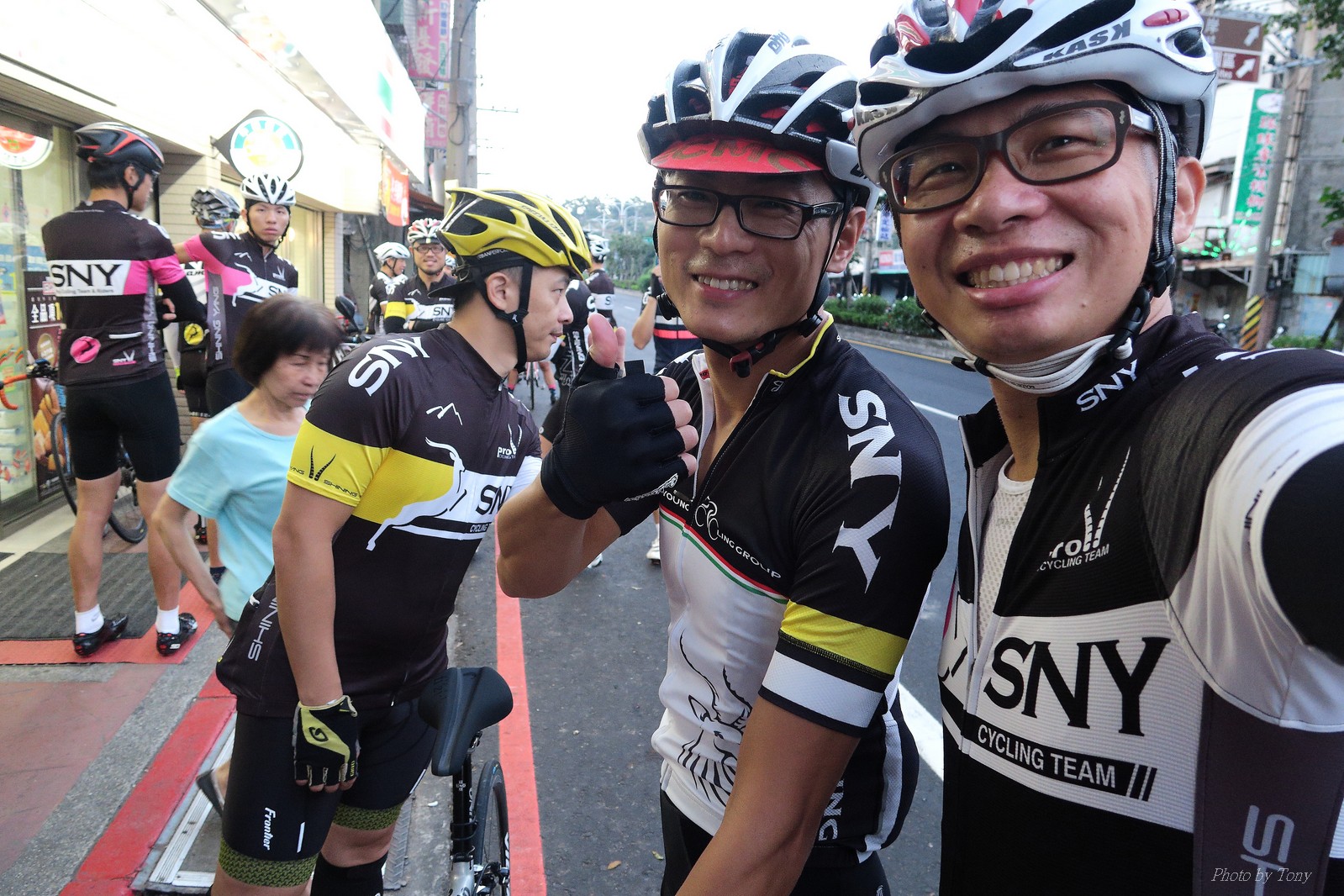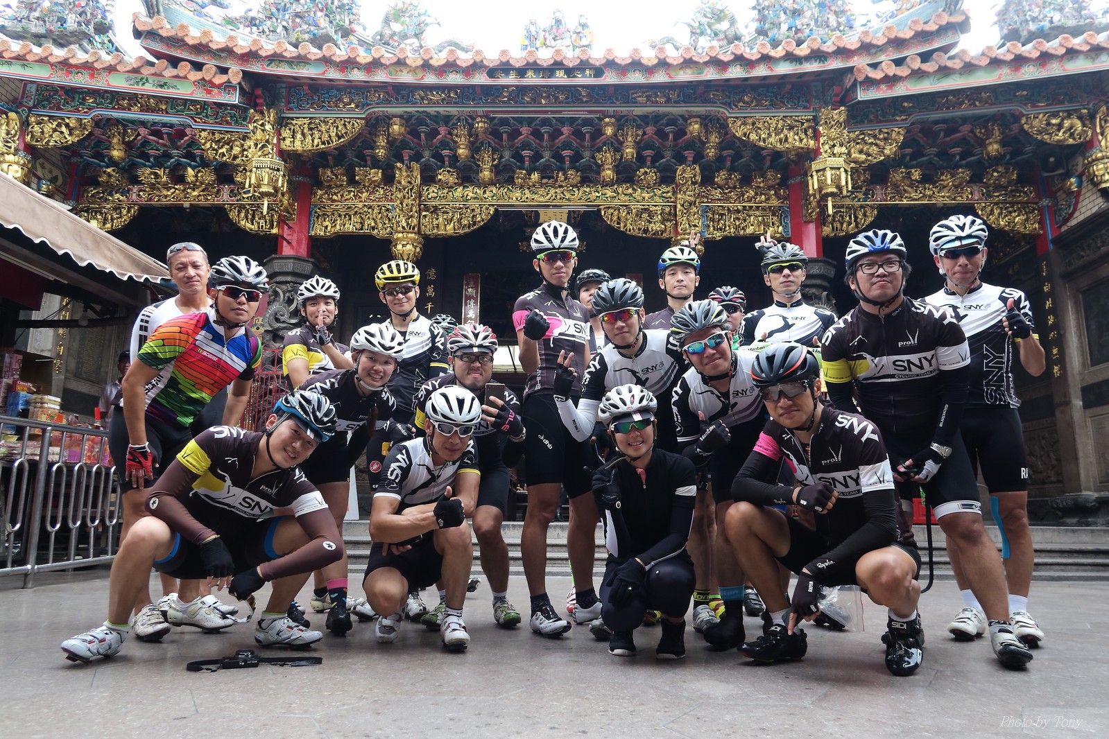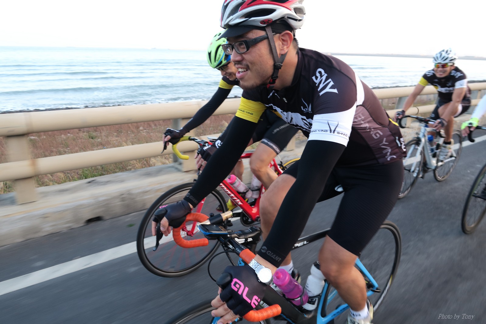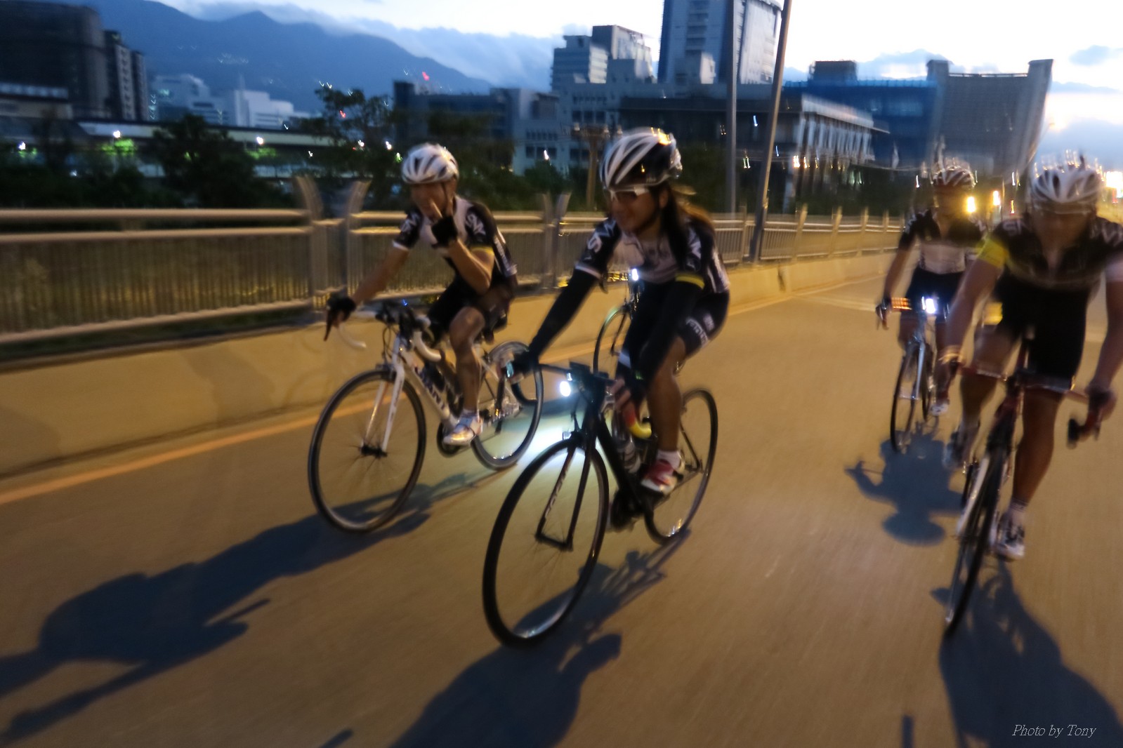 SNY 騎福之旅列車在11/19啟動 一連四天要誠心拜訪台灣9間廟宇 帶著大家的祝福紙條,誠心祈求上天保佑這群熱血的車友 因為體力弱加上上星期也已請過假,這次就報名參加第一天台北到台南的旅程就好 雖然第一天騎西濱再接省道,但人氣也最旺,應該很好玩吧!! 星期四一早不到4點就起床..整裝好出門買個飯糰後趕緊往行天宮集合 好幾位今天沒能一起騎到台南的車友也一起來集合,感覺好溫暖!! 今天的目的地是到台南南鯤鯓,總共300多公里,所以要早早出發(所以我沒和爸媽說要去那騎車,說要去騎去台南,應該會被唸到翻吧XDD) 大夥在黎明天亮前出發... 慢慢騎到八里和另外一團集合 若說去年的北高SNY團是一群精力充沛的高中生,那這次的騎福團真的像是小學生一樣 一進入西濱,二路縱隊馬上乖乖排好..(只有獅王偶有耐不住性子出去奔跑一下:P) 也可能因為是E神和500光在前頭領騎,大家都很乖吧~哈哈!! 今天的風沒有很大..但領頭羊輕輕踩,時速也就30多了 有別於去年sny北高團 今年EASON、光叔、雷射槍清志哥還有麻美都有安裝功率計.. 不用體感,不用心跳也不用時速來控速..,這次都用瓦數來控制強度(用體感,心跳和實際瓦數真的有一段落差!!) 大概就是180-200W來破風領騎 後面只要躲的好,大概只需150W就可以穩穩跟上.. 所以一路跟到新竹算是輕鬆愉快啊~(但是半路到永安就肚子餓了XDD,我明明吃了一個大飯糰啊,趕緊在進新竹前又吃了一大個飯糰!!) 從西濱轉進新竹市,雖路程不遠,但紅綠燈擋個幾次就耗上不少時間 大家在城隍廟拜拜之後,就趕緊上車趕路 所以出了新竹之後,領頭羊將瓦數提高了一些..(雖然我只有騎一天,但實力太弱,只能躲好再躲好XDD) 在進入苗栗好望角前,EASON頻頻回頭問有沒有人知道如何切西瓜避開好望角的上坡,不過沒人回應...知道路的好像都已被放生了XDDD 主團就由500光領軍一路上攻好望角,看著功率計的數值一路往300W衝上去..,媽呀,要這麼殺嗎?? 降降降,降到250W就好,還是逐漸被麻美拉開..,後來看到EASON慢慢退下來,叫大家慢慢騎就好,路還很長,不要在這太衝動..,我再將瓦數降到230W左右.. 一回頭,一群人全擠在我後方..,呃...壓力有點大!! 離頂點最後300公尺,大家按奈不住,紛紛從我身旁噴出去.. 嗯..我要繼續忍住,不差這一點點距離... 待上到頂點再抽車加速衝下坡來追... 這次騎福之旅沒有安排白沙屯媽祖廟,所以整團就直接沒休息繼續往前行 不過後來發現後方幾位車友被放生的有點遠,大家還是決定先暫停休息 等到全員到齊再出發,我叫寶寶趕快往前擠,不然領頭羊紅燈一起步加速,愈後面離愈遠,都要抽車才能追上,會很累.. 不過她說在前面壓力好大..且跟一跟就又慢慢掉隊了!! 老實說寶寶的實力耐力真的不錯,不過要在一群男生裡騎車,還真是辛苦了些!!(蛋蛋怎麼沒有來一起陪一下!!) 且這一段瓦數有時拉的比較高,所以這一段又有幾個人被放生..快到大甲鎮瀾宮前我也快撐不住了..>"<.. 還好就到叉路口了,呼,在崩潰前逃過掉隊的一刧!!(其實瓦數還是沒有拉很高,但就是跟的有點累,最近這一個月都沒有外騎長距離..耐力肌力明顯不足吧!!) 在大甲鎮瀾宮祈福加吃飽喝足後..不知不覺已經休息一個半小時.. 得要加緊趕路了.. 但台一省道上不斷的紅綠燈,騎到讓人快崩潰XDD(一公里可以停個2-3次紅綠燈~) 過了台中之後因為時間比預計慢了2小時,決定不要再騎台一線,要從台19切往西濱去,騎啊騎,不一心又錯過了日盛大哥要和我們會合的追分車站XDD) 後來愈往南部感覺愈來愈順,就決定一路騎台19就好 天色也在進入雲林之後明顯暗了下來.. 大家備好頭燈尾燈,繼續加班往嘉義挺進... 而為了安全起見,雖有體力,但跟不上主團的寶寶還有身體不適的狐狸都被勸上車 進入夜晚,騎起來是很涼很舒服,但因視線不佳的關係,讓我不得不全神貫注的跟車.. 騎起來有心驚驚的感覺XDD 不得不說麻美好有力,一路時速35上下,從彰化把大家帶領到北港,都不會累的,真的好勇猛!!在家插香練功有成!! 晚上7點多,終於抵達北港,離最後一站台南南鯤鯓代天府只剩30公里左右了 呼..快成功了!! 不過...聽說今天住的地方離南鯤鯓還有將近50公里...Orz 媽呀,算算時間,今天至少要加班到10點半以後>"< 再搭朱大哥的車回去..那不就半夜2點了.. 而本來要搭朱大哥回台北的車友有8位 2位沒來..,2位已先行搭高鐵回程!! 連我剩下四位..我提議我們四個先搭高鐵回去 感謝獅王、小游和發哥同意我的任性,都要一起陪我上高鐵..(這樣朱大哥的車也不用再來回跑!!) 離開北港前,自己還特地先繞到朝天宮天拜拜,祈求保佑家人朋友健康平安!! 再和主團說byebye~ 然後最後11km獅王就火力大開,整天下來心跳唯一突破170的就是這了 一整個回家前要把膏用完的概念XDDD 8:36上高鐵,10:00就到台北,一整個飛快!! 且前後輪用大垃圾袋包一包就上車,前後輪都不用拆,真是太方便了!!高鐵真是比台鐵友善太多了,是遠程單車族的好朋友!! 今天感謝SNY大家一路的照顧,雖不圓滿,但大夥平安成功!!:D
