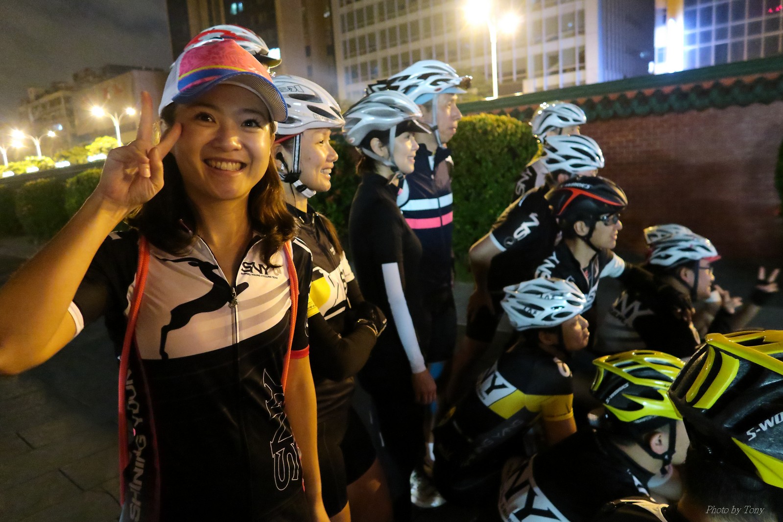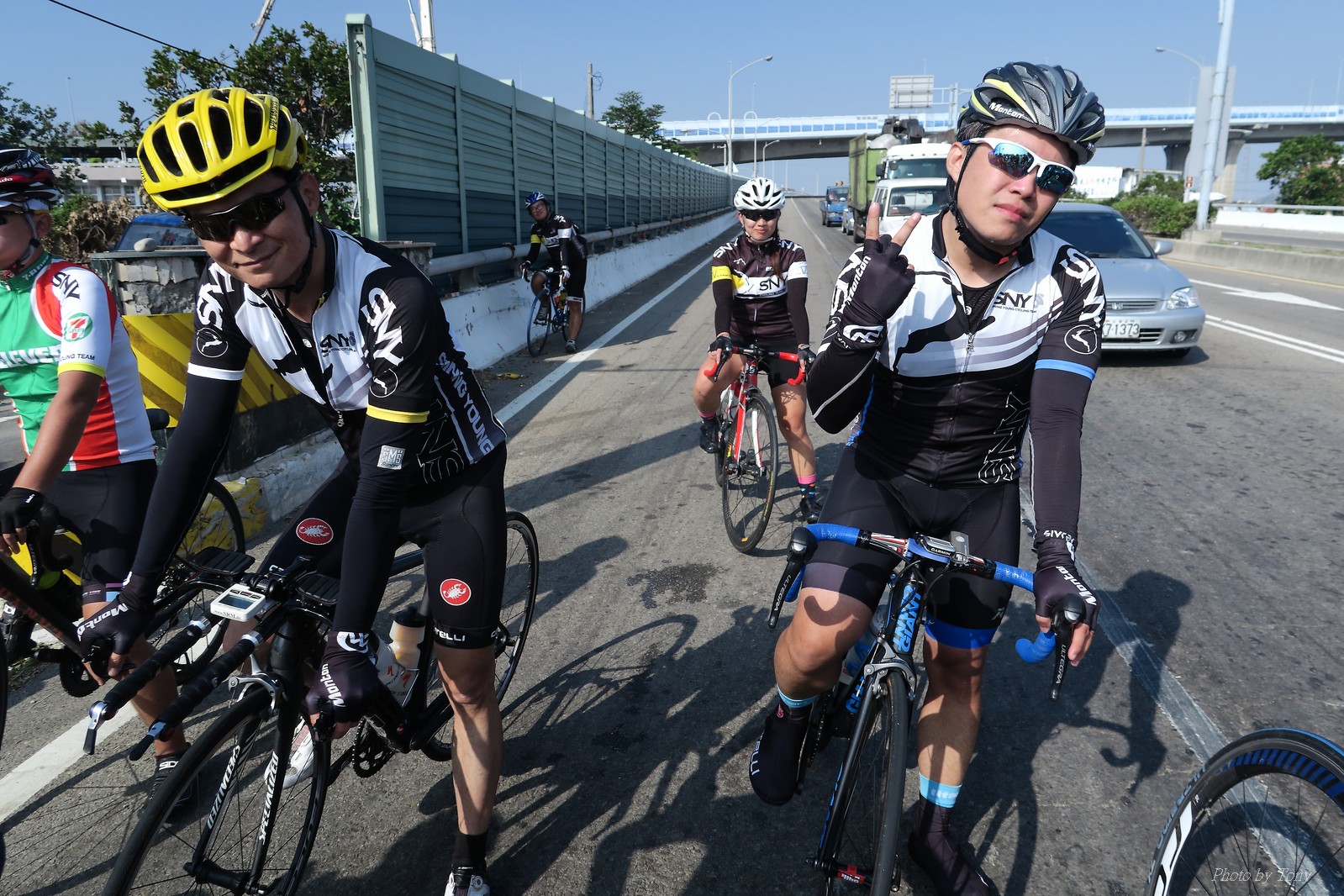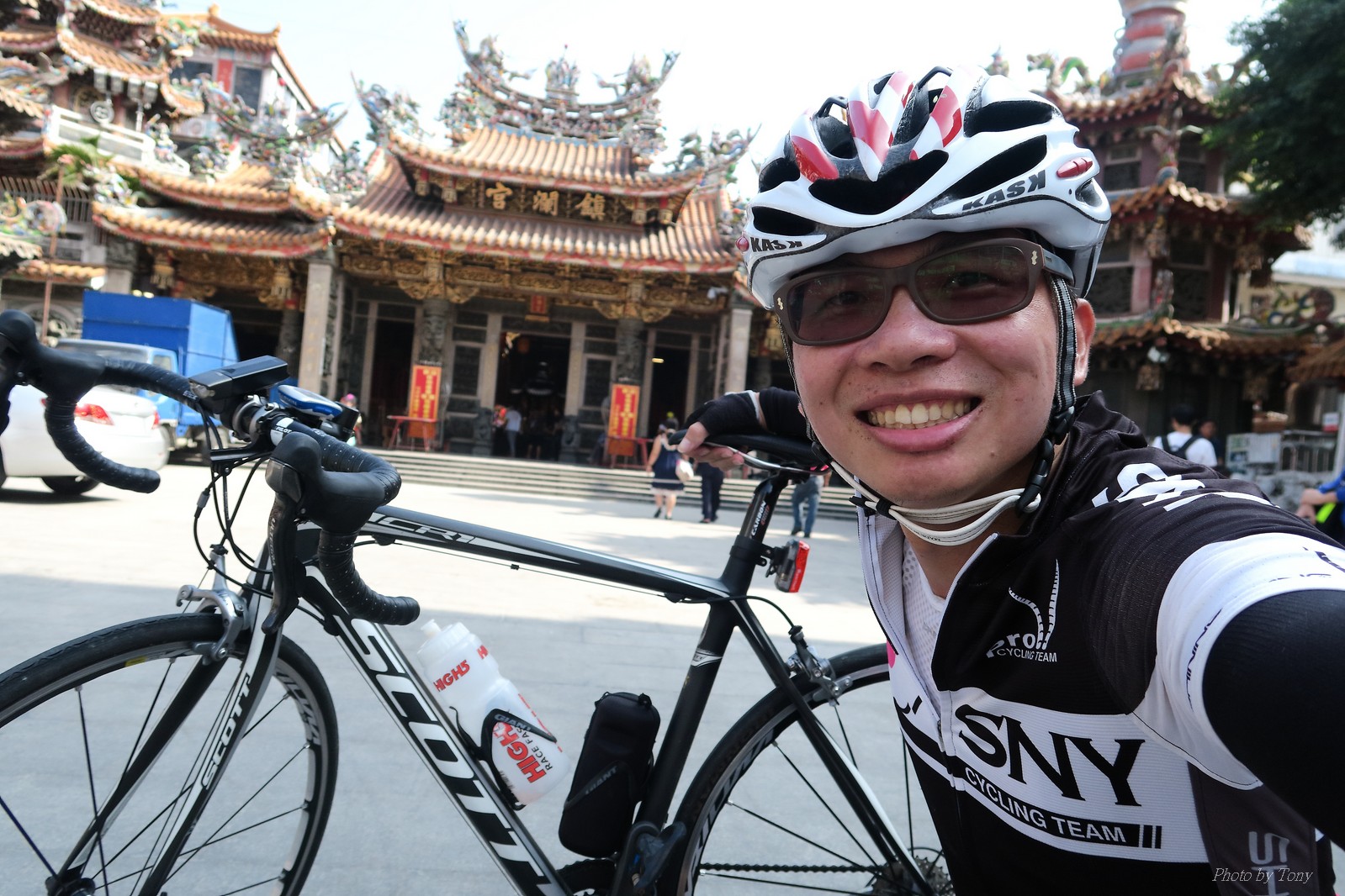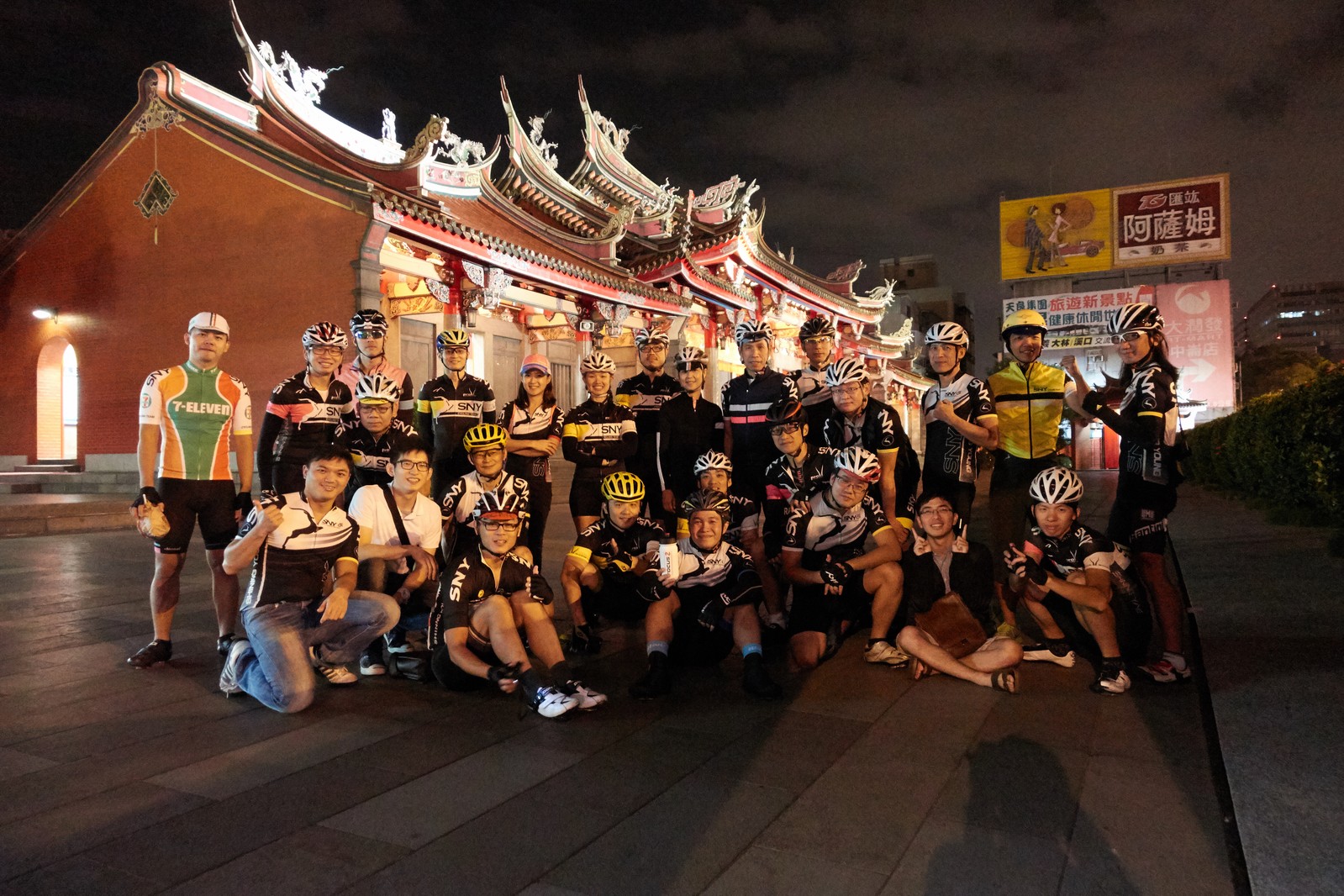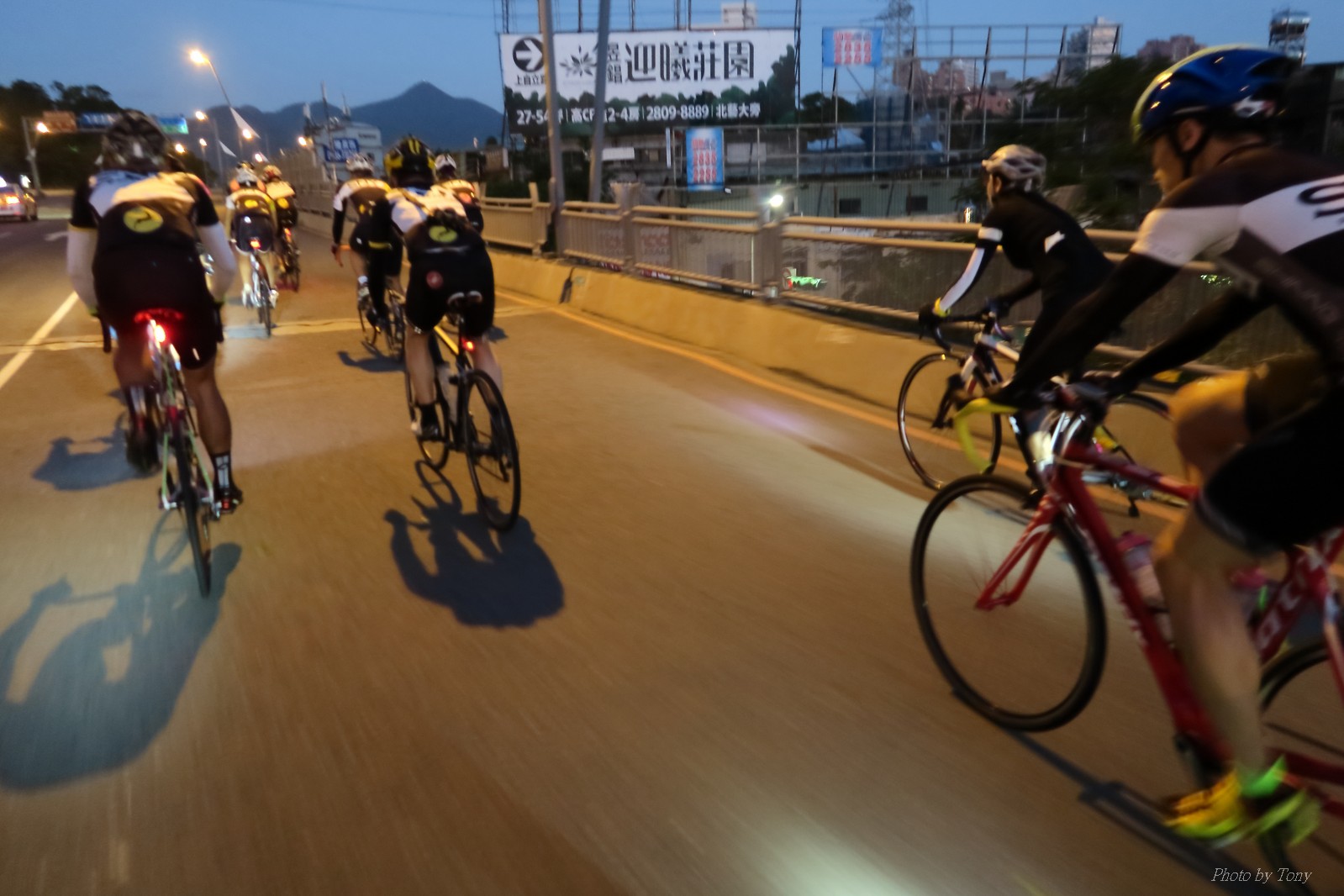 SNY 騎福之旅列車在11/19啟動 一連四天要誠心拜訪台灣9間廟宇 帶著大家的祝福紙條,誠心祈求上天保佑這群熱血的車友 因為體力弱加上上星期也已請過假,這次就報名參加第一天台北到台南的旅程就好 雖然第一天騎西濱再接省道,但人氣也最旺,應該很好玩吧!! 星期四一早不到4點就起床..整裝好出門買個飯糰後趕緊往行天宮集合 好幾位今天沒能一起騎到台南的車友也一起來集合,感覺好溫暖!! 今天的目的地是到台南南鯤鯓,總共300多公里,所以要早早出發(所以我沒和爸媽說要去那騎車,說要去騎去台南,應該會被唸到翻吧XDD) 大夥在黎明天亮前出發... 慢慢騎到八里和另外一團集合 若說去年的北高SNY團是一群精力充沛的高中生,那這次的騎福團真的像是小學生一樣 一進入西濱,二路縱隊馬上乖乖排好..(只有獅王偶有耐不住性子出去奔跑一下:P) 也可能因為是E神和500光在前頭領騎,大家都很乖吧~哈哈!! 今天的風沒有很大..但領頭羊輕輕踩,時速也就30多了 有別於去年sny北高團 今年EASON、光叔、雷射槍清志哥還有麻美都有安裝功率計.. 不用體感,不用心跳也不用時速來控速..,這次都用瓦數來控制強度(用體感,心跳和實際瓦數真的有一段落差!!) 大概就是180-200W來破風領騎 後面只要躲的好,大概只需150W就可以穩穩跟上.. 所以一路跟到新竹算是輕鬆愉快啊~(但是半路到永安就肚子餓了XDD,我明明吃了一個大飯糰啊,趕緊在進新竹前又吃了一大個飯糰!!) 從西濱轉進新竹市,雖路程不遠,但紅綠燈擋個幾次就耗上不少時間 大家在城隍廟拜拜之後,就趕緊上車趕路 所以出了新竹之後,領頭羊將瓦數提高了一些..(雖然我只有騎一天,但實力太弱,只能躲好再躲好XDD) 在進入苗栗好望角前,EASON頻頻回頭問有沒有人知道如何切西瓜避開好望角的上坡,不過沒人回應...知道路的好像都已被放生了XDDD 主團就由500光領軍一路上攻好望角,看著功率計的數值一路往300W衝上去..,媽呀,要這麼殺嗎?? 降降降,降到250W就好,還是逐漸被麻美拉開..,後來看到EASON慢慢退下來,叫大家慢慢騎就好,路還很長,不要在這太衝動..,我再將瓦數降到230W左右.. 一回頭,一群人全擠在我後方..,呃...壓力有點大!! 離頂點最後300公尺,大家按奈不住,紛紛從我身旁噴出去.. 嗯..我要繼續忍住,不差這一點點距離... 待上到頂點再抽車加速衝下坡來追... 這次騎福之旅沒有安排白沙屯媽祖廟,所以整團就直接沒休息繼續往前行 不過後來發現後方幾位車友被放生的有點遠,大家還是決定先暫停休息 等到全員到齊再出發,我叫寶寶趕快往前擠,不然領頭羊紅燈一起步加速,愈後面離愈遠,都要抽車才能追上,會很累.. 不過她說在前面壓力好大..且跟一跟就又慢慢掉隊了!! 老實說寶寶的實力耐力真的不錯,不過要在一群男生裡騎車,還真是辛苦了些!!(蛋蛋怎麼沒有來一起陪一下!!) 且這一段瓦數有時拉的比較高,所以這一段又有幾個人被放生..快到大甲鎮瀾宮前我也快撐不住了..>"<.. 還好就到叉路口了,呼,在崩潰前逃過掉隊的一刧!!(其實瓦數還是沒有拉很高,但就是跟的有點累,最近這一個月都沒有外騎長距離..耐力肌力明顯不足吧!!) 在大甲鎮瀾宮祈福加吃飽喝足後..不知不覺已經休息一個半小時.. 得要加緊趕路了.. 但台一省道上不斷的紅綠燈,騎到讓人快崩潰XDD(一公里可以停個2-3次紅綠燈~) 過了台中之後因為時間比預計慢了2小時,決定不要再騎台一線,要從台19切往西濱去,騎啊騎,不一心又錯過了日盛大哥要和我們會合的追分車站XDD) 後來愈往南部感覺愈來愈順,就決定一路騎台19就好 天色也在進入雲林之後明顯暗了下來.. 大家備好頭燈尾燈,繼續加班往嘉義挺進... 而為了安全起見,雖有體力,但跟不上主團的寶寶還有身體不適的狐狸都被勸上車 進入夜晚,騎起來是很涼很舒服,但因視線不佳的關係,讓我不得不全神貫注的跟車.. 騎起來有心驚驚的感覺XDD 不得不說麻美好有力,一路時速35上下,從彰化把大家帶領到北港,都不會累的,真的好勇猛!!在家插香練功有成!! 晚上7點多,終於抵達北港,離最後一站台南南鯤鯓代天府只剩30公里左右了 呼..快成功了!! 不過...聽說今天住的地方離南鯤鯓還有將近50公里...Orz 媽呀,算算時間,今天至少要加班到10點半以後>"< 再搭朱大哥的車回去..那不就半夜2點了.. 而本來要搭朱大哥回台北的車友有8位 2位沒來..,2位已先行搭高鐵回程!! 連我剩下四位..我提議我們四個先搭高鐵回去 感謝獅王、小游和發哥同意我的任性,都要一起陪我上高鐵..(這樣朱大哥的車也不用再來回跑!!) 離開北港前,自己還特地先繞到朝天宮天拜拜,祈求保佑家人朋友健康平安!! 再和主團說byebye~ 然後最後11km獅王就火力大開,整天下來心跳唯一突破170的就是這了 一整個回家前要把膏用完的概念XDDD 8:36上高鐵,10:00就到台北,一整個飛快!! 且前後輪用大垃圾袋包一包就上車,前後輪都不用拆,真是太方便了!!高鐵真是比台鐵友善太多了,是遠程單車族的好朋友!! 今天感謝SNY大家一路的照顧,雖不圓滿,但大夥平安成功!!:D