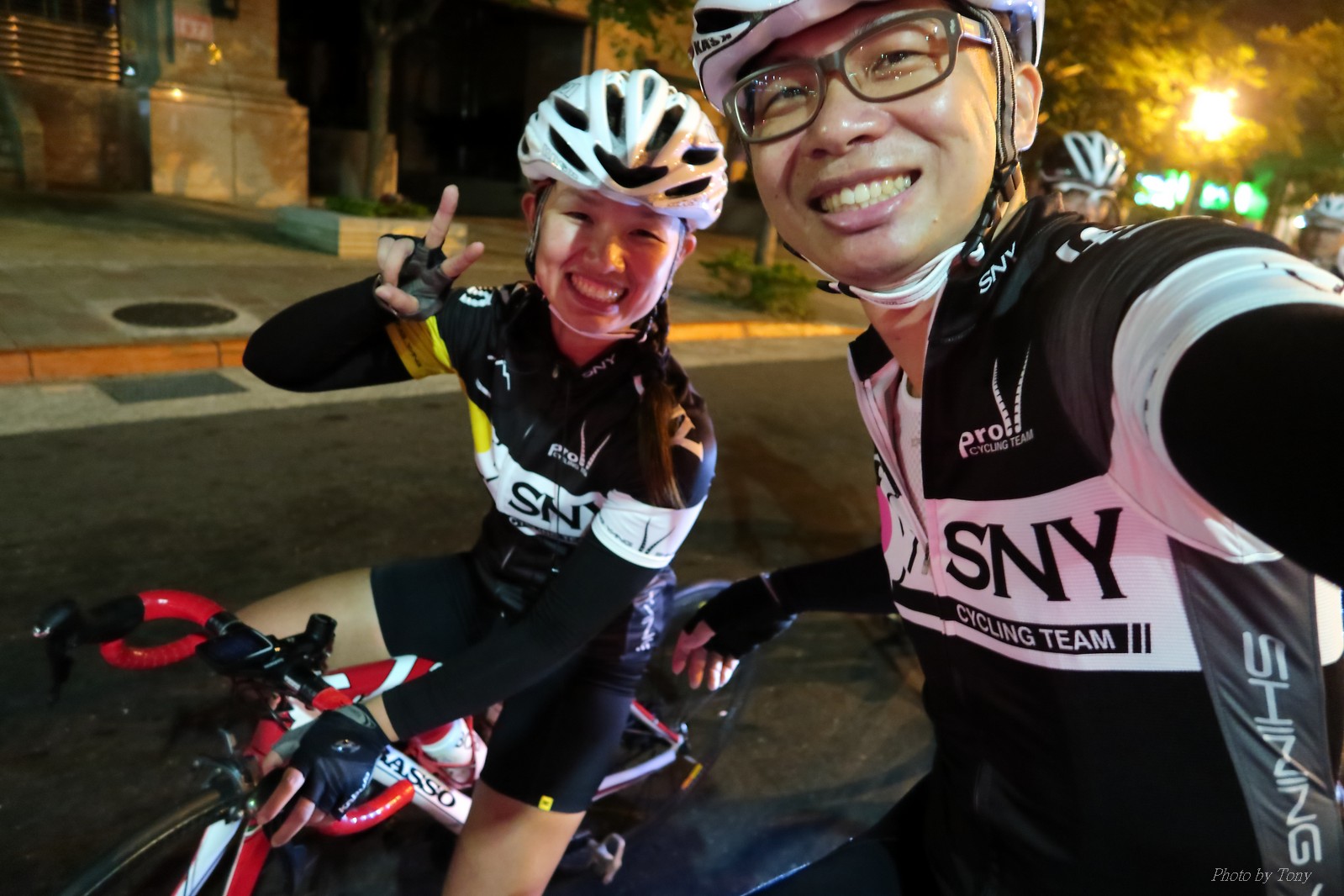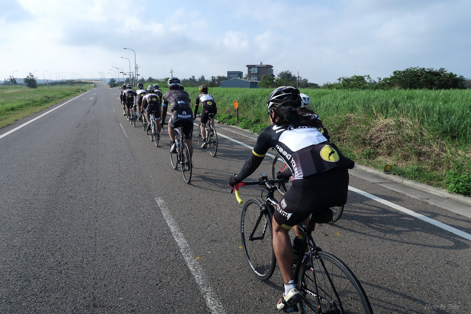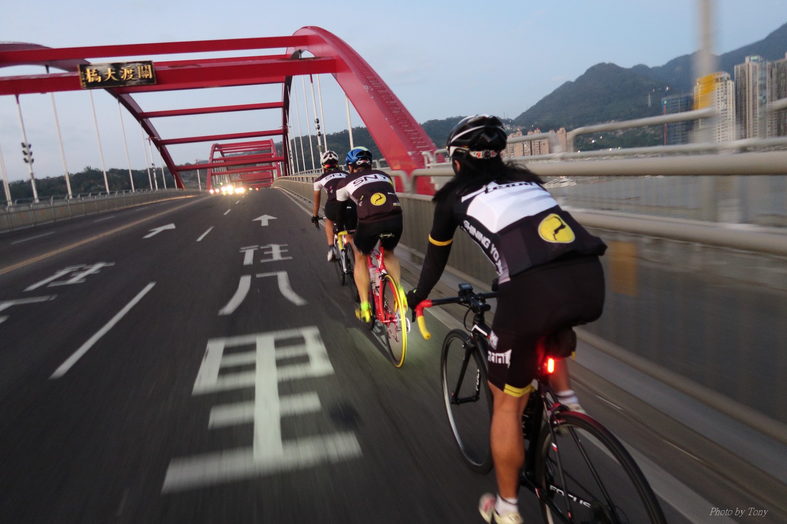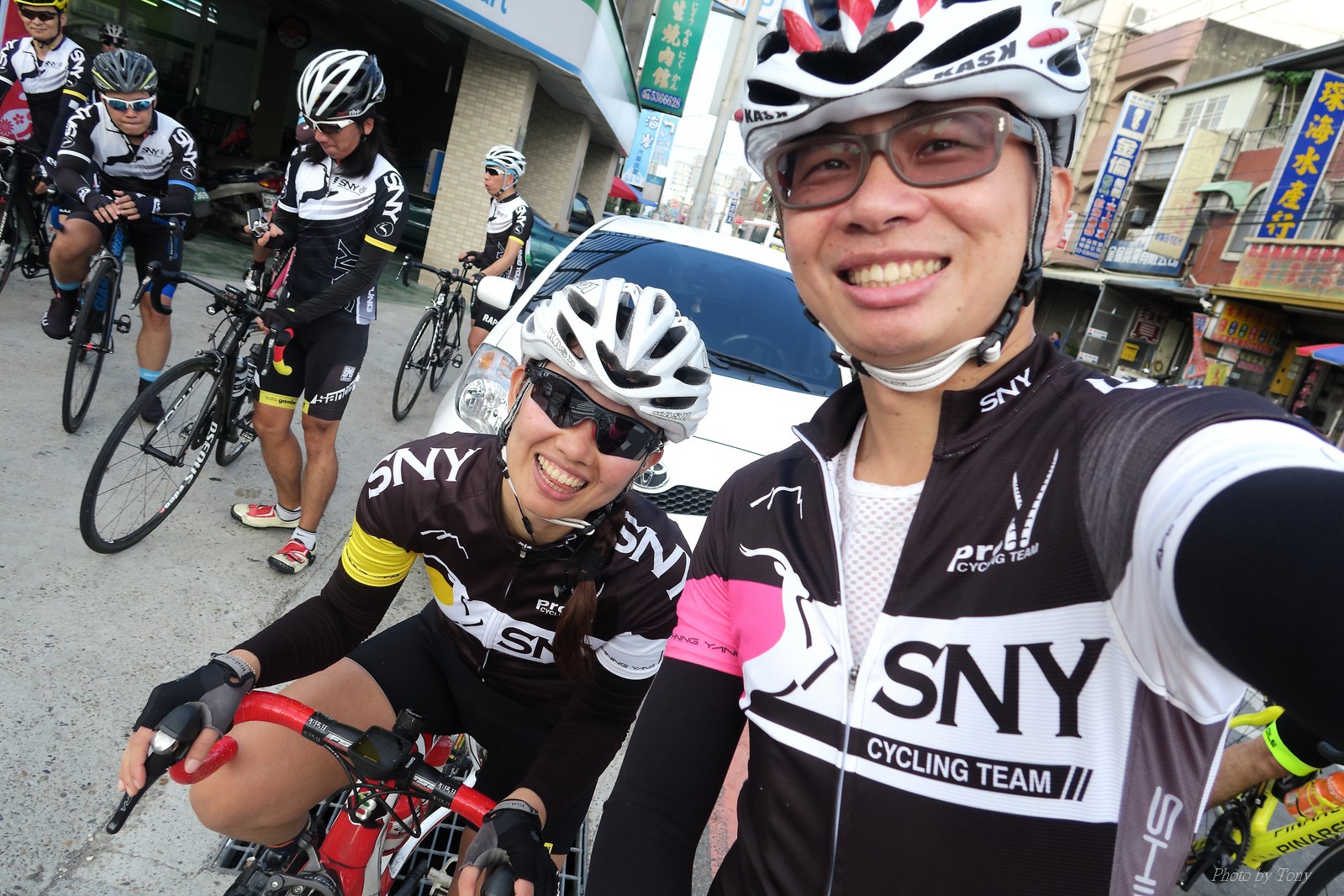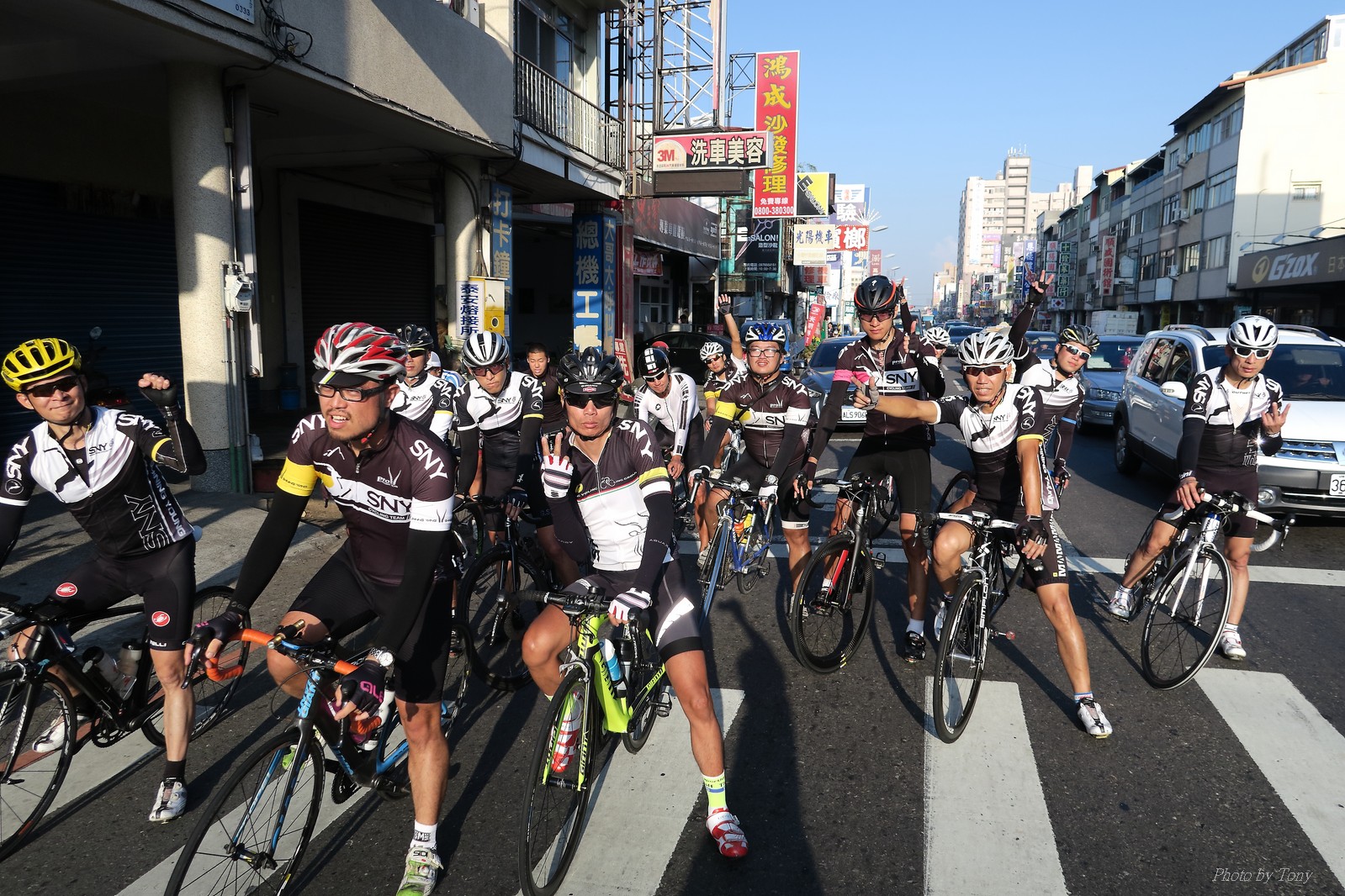 SNY 騎福之旅列車在11/19啟動 一連四天要誠心拜訪台灣9間廟宇 帶著大家的祝福紙條,誠心祈求上天保佑這群熱血的車友 因為體力弱加上上星期也已請過假,這次就報名參加第一天台北到台南的旅程就好 雖然第一天騎西濱再接省道,但人氣也最旺,應該很好玩吧!! 星期四一早不到4點就起床..整裝好出門買個飯糰後趕緊往行天宮集合 好幾位今天沒能一起騎到台南的車友也一起來集合,感覺好溫暖!! 今天的目的地是到台南南鯤鯓,總共300多公里,所以要早早出發(所以我沒和爸媽說要去那騎車,說要去騎去台南,應該會被唸到翻吧XDD) 大夥在黎明天亮前出發... 慢慢騎到八里和另外一團集合 若說去年的北高SNY團是一群精力充沛的高中生,那這次的騎福團真的像是小學生一樣 一進入西濱,二路縱隊馬上乖乖排好..(只有獅王偶有耐不住性子出去奔跑一下:P) 也可能因為是E神和500光在前頭領騎,大家都很乖吧~哈哈!! 今天的風沒有很大..但領頭羊輕輕踩,時速也就30多了 有別於去年sny北高團 今年EASON、光叔、雷射槍清志哥還有麻美都有安裝功率計.. 不用體感,不用心跳也不用時速來控速..,這次都用瓦數來控制強度(用體感,心跳和實際瓦數真的有一段落差!!) 大概就是180-200W來破風領騎 後面只要躲的好,大概只需150W就可以穩穩跟上.. 所以一路跟到新竹算是輕鬆愉快啊~(但是半路到永安就肚子餓了XDD,我明明吃了一個大飯糰啊,趕緊在進新竹前又吃了一大個飯糰!!) 從西濱轉進新竹市,雖路程不遠,但紅綠燈擋個幾次就耗上不少時間 大家在城隍廟拜拜之後,就趕緊上車趕路 所以出了新竹之後,領頭羊將瓦數提高了一些..(雖然我只有騎一天,但實力太弱,只能躲好再躲好XDD) 在進入苗栗好望角前,EASON頻頻回頭問有沒有人知道如何切西瓜避開好望角的上坡,不過沒人回應...知道路的好像都已被放生了XDDD 主團就由500光領軍一路上攻好望角,看著功率計的數值一路往300W衝上去..,媽呀,要這麼殺嗎?? 降降降,降到250W就好,還是逐漸被麻美拉開..,後來看到EASON慢慢退下來,叫大家慢慢騎就好,路還很長,不要在這太衝動..,我再將瓦數降到230W左右.. 一回頭,一群人全擠在我後方..,呃...壓力有點大!! 離頂點最後300公尺,大家按奈不住,紛紛從我身旁噴出去.. 嗯..我要繼續忍住,不差這一點點距離... 待上到頂點再抽車加速衝下坡來追... 這次騎福之旅沒有安排白沙屯媽祖廟,所以整團就直接沒休息繼續往前行 不過後來發現後方幾位車友被放生的有點遠,大家還是決定先暫停休息 等到全員到齊再出發,我叫寶寶趕快往前擠,不然領頭羊紅燈一起步加速,愈後面離愈遠,都要抽車才能追上,會很累.. 不過她說在前面壓力好大..且跟一跟就又慢慢掉隊了!! 老實說寶寶的實力耐力真的不錯,不過要在一群男生裡騎車,還真是辛苦了些!!(蛋蛋怎麼沒有來一起陪一下!!) 且這一段瓦數有時拉的比較高,所以這一段又有幾個人被放生..快到大甲鎮瀾宮前我也快撐不住了..>"<.. 還好就到叉路口了,呼,在崩潰前逃過掉隊的一刧!!(其實瓦數還是沒有拉很高,但就是跟的有點累,最近這一個月都沒有外騎長距離..耐力肌力明顯不足吧!!) 在大甲鎮瀾宮祈福加吃飽喝足後..不知不覺已經休息一個半小時.. 得要加緊趕路了.. 但台一省道上不斷的紅綠燈,騎到讓人快崩潰XDD(一公里可以停個2-3次紅綠燈~) 過了台中之後因為時間比預計慢了2小時,決定不要再騎台一線,要從台19切往西濱去,騎啊騎,不一心又錯過了日盛大哥要和我們會合的追分車站XDD) 後來愈往南部感覺愈來愈順,就決定一路騎台19就好 天色也在進入雲林之後明顯暗了下來.. 大家備好頭燈尾燈,繼續加班往嘉義挺進... 而為了安全起見,雖有體力,但跟不上主團的寶寶還有身體不適的狐狸都被勸上車 進入夜晚,騎起來是很涼很舒服,但因視線不佳的關係,讓我不得不全神貫注的跟車.. 騎起來有心驚驚的感覺XDD 不得不說麻美好有力,一路時速35上下,從彰化把大家帶領到北港,都不會累的,真的好勇猛!!在家插香練功有成!! 晚上7點多,終於抵達北港,離最後一站台南南鯤鯓代天府只剩30公里左右了 呼..快成功了!! 不過...聽說今天住的地方離南鯤鯓還有將近50公里...Orz 媽呀,算算時間,今天至少要加班到10點半以後>"< 再搭朱大哥的車回去..那不就半夜2點了.. 而本來要搭朱大哥回台北的車友有8位 2位沒來..,2位已先行搭高鐵回程!! 連我剩下四位..我提議我們四個先搭高鐵回去 感謝獅王、小游和發哥同意我的任性,都要一起陪我上高鐵..(這樣朱大哥的車也不用再來回跑!!) 離開北港前,自己還特地先繞到朝天宮天拜拜,祈求保佑家人朋友健康平安!! 再和主團說byebye~ 然後最後11km獅王就火力大開,整天下來心跳唯一突破170的就是這了 一整個回家前要把膏用完的概念XDDD 8:36上高鐵,10:00就到台北,一整個飛快!! 且前後輪用大垃圾袋包一包就上車,前後輪都不用拆,真是太方便了!!高鐵真是比台鐵友善太多了,是遠程單車族的好朋友!! 今天感謝SNY大家一路的照顧,雖不圓滿,但大夥平安成功!!:D