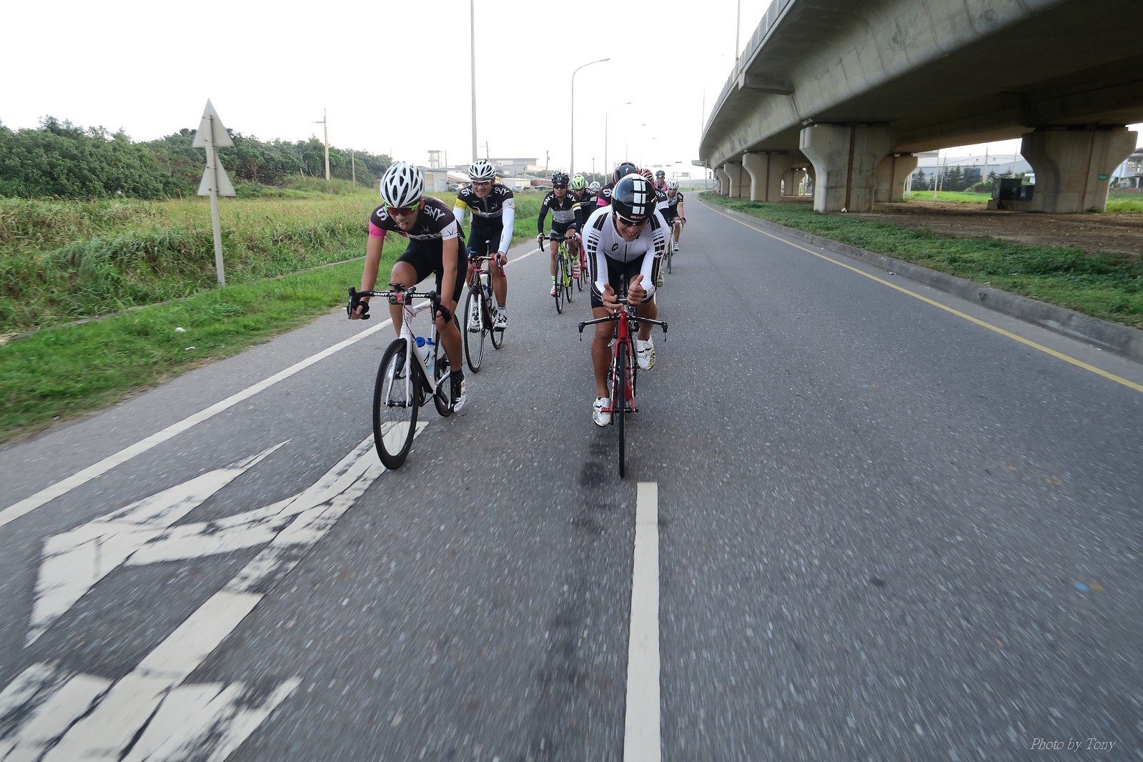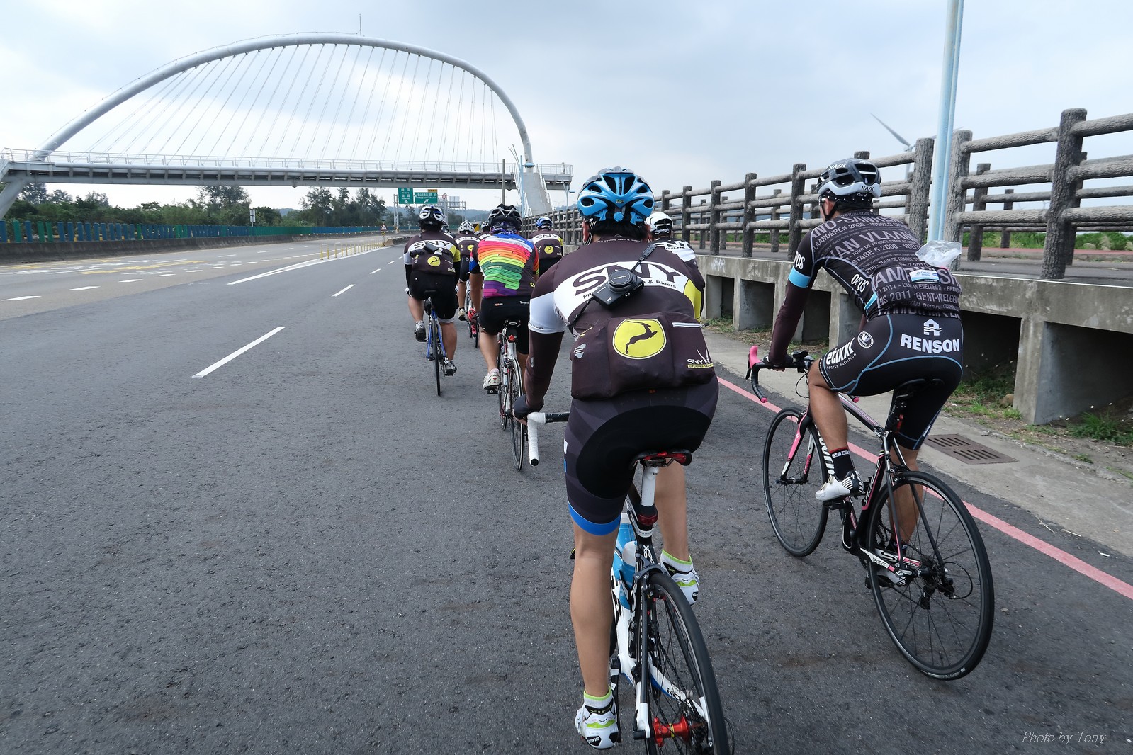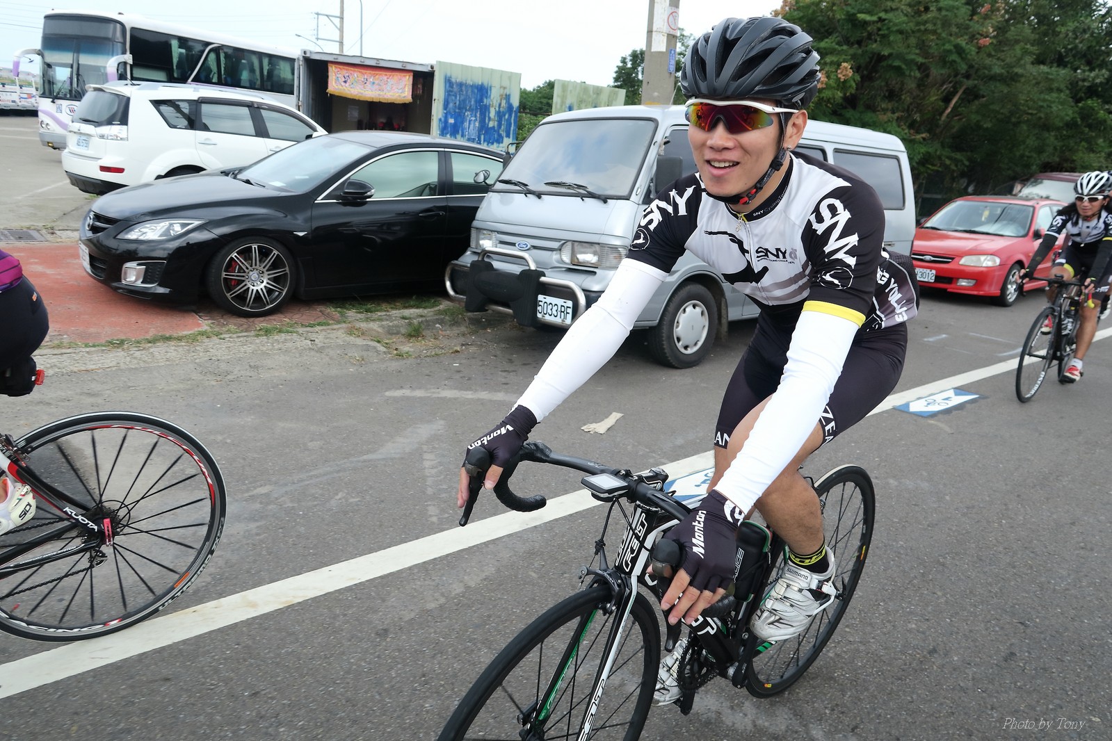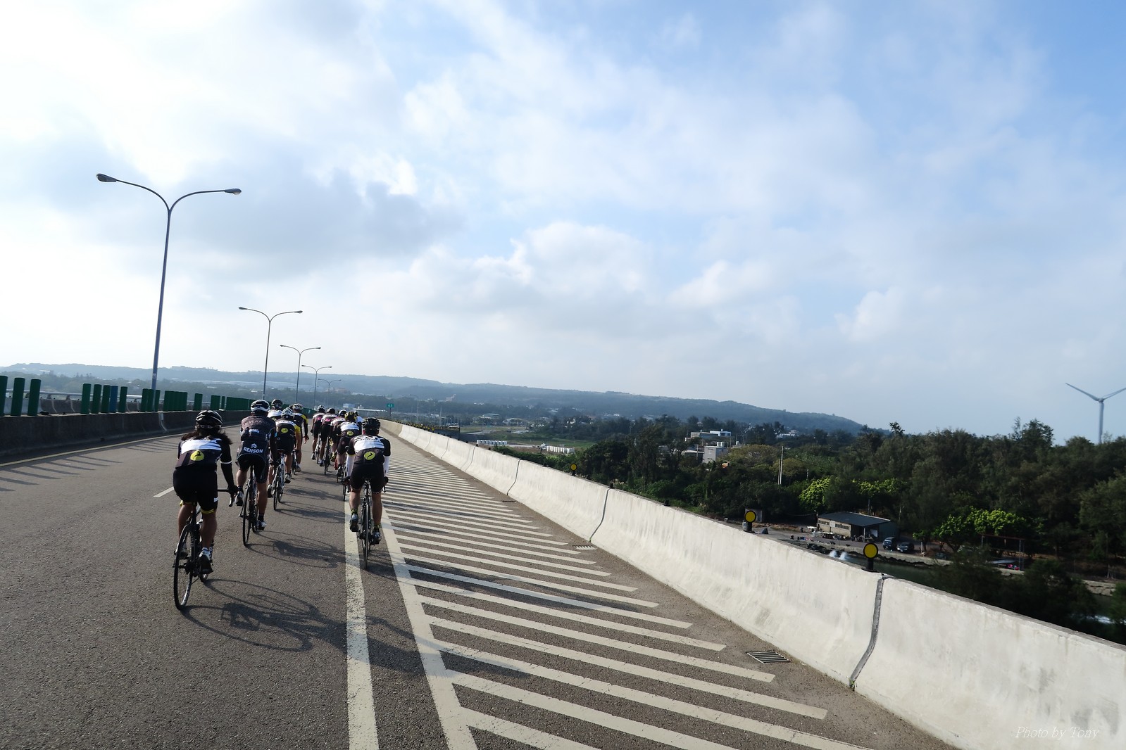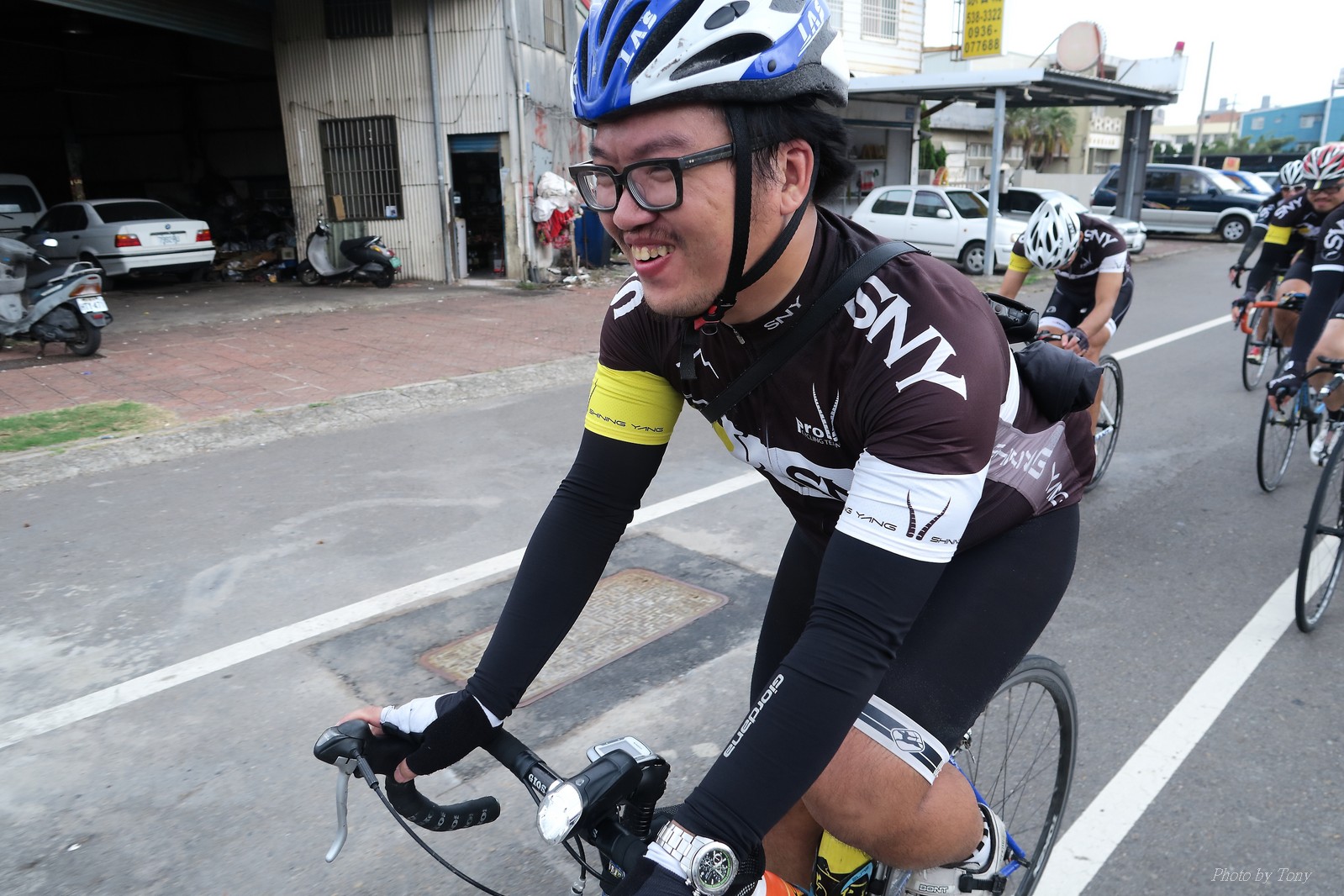 SNY 騎福之旅列車在11/19啟動 一連四天要誠心拜訪台灣9間廟宇 帶著大家的祝福紙條,誠心祈求上天保佑這群熱血的車友 因為體力弱加上上星期也已請過假,這次就報名參加第一天台北到台南的旅程就好 雖然第一天騎西濱再接省道,但人氣也最旺,應該很好玩吧!! 星期四一早不到4點就起床..整裝好出門買個飯糰後趕緊往行天宮集合 好幾位今天沒能一起騎到台南的車友也一起來集合,感覺好溫暖!! 今天的目的地是到台南南鯤鯓,總共300多公里,所以要早早出發(所以我沒和爸媽說要去那騎車,說要去騎去台南,應該會被唸到翻吧XDD) 大夥在黎明天亮前出發... 慢慢騎到八里和另外一團集合 若說去年的北高SNY團是一群精力充沛的高中生,那這次的騎福團真的像是小學生一樣 一進入西濱,二路縱隊馬上乖乖排好..(只有獅王偶有耐不住性子出去奔跑一下:P) 也可能因為是E神和500光在前頭領騎,大家都很乖吧~哈哈!! 今天的風沒有很大..但領頭羊輕輕踩,時速也就30多了 有別於去年sny北高團 今年EASON、光叔、雷射槍清志哥還有麻美都有安裝功率計.. 不用體感,不用心跳也不用時速來控速..,這次都用瓦數來控制強度(用體感,心跳和實際瓦數真的有一段落差!!) 大概就是180-200W來破風領騎 後面只要躲的好,大概只需150W就可以穩穩跟上.. 所以一路跟到新竹算是輕鬆愉快啊~(但是半路到永安就肚子餓了XDD,我明明吃了一個大飯糰啊,趕緊在進新竹前又吃了一大個飯糰!!) 從西濱轉進新竹市,雖路程不遠,但紅綠燈擋個幾次就耗上不少時間 大家在城隍廟拜拜之後,就趕緊上車趕路 所以出了新竹之後,領頭羊將瓦數提高了一些..(雖然我只有騎一天,但實力太弱,只能躲好再躲好XDD) 在進入苗栗好望角前,EASON頻頻回頭問有沒有人知道如何切西瓜避開好望角的上坡,不過沒人回應...知道路的好像都已被放生了XDDD 主團就由500光領軍一路上攻好望角,看著功率計的數值一路往300W衝上去..,媽呀,要這麼殺嗎?? 降降降,降到250W就好,還是逐漸被麻美拉開..,後來看到EASON慢慢退下來,叫大家慢慢騎就好,路還很長,不要在這太衝動..,我再將瓦數降到230W左右.. 一回頭,一群人全擠在我後方..,呃...壓力有點大!! 離頂點最後300公尺,大家按奈不住,紛紛從我身旁噴出去.. 嗯..我要繼續忍住,不差這一點點距離... 待上到頂點再抽車加速衝下坡來追... 這次騎福之旅沒有安排白沙屯媽祖廟,所以整團就直接沒休息繼續往前行 不過後來發現後方幾位車友被放生的有點遠,大家還是決定先暫停休息 等到全員到齊再出發,我叫寶寶趕快往前擠,不然領頭羊紅燈一起步加速,愈後面離愈遠,都要抽車才能追上,會很累.. 不過她說在前面壓力好大..且跟一跟就又慢慢掉隊了!! 老實說寶寶的實力耐力真的不錯,不過要在一群男生裡騎車,還真是辛苦了些!!(蛋蛋怎麼沒有來一起陪一下!!) 且這一段瓦數有時拉的比較高,所以這一段又有幾個人被放生..快到大甲鎮瀾宮前我也快撐不住了..>"<.. 還好就到叉路口了,呼,在崩潰前逃過掉隊的一刧!!(其實瓦數還是沒有拉很高,但就是跟的有點累,最近這一個月都沒有外騎長距離..耐力肌力明顯不足吧!!) 在大甲鎮瀾宮祈福加吃飽喝足後..不知不覺已經休息一個半小時.. 得要加緊趕路了.. 但台一省道上不斷的紅綠燈,騎到讓人快崩潰XDD(一公里可以停個2-3次紅綠燈~) 過了台中之後因為時間比預計慢了2小時,決定不要再騎台一線,要從台19切往西濱去,騎啊騎,不一心又錯過了日盛大哥要和我們會合的追分車站XDD) 後來愈往南部感覺愈來愈順,就決定一路騎台19就好 天色也在進入雲林之後明顯暗了下來.. 大家備好頭燈尾燈,繼續加班往嘉義挺進... 而為了安全起見,雖有體力,但跟不上主團的寶寶還有身體不適的狐狸都被勸上車 進入夜晚,騎起來是很涼很舒服,但因視線不佳的關係,讓我不得不全神貫注的跟車.. 騎起來有心驚驚的感覺XDD 不得不說麻美好有力,一路時速35上下,從彰化把大家帶領到北港,都不會累的,真的好勇猛!!在家插香練功有成!! 晚上7點多,終於抵達北港,離最後一站台南南鯤鯓代天府只剩30公里左右了 呼..快成功了!! 不過...聽說今天住的地方離南鯤鯓還有將近50公里...Orz 媽呀,算算時間,今天至少要加班到10點半以後>"< 再搭朱大哥的車回去..那不就半夜2點了.. 而本來要搭朱大哥回台北的車友有8位 2位沒來..,2位已先行搭高鐵回程!! 連我剩下四位..我提議我們四個先搭高鐵回去 感謝獅王、小游和發哥同意我的任性,都要一起陪我上高鐵..(這樣朱大哥的車也不用再來回跑!!) 離開北港前,自己還特地先繞到朝天宮天拜拜,祈求保佑家人朋友健康平安!! 再和主團說byebye~ 然後最後11km獅王就火力大開,整天下來心跳唯一突破170的就是這了 一整個回家前要把膏用完的概念XDDD 8:36上高鐵,10:00就到台北,一整個飛快!! 且前後輪用大垃圾袋包一包就上車,前後輪都不用拆,真是太方便了!!高鐵真是比台鐵友善太多了,是遠程單車族的好朋友!! 今天感謝SNY大家一路的照顧,雖不圓滿,但大夥平安成功!!:D