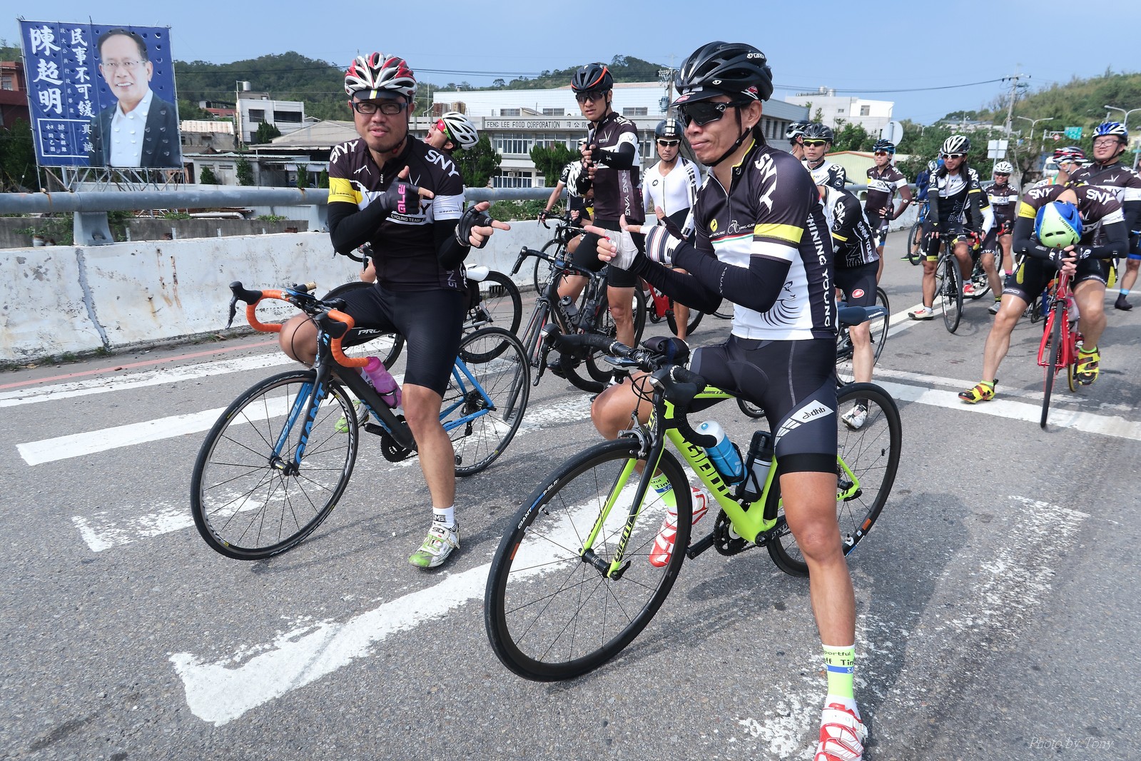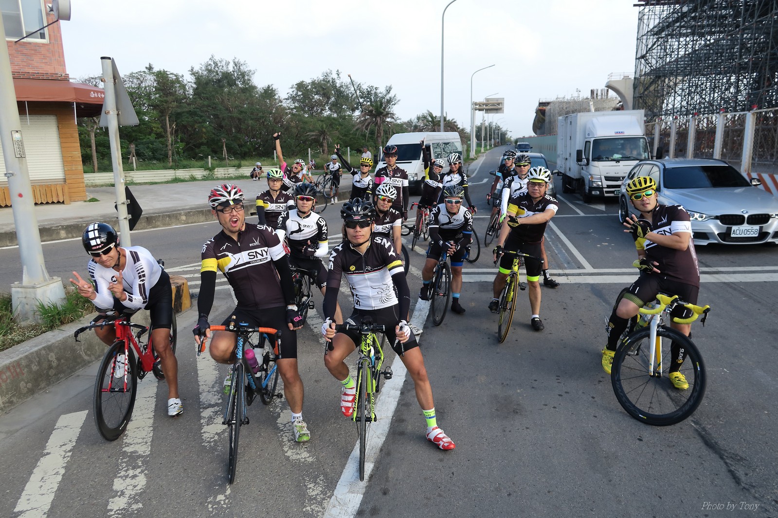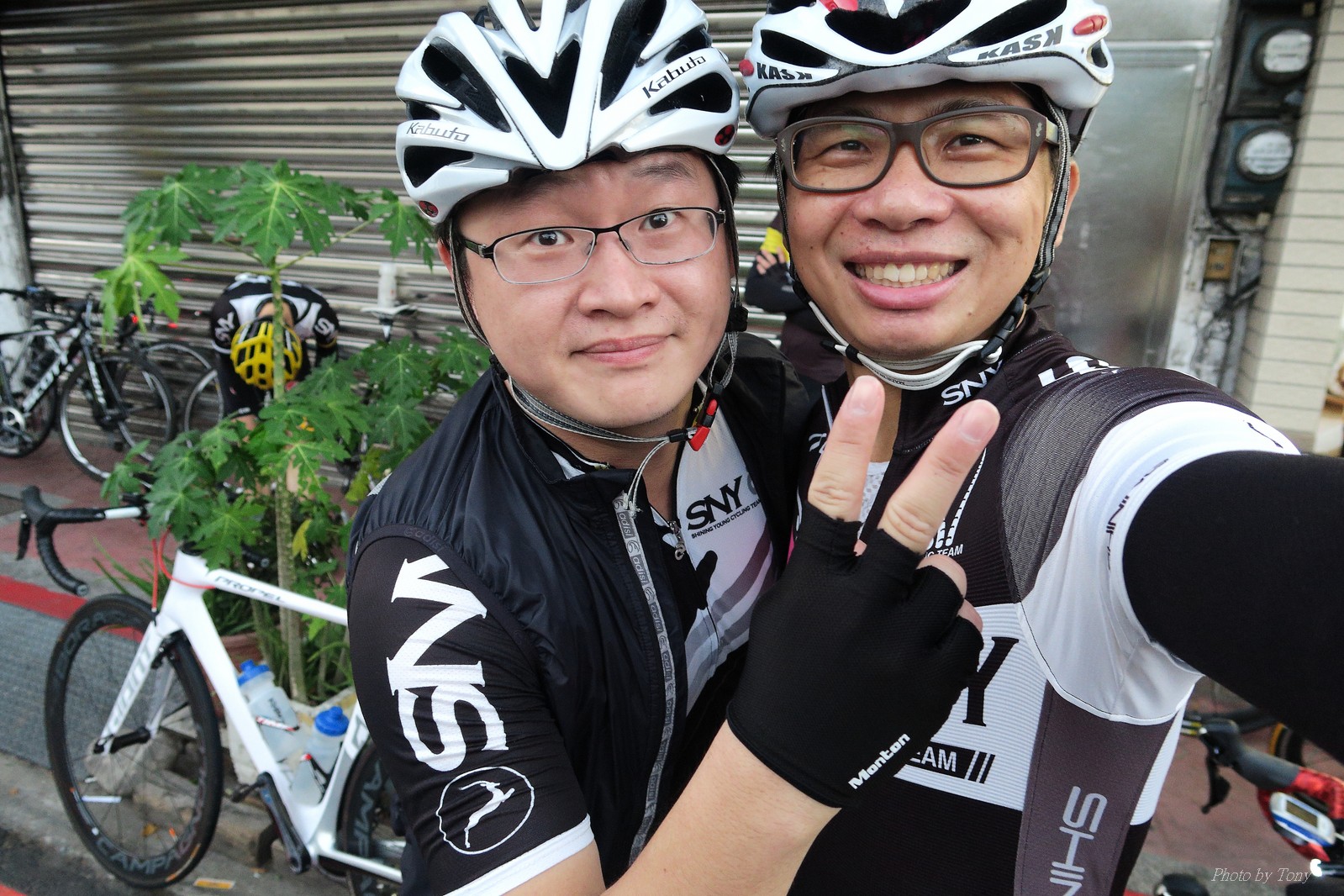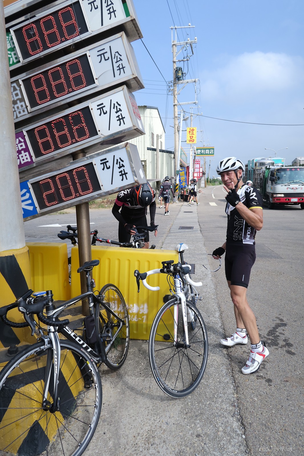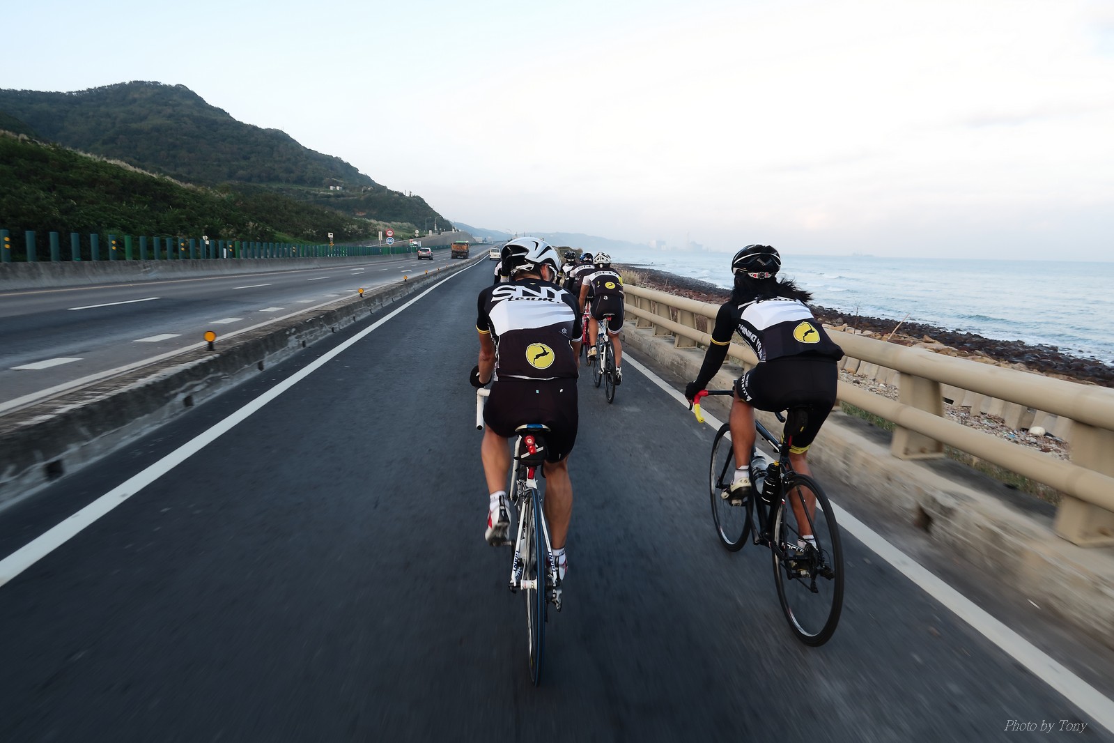 SNY 騎福之旅列車在11/19啟動 一連四天要誠心拜訪台灣9間廟宇 帶著大家的祝福紙條,誠心祈求上天保佑這群熱血的車友 因為體力弱加上上星期也已請過假,這次就報名參加第一天台北到台南的旅程就好 雖然第一天騎西濱再接省道,但人氣也最旺,應該很好玩吧!! 星期四一早不到4點就起床..整裝好出門買個飯糰後趕緊往行天宮集合 好幾位今天沒能一起騎到台南的車友也一起來集合,感覺好溫暖!! 今天的目的地是到台南南鯤鯓,總共300多公里,所以要早早出發(所以我沒和爸媽說要去那騎車,說要去騎去台南,應該會被唸到翻吧XDD) 大夥在黎明天亮前出發... 慢慢騎到八里和另外一團集合 若說去年的北高SNY團是一群精力充沛的高中生,那這次的騎福團真的像是小學生一樣 一進入西濱,二路縱隊馬上乖乖排好..(只有獅王偶有耐不住性子出去奔跑一下:P) 也可能因為是E神和500光在前頭領騎,大家都很乖吧~哈哈!! 今天的風沒有很大..但領頭羊輕輕踩,時速也就30多了 有別於去年sny北高團 今年EASON、光叔、雷射槍清志哥還有麻美都有安裝功率計.. 不用體感,不用心跳也不用時速來控速..,這次都用瓦數來控制強度(用體感,心跳和實際瓦數真的有一段落差!!) 大概就是180-200W來破風領騎 後面只要躲的好,大概只需150W就可以穩穩跟上.. 所以一路跟到新竹算是輕鬆愉快啊~(但是半路到永安就肚子餓了XDD,我明明吃了一個大飯糰啊,趕緊在進新竹前又吃了一大個飯糰!!) 從西濱轉進新竹市,雖路程不遠,但紅綠燈擋個幾次就耗上不少時間 大家在城隍廟拜拜之後,就趕緊上車趕路 所以出了新竹之後,領頭羊將瓦數提高了一些..(雖然我只有騎一天,但實力太弱,只能躲好再躲好XDD) 在進入苗栗好望角前,EASON頻頻回頭問有沒有人知道如何切西瓜避開好望角的上坡,不過沒人回應...知道路的好像都已被放生了XDDD 主團就由500光領軍一路上攻好望角,看著功率計的數值一路往300W衝上去..,媽呀,要這麼殺嗎?? 降降降,降到250W就好,還是逐漸被麻美拉開..,後來看到EASON慢慢退下來,叫大家慢慢騎就好,路還很長,不要在這太衝動..,我再將瓦數降到230W左右.. 一回頭,一群人全擠在我後方..,呃...壓力有點大!! 離頂點最後300公尺,大家按奈不住,紛紛從我身旁噴出去.. 嗯..我要繼續忍住,不差這一點點距離... 待上到頂點再抽車加速衝下坡來追... 這次騎福之旅沒有安排白沙屯媽祖廟,所以整團就直接沒休息繼續往前行 不過後來發現後方幾位車友被放生的有點遠,大家還是決定先暫停休息 等到全員到齊再出發,我叫寶寶趕快往前擠,不然領頭羊紅燈一起步加速,愈後面離愈遠,都要抽車才能追上,會很累.. 不過她說在前面壓力好大..且跟一跟就又慢慢掉隊了!! 老實說寶寶的實力耐力真的不錯,不過要在一群男生裡騎車,還真是辛苦了些!!(蛋蛋怎麼沒有來一起陪一下!!) 且這一段瓦數有時拉的比較高,所以這一段又有幾個人被放生..快到大甲鎮瀾宮前我也快撐不住了..>"<.. 還好就到叉路口了,呼,在崩潰前逃過掉隊的一刧!!(其實瓦數還是沒有拉很高,但就是跟的有點累,最近這一個月都沒有外騎長距離..耐力肌力明顯不足吧!!) 在大甲鎮瀾宮祈福加吃飽喝足後..不知不覺已經休息一個半小時.. 得要加緊趕路了.. 但台一省道上不斷的紅綠燈,騎到讓人快崩潰XDD(一公里可以停個2-3次紅綠燈~) 過了台中之後因為時間比預計慢了2小時,決定不要再騎台一線,要從台19切往西濱去,騎啊騎,不一心又錯過了日盛大哥要和我們會合的追分車站XDD) 後來愈往南部感覺愈來愈順,就決定一路騎台19就好 天色也在進入雲林之後明顯暗了下來.. 大家備好頭燈尾燈,繼續加班往嘉義挺進... 而為了安全起見,雖有體力,但跟不上主團的寶寶還有身體不適的狐狸都被勸上車 進入夜晚,騎起來是很涼很舒服,但因視線不佳的關係,讓我不得不全神貫注的跟車.. 騎起來有心驚驚的感覺XDD 不得不說麻美好有力,一路時速35上下,從彰化把大家帶領到北港,都不會累的,真的好勇猛!!在家插香練功有成!! 晚上7點多,終於抵達北港,離最後一站台南南鯤鯓代天府只剩30公里左右了 呼..快成功了!! 不過...聽說今天住的地方離南鯤鯓還有將近50公里...Orz 媽呀,算算時間,今天至少要加班到10點半以後>"< 再搭朱大哥的車回去..那不就半夜2點了.. 而本來要搭朱大哥回台北的車友有8位 2位沒來..,2位已先行搭高鐵回程!! 連我剩下四位..我提議我們四個先搭高鐵回去 感謝獅王、小游和發哥同意我的任性,都要一起陪我上高鐵..(這樣朱大哥的車也不用再來回跑!!) 離開北港前,自己還特地先繞到朝天宮天拜拜,祈求保佑家人朋友健康平安!! 再和主團說byebye~ 然後最後11km獅王就火力大開,整天下來心跳唯一突破170的就是這了 一整個回家前要把膏用完的概念XDDD 8:36上高鐵,10:00就到台北,一整個飛快!! 且前後輪用大垃圾袋包一包就上車,前後輪都不用拆,真是太方便了!!高鐵真是比台鐵友善太多了,是遠程單車族的好朋友!! 今天感謝SNY大家一路的照顧,雖不圓滿,但大夥平安成功!!:D