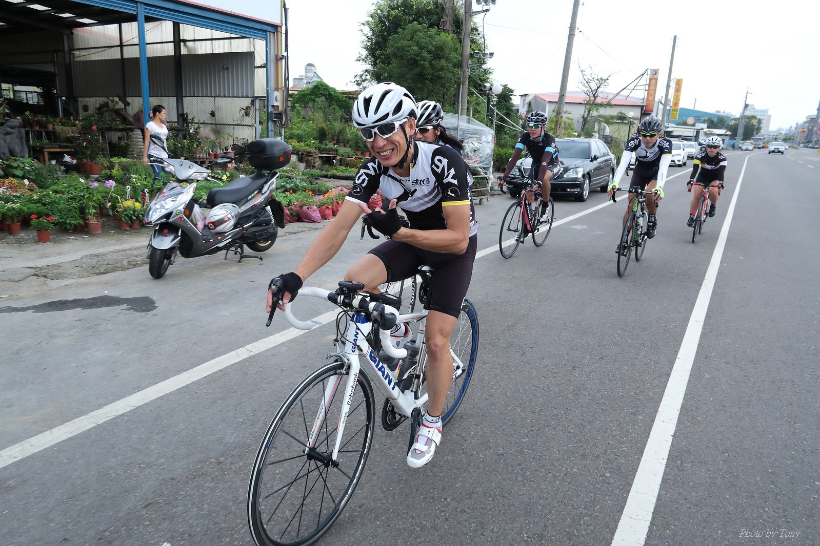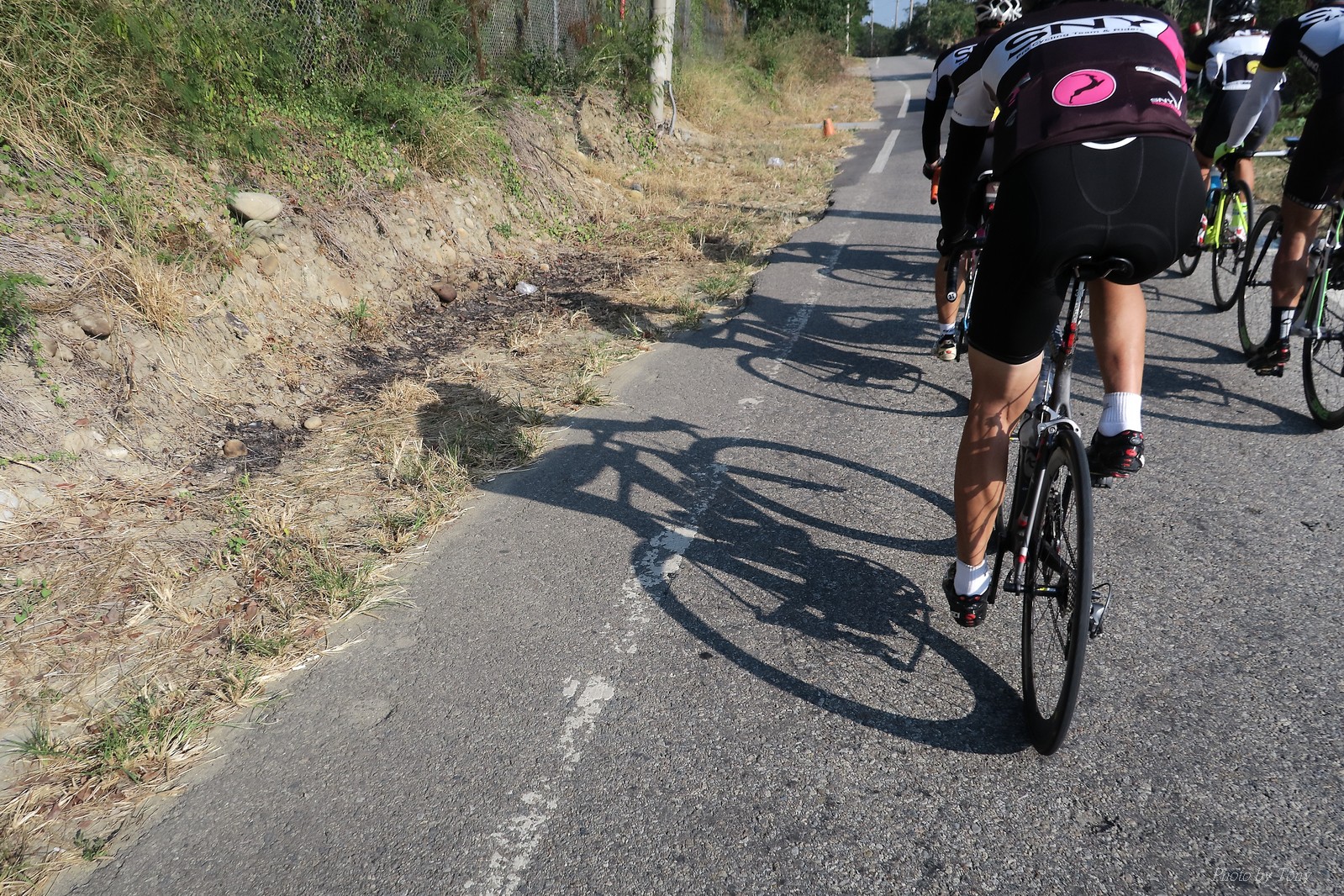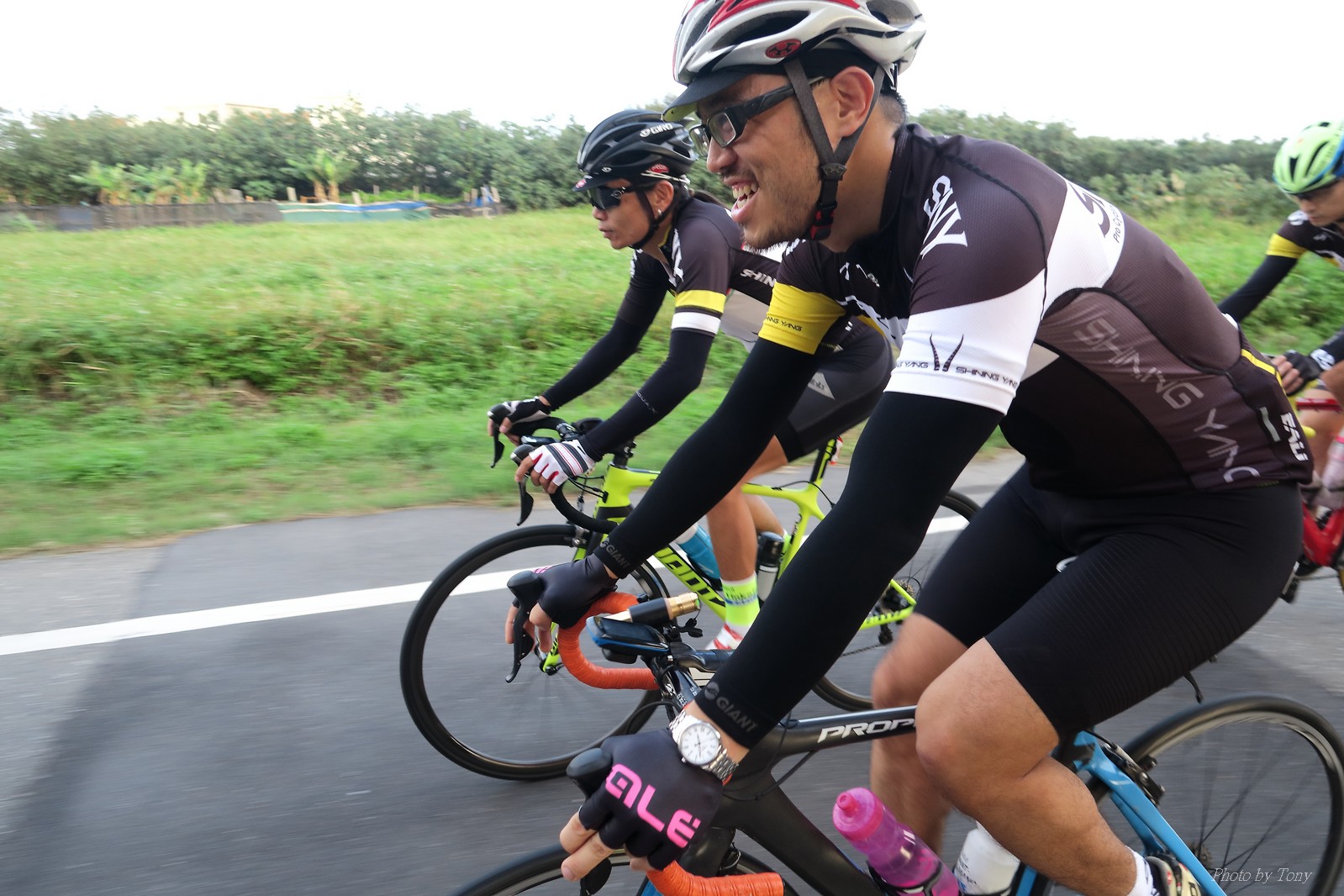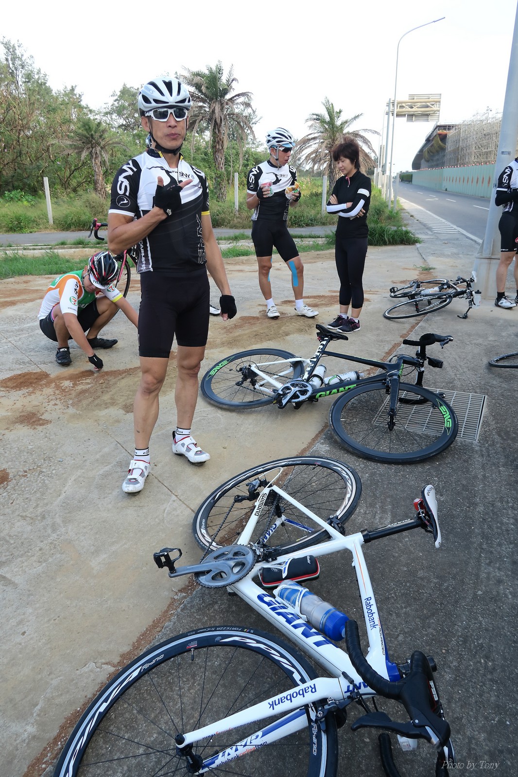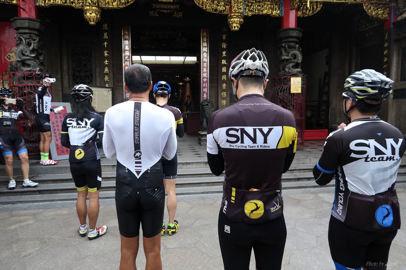 SNY 騎福之旅列車在11/19啟動 一連四天要誠心拜訪台灣9間廟宇 帶著大家的祝福紙條,誠心祈求上天保佑這群熱血的車友 因為體力弱加上上星期也已請過假,這次就報名參加第一天台北到台南的旅程就好 雖然第一天騎西濱再接省道,但人氣也最旺,應該很好玩吧!! 星期四一早不到4點就起床..整裝好出門買個飯糰後趕緊往行天宮集合 好幾位今天沒能一起騎到台南的車友也一起來集合,感覺好溫暖!! 今天的目的地是到台南南鯤鯓,總共300多公里,所以要早早出發(所以我沒和爸媽說要去那騎車,說要去騎去台南,應該會被唸到翻吧XDD) 大夥在黎明天亮前出發... 慢慢騎到八里和另外一團集合 若說去年的北高SNY團是一群精力充沛的高中生,那這次的騎福團真的像是小學生一樣 一進入西濱,二路縱隊馬上乖乖排好..(只有獅王偶有耐不住性子出去奔跑一下:P) 也可能因為是E神和500光在前頭領騎,大家都很乖吧~哈哈!! 今天的風沒有很大..但領頭羊輕輕踩,時速也就30多了 有別於去年sny北高團 今年EASON、光叔、雷射槍清志哥還有麻美都有安裝功率計.. 不用體感,不用心跳也不用時速來控速..,這次都用瓦數來控制強度(用體感,心跳和實際瓦數真的有一段落差!!) 大概就是180-200W來破風領騎 後面只要躲的好,大概只需150W就可以穩穩跟上.. 所以一路跟到新竹算是輕鬆愉快啊~(但是半路到永安就肚子餓了XDD,我明明吃了一個大飯糰啊,趕緊在進新竹前又吃了一大個飯糰!!) 從西濱轉進新竹市,雖路程不遠,但紅綠燈擋個幾次就耗上不少時間 大家在城隍廟拜拜之後,就趕緊上車趕路 所以出了新竹之後,領頭羊將瓦數提高了一些..(雖然我只有騎一天,但實力太弱,只能躲好再躲好XDD) 在進入苗栗好望角前,EASON頻頻回頭問有沒有人知道如何切西瓜避開好望角的上坡,不過沒人回應...知道路的好像都已被放生了XDDD 主團就由500光領軍一路上攻好望角,看著功率計的數值一路往300W衝上去..,媽呀,要這麼殺嗎?? 降降降,降到250W就好,還是逐漸被麻美拉開..,後來看到EASON慢慢退下來,叫大家慢慢騎就好,路還很長,不要在這太衝動..,我再將瓦數降到230W左右.. 一回頭,一群人全擠在我後方..,呃...壓力有點大!! 離頂點最後300公尺,大家按奈不住,紛紛從我身旁噴出去.. 嗯..我要繼續忍住,不差這一點點距離... 待上到頂點再抽車加速衝下坡來追... 這次騎福之旅沒有安排白沙屯媽祖廟,所以整團就直接沒休息繼續往前行 不過後來發現後方幾位車友被放生的有點遠,大家還是決定先暫停休息 等到全員到齊再出發,我叫寶寶趕快往前擠,不然領頭羊紅燈一起步加速,愈後面離愈遠,都要抽車才能追上,會很累.. 不過她說在前面壓力好大..且跟一跟就又慢慢掉隊了!! 老實說寶寶的實力耐力真的不錯,不過要在一群男生裡騎車,還真是辛苦了些!!(蛋蛋怎麼沒有來一起陪一下!!) 且這一段瓦數有時拉的比較高,所以這一段又有幾個人被放生..快到大甲鎮瀾宮前我也快撐不住了..>"<.. 還好就到叉路口了,呼,在崩潰前逃過掉隊的一刧!!(其實瓦數還是沒有拉很高,但就是跟的有點累,最近這一個月都沒有外騎長距離..耐力肌力明顯不足吧!!) 在大甲鎮瀾宮祈福加吃飽喝足後..不知不覺已經休息一個半小時.. 得要加緊趕路了.. 但台一省道上不斷的紅綠燈,騎到讓人快崩潰XDD(一公里可以停個2-3次紅綠燈~) 過了台中之後因為時間比預計慢了2小時,決定不要再騎台一線,要從台19切往西濱去,騎啊騎,不一心又錯過了日盛大哥要和我們會合的追分車站XDD) 後來愈往南部感覺愈來愈順,就決定一路騎台19就好 天色也在進入雲林之後明顯暗了下來.. 大家備好頭燈尾燈,繼續加班往嘉義挺進... 而為了安全起見,雖有體力,但跟不上主團的寶寶還有身體不適的狐狸都被勸上車 進入夜晚,騎起來是很涼很舒服,但因視線不佳的關係,讓我不得不全神貫注的跟車.. 騎起來有心驚驚的感覺XDD 不得不說麻美好有力,一路時速35上下,從彰化把大家帶領到北港,都不會累的,真的好勇猛!!在家插香練功有成!! 晚上7點多,終於抵達北港,離最後一站台南南鯤鯓代天府只剩30公里左右了 呼..快成功了!! 不過...聽說今天住的地方離南鯤鯓還有將近50公里...Orz 媽呀,算算時間,今天至少要加班到10點半以後>"< 再搭朱大哥的車回去..那不就半夜2點了.. 而本來要搭朱大哥回台北的車友有8位 2位沒來..,2位已先行搭高鐵回程!! 連我剩下四位..我提議我們四個先搭高鐵回去 感謝獅王、小游和發哥同意我的任性,都要一起陪我上高鐵..(這樣朱大哥的車也不用再來回跑!!) 離開北港前,自己還特地先繞到朝天宮天拜拜,祈求保佑家人朋友健康平安!! 再和主團說byebye~ 然後最後11km獅王就火力大開,整天下來心跳唯一突破170的就是這了 一整個回家前要把膏用完的概念XDDD 8:36上高鐵,10:00就到台北,一整個飛快!! 且前後輪用大垃圾袋包一包就上車,前後輪都不用拆,真是太方便了!!高鐵真是比台鐵友善太多了,是遠程單車族的好朋友!! 今天感謝SNY大家一路的照顧,雖不圓滿,但大夥平安成功!!:D