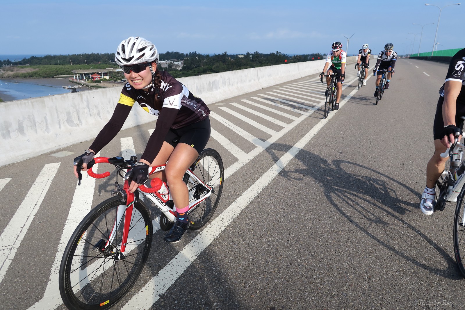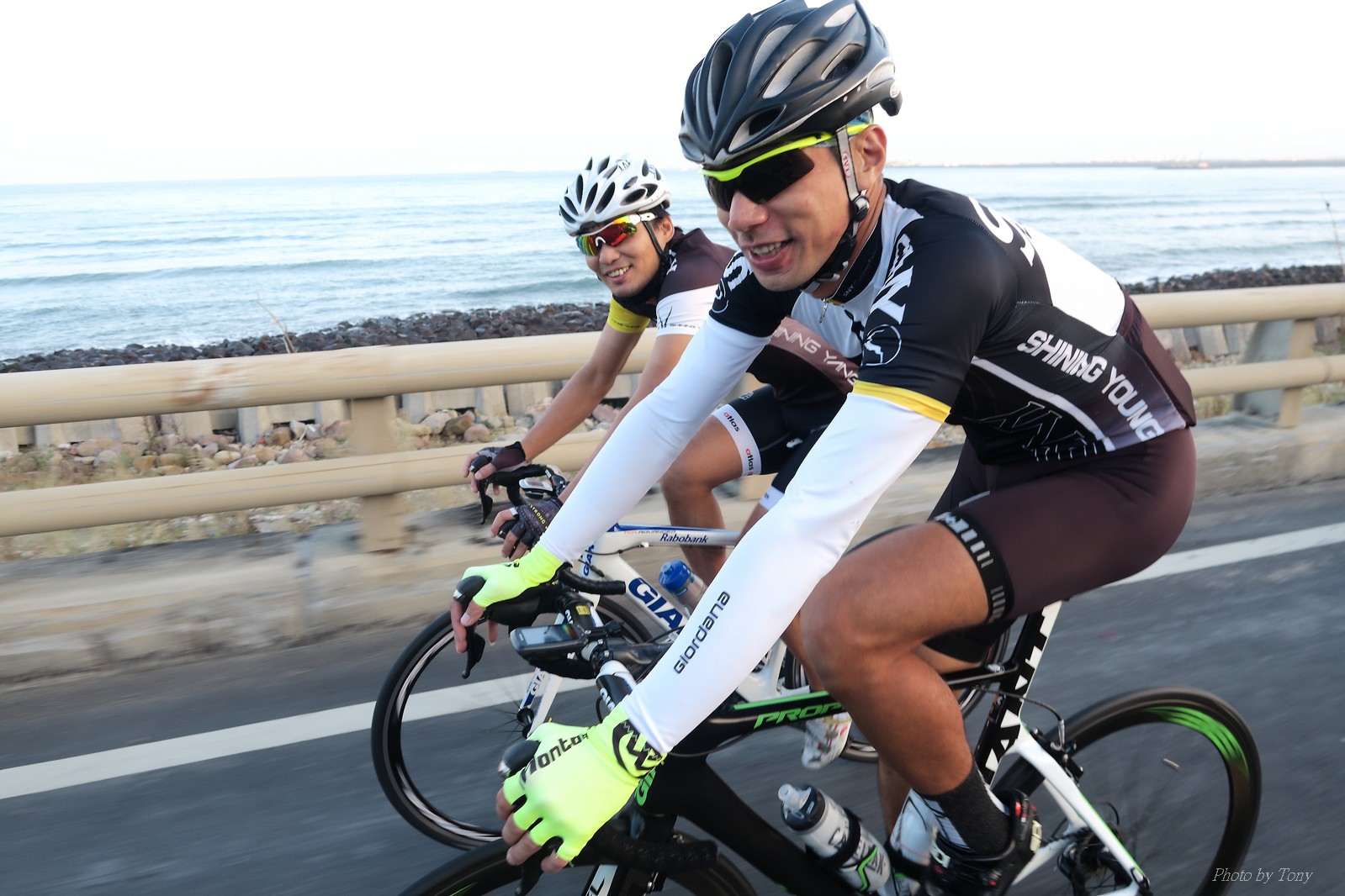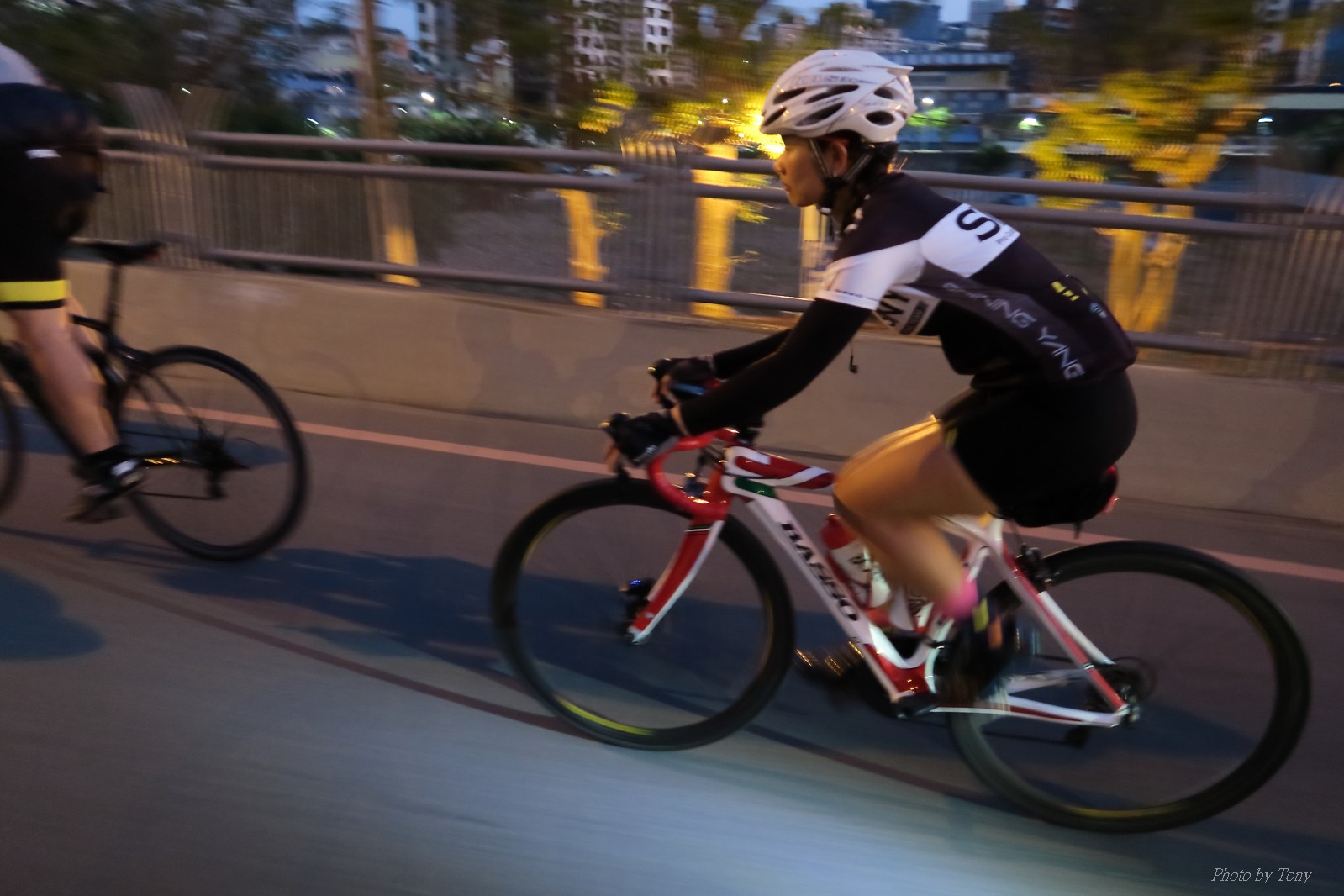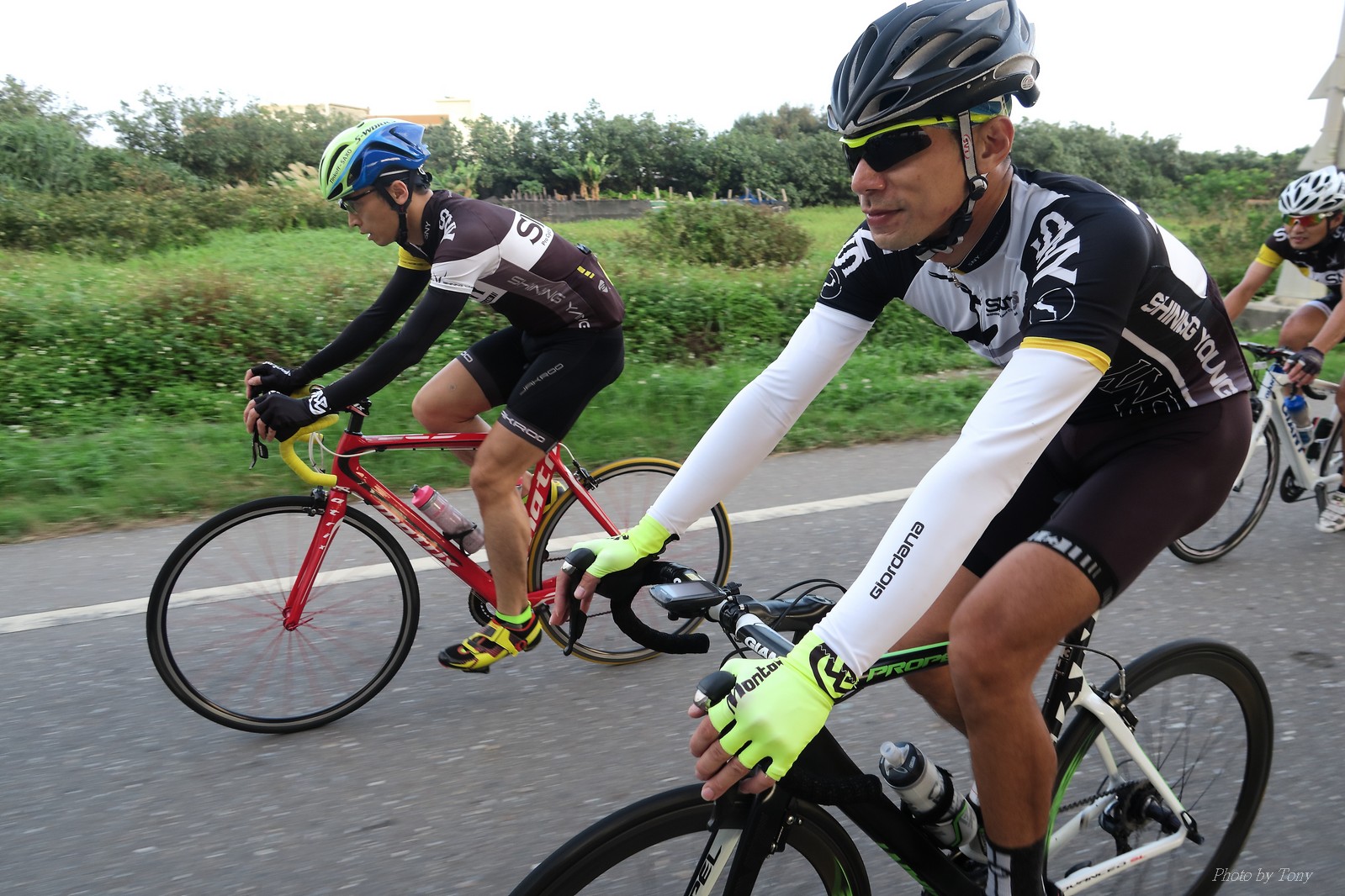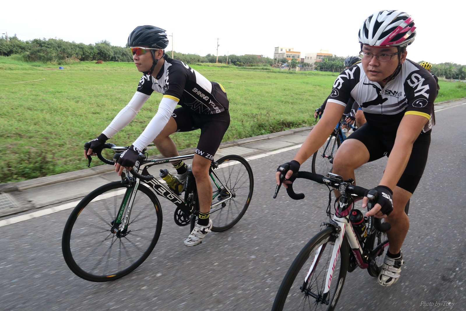 SNY 騎福之旅列車在11/19啟動 一連四天要誠心拜訪台灣9間廟宇 帶著大家的祝福紙條,誠心祈求上天保佑這群熱血的車友 因為體力弱加上上星期也已請過假,這次就報名參加第一天台北到台南的旅程就好 雖然第一天騎西濱再接省道,但人氣也最旺,應該很好玩吧!! 星期四一早不到4點就起床..整裝好出門買個飯糰後趕緊往行天宮集合 好幾位今天沒能一起騎到台南的車友也一起來集合,感覺好溫暖!! 今天的目的地是到台南南鯤鯓,總共300多公里,所以要早早出發(所以我沒和爸媽說要去那騎車,說要去騎去台南,應該會被唸到翻吧XDD) 大夥在黎明天亮前出發... 慢慢騎到八里和另外一團集合 若說去年的北高SNY團是一群精力充沛的高中生,那這次的騎福團真的像是小學生一樣 一進入西濱,二路縱隊馬上乖乖排好..(只有獅王偶有耐不住性子出去奔跑一下:P) 也可能因為是E神和500光在前頭領騎,大家都很乖吧~哈哈!! 今天的風沒有很大..但領頭羊輕輕踩,時速也就30多了 有別於去年sny北高團 今年EASON、光叔、雷射槍清志哥還有麻美都有安裝功率計.. 不用體感,不用心跳也不用時速來控速..,這次都用瓦數來控制強度(用體感,心跳和實際瓦數真的有一段落差!!) 大概就是180-200W來破風領騎 後面只要躲的好,大概只需150W就可以穩穩跟上.. 所以一路跟到新竹算是輕鬆愉快啊~(但是半路到永安就肚子餓了XDD,我明明吃了一個大飯糰啊,趕緊在進新竹前又吃了一大個飯糰!!) 從西濱轉進新竹市,雖路程不遠,但紅綠燈擋個幾次就耗上不少時間 大家在城隍廟拜拜之後,就趕緊上車趕路 所以出了新竹之後,領頭羊將瓦數提高了一些..(雖然我只有騎一天,但實力太弱,只能躲好再躲好XDD) 在進入苗栗好望角前,EASON頻頻回頭問有沒有人知道如何切西瓜避開好望角的上坡,不過沒人回應...知道路的好像都已被放生了XDDD 主團就由500光領軍一路上攻好望角,看著功率計的數值一路往300W衝上去..,媽呀,要這麼殺嗎?? 降降降,降到250W就好,還是逐漸被麻美拉開..,後來看到EASON慢慢退下來,叫大家慢慢騎就好,路還很長,不要在這太衝動..,我再將瓦數降到230W左右.. 一回頭,一群人全擠在我後方..,呃...壓力有點大!! 離頂點最後300公尺,大家按奈不住,紛紛從我身旁噴出去.. 嗯..我要繼續忍住,不差這一點點距離... 待上到頂點再抽車加速衝下坡來追... 這次騎福之旅沒有安排白沙屯媽祖廟,所以整團就直接沒休息繼續往前行 不過後來發現後方幾位車友被放生的有點遠,大家還是決定先暫停休息 等到全員到齊再出發,我叫寶寶趕快往前擠,不然領頭羊紅燈一起步加速,愈後面離愈遠,都要抽車才能追上,會很累.. 不過她說在前面壓力好大..且跟一跟就又慢慢掉隊了!! 老實說寶寶的實力耐力真的不錯,不過要在一群男生裡騎車,還真是辛苦了些!!(蛋蛋怎麼沒有來一起陪一下!!) 且這一段瓦數有時拉的比較高,所以這一段又有幾個人被放生..快到大甲鎮瀾宮前我也快撐不住了..>"<.. 還好就到叉路口了,呼,在崩潰前逃過掉隊的一刧!!(其實瓦數還是沒有拉很高,但就是跟的有點累,最近這一個月都沒有外騎長距離..耐力肌力明顯不足吧!!) 在大甲鎮瀾宮祈福加吃飽喝足後..不知不覺已經休息一個半小時.. 得要加緊趕路了.. 但台一省道上不斷的紅綠燈,騎到讓人快崩潰XDD(一公里可以停個2-3次紅綠燈~) 過了台中之後因為時間比預計慢了2小時,決定不要再騎台一線,要從台19切往西濱去,騎啊騎,不一心又錯過了日盛大哥要和我們會合的追分車站XDD) 後來愈往南部感覺愈來愈順,就決定一路騎台19就好 天色也在進入雲林之後明顯暗了下來.. 大家備好頭燈尾燈,繼續加班往嘉義挺進... 而為了安全起見,雖有體力,但跟不上主團的寶寶還有身體不適的狐狸都被勸上車 進入夜晚,騎起來是很涼很舒服,但因視線不佳的關係,讓我不得不全神貫注的跟車.. 騎起來有心驚驚的感覺XDD 不得不說麻美好有力,一路時速35上下,從彰化把大家帶領到北港,都不會累的,真的好勇猛!!在家插香練功有成!! 晚上7點多,終於抵達北港,離最後一站台南南鯤鯓代天府只剩30公里左右了 呼..快成功了!! 不過...聽說今天住的地方離南鯤鯓還有將近50公里...Orz 媽呀,算算時間,今天至少要加班到10點半以後>"< 再搭朱大哥的車回去..那不就半夜2點了.. 而本來要搭朱大哥回台北的車友有8位 2位沒來..,2位已先行搭高鐵回程!! 連我剩下四位..我提議我們四個先搭高鐵回去 感謝獅王、小游和發哥同意我的任性,都要一起陪我上高鐵..(這樣朱大哥的車也不用再來回跑!!) 離開北港前,自己還特地先繞到朝天宮天拜拜,祈求保佑家人朋友健康平安!! 再和主團說byebye~ 然後最後11km獅王就火力大開,整天下來心跳唯一突破170的就是這了 一整個回家前要把膏用完的概念XDDD 8:36上高鐵,10:00就到台北,一整個飛快!! 且前後輪用大垃圾袋包一包就上車,前後輪都不用拆,真是太方便了!!高鐵真是比台鐵友善太多了,是遠程單車族的好朋友!! 今天感謝SNY大家一路的照顧,雖不圓滿,但大夥平安成功!!:D