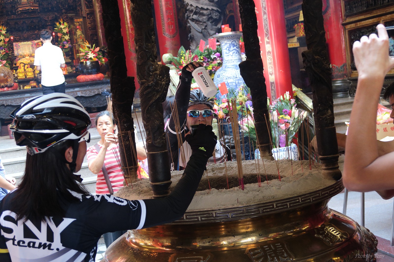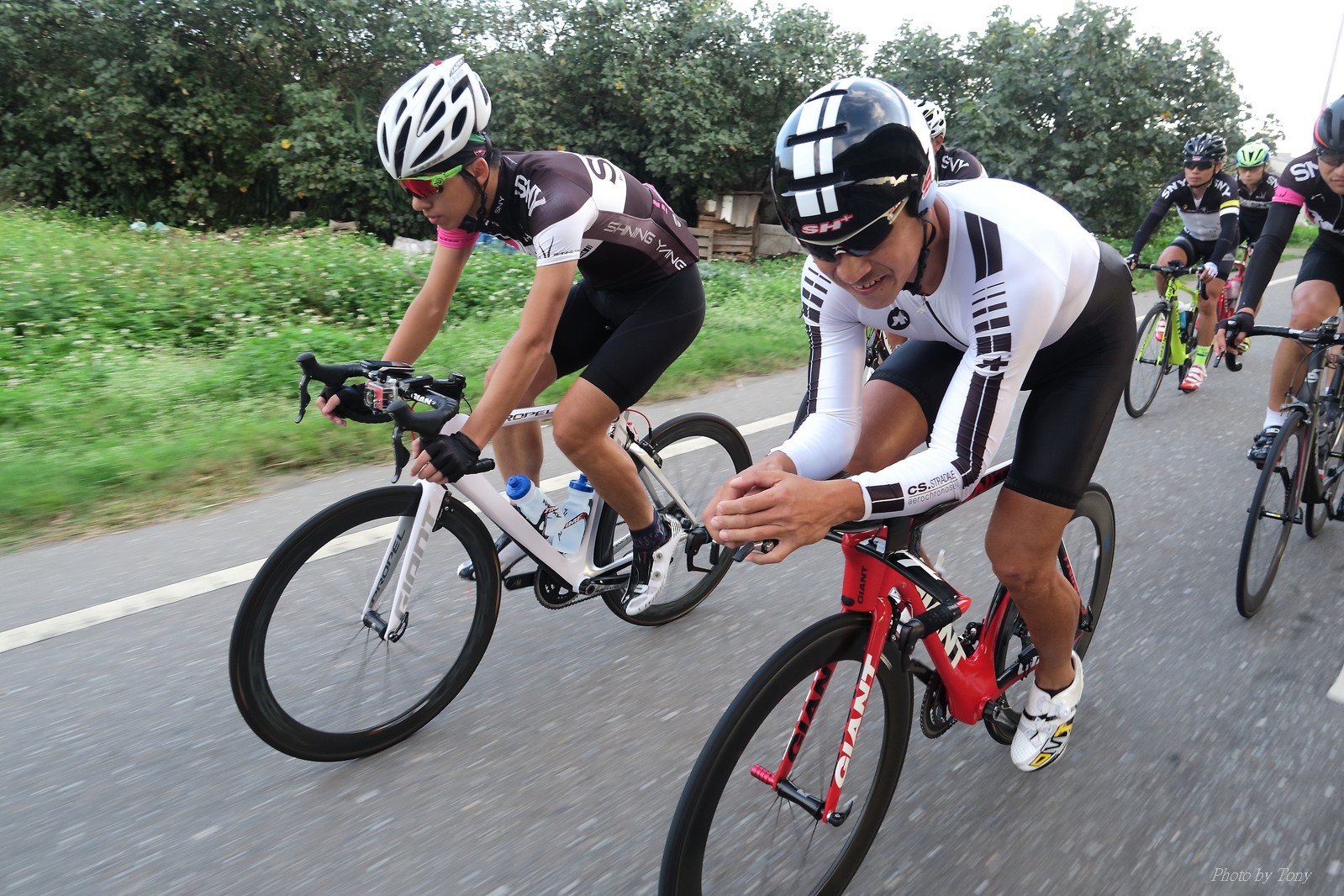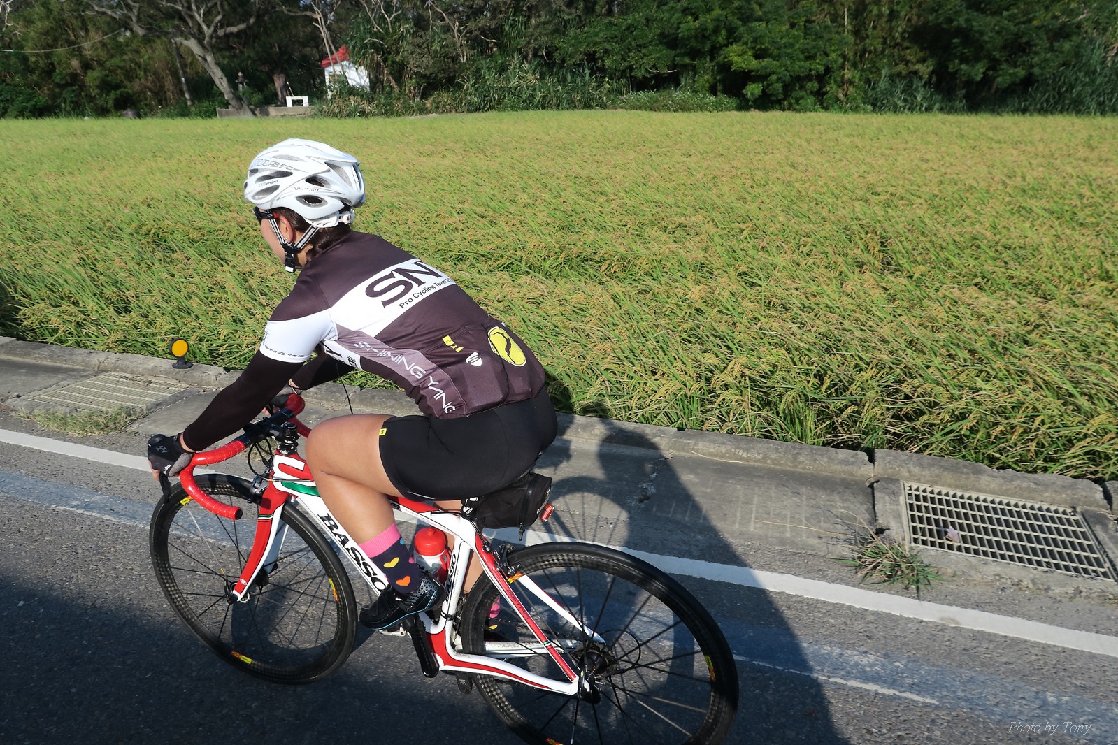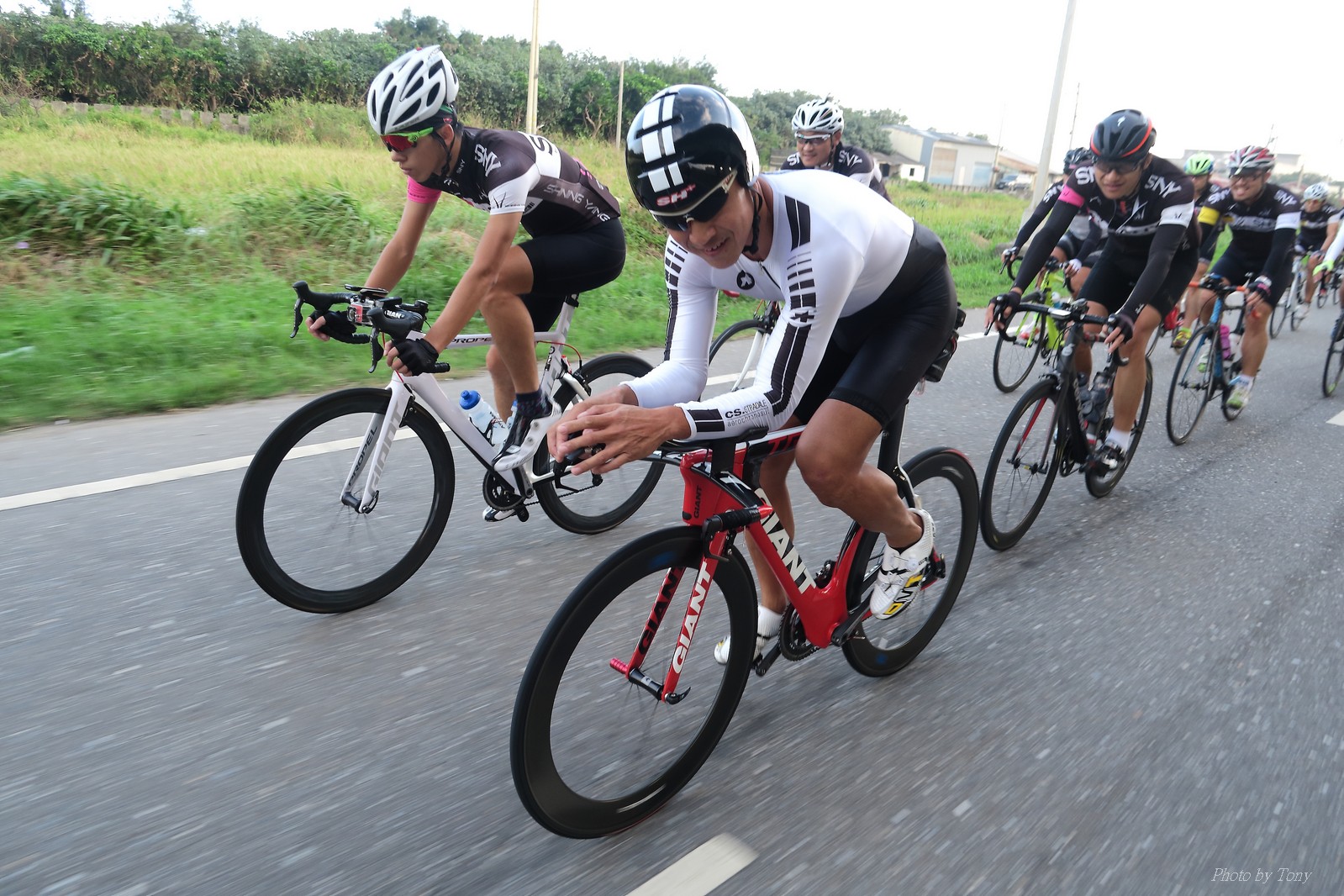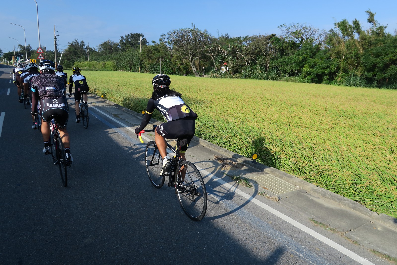 SNY 騎福之旅列車在11/19啟動 一連四天要誠心拜訪台灣9間廟宇 帶著大家的祝福紙條,誠心祈求上天保佑這群熱血的車友 因為體力弱加上上星期也已請過假,這次就報名參加第一天台北到台南的旅程就好 雖然第一天騎西濱再接省道,但人氣也最旺,應該很好玩吧!! 星期四一早不到4點就起床..整裝好出門買個飯糰後趕緊往行天宮集合 好幾位今天沒能一起騎到台南的車友也一起來集合,感覺好溫暖!! 今天的目的地是到台南南鯤鯓,總共300多公里,所以要早早出發(所以我沒和爸媽說要去那騎車,說要去騎去台南,應該會被唸到翻吧XDD) 大夥在黎明天亮前出發... 慢慢騎到八里和另外一團集合 若說去年的北高SNY團是一群精力充沛的高中生,那這次的騎福團真的像是小學生一樣 一進入西濱,二路縱隊馬上乖乖排好..(只有獅王偶有耐不住性子出去奔跑一下:P) 也可能因為是E神和500光在前頭領騎,大家都很乖吧~哈哈!! 今天的風沒有很大..但領頭羊輕輕踩,時速也就30多了 有別於去年sny北高團 今年EASON、光叔、雷射槍清志哥還有麻美都有安裝功率計.. 不用體感,不用心跳也不用時速來控速..,這次都用瓦數來控制強度(用體感,心跳和實際瓦數真的有一段落差!!) 大概就是180-200W來破風領騎 後面只要躲的好,大概只需150W就可以穩穩跟上.. 所以一路跟到新竹算是輕鬆愉快啊~(但是半路到永安就肚子餓了XDD,我明明吃了一個大飯糰啊,趕緊在進新竹前又吃了一大個飯糰!!) 從西濱轉進新竹市,雖路程不遠,但紅綠燈擋個幾次就耗上不少時間 大家在城隍廟拜拜之後,就趕緊上車趕路 所以出了新竹之後,領頭羊將瓦數提高了一些..(雖然我只有騎一天,但實力太弱,只能躲好再躲好XDD) 在進入苗栗好望角前,EASON頻頻回頭問有沒有人知道如何切西瓜避開好望角的上坡,不過沒人回應...知道路的好像都已被放生了XDDD 主團就由500光領軍一路上攻好望角,看著功率計的數值一路往300W衝上去..,媽呀,要這麼殺嗎?? 降降降,降到250W就好,還是逐漸被麻美拉開..,後來看到EASON慢慢退下來,叫大家慢慢騎就好,路還很長,不要在這太衝動..,我再將瓦數降到230W左右.. 一回頭,一群人全擠在我後方..,呃...壓力有點大!! 離頂點最後300公尺,大家按奈不住,紛紛從我身旁噴出去.. 嗯..我要繼續忍住,不差這一點點距離... 待上到頂點再抽車加速衝下坡來追... 這次騎福之旅沒有安排白沙屯媽祖廟,所以整團就直接沒休息繼續往前行 不過後來發現後方幾位車友被放生的有點遠,大家還是決定先暫停休息 等到全員到齊再出發,我叫寶寶趕快往前擠,不然領頭羊紅燈一起步加速,愈後面離愈遠,都要抽車才能追上,會很累.. 不過她說在前面壓力好大..且跟一跟就又慢慢掉隊了!! 老實說寶寶的實力耐力真的不錯,不過要在一群男生裡騎車,還真是辛苦了些!!(蛋蛋怎麼沒有來一起陪一下!!) 且這一段瓦數有時拉的比較高,所以這一段又有幾個人被放生..快到大甲鎮瀾宮前我也快撐不住了..>"<.. 還好就到叉路口了,呼,在崩潰前逃過掉隊的一刧!!(其實瓦數還是沒有拉很高,但就是跟的有點累,最近這一個月都沒有外騎長距離..耐力肌力明顯不足吧!!) 在大甲鎮瀾宮祈福加吃飽喝足後..不知不覺已經休息一個半小時.. 得要加緊趕路了.. 但台一省道上不斷的紅綠燈,騎到讓人快崩潰XDD(一公里可以停個2-3次紅綠燈~) 過了台中之後因為時間比預計慢了2小時,決定不要再騎台一線,要從台19切往西濱去,騎啊騎,不一心又錯過了日盛大哥要和我們會合的追分車站XDD) 後來愈往南部感覺愈來愈順,就決定一路騎台19就好 天色也在進入雲林之後明顯暗了下來.. 大家備好頭燈尾燈,繼續加班往嘉義挺進... 而為了安全起見,雖有體力,但跟不上主團的寶寶還有身體不適的狐狸都被勸上車 進入夜晚,騎起來是很涼很舒服,但因視線不佳的關係,讓我不得不全神貫注的跟車.. 騎起來有心驚驚的感覺XDD 不得不說麻美好有力,一路時速35上下,從彰化把大家帶領到北港,都不會累的,真的好勇猛!!在家插香練功有成!! 晚上7點多,終於抵達北港,離最後一站台南南鯤鯓代天府只剩30公里左右了 呼..快成功了!! 不過...聽說今天住的地方離南鯤鯓還有將近50公里...Orz 媽呀,算算時間,今天至少要加班到10點半以後>"< 再搭朱大哥的車回去..那不就半夜2點了.. 而本來要搭朱大哥回台北的車友有8位 2位沒來..,2位已先行搭高鐵回程!! 連我剩下四位..我提議我們四個先搭高鐵回去 感謝獅王、小游和發哥同意我的任性,都要一起陪我上高鐵..(這樣朱大哥的車也不用再來回跑!!) 離開北港前,自己還特地先繞到朝天宮天拜拜,祈求保佑家人朋友健康平安!! 再和主團說byebye~ 然後最後11km獅王就火力大開,整天下來心跳唯一突破170的就是這了 一整個回家前要把膏用完的概念XDDD 8:36上高鐵,10:00就到台北,一整個飛快!! 且前後輪用大垃圾袋包一包就上車,前後輪都不用拆,真是太方便了!!高鐵真是比台鐵友善太多了,是遠程單車族的好朋友!! 今天感謝SNY大家一路的照顧,雖不圓滿,但大夥平安成功!!:D