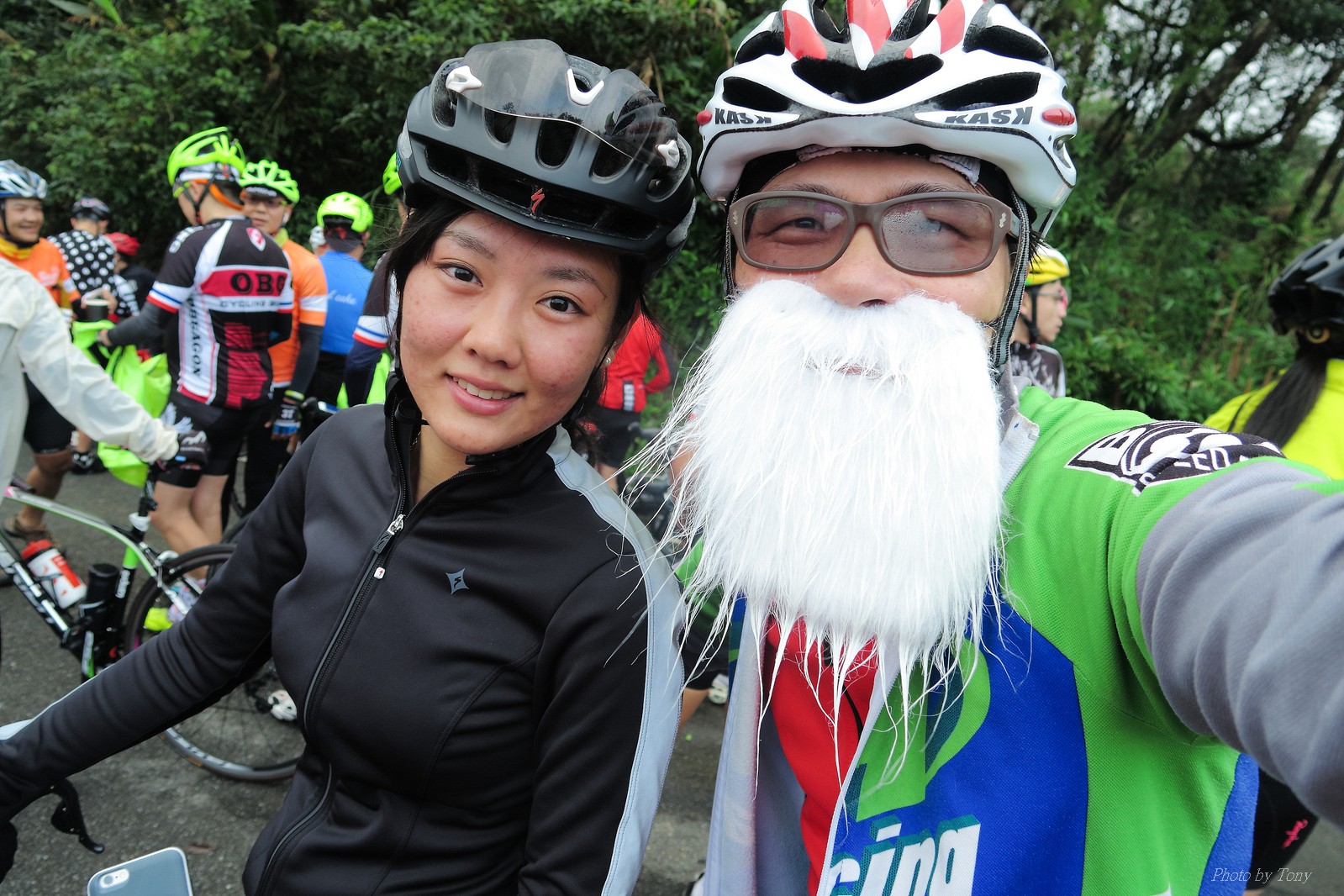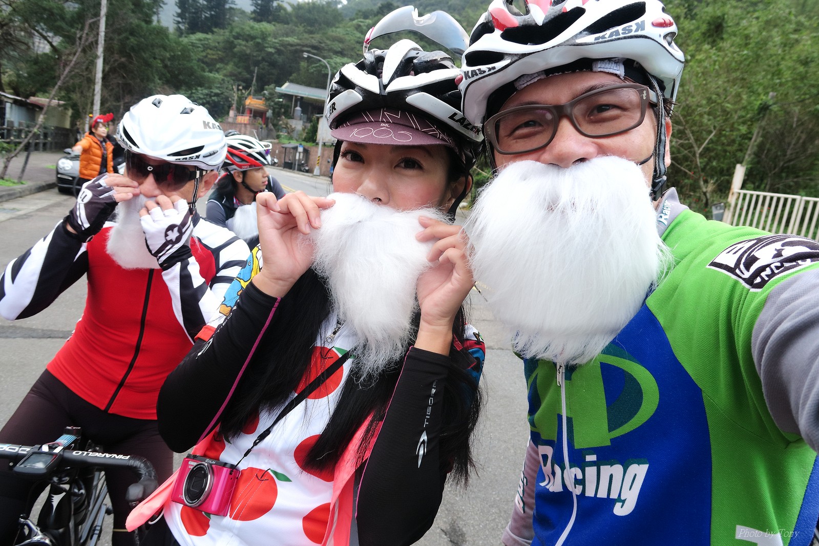 楊大哥糾騎JAGGAD舉辦的聖誕約騎趴.. 問了石頭車隊有沒有人要去? NATSUMI早早就被高潮麻美約去騎仙山,LEO要LSD練跑,PETER要裝休息把,隊長一下子說要去,一下子又龜毛說要自己去跑步,只剩下我和秋田鼓.. 只騎風櫃感覺有點少,和秋田一早先約騎一趟中社.. 最近退步不少,實力慢慢恢復中,上週貓空騎15分尾231W,這次就用差不多的瓦數來騎騎看會騎多久~ 沒想到一出發現,秋田鼓又衝很快...瓦數直接上拉260..= =" 一定要這麼拼嗎??XD 我慢慢守著240就好.. 龜到2K多,秋田鼓明顯有點沒力,趁機超過他.. 繼續穩定的在240W左右前進 不過最後1K也是沒力了 最後平均功率是239W..15分尾作收 嗯~還好還在16分內..,比12月初龍泉路20分鐘只不能220W好多了XDD 騎完中社趕緊往楓林橋集合 JAGGAD很有心,還準備了很多白鬍子給大家掛..只是有點容易掉毛 戴在嘴上很容易吃的滿嘴毛~ 這個活動大家輕鬆騎就好 陪著雄獅夏美邊騎邊聊,慢慢騎到風櫃嘴.. 哈啦一下,趕緊下山趕攤了 這個週末很忙的!!XDD
