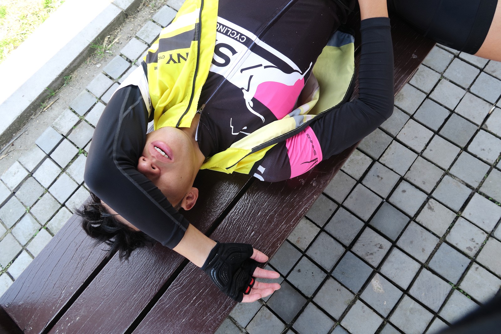 將近一個月沒騎車,一團騎就是和SNY~老實說心裡還真是怕怕的 EASON說淺水灣保持隊型..,過淺水灣後就放行分裂集團 但實際情況往往不是像計劃一樣啊~ 反正路都知道,就算被海放到天邊也知道怎麼回家!!衝吧~~ 從士林出發到大度路速度就開始加快了.. 大家好像很久沒團騎,這次那種要「尊敬隊友」的感覺又出現了XDD 關渡橋的上坡就紛紛抽車小試身手..,還好坡短還跟的上 但一到登輝大道第一個長上坡就GG了,還好坡頂有紅綠燈救了我... 後來幾乎都是這樣..沒有紅綠燈的話..應該早就不見主集團了 不過騎一騎突然發現EASON的嘴唇有點白,但那時他還可以拉還可以衝.. 雖然有感冒應該還好吧~ 等到淺水灣休息..感覺力氣已經用掉2/3了.. 艾美說要不要回頭了..,喵的,也是很假掰,體力還很滿好嗎?XDD 從淺水灣出發往三芝市區的緩坡就再也跟不住領先集團(突然發現EASON不在領先集團內) 第二集團逐漸形成 -- 艾美,喵王,小游,小寬(居然在這鬼混),ALAN,我和EASON~ 艾美請大家平路開始輪車,大家馬上乖乖的排成一排..,過了富貴角的坡頂之後就一路是平路到金山了.. 但膏滿滿的艾美在富貴角的坡就一路拉,得將近開300W才跟的到XD 到了坡頂就說..來,老爺你先開始輪.. 人都被你拉爆了,才叫我頂風Orz EASON說狀況不好,在後面跟車就好~ 難得可以幫神破風,就算要抽筋也要忍住啊... 大家順順的騎到快金山,怎麼領先集團的有人在路邊揮手?? 啊~~有人摔車了XDD 新同學和明泰不小心前後輪交錯卡在一起分不開就摔車了XD 隊友趕緊撥了119請救護車來.. 唉~~快快樂樂出門,要平平安安回家啊!! 平路速度快,輪車跟車時要十分注意才是... 再來就要一路上小油坑了 我的左大腿隱隱傳來要抽筋的感覺 看著無力的瓦數..就只能和大家愈來愈遠了... 忽然看到EASON去一旁站牌去,不知是幹嘛? 小的自身難保, 還是慢慢先騎吧...我想EASON等會就追過我了 再來平時很猛的EROS居然會被我追到~~ 感覺她今天狀況也很不好,平時很強悍的她今天平路也都沒跟上... 不過她後勁強,我還是先擔心我自己吧XDD 逆陽金大約18KM,最快60幾分鐘騎完...,今天這個狀況可能要一個半小時XDD 看著無力的瓦數,心想...陡坡不超過200W,緩坡就150W慢慢龜吧 沒想到愈後面,抽筋的情況感覺愈來愈嚴重,瓦數也直直落,死撐活撐到馬槽橋前的涼亭(約12K),就順勢休息+補給一下... 也順便等一下EROS和EASON好了.. 沒想到還是EROS先出現,感覺EASON真的快屎了.. 二個人在那又等了快10分鐘,看到一個SNY的車友騎來,開心的以為是EASON 沒想到是去醫院探望朋友的獅王 他說EASON還在後面慢慢龜,叫我們先走,他自己慢慢騎才不會有壓力~ 我們心想也是,就再慢慢龜,還有6K~,依我們這個龜速..可能還要半小時才會到... 慢慢騎總會到的,終於看到往冷水坑的叉路..,再來就不遠了 沒二分鐘,看到光叔,小寬和AKRIA下滑.. 呼~~終於有人要去找EASON了 撐到小油坑,我的雙腿也剛好大爆炸,一下車就直接抽筋XD 還好蹲個二分鐘就可以行動 看起來大家都已下山.. 我才抽筋,就多留一下等EASON~ 沒多久終於看到光叔陪著EASON上來.. 那個臉色真的好慘啊~ 第一次看EASON這麼慘的~~ 這個故事告訴我們...生病感冒還是乖乖在家休息 要騎,河濱鬼混一下就好~不要和SNY這群瘋子拼啊XDD