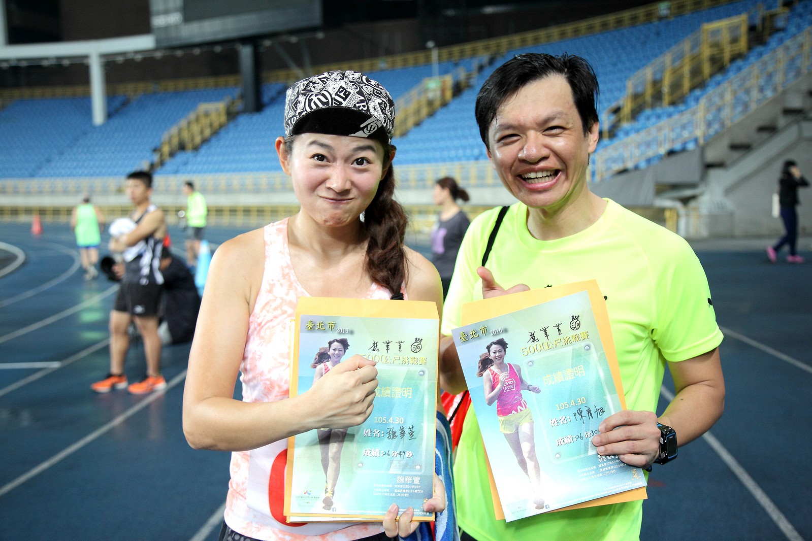 早上才和GBIKE騎完不厭亭100K,大腿感覺輕微抽筋中.. 這樣的狀態是怎麼去測5000公尺啊? 但~~今天的成績單上有小猴,跑再慢也要跑完啊~ 快5點帶著小羊一起去體育場報到 人正心美的小猴先幫我領好號碼布.. 寄物之後就準備要起跑了.. 趕快來去集合.. 什麼,熱身??沒時間啦... 且也沒力氣熱了.. 鳴槍後第1K跑的還挺順的 跑了4:30.. 才覺得要降速跑時 大腿就傳來要抽筋的感覺XDD 只好降速再降速~~ 大腿抬不起來,只能小碎步慢慢跑 場邊的小羊一直為我加油 而小猴和PETER也叫我不要再鬼混了 我也想啊~~但腳就快抽筋了,是能跑多快T___T 最後只想跑完就好..不用管什麼成績了 (不過心裡還是有想..會不會跑輸小猴啊~XDD) 最後26"15完成測驗 平常練習都沒這麼慢啊..不過均速還有5分多,已經比我想像中好了 下一場是小猴和PETER測驗,換我拿相機幫他們二個加油.. 5公里和半馬比起來是不長,但用力跑還是很累的!! 這次測驗完體育場就要封閉到世大運結束 感謝小猴的邀請,明年要來雪恥!!!(握拳!!!)
