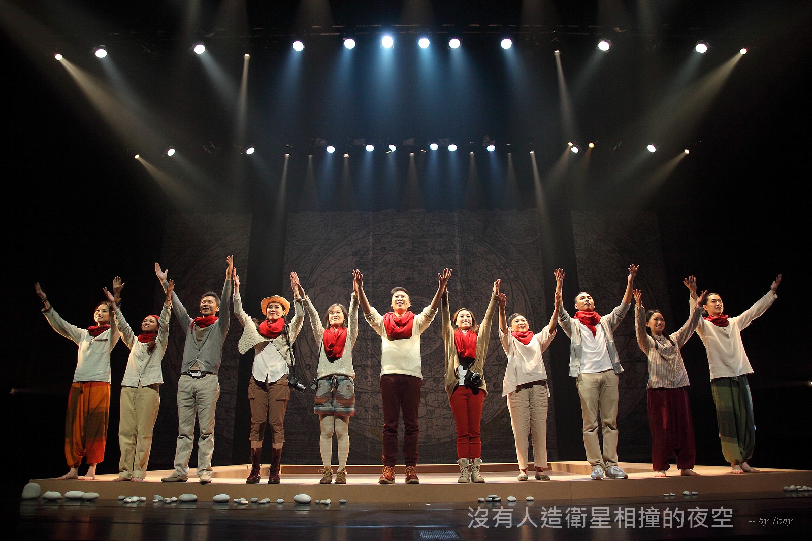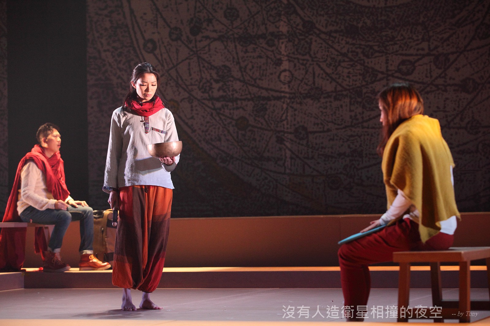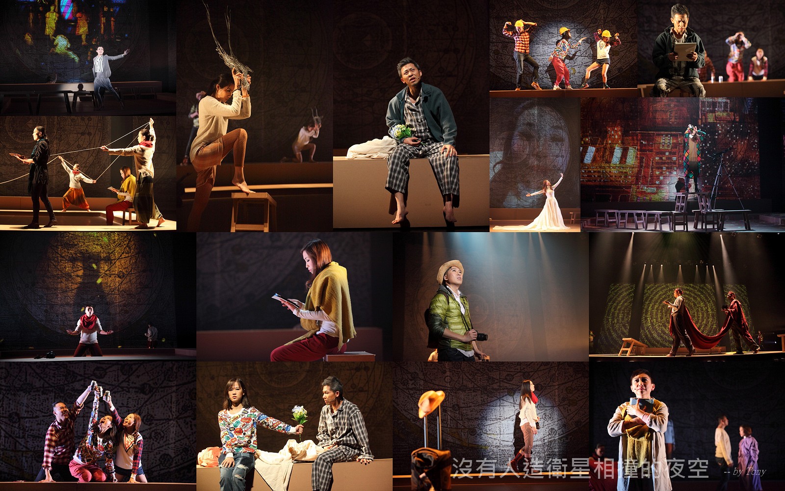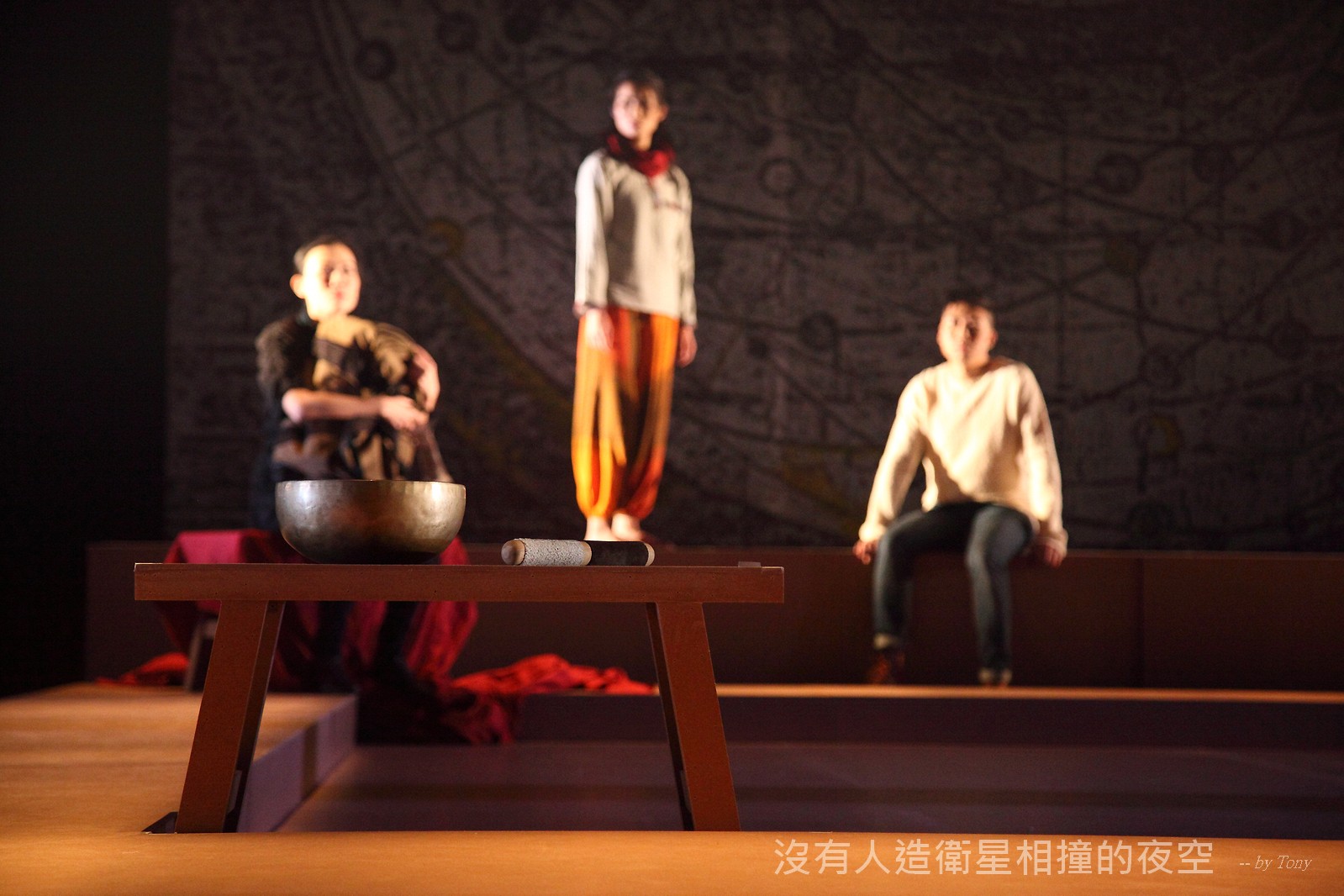 這夜我們齊聚星星底下「當生命遇上不對時,親愛的,請活好當下,唱幸福的歌!」 —本劇獲得「第二十四屆香港舞台劇獎」最佳原創曲詞獎及最佳女主角提名。 作品以形體劇場,開展一場西藏的流浪旅程。承襲音樂劇傳統,由導演及劇本概念陳永泉創新演繹, 透過合拍形體、現場彩繪詮釋每一瞬的歌曲意境。並結合味覺設計深入觀眾的心靈空間,藉此體會禪的動靜之美。 描述三位年輕人的故事。互不相干的彼此,於脫離的軌道上相遇。世界在轉,宇宙在變,他們流浪城市 ,希望在不斷流逝的生命裡,捕捉最美的一刻。
