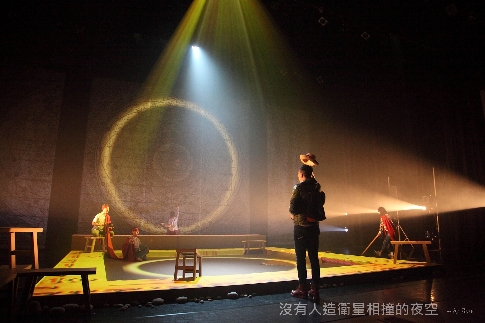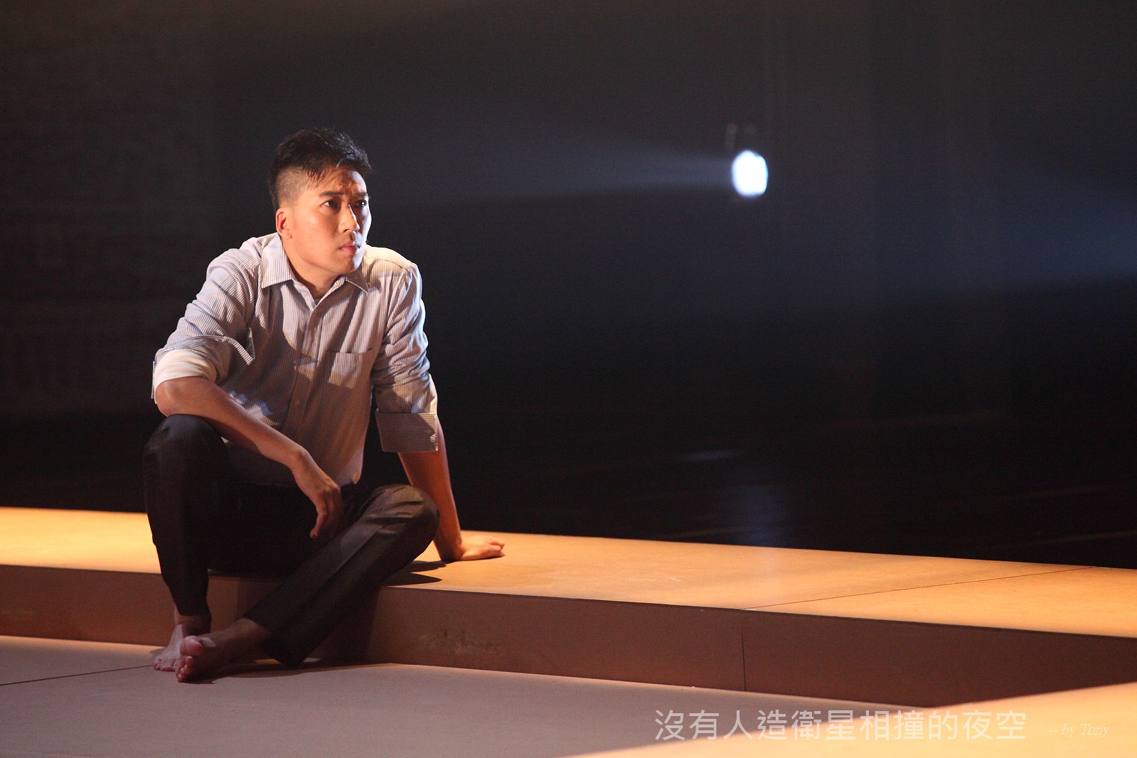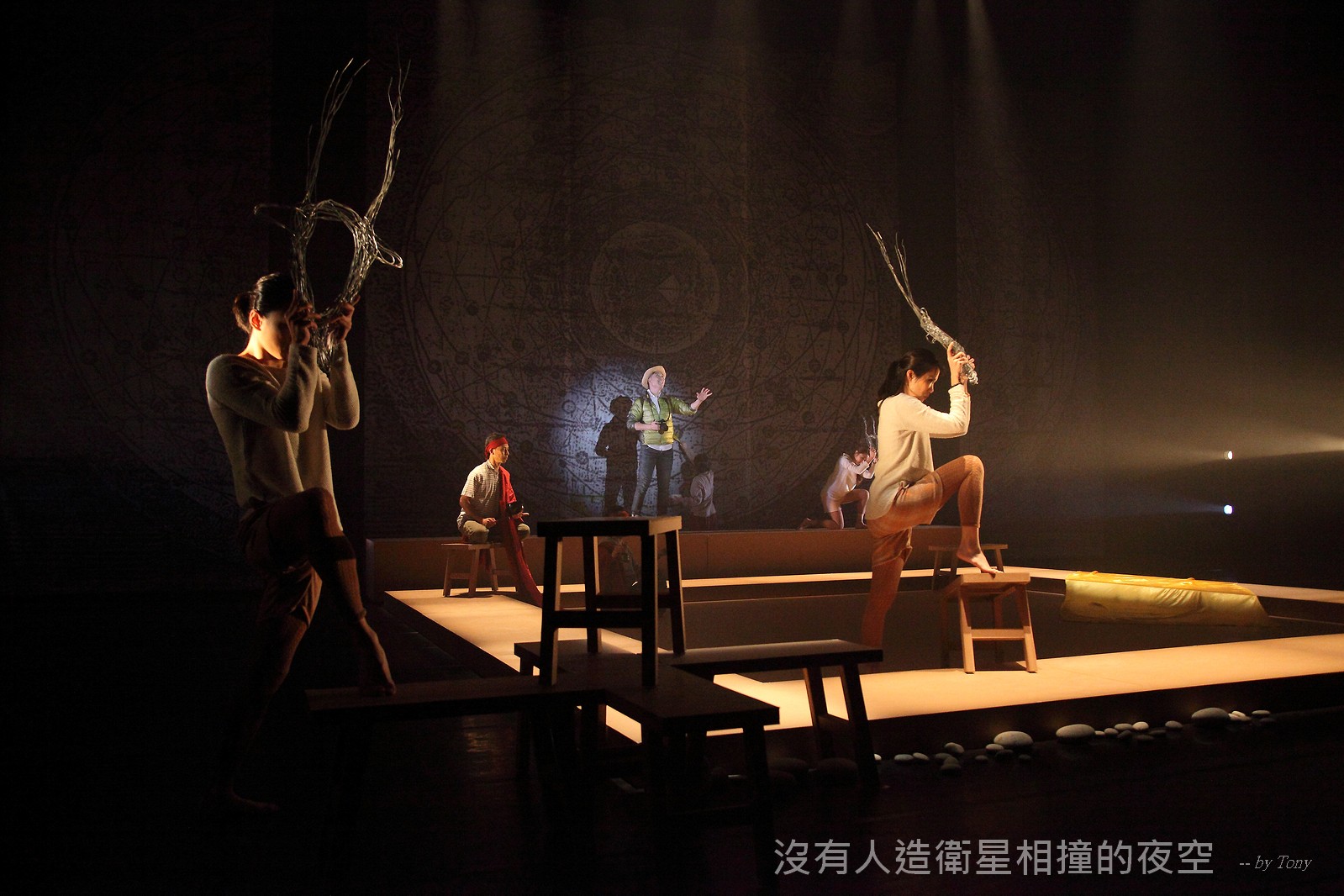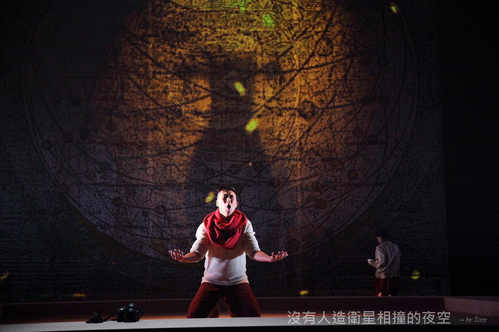 這夜我們齊聚星星底下「當生命遇上不對時,親愛的,請活好當下,唱幸福的歌!」 —本劇獲得「第二十四屆香港舞台劇獎」最佳原創曲詞獎及最佳女主角提名。 作品以形體劇場,開展一場西藏的流浪旅程。承襲音樂劇傳統,由導演及劇本概念陳永泉創新演繹, 透過合拍形體、現場彩繪詮釋每一瞬的歌曲意境。並結合味覺設計深入觀眾的心靈空間,藉此體會禪的動靜之美。 描述三位年輕人的故事。互不相干的彼此,於脫離的軌道上相遇。世界在轉,宇宙在變,他們流浪城市 ,希望在不斷流逝的生命裡,捕捉最美的一刻。