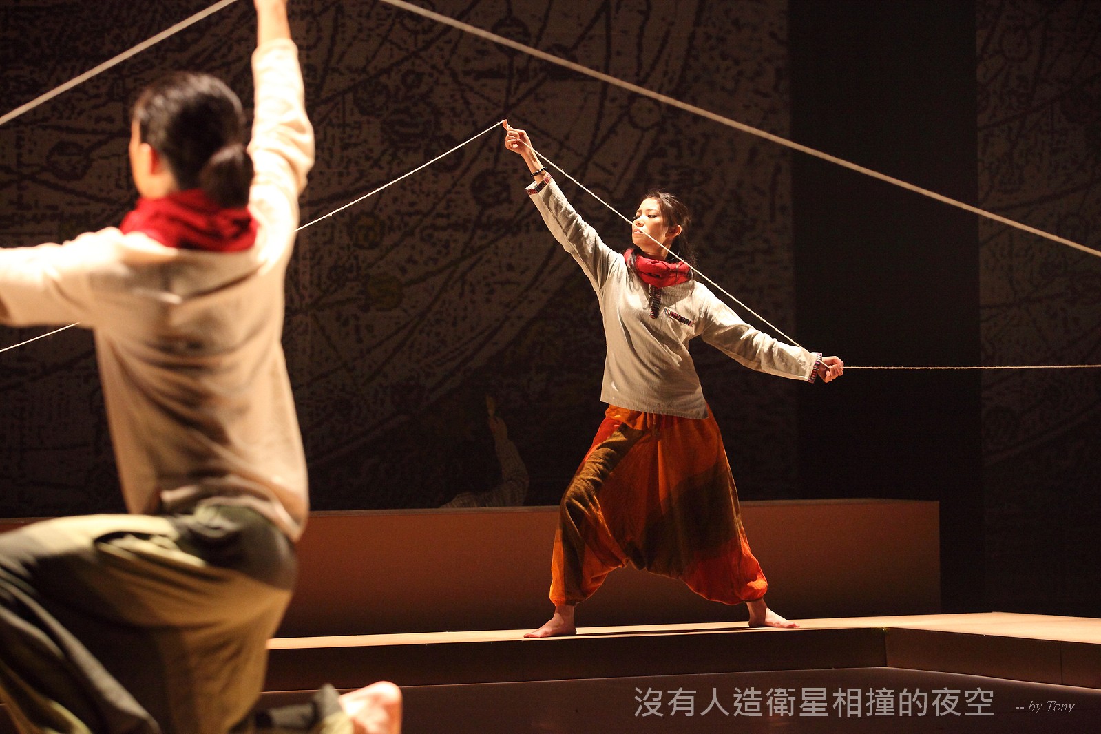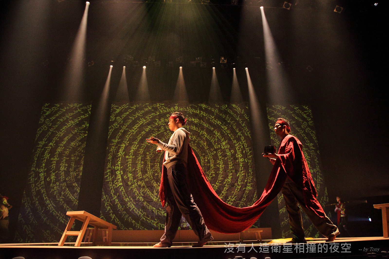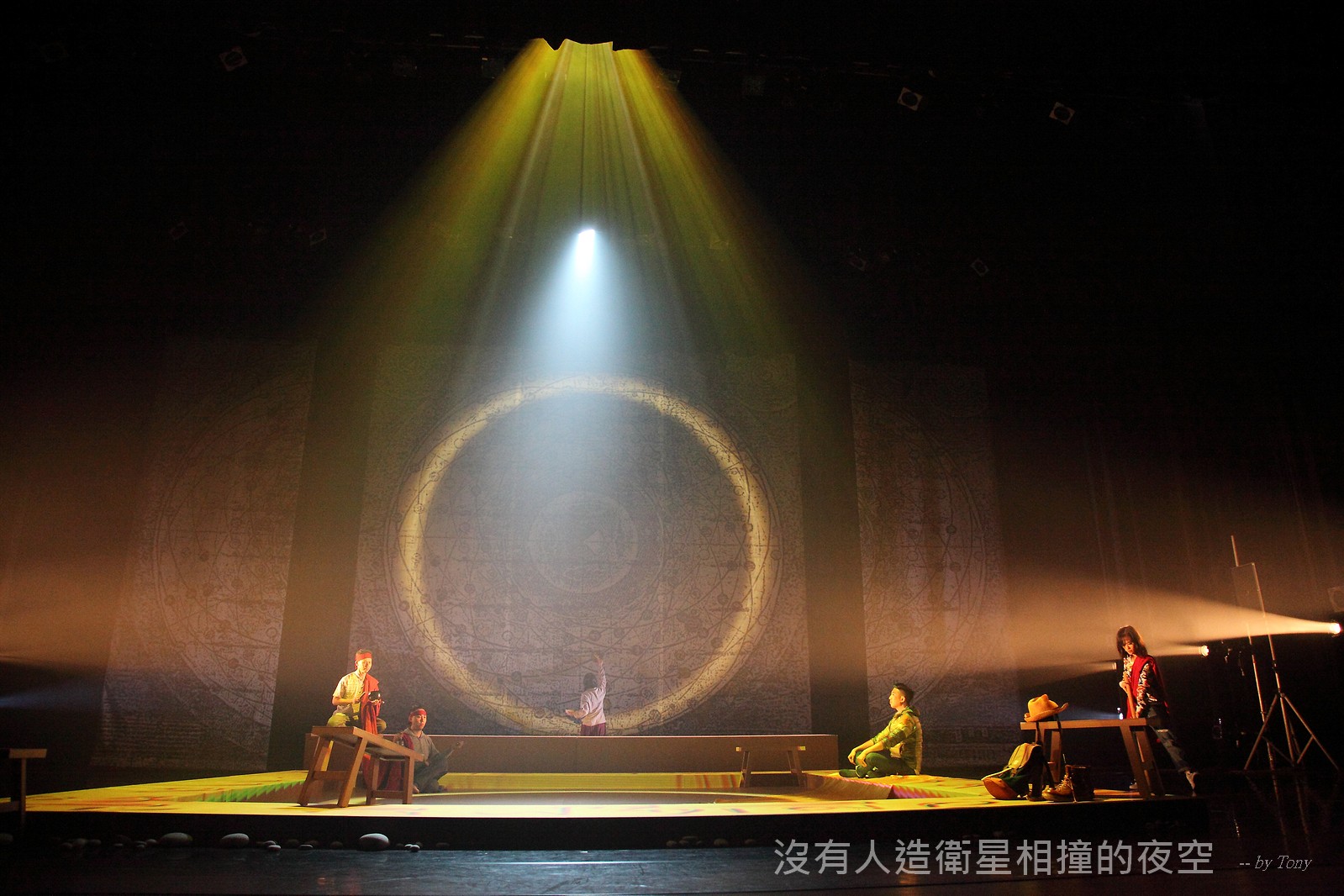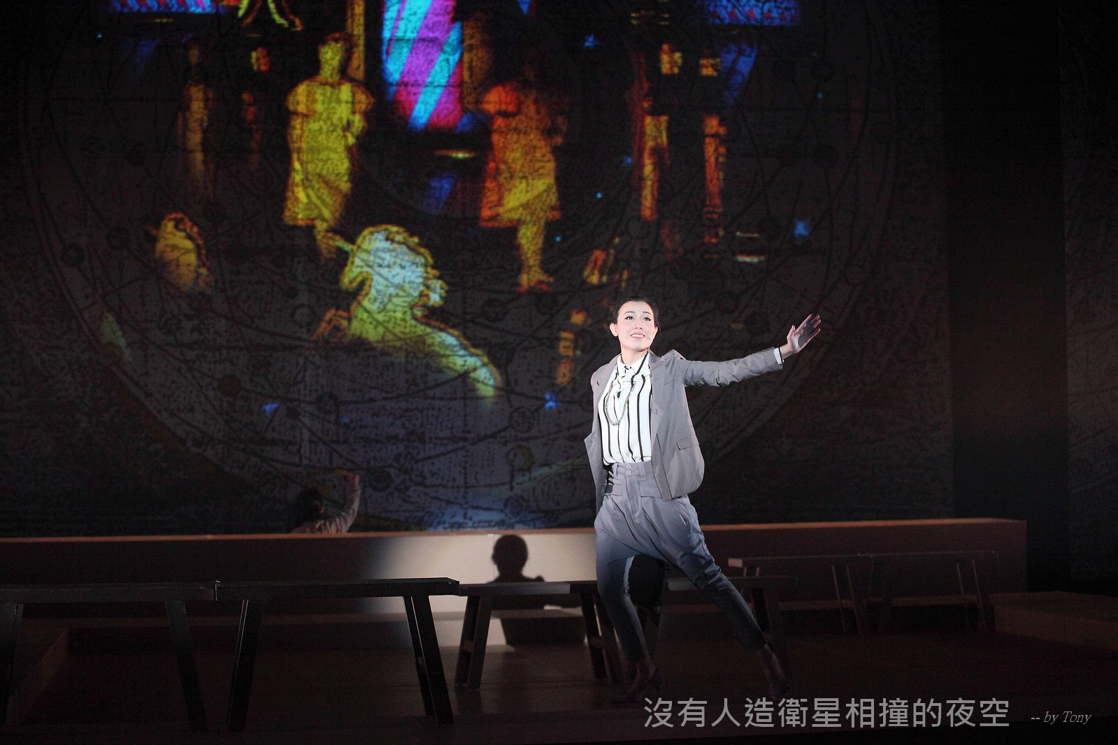 這夜我們齊聚星星底下「當生命遇上不對時,親愛的,請活好當下,唱幸福的歌!」 —本劇獲得「第二十四屆香港舞台劇獎」最佳原創曲詞獎及最佳女主角提名。 作品以形體劇場,開展一場西藏的流浪旅程。承襲音樂劇傳統,由導演及劇本概念陳永泉創新演繹, 透過合拍形體、現場彩繪詮釋每一瞬的歌曲意境。並結合味覺設計深入觀眾的心靈空間,藉此體會禪的動靜之美。 描述三位年輕人的故事。互不相干的彼此,於脫離的軌道上相遇。世界在轉,宇宙在變,他們流浪城市 ,希望在不斷流逝的生命裡,捕捉最美的一刻。