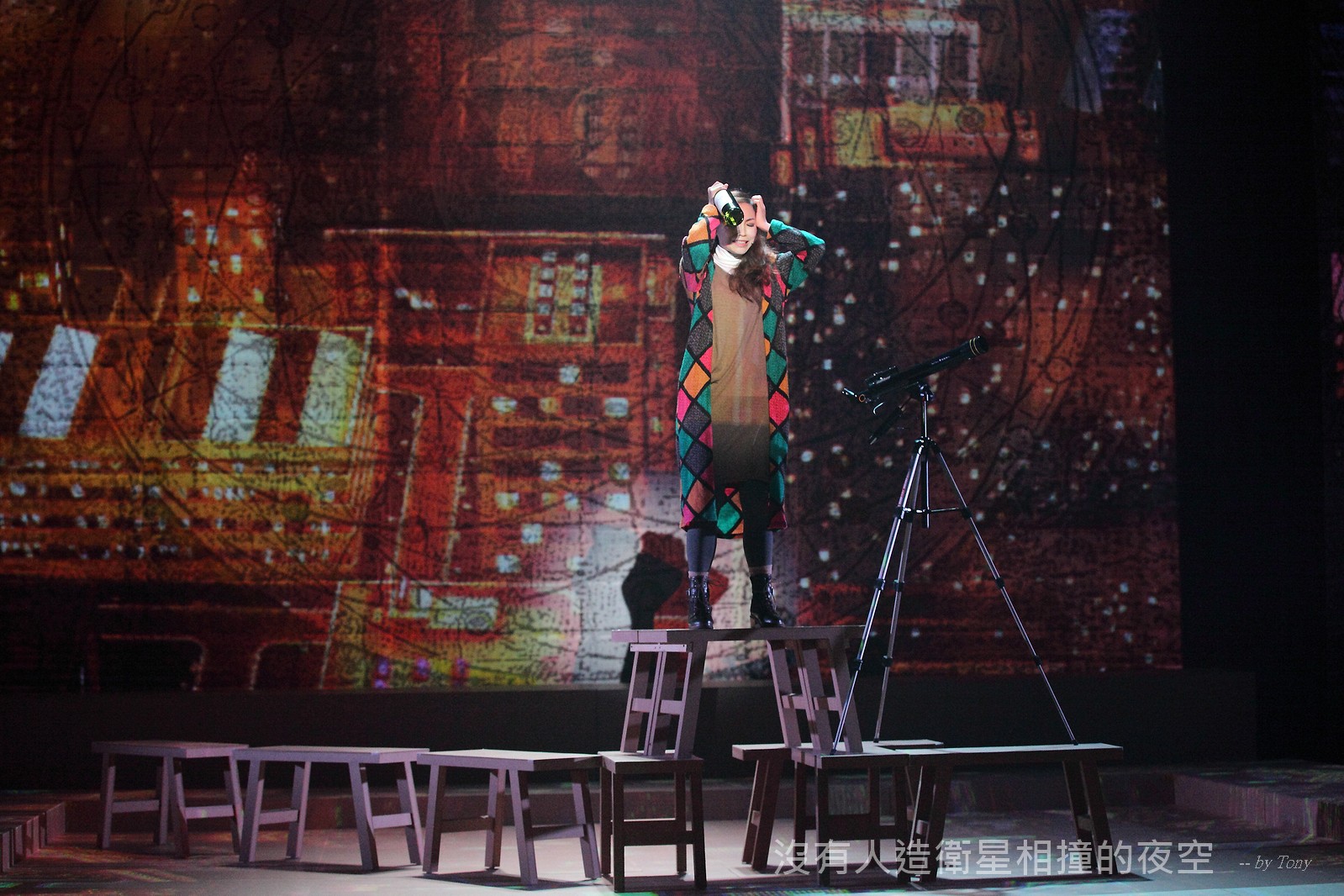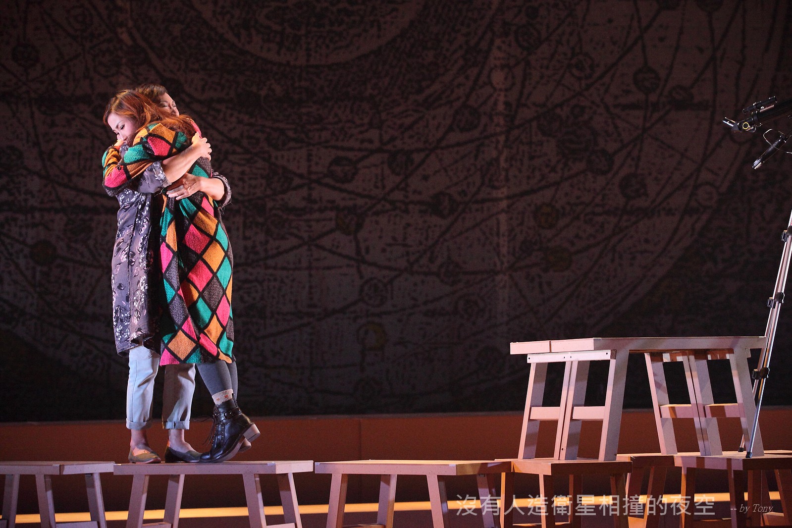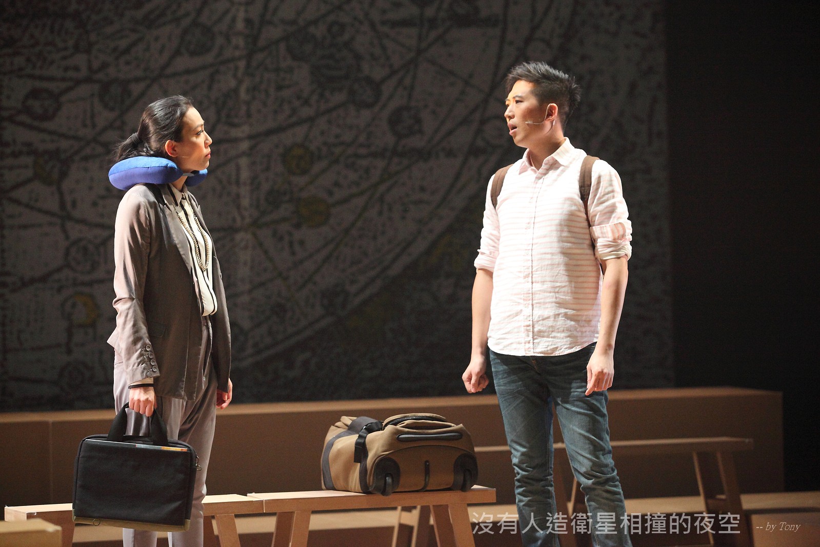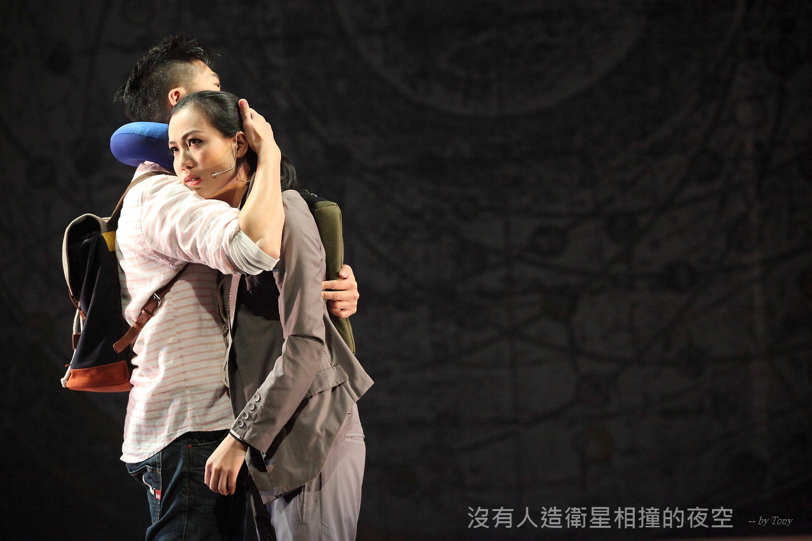 這夜我們齊聚星星底下「當生命遇上不對時,親愛的,請活好當下,唱幸福的歌!」 —本劇獲得「第二十四屆香港舞台劇獎」最佳原創曲詞獎及最佳女主角提名。 作品以形體劇場,開展一場西藏的流浪旅程。承襲音樂劇傳統,由導演及劇本概念陳永泉創新演繹, 透過合拍形體、現場彩繪詮釋每一瞬的歌曲意境。並結合味覺設計深入觀眾的心靈空間,藉此體會禪的動靜之美。 描述三位年輕人的故事。互不相干的彼此,於脫離的軌道上相遇。世界在轉,宇宙在變,他們流浪城市 ,希望在不斷流逝的生命裡,捕捉最美的一刻。