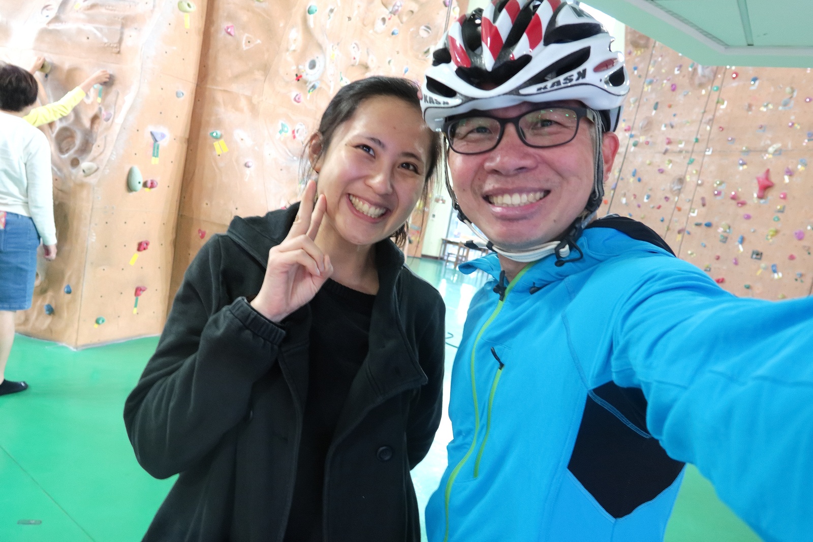 早上下大雨,錯過騎車的機會~ 下午來去內湖和拉拉面交老婆要的抹茶粉~ 接下來就是一個人慢慢獨騎啦~ 花了二小時,翻了碧山巖和平等里才凸到北投運動中心去探膏如的班~累死我了!! 不過今天騎下來也發現體力比二個月前好上不少了~ 之前真是太弱了~T___T 膏如在新北投運動中心上班,有空再小朋友來玩攀岩:p