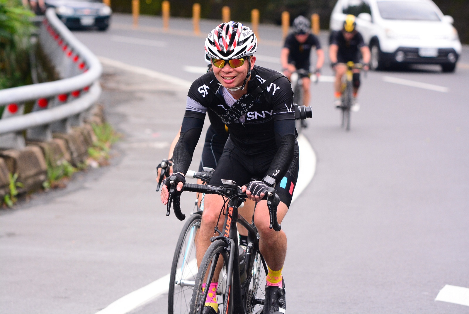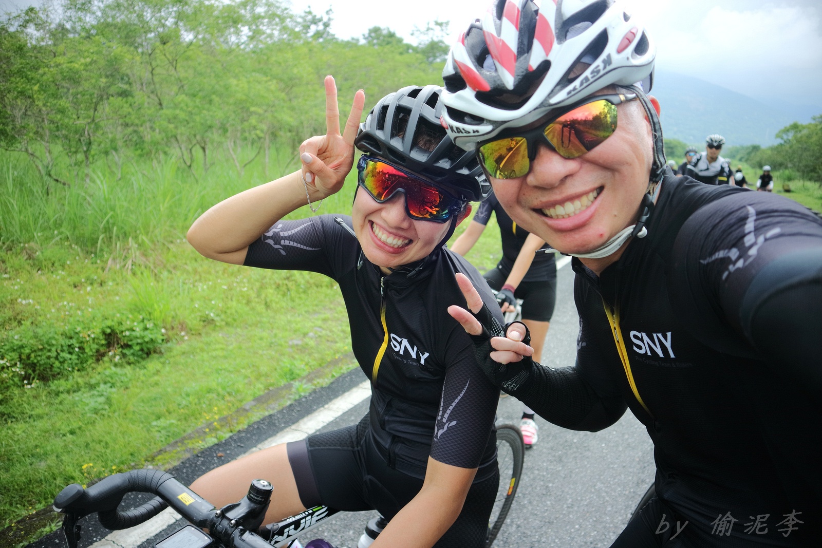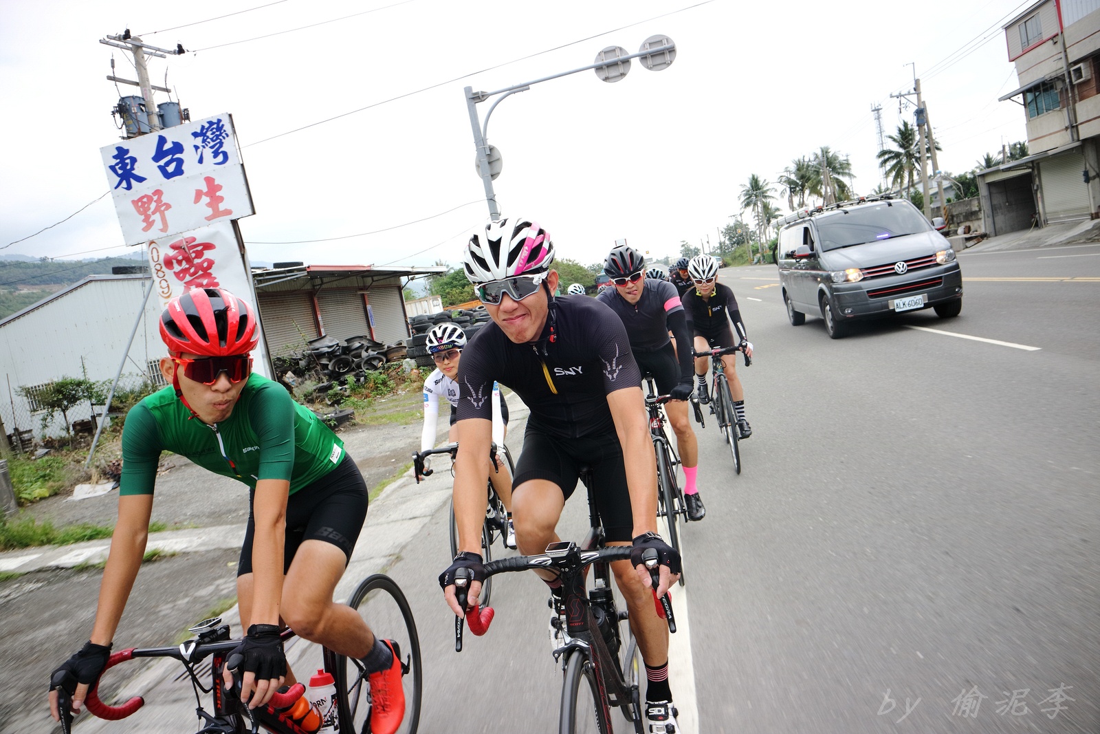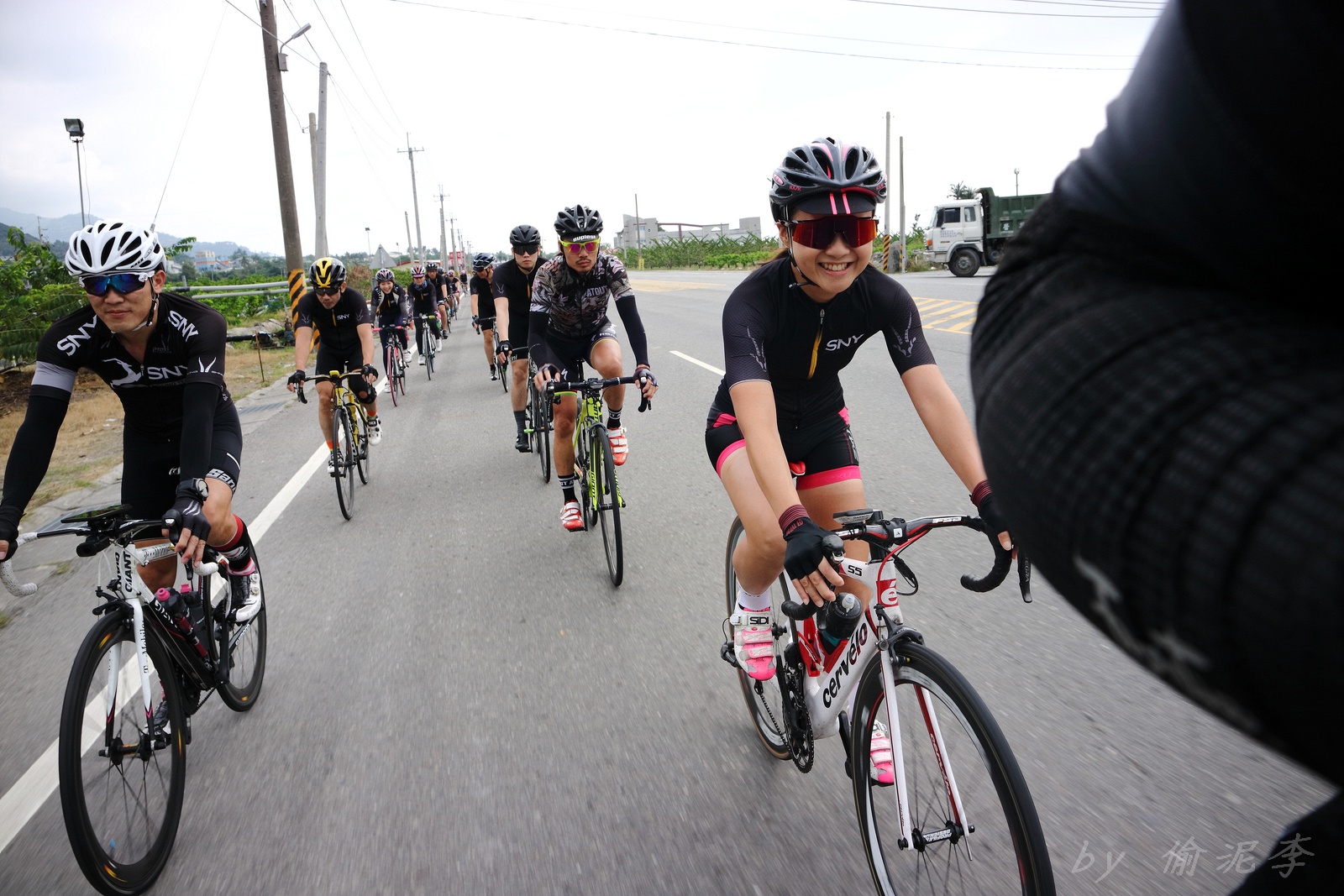 早早就報名了SNY東爽塔 老實說跟這群面惡心善的羊一起騎車,壓力實在不小 去年年底和PETER去滑雪撞到肋骨後又忙著再帶全家去一趟日本 整整快二個月沒有騎車跑步 體能來到新低點,而體重來到新高,接近70公斤大關 農曆過年後復出,先慶祝ALEX二哥冷水坑300登,和小猴、夏美一起騎上山 平等里騎個23分就喘到不行,而冷水坑前又被雙姝海放(很多人以為我假掰,但心跳來到185..真的不是假的) 才知道事情有大條.. 二月底先拿出塵封以久的訓練台,FTP打掉重練,180W就騎的我不要不要的>"< 努力了一個月後,在三月底奮力參加GBIKE的一日宇老,騎到被團長和EROS放到天荒地老去 不過有這一役,長途耐力似乎也進步不少 訓練台上180W騎40分鐘也不會騎的要死不活了~XD 4月中和甩油團一趟福隆來回,在到福隆前不小心擦撞LEO後輪 整個人側摔出去,還好只有擦傷和黑青 但車架後勾爪卻GG了~ SNY東爽塔即將舉行,也不好意思和朋友借車 剛好一個機會問到便宜的GIANT ADV PRO車架 短短一星期內就將我的新車組好 馬上首航五分山,新車GIANT完全不輸SCOTT(立馬就變心,哈哈哈) 再來就看是大戲上場 -- SNY東爽塔 事前一直在想,集團會分裂成幾個? 我要跟那一團?? 怎麼想都沒用...取決於主集團的強度啊!!!! 奇萊燈塔一出發沒多久就因紅綠燈被斷成二個集團以上.. 天空又飄著小雨.. 心想,不急著追領先集團 後來發現EASON從後方開了一輛車上來 那當然就順風搭上.. 穩穩的追上領先集團 合併之後,強度逐漸拉高,到鳳林前基本上都是微上坡.. 因摔車陰影加上天雨路滑 雖然跟車,但強度基本上都在接近200W左右 可見的前面破風領騎人員,至少都是250W以上的水準~ 在某個路口光叔一回頭看到我還黏在隊伍後面.. 直接露出驚訝的表情~哈XDD 過了壽豐的新豐平大橋後,是一段緩下再緩上的地型 集團強度減弱不少,平均瓦數只剩150W.. 算可以好好喘口氣!! 領先集團就一次挺進到光復糖廠前的小七(約52KM處)第一次大休息 停好車後,後面的羊群看來分裂成不少小團體 一個個陸續抵達 大休45分後大家到不遠處的大農大富集合拍照~ 這個筆直的小路一點都不輸伯朗大道 大家又在這歡樂好久 但從這之後就要進入風景優美但是是丘陵地型的193縣道 看EASON一帶頭往前騎,立馬就追上去.. 這一段整體而言是緩下坡 但中間不少短上坡 理論上應該是比第一段輕鬆的路段 卻搞的我一出發心跳就直衝170.. 領頭羊看到坡就抽車拉轉, 抽車拉轉.. 看到火哥來又興奮衝刺 沒拉個幾次,我就只能看到列車遠去~ 還好三峽張老闆一直用穩定功率在後面騎 刷過我時,順便帶我上車追上主集團 但又一輪猛攻下.. 這次我和POLLY一起雙雙落下 很想接回隊伍,但怎麼追就是追不到 某處已相當接近,一個轉彎又看到短坡 只看到領頭羊又抽車拉轉的.. 馬上宣告放棄...而膏多的POLLY也只能手叉腰嘆氣~ 但POLLY不放棄,還是奮力跟上 我就打定主意不跟了.. 沒想到主集團整個放慢.. EASON還特地退下來帶我接回隊伍~ 這群面惡心善的羊怎麼會這麼甘心啊... 那193縣道漂亮嗎? 只看到的前面的羊屁股啦~ 跟車的來不及了 那來的及看風景 光叔後來終於說話了:「這裡很漂亮耶~,要不要停下來拍照??!!」 終於...可以停下來拍個照喘口氣了~ 呼~這麼漂亮的地方好好看風景不好嗎??XDD 一定要打打殺殺的XDD 停了一下..列車再度啟動 經過剛一輪猛炸~ 我決定躲到第二集團團長的後面就好~ 團長瘦瘦的,但膏真的不少.. 且帶好穩...,不會間歇一直拉~ 也不會慢領先集團太多 躲在這團內真的舒服太多了!!哈~ 經過193的殘虐 雖然在小七休息好一會 但還是沒什麼膏了 再來的玉長公路就直接目送主集團離去 我自己慢慢凸上去就XD 玉長公路不陡,但沒力就騎不快 慢慢凸到隧道口準備開心下滑時 沒想到..下雨!! 除了少部分領先集團已經衝下去了 其它人為了安全起見,全部上車 EASON傳訊息來說山下是地乾無雨 本想到山下繼續騎 不過看來剩下10多公里就要到成功吃海鮮 那我們就直接在車上幫領先集團加油吧~ 只是沒想到一路上只追到零星幾位掉隊的羊 其它的在進市區時才被補給車追上 不得不說這些羊膏真的很多且速度很快XD 晚餐本來要在宋媽媽吃海鮮 不過因為人數太多,只能改另一家 就略遜一籌 吃完因為想要去台東幫參加CT 226的鐵人朋友拍照加油~ 就沒有夜騎到太麻里去..(從成功過去還有70多公里,這些人真的太猛了!!!) 在台東鐵花村順利等到范愛妻、筱嵐姐、仲哥、佛系鐵人STAR鴿和健榮...(來不及等到小猴XD) 看到他們回來真的有感動~太厲害了 我今天才騎100KM就累的半死 226鐵人要先游3.8KM,再自己破風騎180KM,最後再全馬...想到就眼神死 請不要再推坑了!!XDD 讓我把對你們的佩服深深放在心中就好!!:D #感謝226超人組在梳洗後就馬上載我回太麻里的飯店,真是太有情有義了!! -------------------------------------- DAY2 今天是未知的行程,儘量能騎好騎滿~ 但不能也就算了~ 有了昨天的經驗 出發後就早早跟上肉絲後面去.. 這樣就算跟不上英菁組的,在團長後面也不會掉到那去~ 還好出發時強度沒拉太高.. 大家就一起順順騎到金崙去 看著筆直的新大橋,全羊都停下來騙照.. 騙了一張之後,有部份羊群已開始逃脫 英菁組的當然沒在怕.. 但我心想,我若繼續留下來騙,等會又跟不上英菁組的就會死很慘 也來先逃脫好了.. 接著就跟著炮哥一路往前推,無敵哥,芬達,慈哥,穆哥,盛哥和糖姐也都