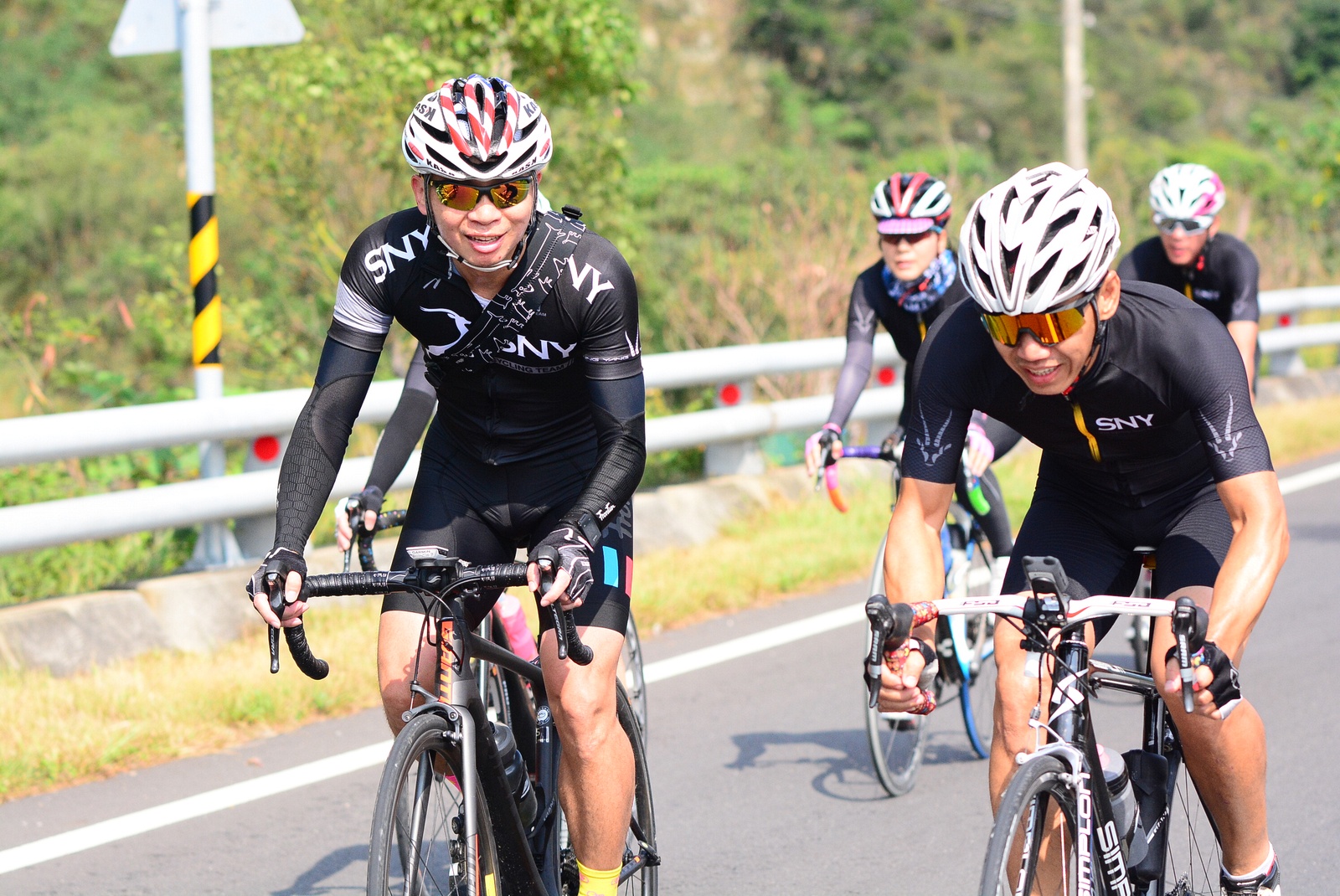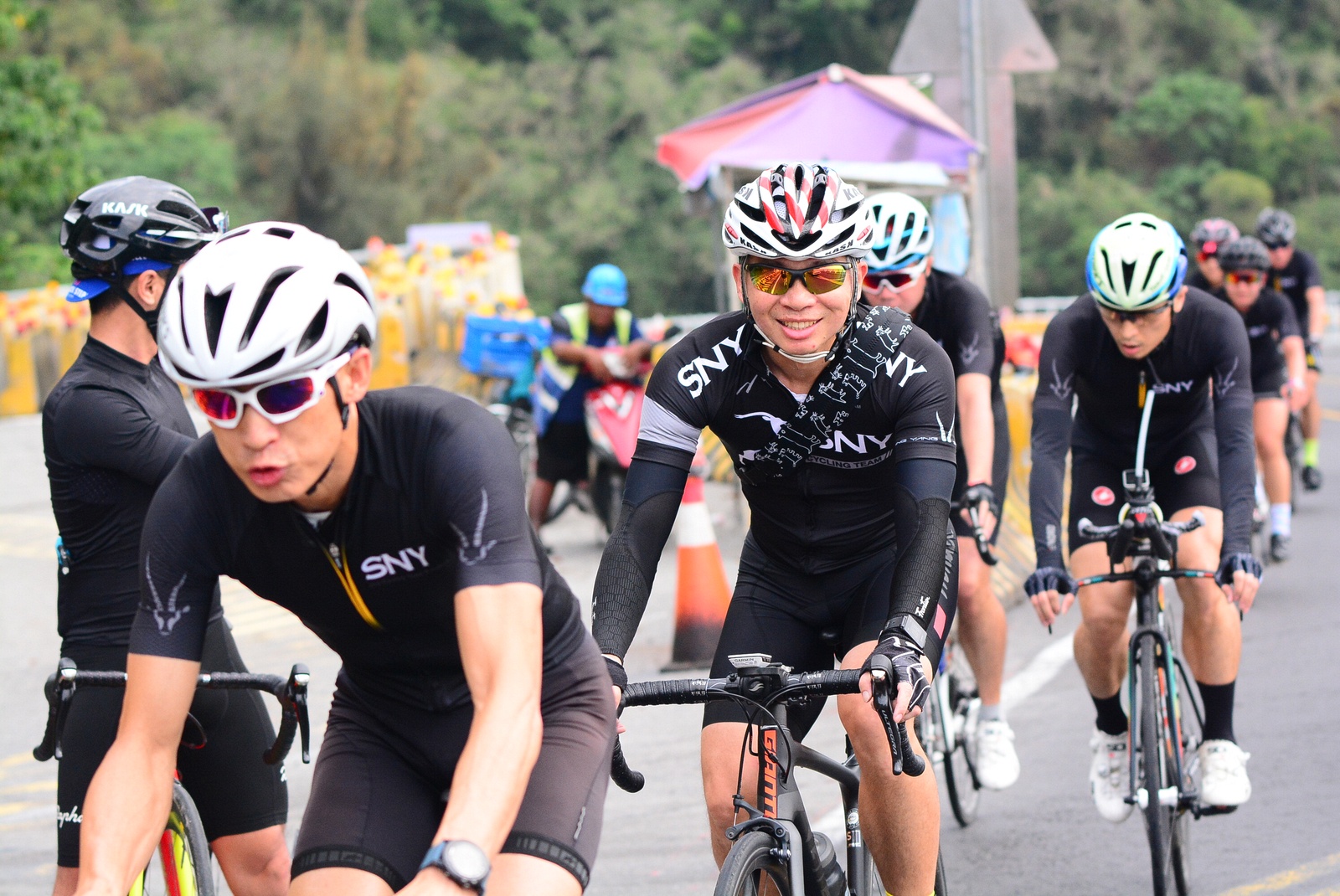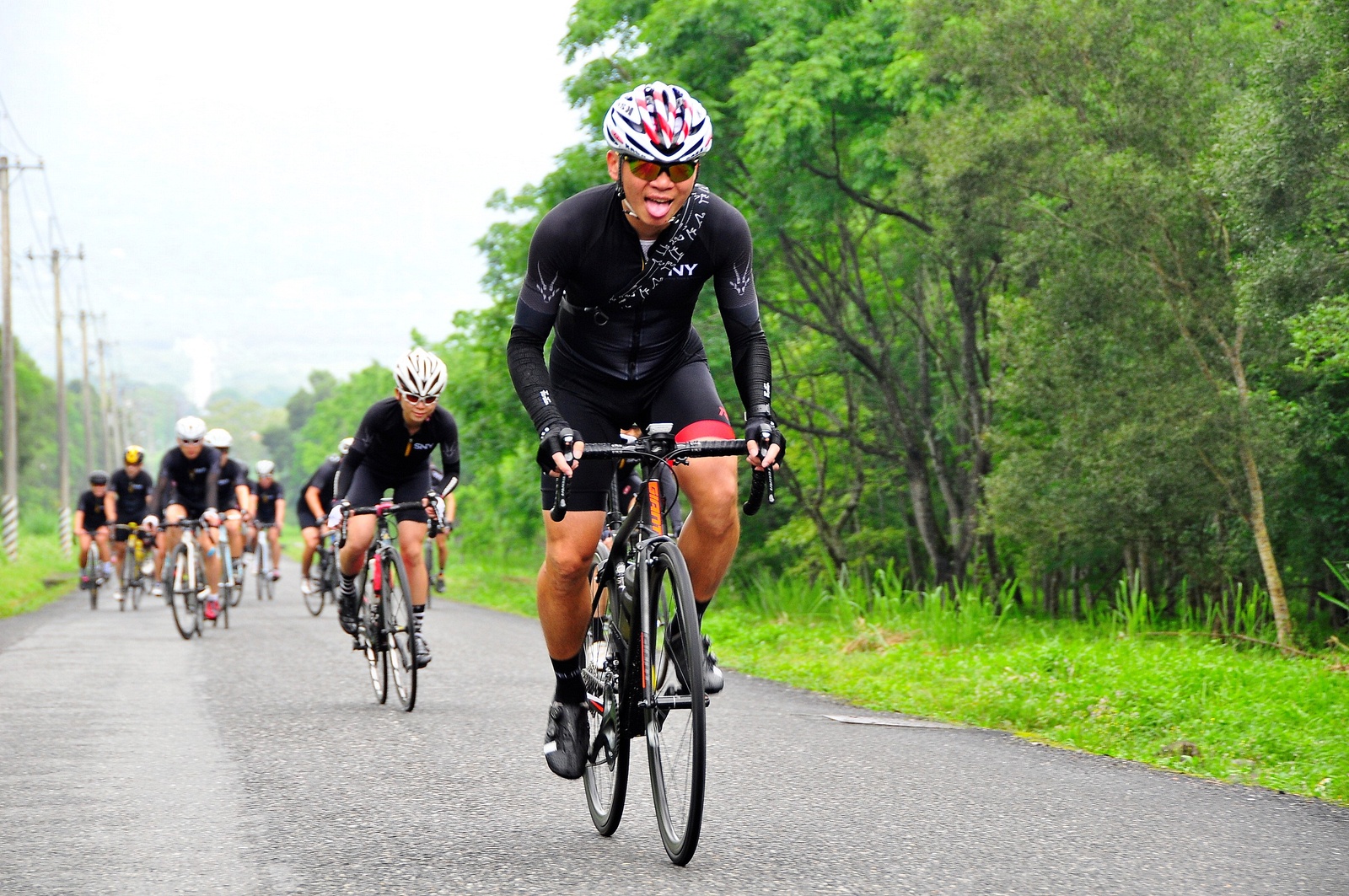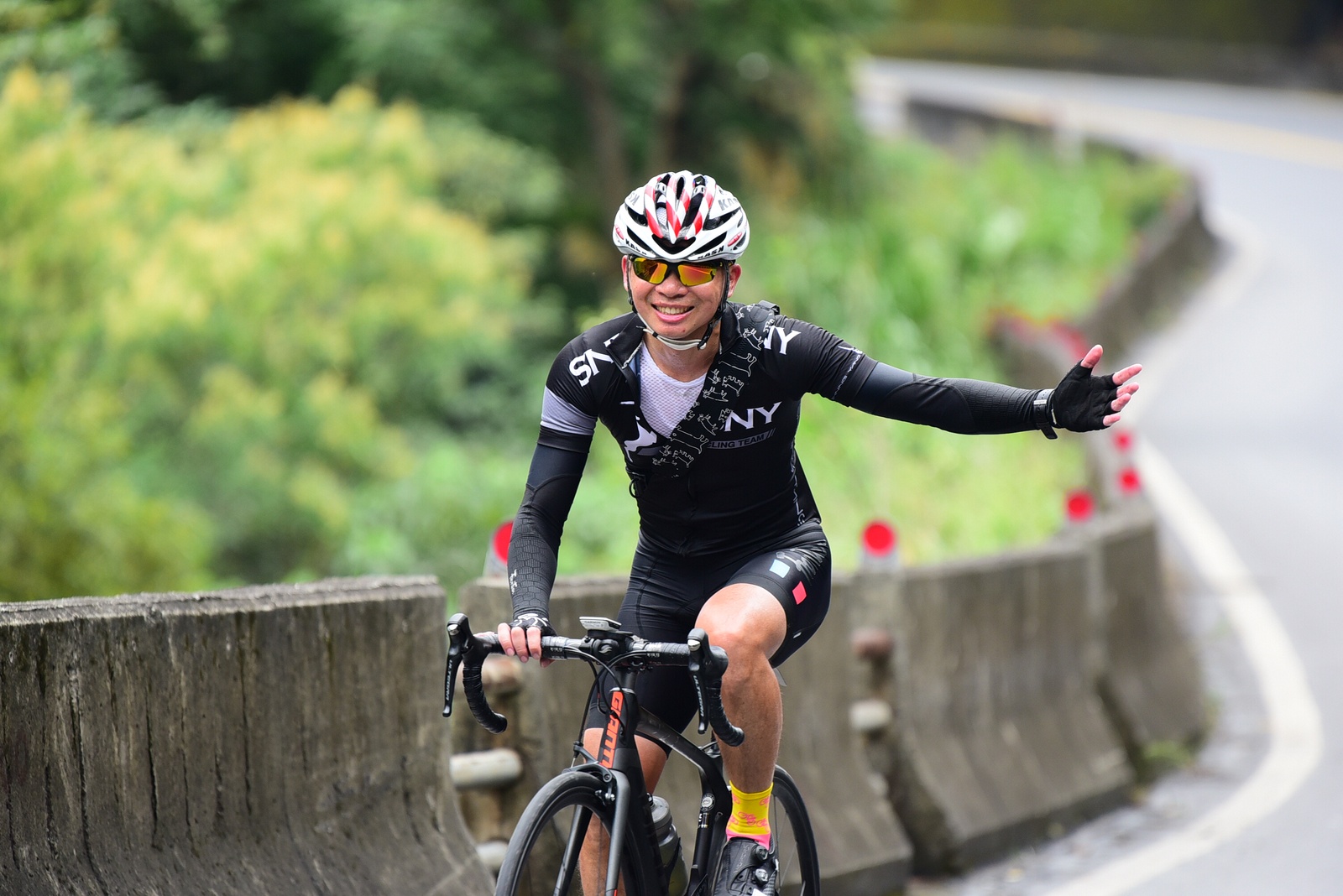 早早就報名了SNY東爽塔 老實說跟這群面惡心善的羊一起騎車,壓力實在不小 去年年底和PETER去滑雪撞到肋骨後又忙著再帶全家去一趟日本 整整快二個月沒有騎車跑步 體能來到新低點,而體重來到新高,接近70公斤大關 農曆過年後復出,先慶祝ALEX二哥冷水坑300登,和小猴、夏美一起騎上山 平等里騎個23分就喘到不行,而冷水坑前又被雙姝海放(很多人以為我假掰,但心跳來到185..真的不是假的) 才知道事情有大條.. 二月底先拿出塵封以久的訓練台,FTP打掉重練,180W就騎的我不要不要的>"< 努力了一個月後,在三月底奮力參加GBIKE的一日宇老,騎到被團長和EROS放到天荒地老去 不過有這一役,長途耐力似乎也進步不少 訓練台上180W騎40分鐘也不會騎的要死不活了~XD 4月中和甩油團一趟福隆來回,在到福隆前不小心擦撞LEO後輪 整個人側摔出去,還好只有擦傷和黑青 但車架後勾爪卻GG了~ SNY東爽塔即將舉行,也不好意思和朋友借車 剛好一個機會問到便宜的GIANT ADV PRO車架 短短一星期內就將我的新車組好 馬上首航五分山,新車GIANT完全不輸SCOTT(立馬就變心,哈哈哈) 再來就看是大戲上場 -- SNY東爽塔 事前一直在想,集團會分裂成幾個? 我要跟那一團?? 怎麼想都沒用...取決於主集團的強度啊!!!! 奇萊燈塔一出發沒多久就因紅綠燈被斷成二個集團以上.. 天空又飄著小雨.. 心想,不急著追領先集團 後來發現EASON從後方開了一輛車上來 那當然就順風搭上.. 穩穩的追上領先集團 合併之後,強度逐漸拉高,到鳳林前基本上都是微上坡.. 因摔車陰影加上天雨路滑 雖然跟車,但強度基本上都在接近200W左右 可見的前面破風領騎人員,至少都是250W以上的水準~ 在某個路口光叔一回頭看到我還黏在隊伍後面.. 直接露出驚訝的表情~哈XDD 過了壽豐的新豐平大橋後,是一段緩下再緩上的地型 集團強度減弱不少,平均瓦數只剩150W.. 算可以好好喘口氣!! 領先集團就一次挺進到光復糖廠前的小七(約52KM處)第一次大休息 停好車後,後面的羊群看來分裂成不少小團體 一個個陸續抵達 大休45分後大家到不遠處的大農大富集合拍照~ 這個筆直的小路一點都不輸伯朗大道 大家又在這歡樂好久 但從這之後就要進入風景優美但是是丘陵地型的193縣道 看EASON一帶頭往前騎,立馬就追上去.. 這一段整體而言是緩下坡 但中間不少短上坡 理論上應該是比第一段輕鬆的路段 卻搞的我一出發心跳就直衝170.. 領頭羊看到坡就抽車拉轉, 抽車拉轉.. 看到火哥來又興奮衝刺 沒拉個幾次,我就只能看到列車遠去~ 還好三峽張老闆一直用穩定功率在後面騎 刷過我時,順便帶我上車追上主集團 但又一輪猛攻下.. 這次我和POLLY一起雙雙落下 很想接回隊伍,但怎麼追就是追不到 某處已相當接近,一個轉彎又看到短坡 只看到領頭羊又抽車拉轉的.. 馬上宣告放棄...而膏多的POLLY也只能手叉腰嘆氣~ 但POLLY不放棄,還是奮力跟上 我就打定主意不跟了.. 沒想到主集團整個放慢.. EASON還特地退下來帶我接回隊伍~ 這群面惡心善的羊怎麼會這麼甘心啊... 那193縣道漂亮嗎? 只看到的前面的羊屁股啦~ 跟車的來不及了 那來的及看風景 光叔後來終於說話了:「這裡很漂亮耶~,要不要停下來拍照??!!」 終於...可以停下來拍個照喘口氣了~ 呼~這麼漂亮的地方好好看風景不好嗎??XDD 一定要打打殺殺的XDD 停了一下..列車再度啟動 經過剛一輪猛炸~ 我決定躲到第二集團團長的後面就好~ 團長瘦瘦的,但膏真的不少.. 且帶好穩...,不會間歇一直拉~ 也不會慢領先集團太多 躲在這團內真的舒服太多了!!哈~ 經過193的殘虐 雖然在小七休息好一會 但還是沒什麼膏了 再來的玉長公路就直接目送主集團離去 我自己慢慢凸上去就XD 玉長公路不陡,但沒力就騎不快 慢慢凸到隧道口準備開心下滑時 沒想到..下雨!! 除了少部分領先集團已經衝下去了 其它人為了安全起見,全部上車 EASON傳訊息來說山下是地乾無雨 本想到山下繼續騎 不過看來剩下10多公里就要到成功吃海鮮 那我們就直接在車上幫領先集團加油吧~ 只是沒想到一路上只追到零星幾位掉隊的羊 其它的在進市區時才被補給車追上 不得不說這些羊膏真的很多且速度很快XD 晚餐本來要在宋媽媽吃海鮮 不過因為人數太多,只能改另一家 就略遜一籌 吃完因為想要去台東幫參加CT 226的鐵人朋友拍照加油~ 就沒有夜騎到太麻里去..(從成功過去還有70多公里,這些人真的太猛了!!!) 在台東鐵花村順利等到范愛妻、筱嵐姐、仲哥、佛系鐵人STAR鴿和健榮...(來不及等到小猴XD) 看到他們回來真的有感動~太厲害了 我今天才騎100KM就累的半死 226鐵人要先游3.8KM,再自己破風騎180KM,最後再全馬...想到就眼神死 請不要再推坑了!!XDD 讓我把對你們的佩服深深放在心中就好!!:D #感謝226超人組在梳洗後就馬上載我回太麻里的飯店,真是太有情有義了!! -------------------------------------- DAY2 今天是未知的行程,儘量能騎好騎滿~ 但不能也就算了~ 有了昨天的經驗 出發後就早早跟上肉絲後面去.. 這樣就算跟不上英菁組的,在團長後面也不會掉到那去~ 還好出發時強度沒拉太高.. 大家就一起順順騎到金崙去 看著筆直的新大橋,全羊都停下來騙照.. 騙了一張之後,有部份羊群已開始逃脫 英菁組的當然沒在怕.. 但我心想,我若繼續留下來騙,等會又跟不上英菁組的就會死很慘 也來先逃脫好了.. 接著就跟著炮哥一路往前推,無敵哥,芬達,慈哥,穆哥,盛哥和糖姐也都